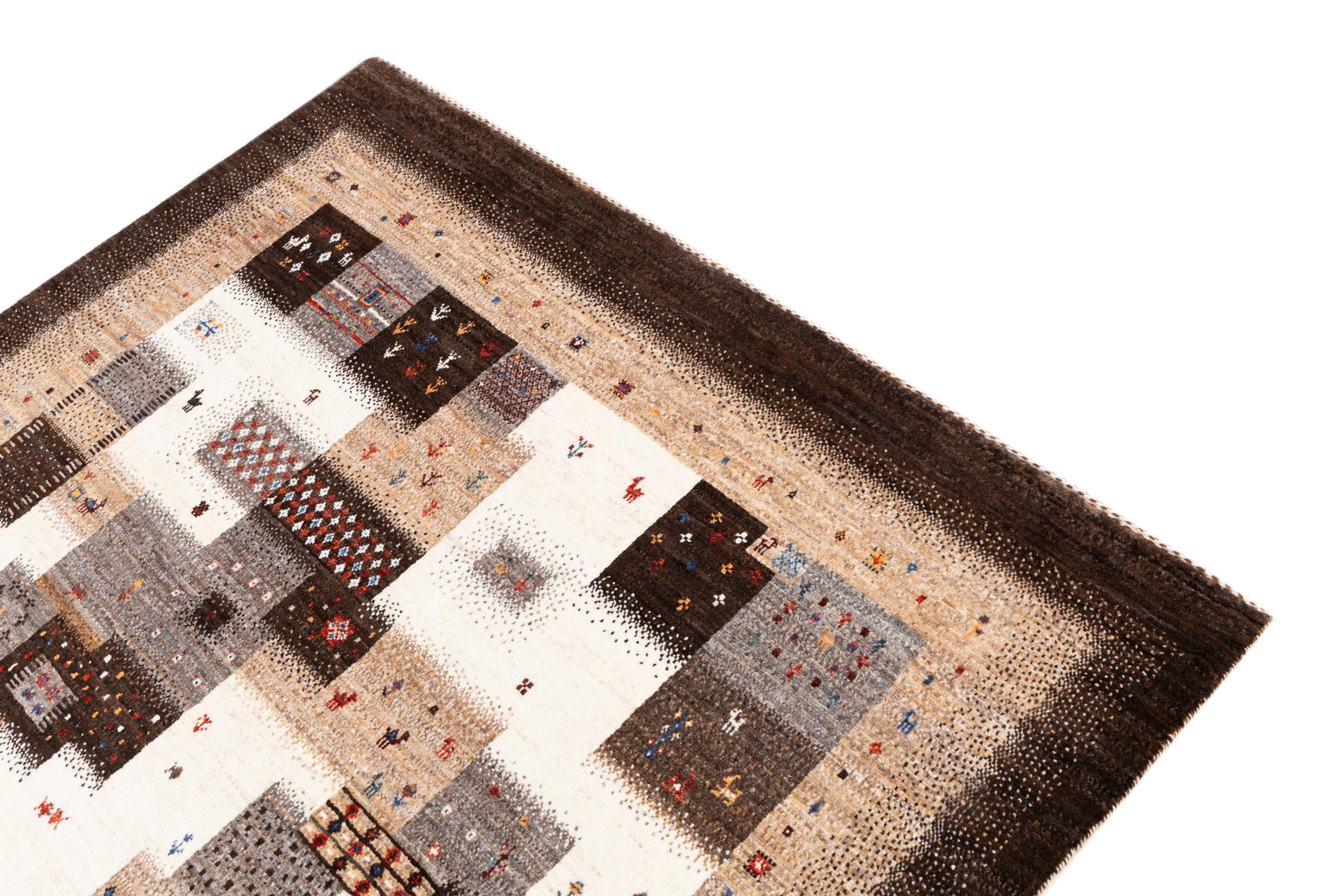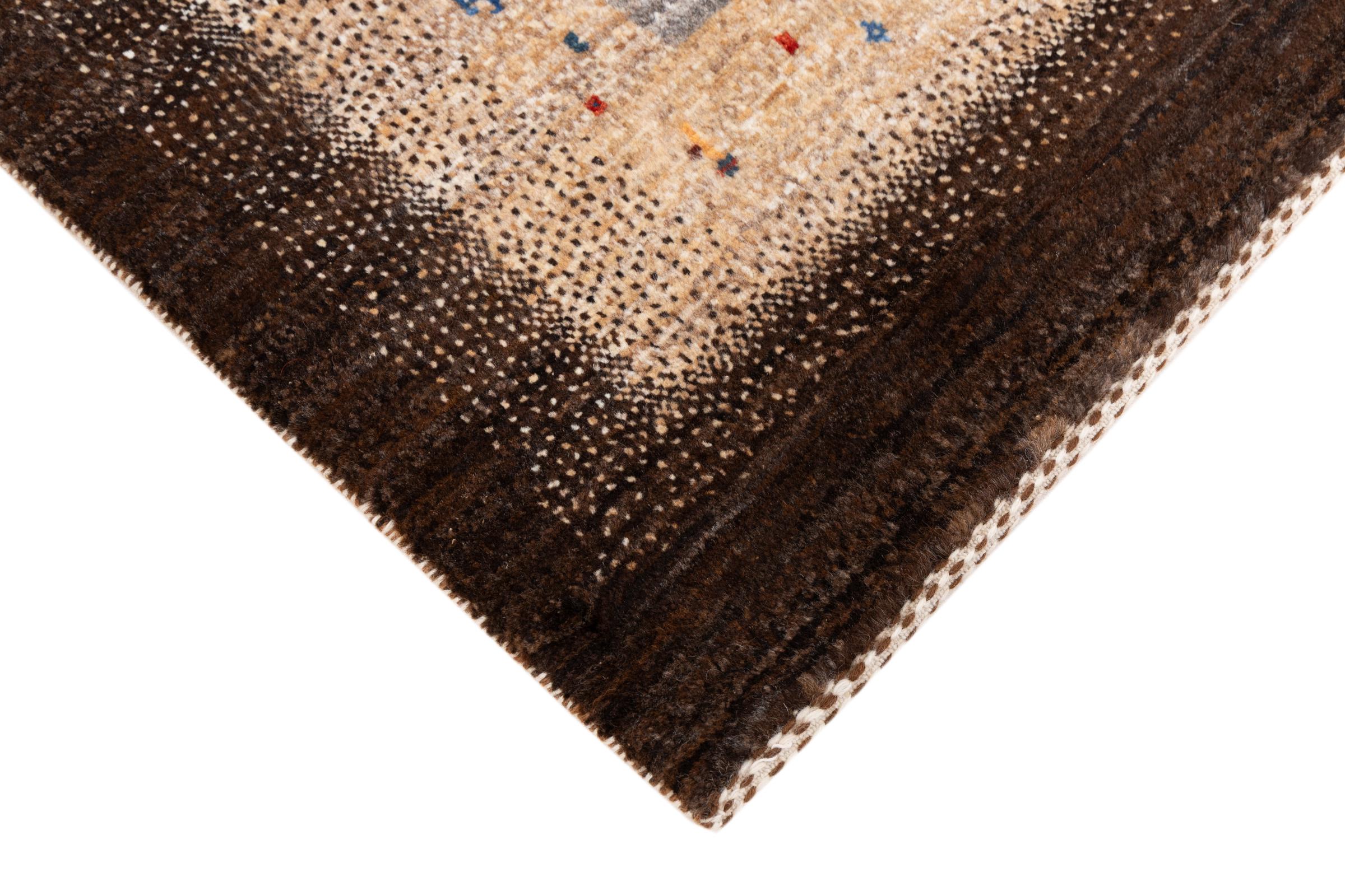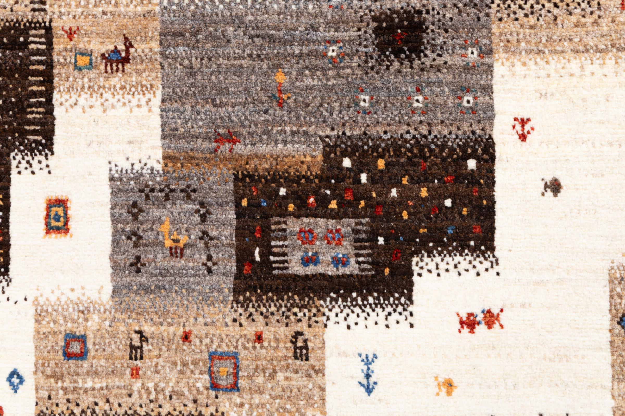 Ten piękny dywan jest perskim Gabbeh i dlatego należy do najwyższej jakości dywanów Gabbeh. Dywany są wiązane przez nomadów lub pół-nomadzi w Iranie zgodnie z tradycyjnym rzemiosłem. Proste motywy i wzory są w większości inspirowane bezpośrednim otoczeniem nomadów. Na przykład wielbłądy, drzewa lub krzewy można znaleźć na tradycyjnych dywanach. Perskie dywany Gabbeh wykonane są z wełny pochodzącej z lokalnie hodowanych stad owiec. Wełna jest więc w większości przypadków nadal obracana ręcznie. Tak więc każdy z tych orientalnych dywanów uosabia unikalny charakter wielowiekowej kultury.