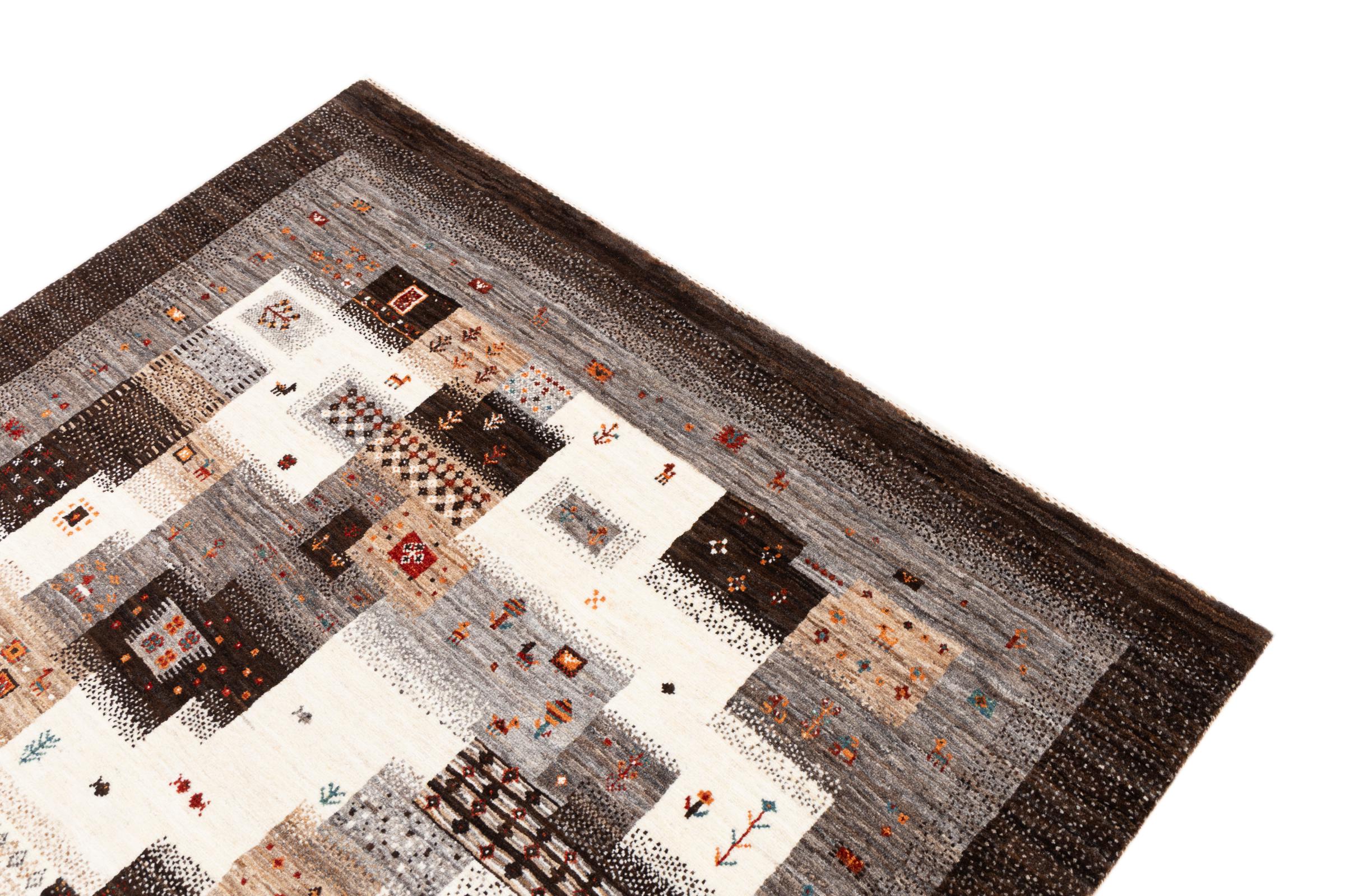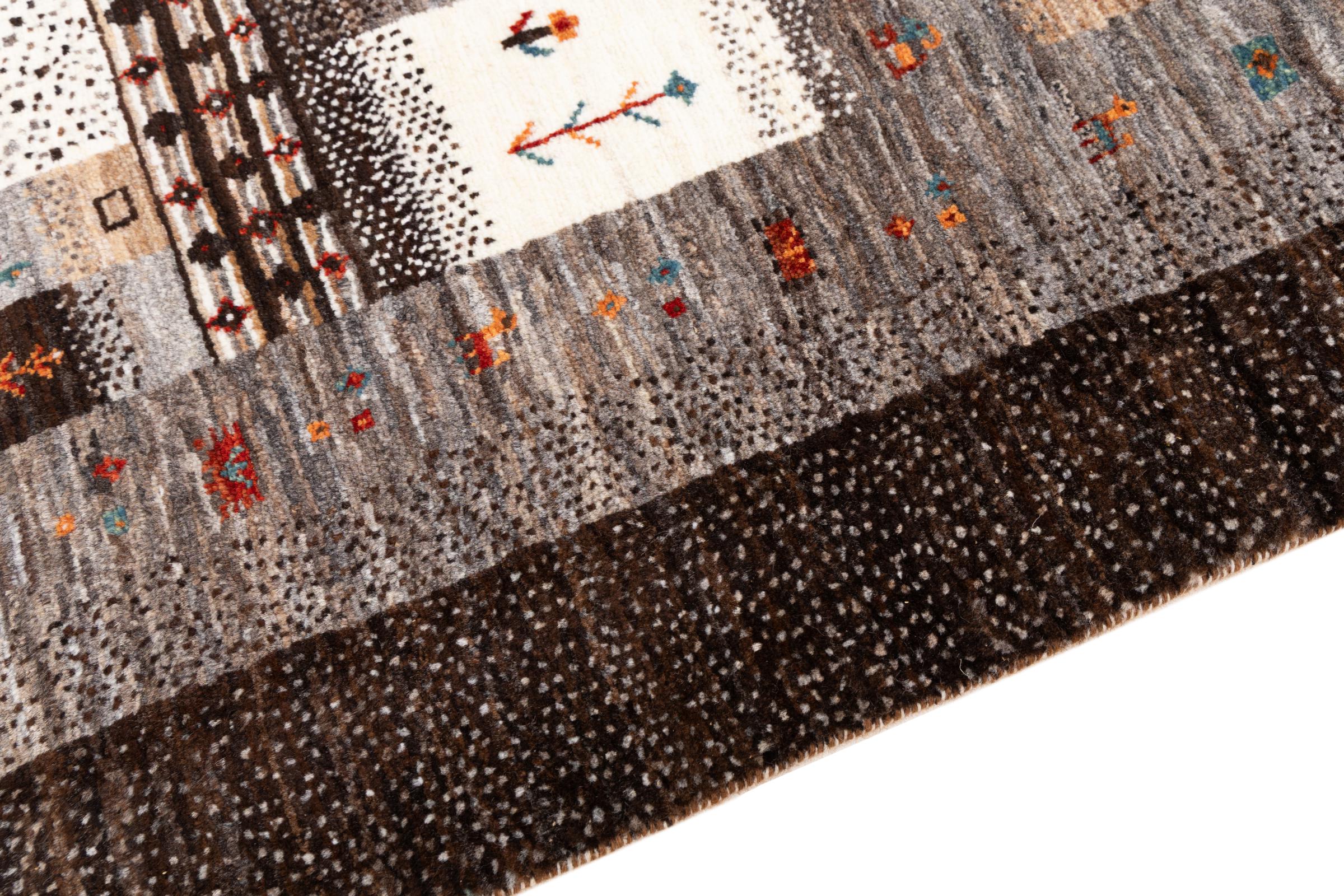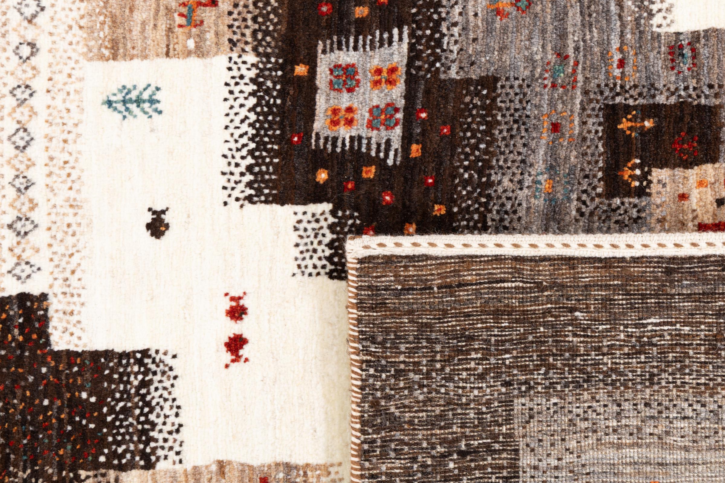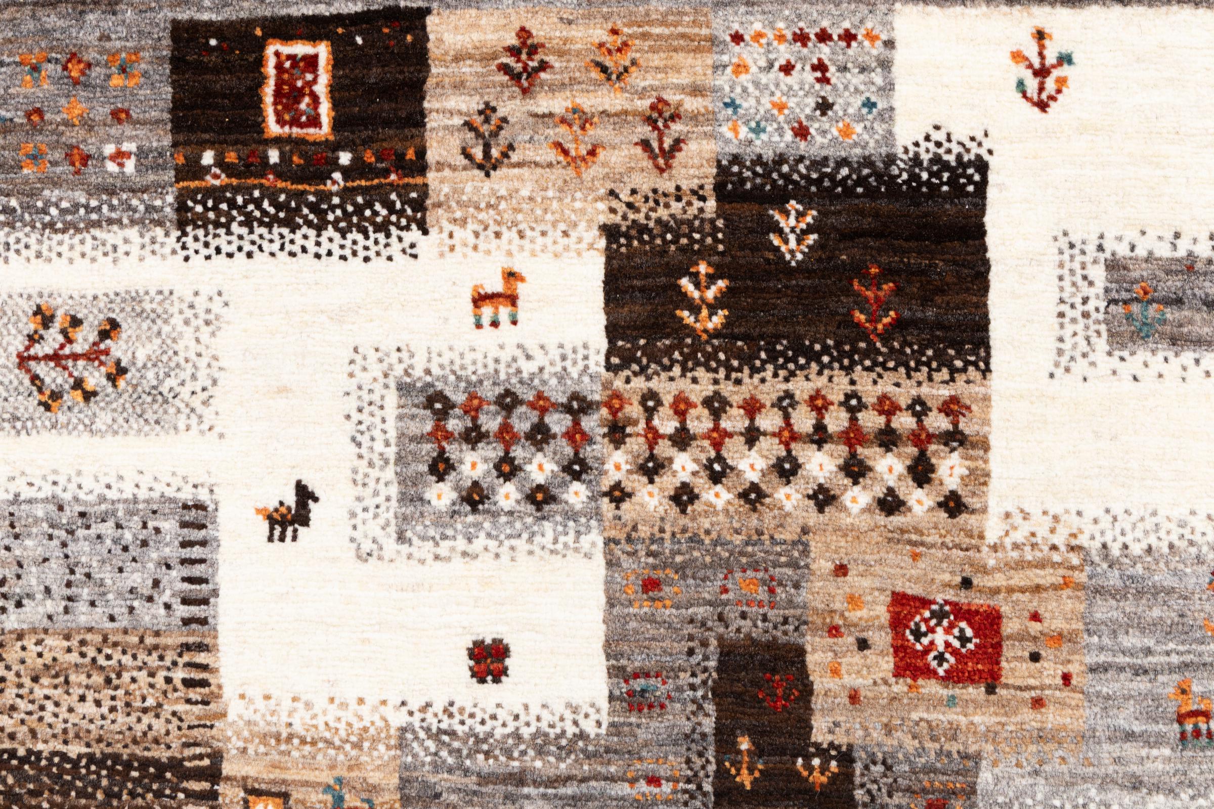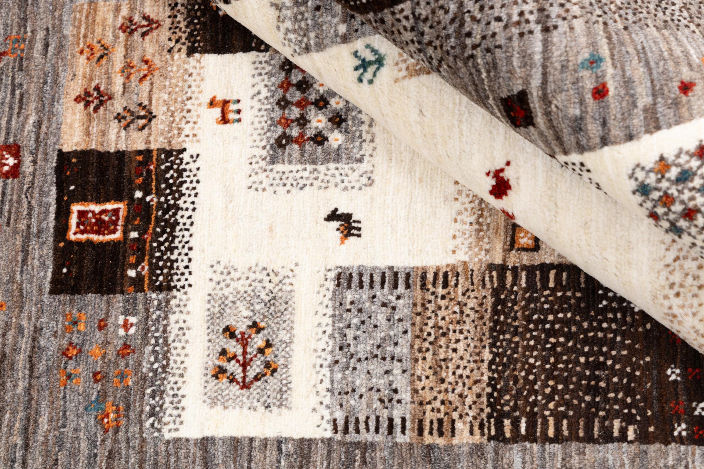 Ten piękny dywan jest perskim Gabbeh i dlatego należy do najwyższej jakości dywanów Gabbeh. Dywany są wiązane przez nomadów lub pół-nomadzi w Iranie zgodnie z tradycyjnym rzemiosłem. Proste motywy i wzory są w większości inspirowane bezpośrednim otoczeniem nomadów. Na przykład wielbłądy, drzewa lub krzewy można znaleźć na tradycyjnych dywanach. Perskie dywany Gabbeh wykonane są z wełny pochodzącej z lokalnie hodowanych stad owiec. Wełna jest więc w większości przypadków nadal obracana ręcznie. Tak więc każdy z tych orientalnych dywanów uosabia unikalny charakter wielowiekowej kultury.