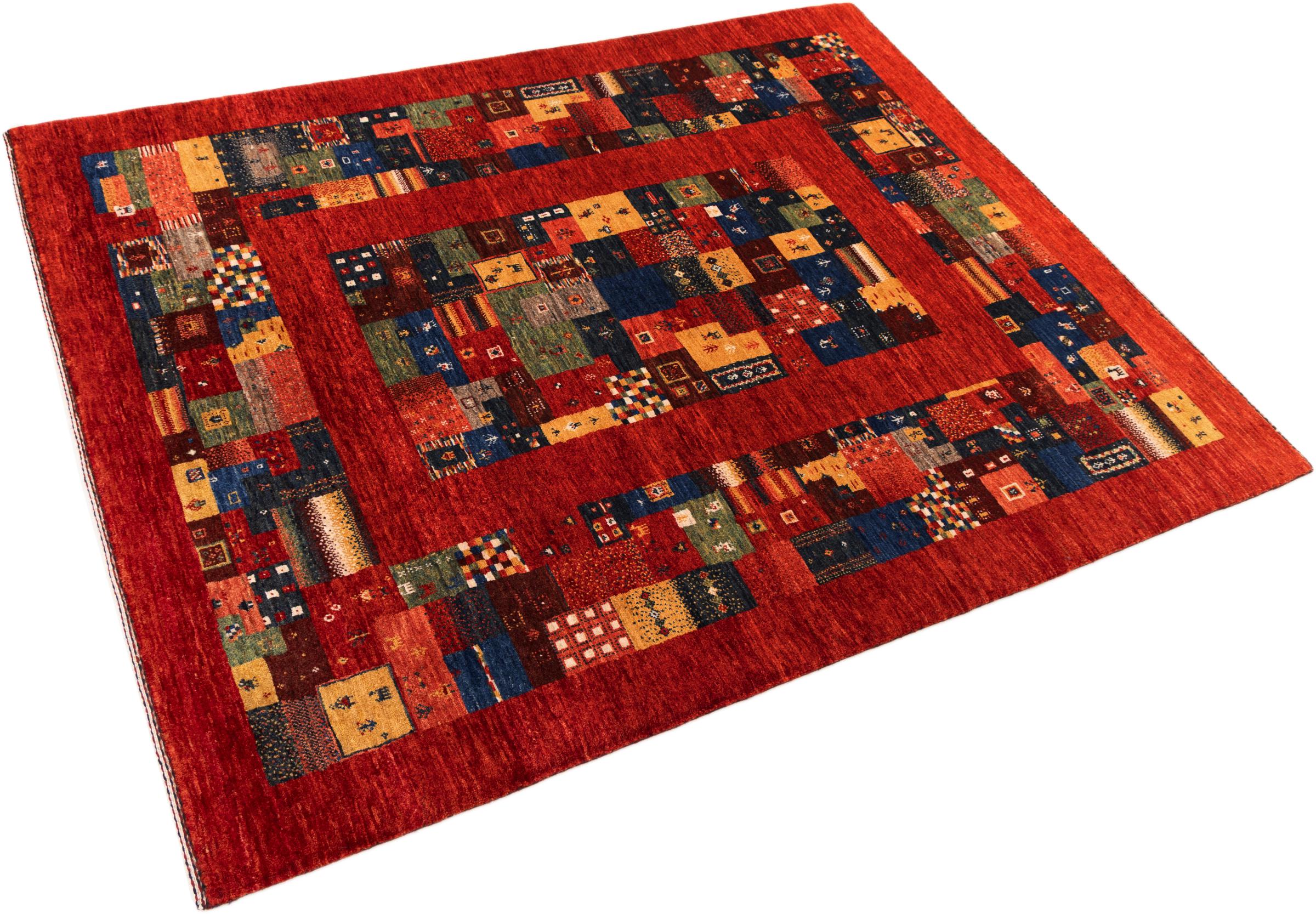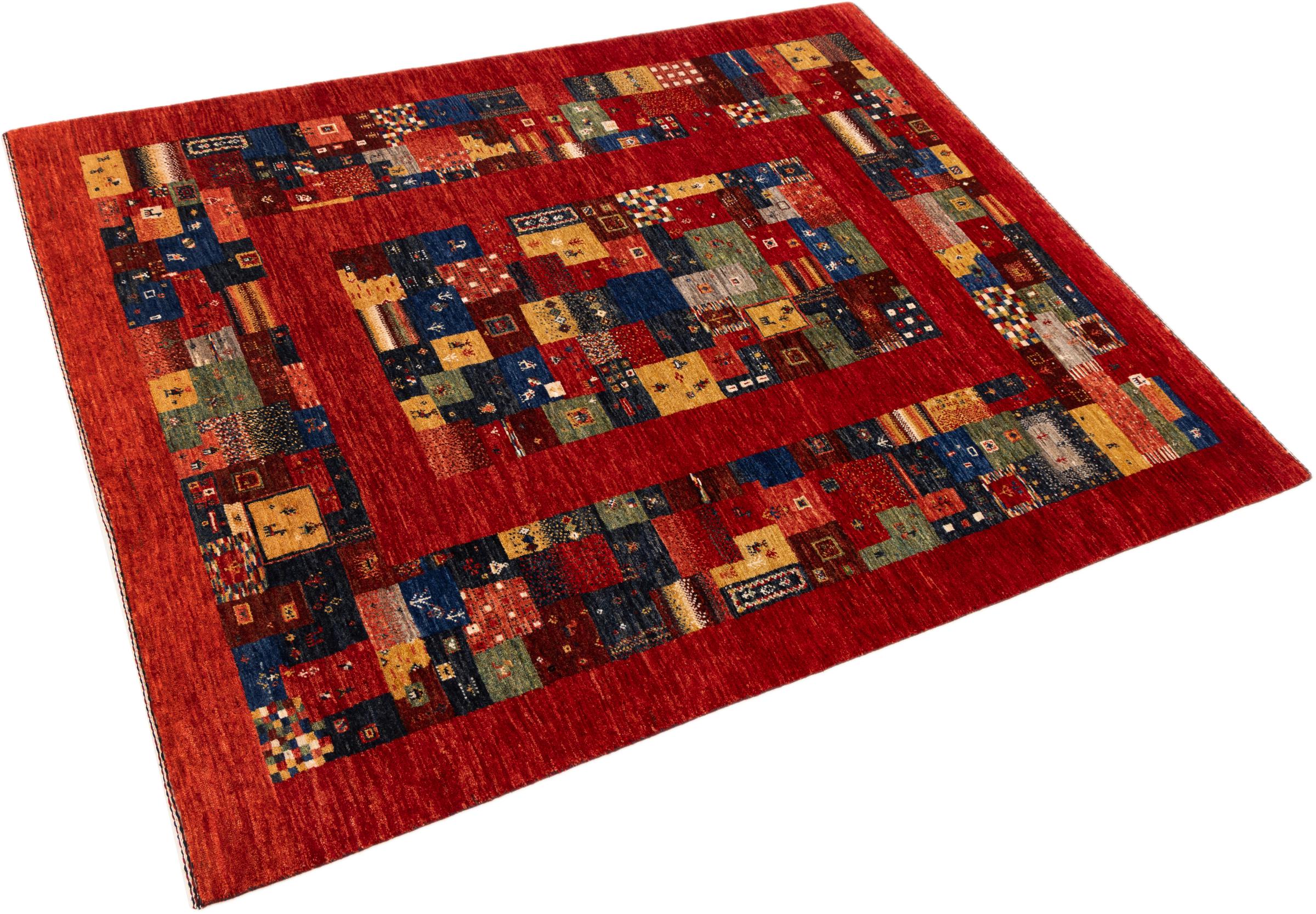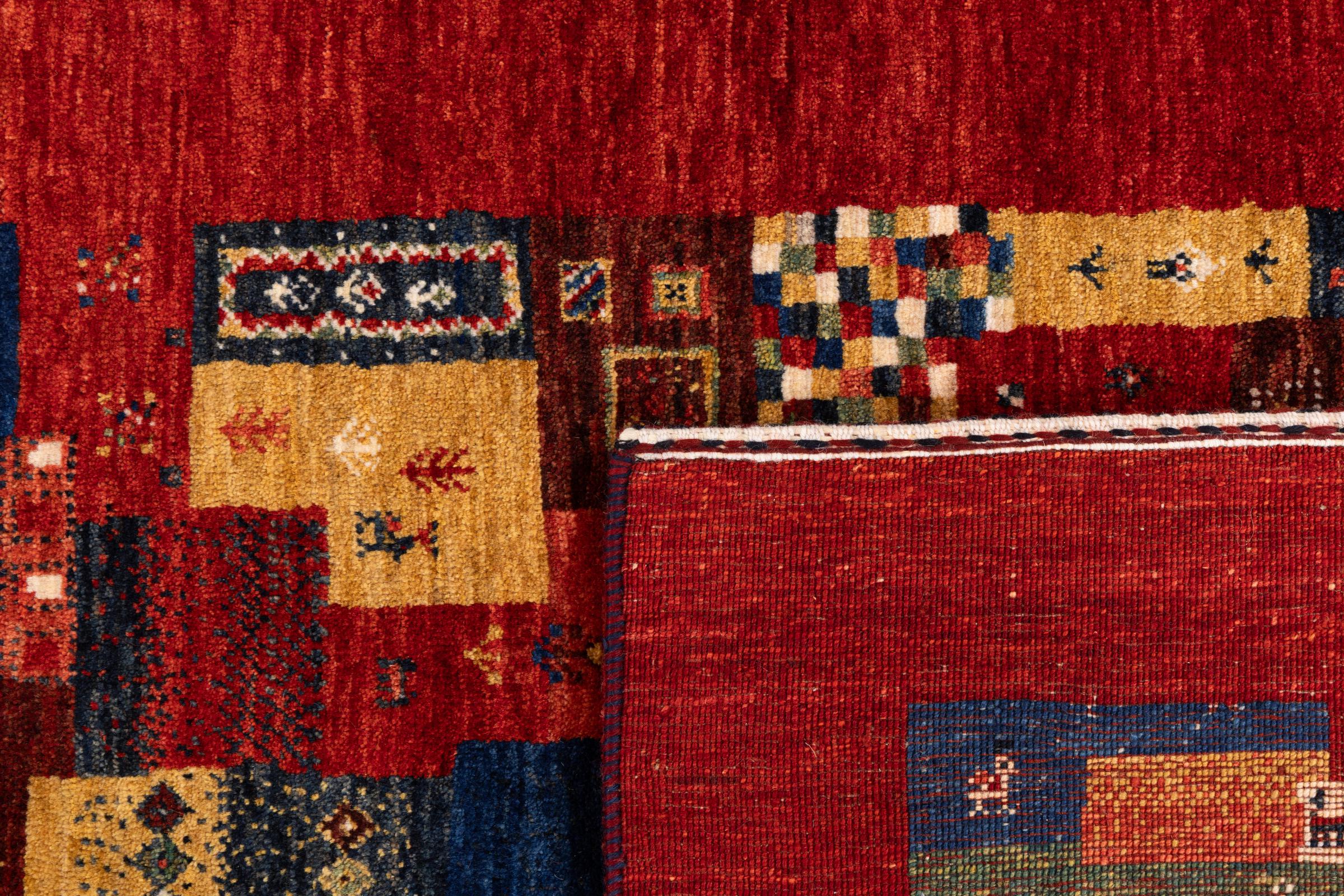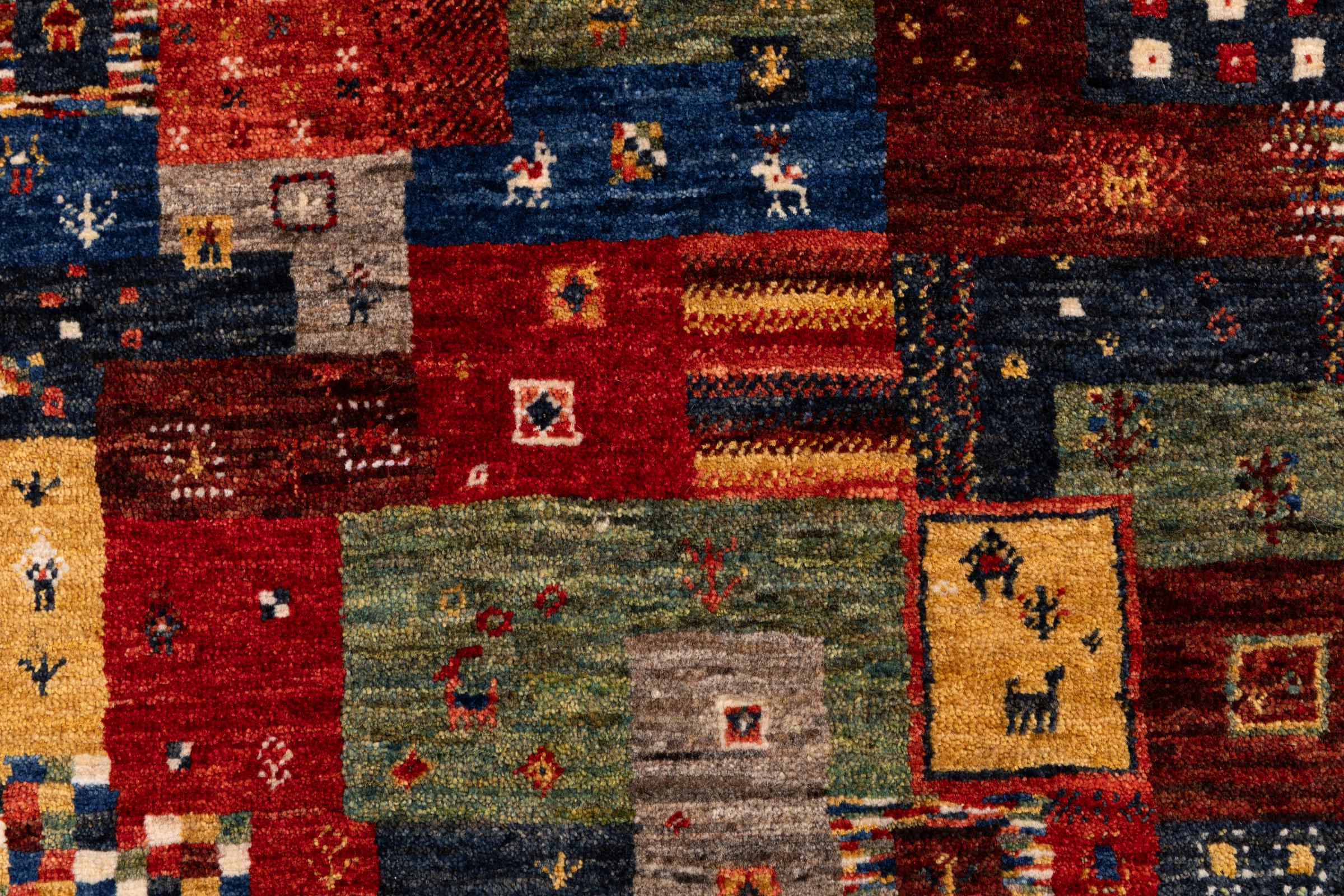 Ten piękny dywan jest perskim Gabbeh i dlatego należy do najwyższej jakości dywanów Gabbeh. Dywany są wiązane przez nomadów lub pół-nomadzi w Iranie zgodnie z tradycyjnym rzemiosłem. Proste motywy i wzory są w większości inspirowane bezpośrednim otoczeniem nomadów. Na przykład wielbłądy, drzewa lub krzewy można znaleźć na tradycyjnych dywanach. Perskie dywany Gabbeh wykonane są z wełny pochodzącej z lokalnie hodowanych stad owiec. Wełna jest więc w większości przypadków nadal obracana ręcznie. Tak więc każdy z tych orientalnych dywanów uosabia unikalny charakter wielowiekowej kultury.