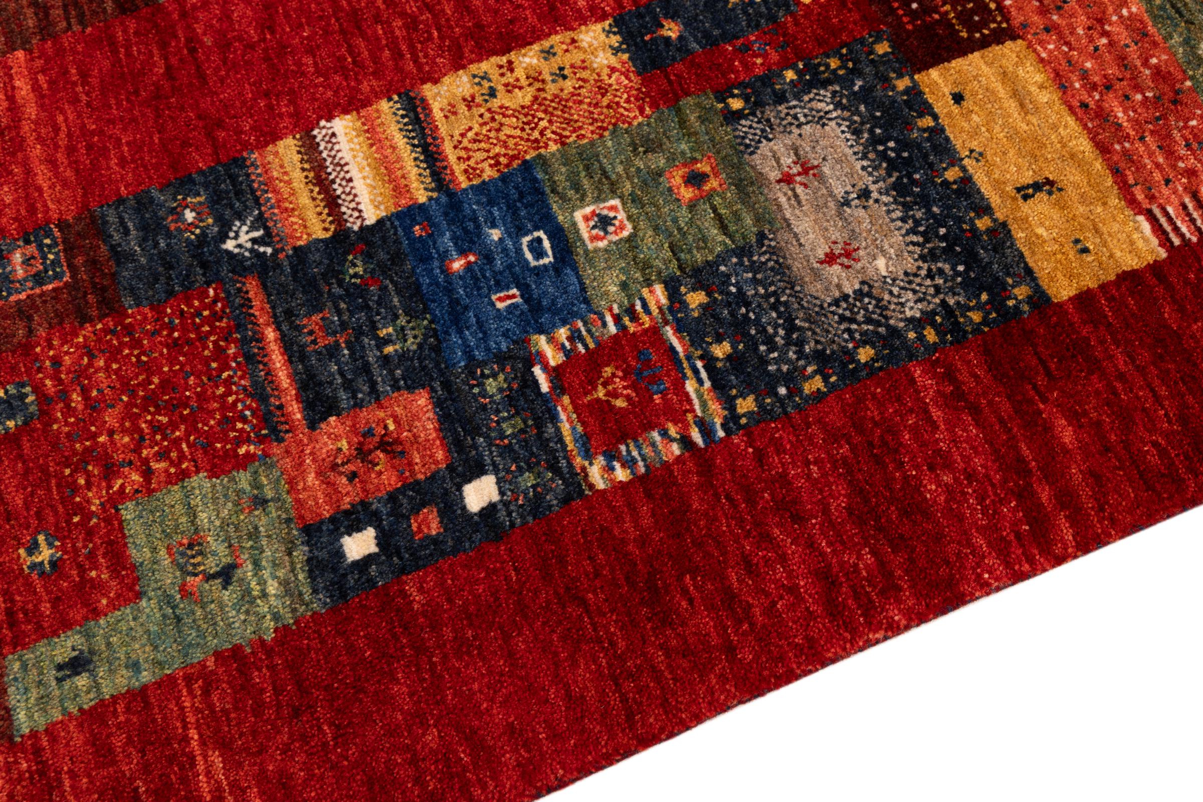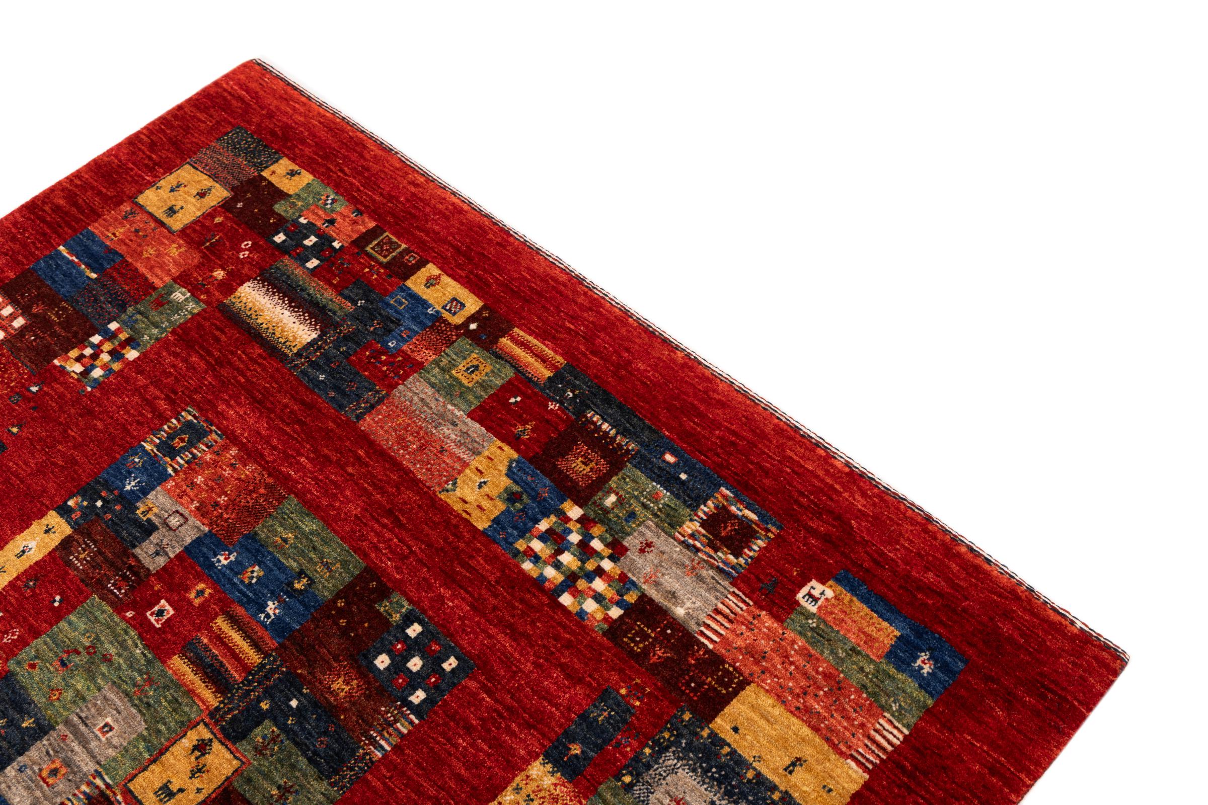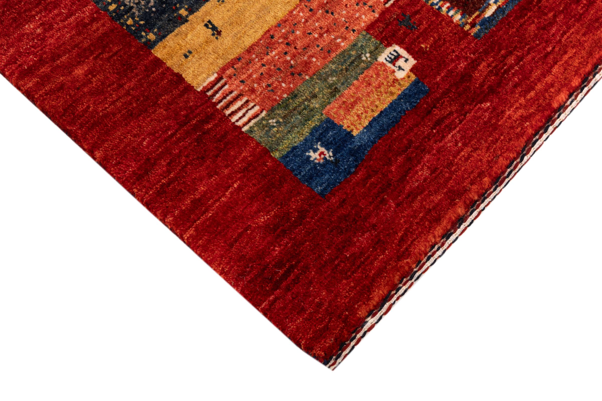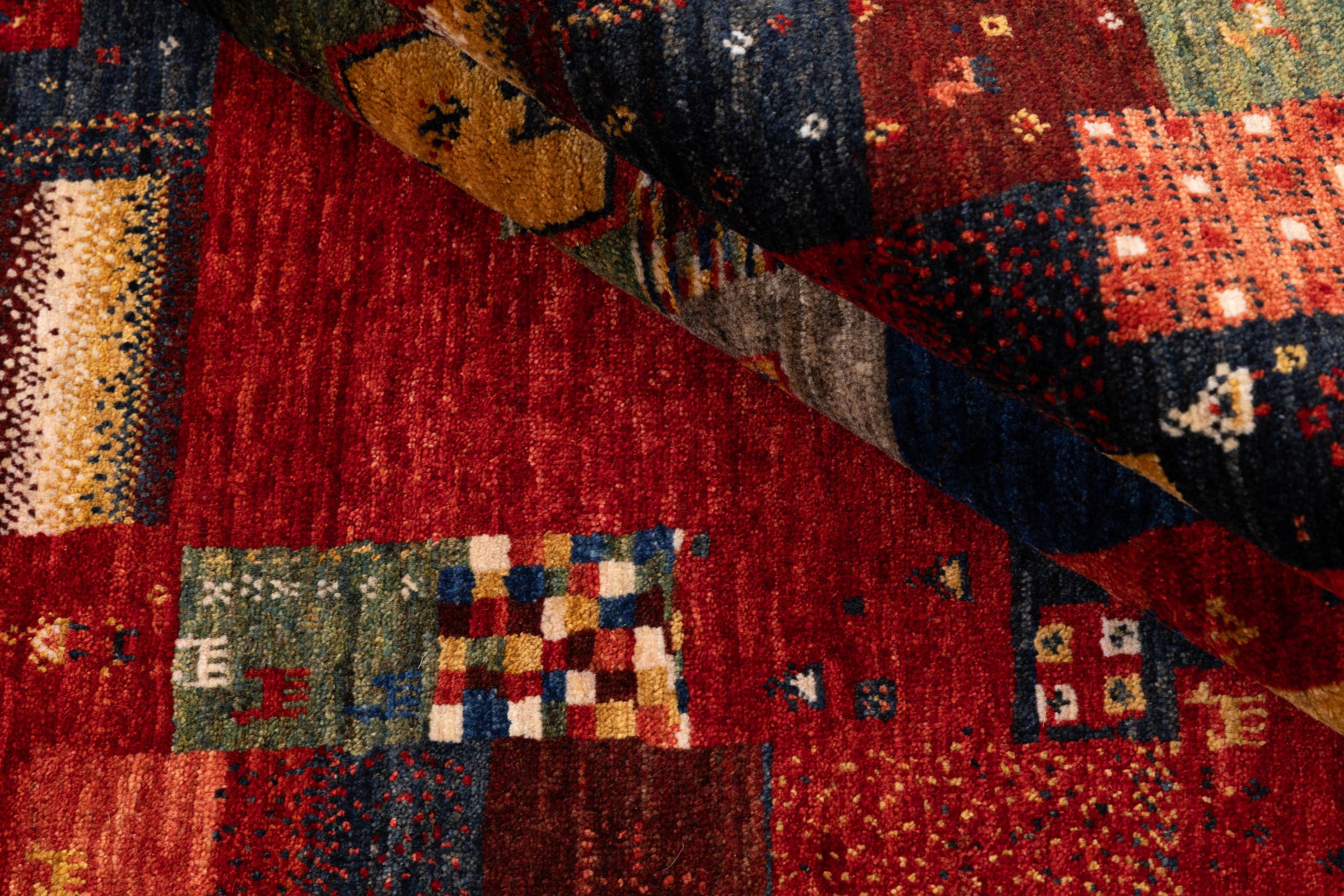 Ten piękny dywan jest perskim Gabbeh i dlatego należy do najwyższej jakości dywanów Gabbeh. Dywany są wiązane przez nomadów lub pół-nomadzi w Iranie zgodnie z tradycyjnym rzemiosłem. Proste motywy i wzory są w większości inspirowane bezpośrednim otoczeniem nomadów. Na przykład wielbłądy, drzewa lub krzewy można znaleźć na tradycyjnych dywanach. Perskie dywany Gabbeh wykonane są z wełny pochodzącej z lokalnie hodowanych stad owiec. Wełna jest więc w większości przypadków nadal obracana ręcznie. Tak więc każdy z tych orientalnych dywanów uosabia unikalny charakter wielowiekowej kultury.