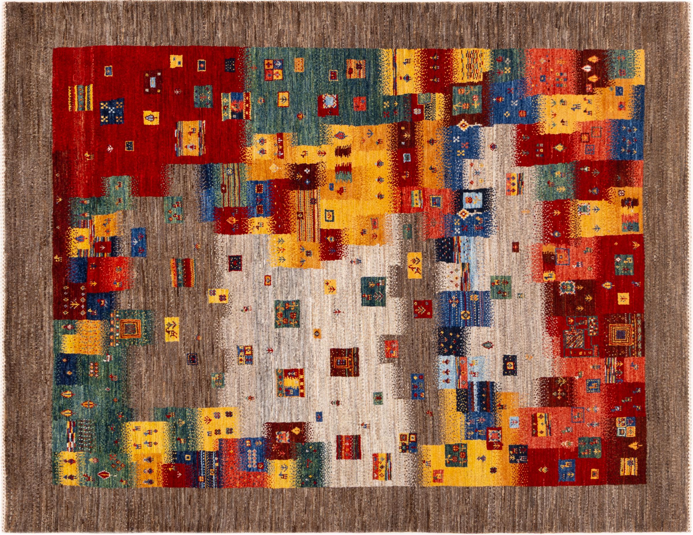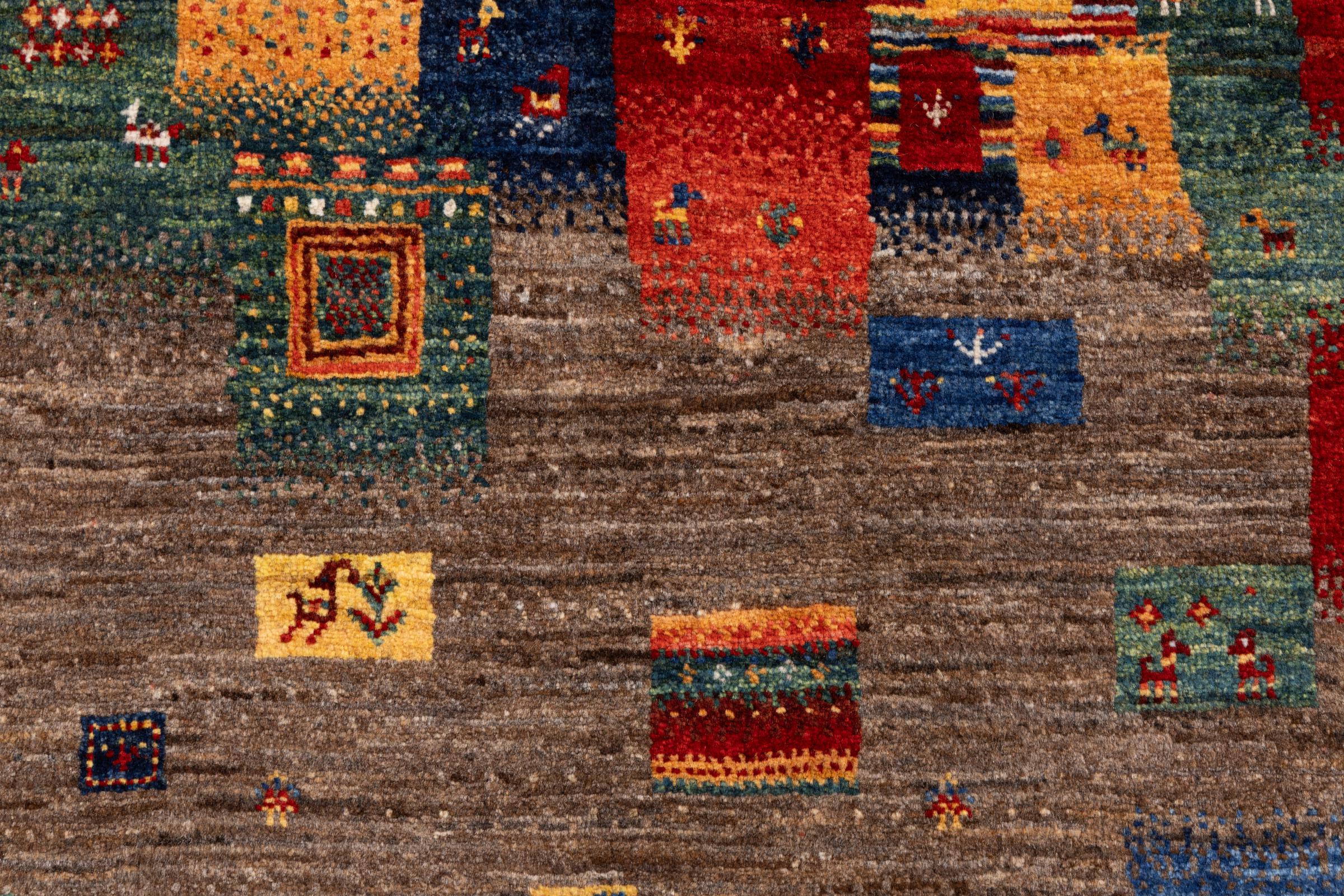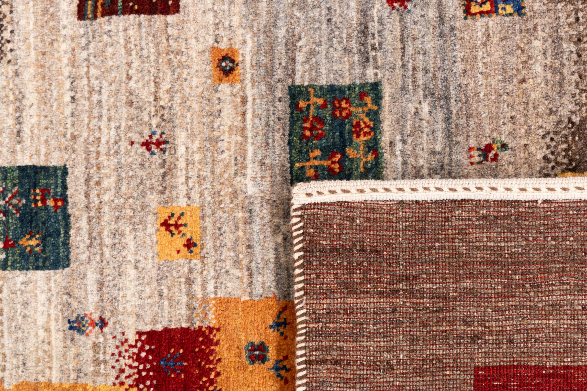 Ten piękny dywan jest perskim Gabbeh i dlatego należy do najwyższej jakości dywanów Gabbeh. Dywany są wiązane przez nomadów lub pół-nomadzi w Iranie zgodnie z tradycyjnym rzemiosłem. Proste motywy i wzory są w większości inspirowane bezpośrednim otoczeniem nomadów. Na przykład wielbłądy, drzewa lub krzewy można znaleźć na tradycyjnych dywanach. Perskie dywany Gabbeh wykonane są z wełny pochodzącej z lokalnie hodowanych stad owiec. Wełna jest więc w większości przypadków nadal obracana ręcznie. Tak więc każdy z tych orientalnych dywanów uosabia unikalny charakter wielowiekowej kultury.