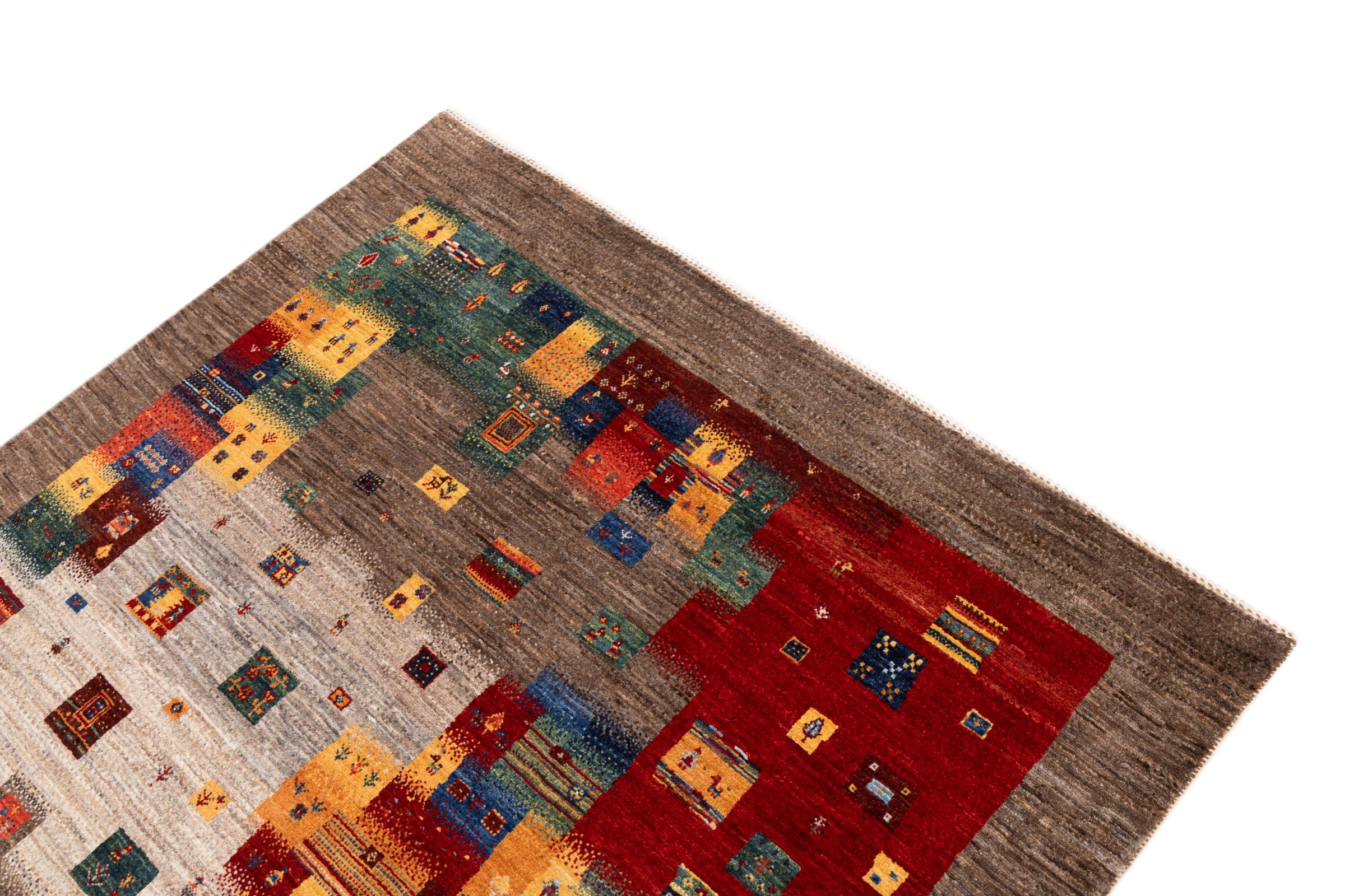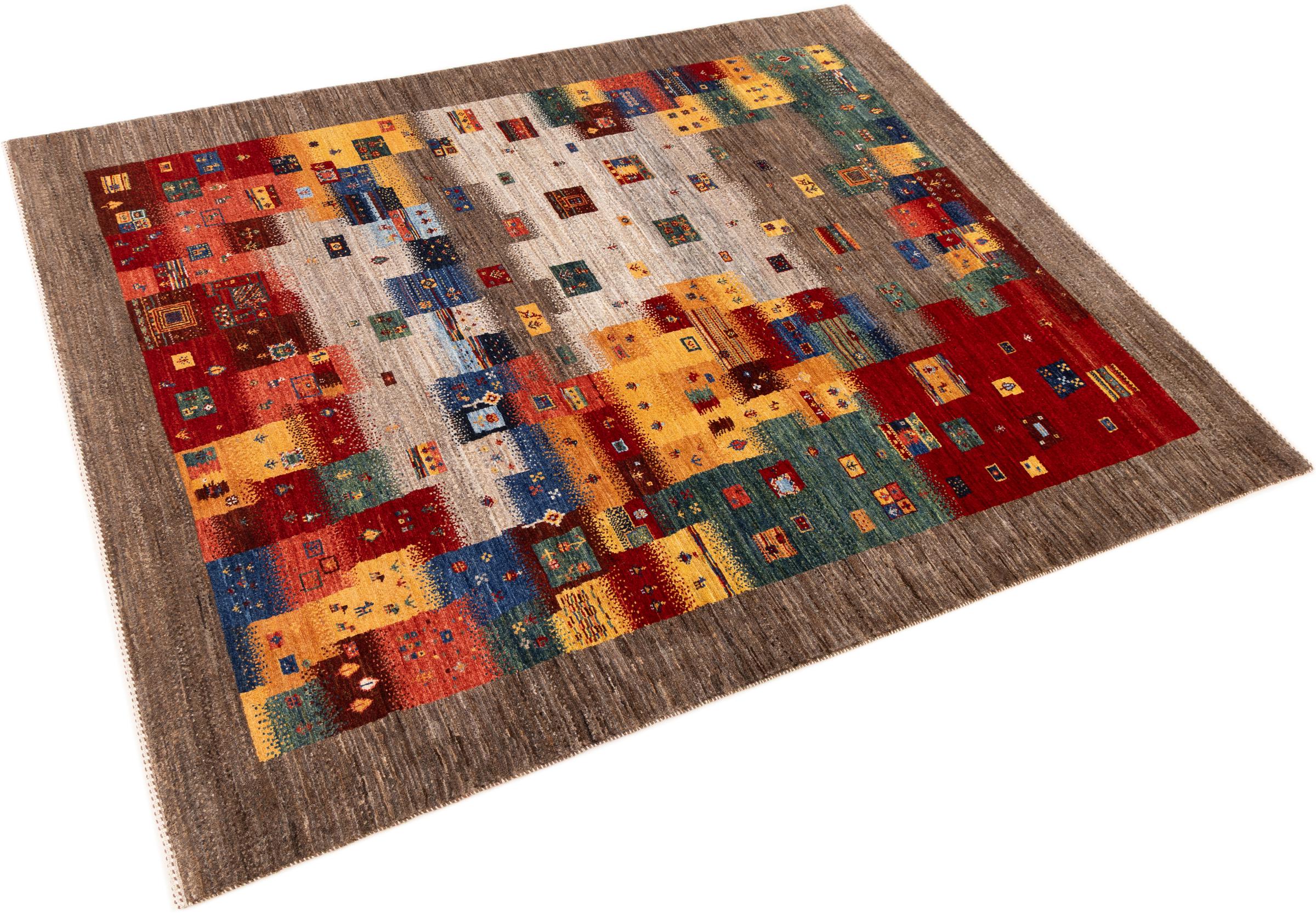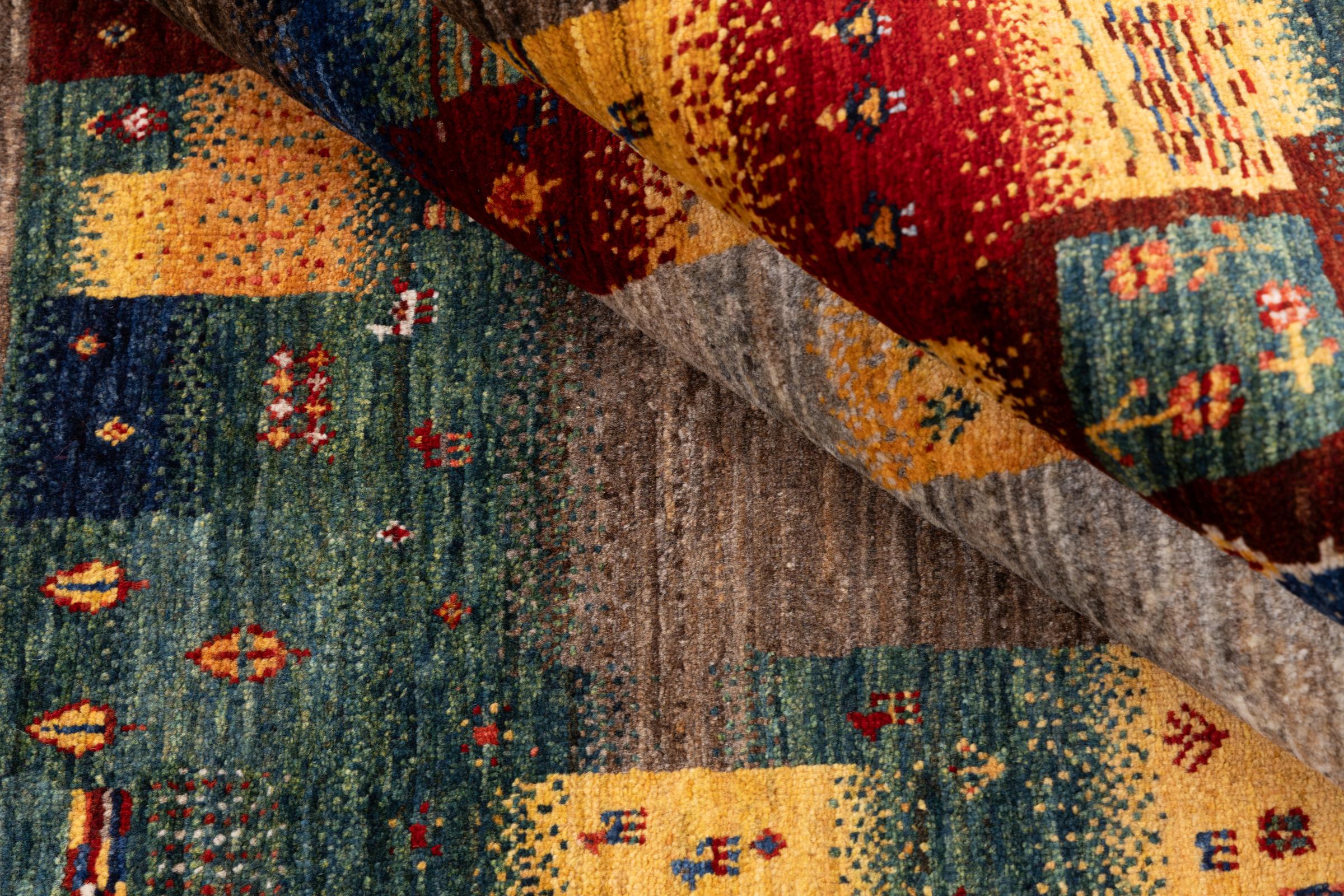 Ten piękny dywan jest perskim Gabbeh i dlatego należy do najwyższej jakości dywanów Gabbeh. Dywany są wiązane przez nomadów lub pół-nomadzi w Iranie zgodnie z tradycyjnym rzemiosłem. Proste motywy i wzory są w większości inspirowane bezpośrednim otoczeniem nomadów. Na przykład wielbłądy, drzewa lub krzewy można znaleźć na tradycyjnych dywanach. Perskie dywany Gabbeh wykonane są z wełny pochodzącej z lokalnie hodowanych stad owiec. Wełna jest więc w większości przypadków nadal obracana ręcznie. Tak więc każdy z tych orientalnych dywanów uosabia unikalny charakter wielowiekowej kultury.