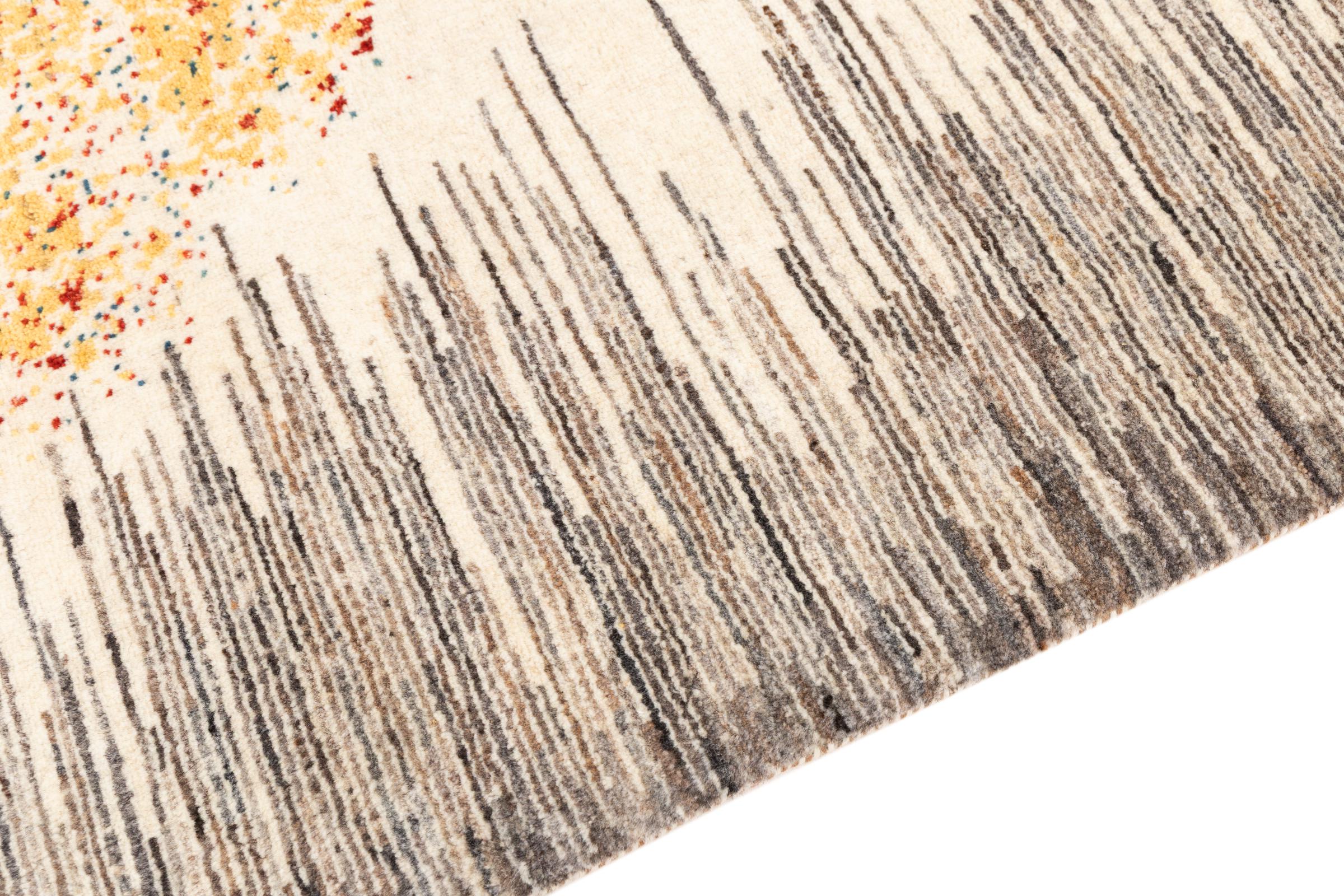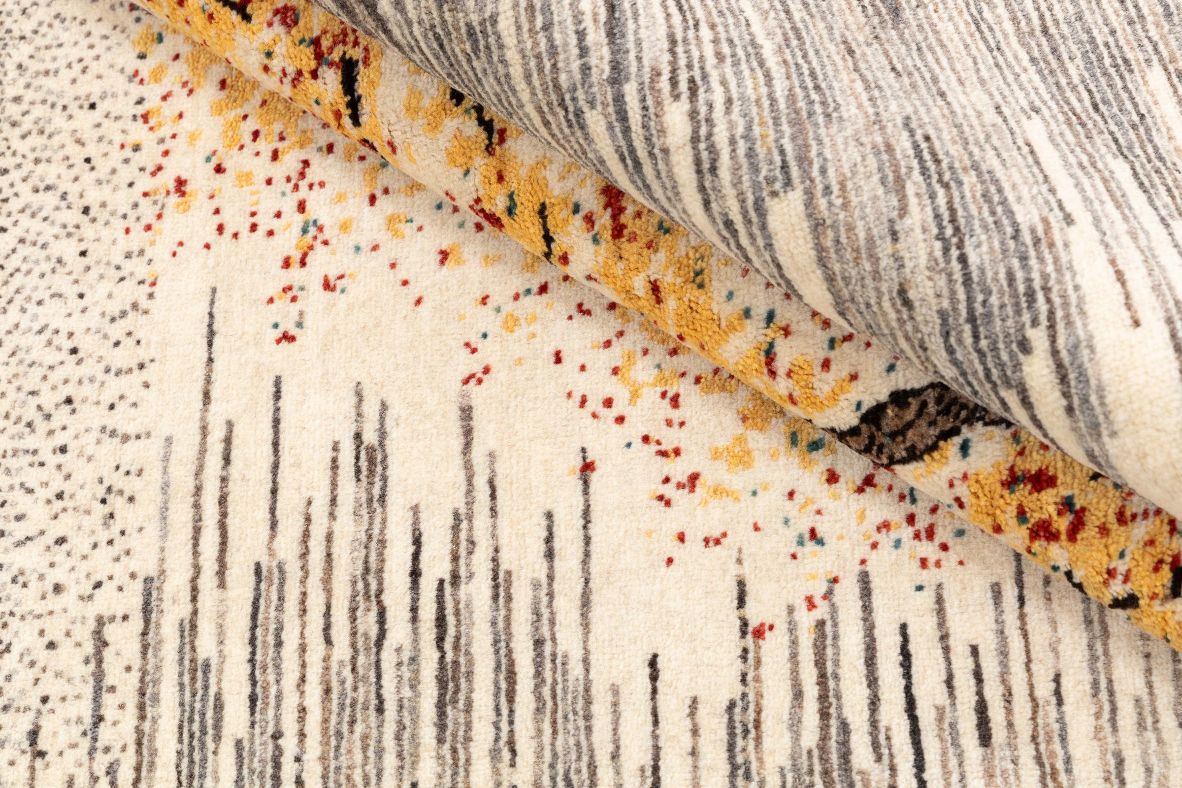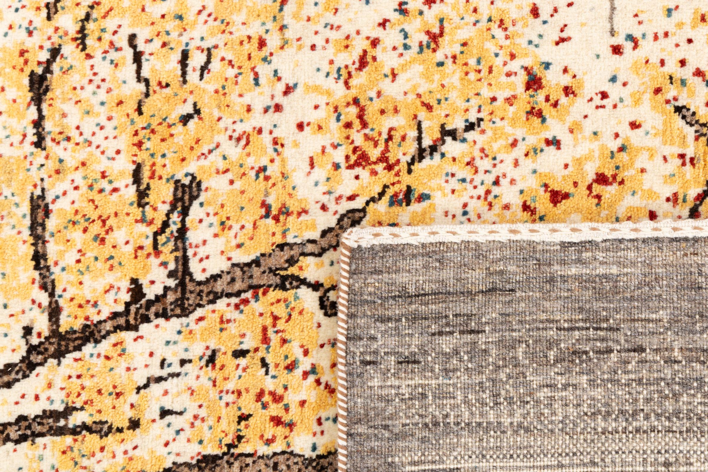 Ten piękny dywan jest perskim Gabbeh i dlatego należy do najwyższej jakości dywanów Gabbeh. Dywany są wiązane przez nomadów lub pół-nomadzi w Iranie zgodnie z tradycyjnym rzemiosłem. Proste motywy i wzory są w większości inspirowane bezpośrednim otoczeniem nomadów. Na przykład wielbłądy, drzewa lub krzewy można znaleźć na tradycyjnych dywanach. Perskie dywany Gabbeh wykonane są z wełny pochodzącej z lokalnie hodowanych stad owiec. Wełna jest więc w większości przypadków nadal obracana ręcznie. Tak więc każdy z tych orientalnych dywanów uosabia unikalny charakter wielowiekowej kultury.