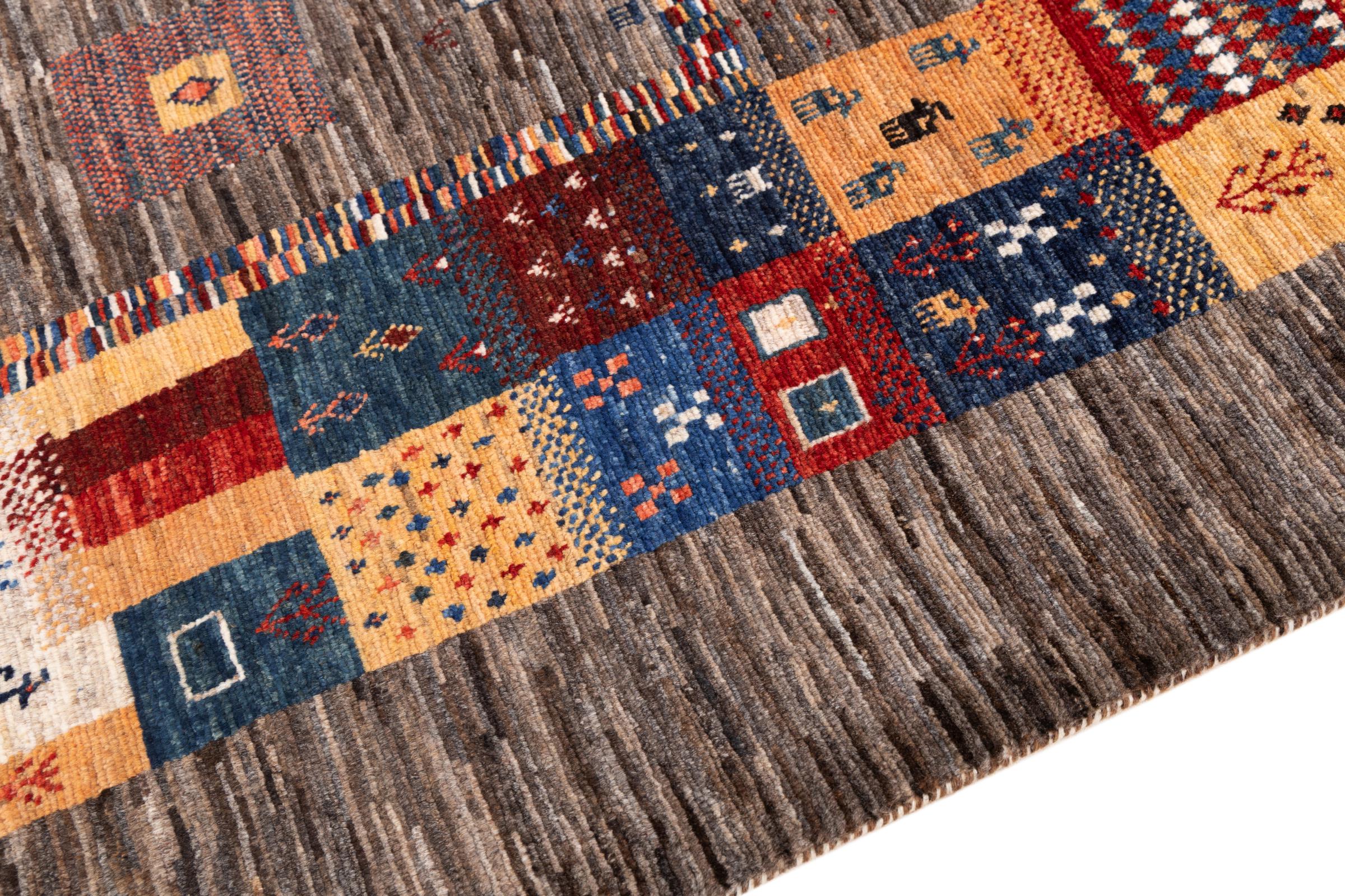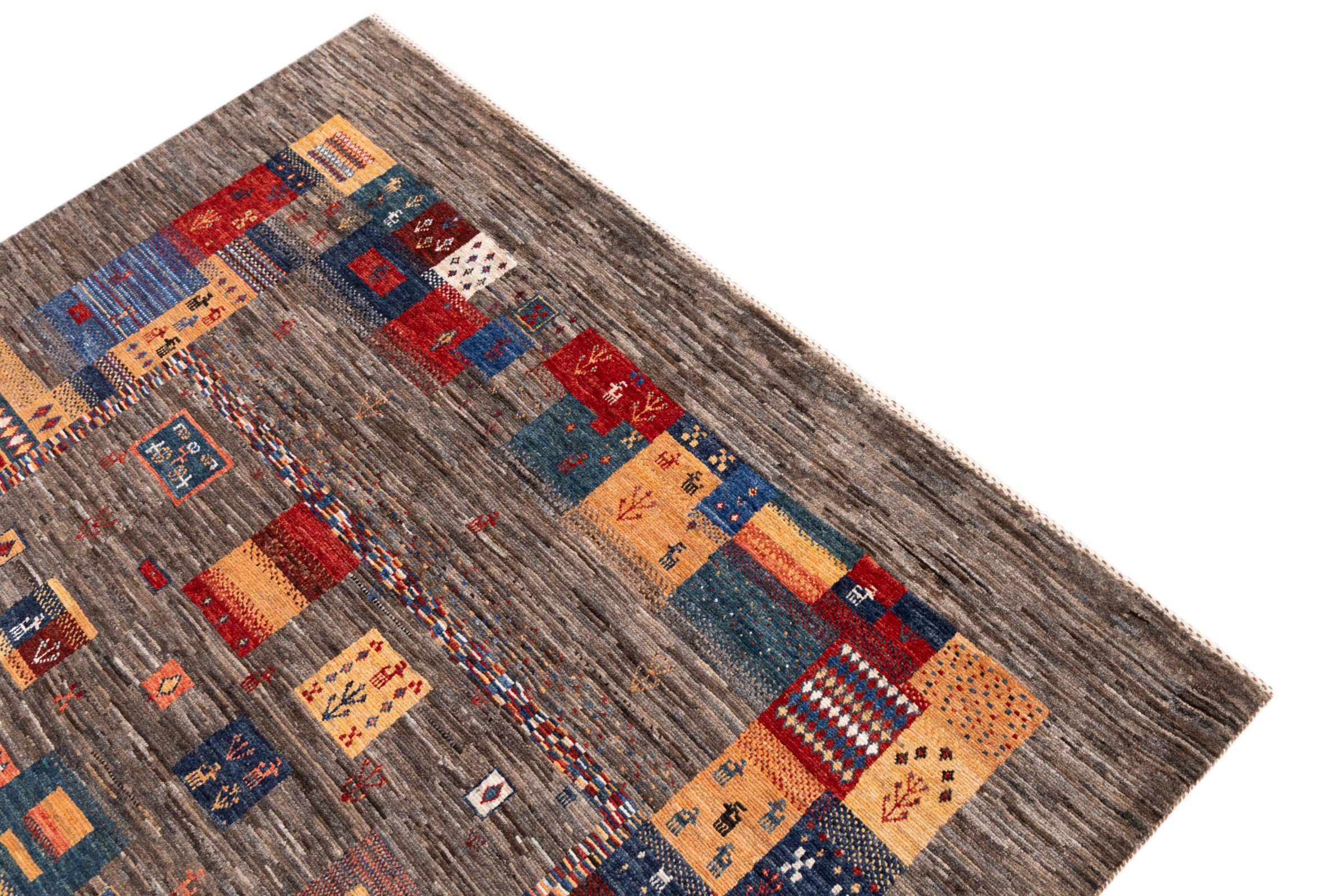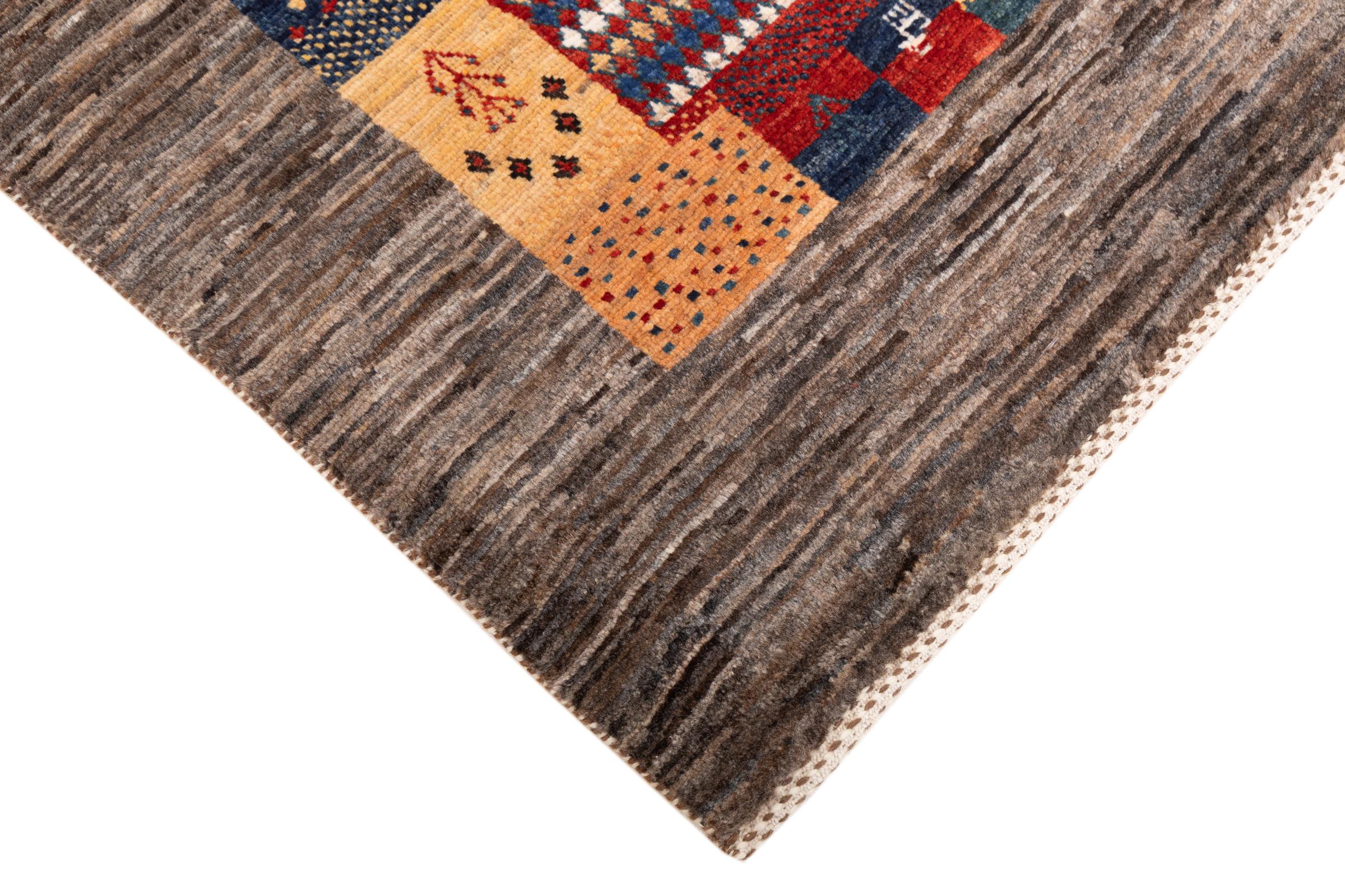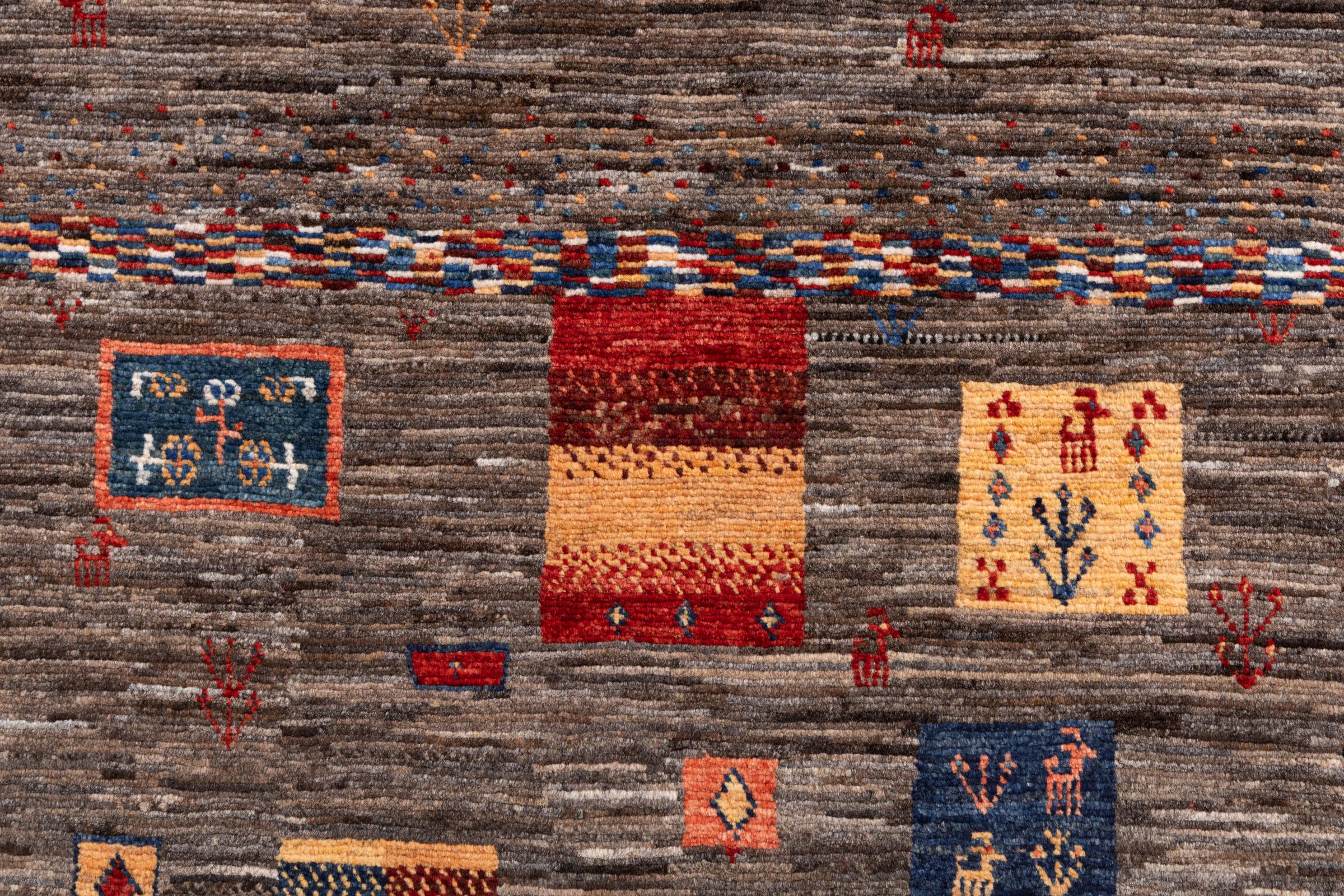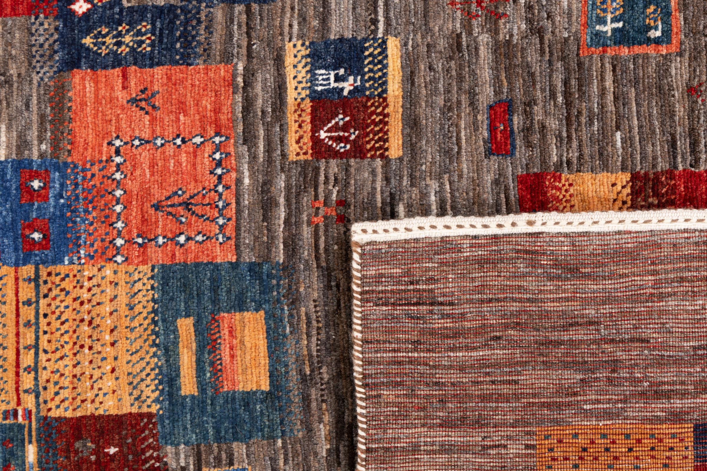Ten piękny dywan jest perskim Gabbeh i dlatego należy do najwyższej jakości dywanów Gabbeh. Dywany są wiązane przez nomadów lub pół-nomadzi w Iranie zgodnie z tradycyjnym rzemiosłem. Proste motywy i wzory są w większości inspirowane bezpośrednim otoczeniem nomadów. Na przykład wielbłądy, drzewa lub krzewy można znaleźć na tradycyjnych dywanach. Perskie dywany Gabbeh wykonane są z wełny pochodzącej z lokalnie hodowanych stad owiec. Wełna jest więc w większości przypadków nadal obracana ręcznie. Tak więc każdy z tych orientalnych dywanów uosabia unikalny charakter wielowiekowej kultury.