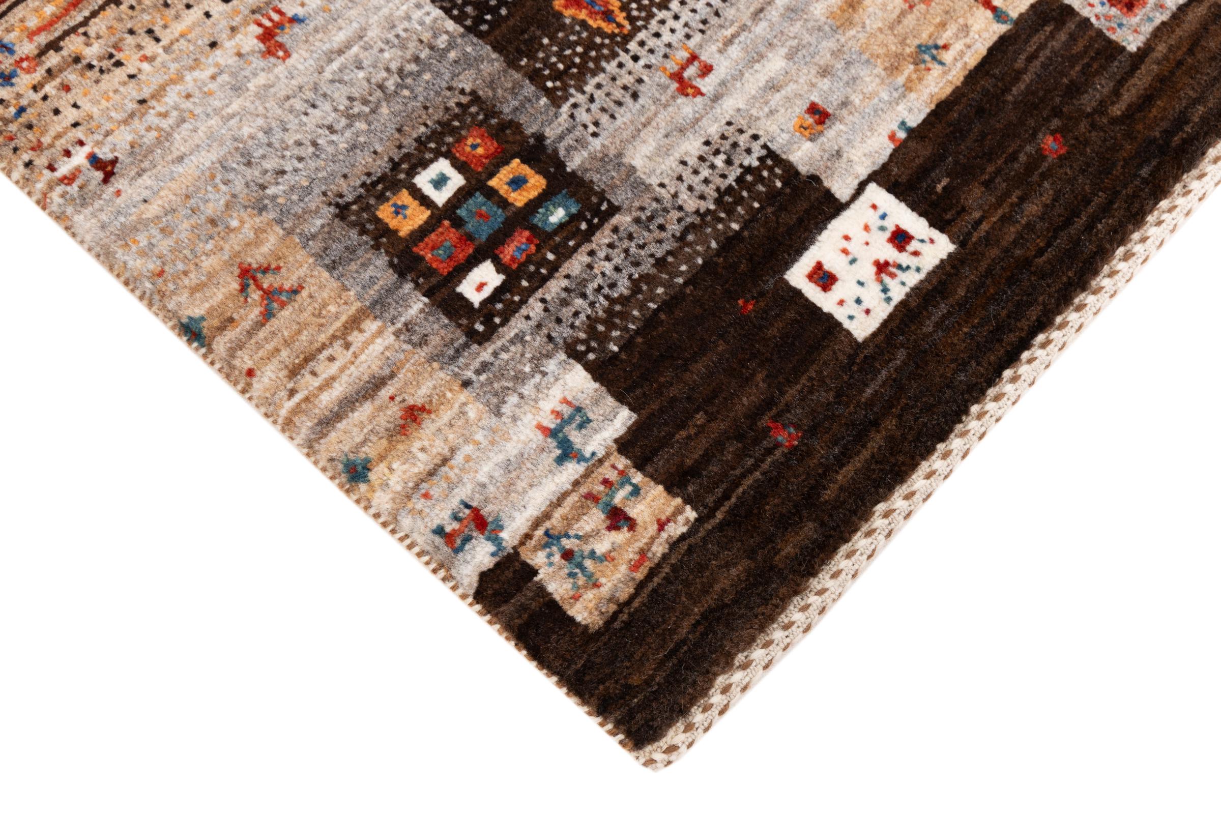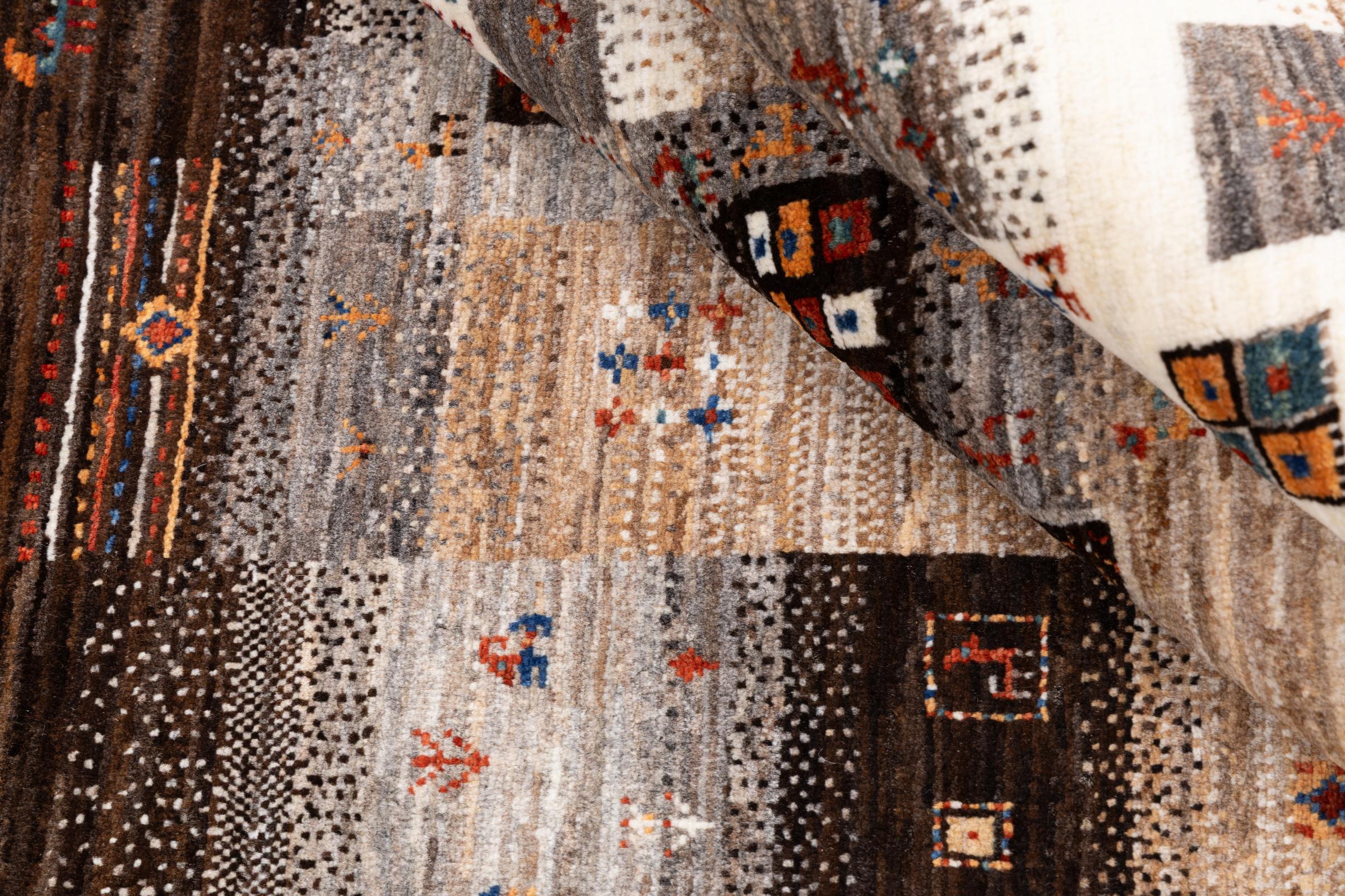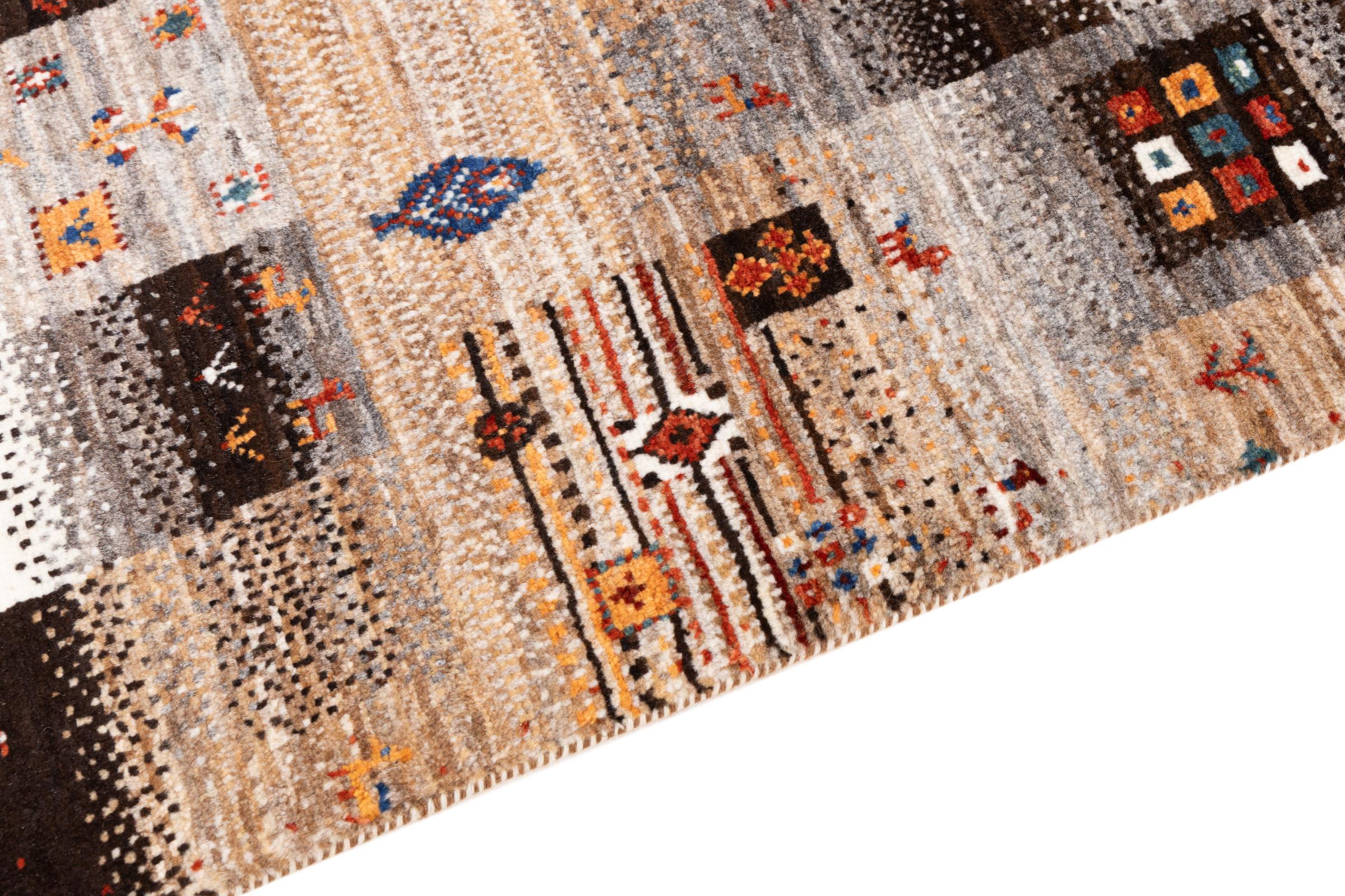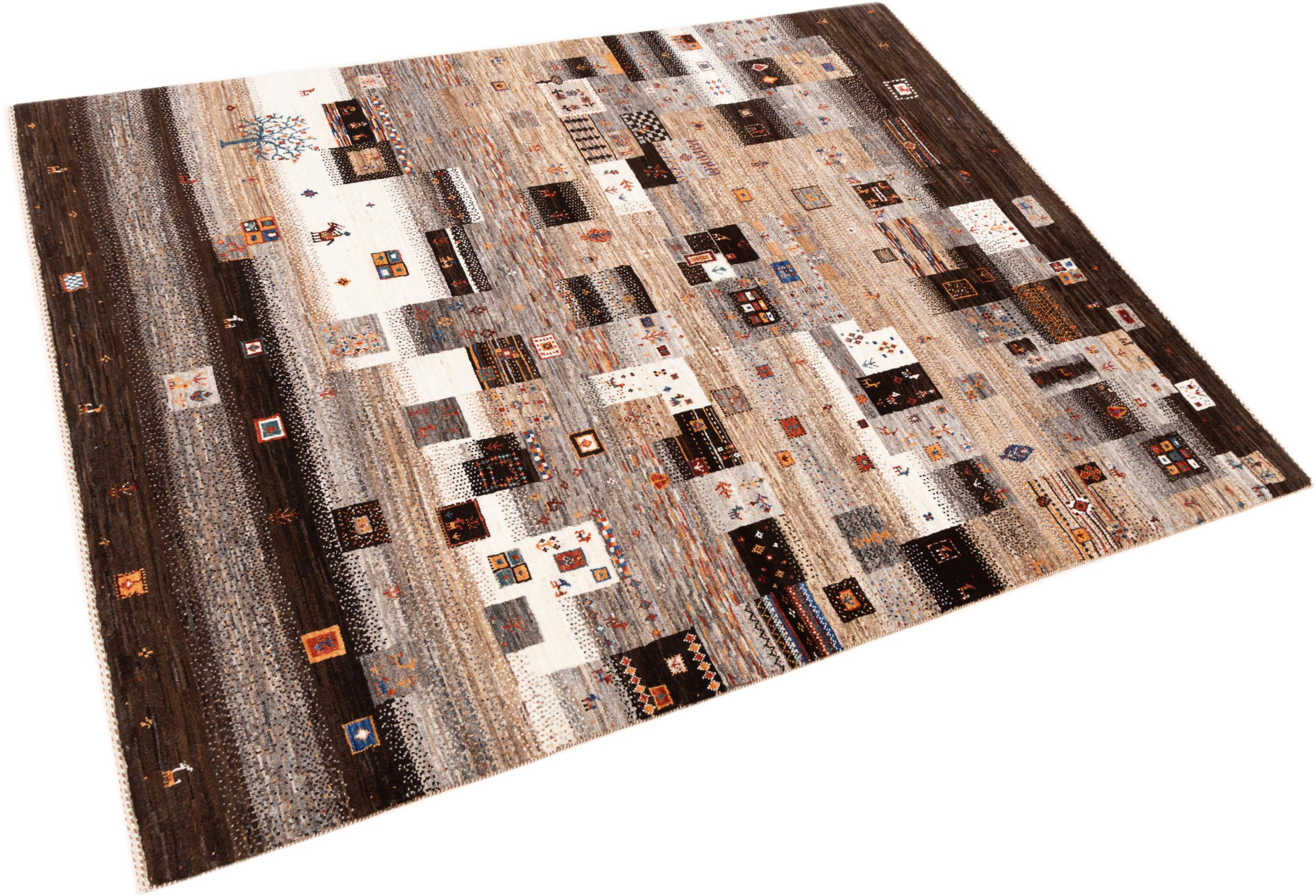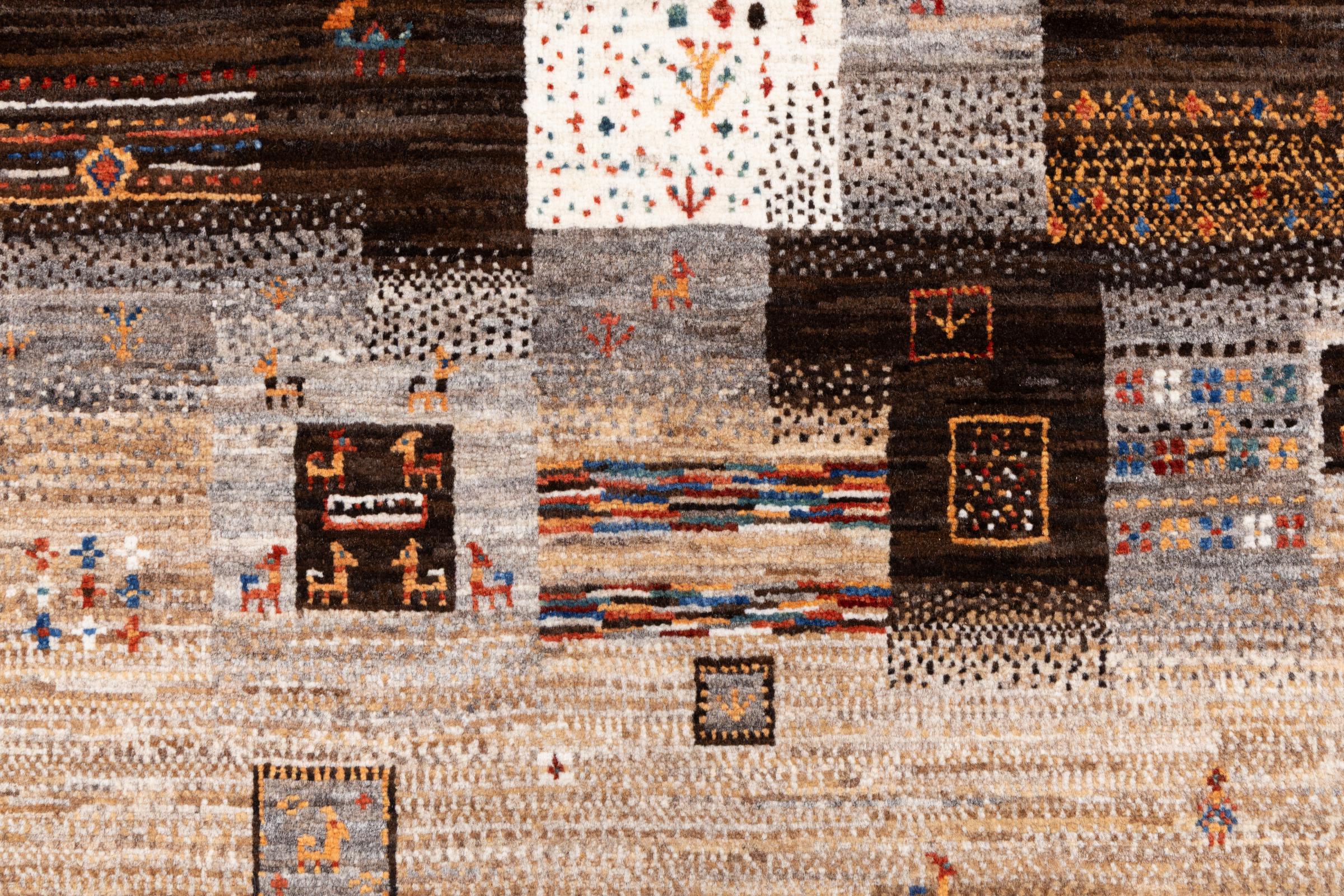 Ten piękny dywan jest perskim Gabbeh i dlatego należy do najwyższej jakości dywanów Gabbeh. Dywany są wiązane przez nomadów lub pół-nomadzi w Iranie zgodnie z tradycyjnym rzemiosłem. Proste motywy i wzory są w większości inspirowane bezpośrednim otoczeniem nomadów. Na przykład wielbłądy, drzewa lub krzewy można znaleźć na tradycyjnych dywanach. Perskie dywany Gabbeh wykonane są z wełny pochodzącej z lokalnie hodowanych stad owiec. Wełna jest więc w większości przypadków nadal obracana ręcznie. Tak więc każdy z tych orientalnych dywanów uosabia unikalny charakter wielowiekowej kultury.