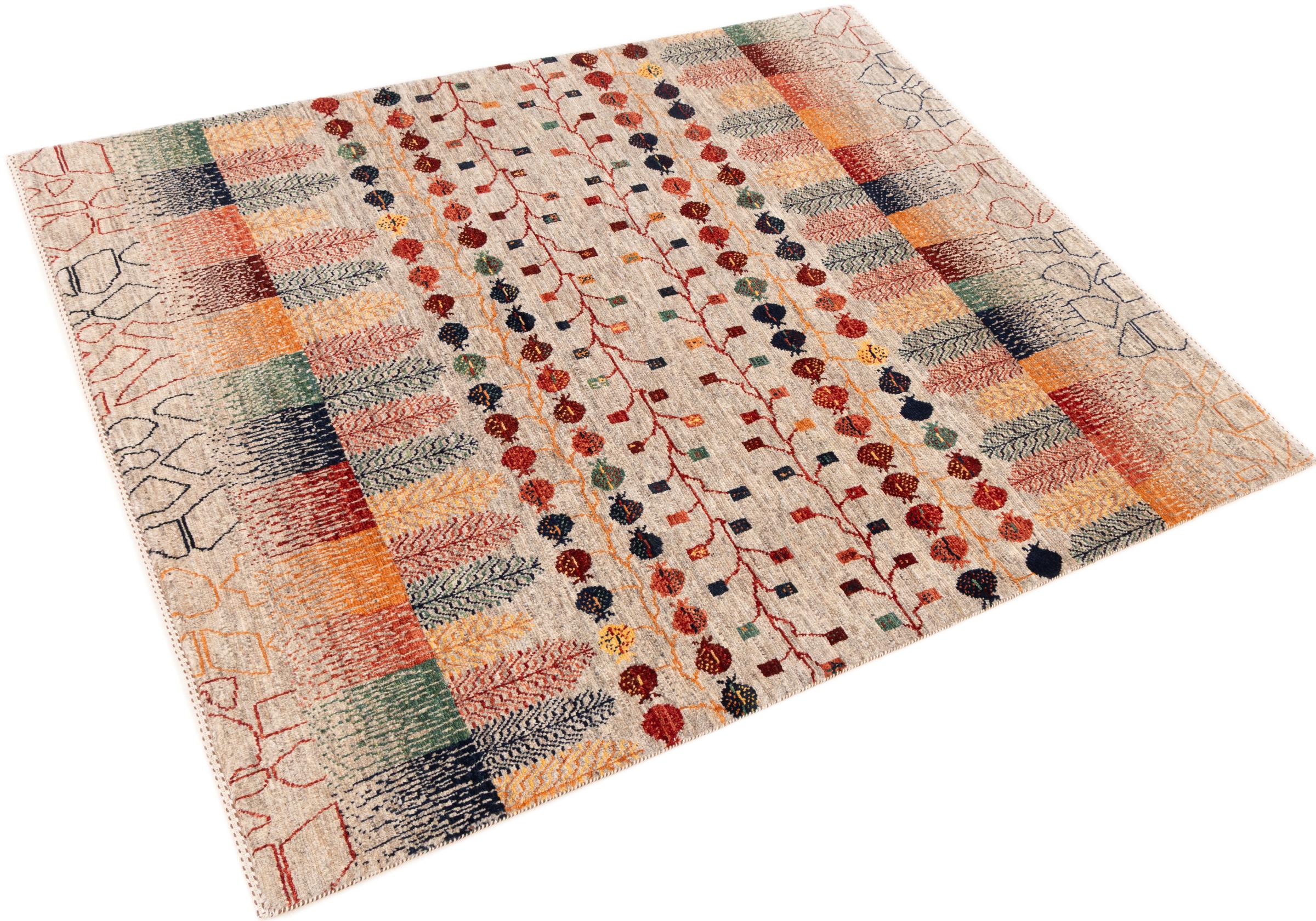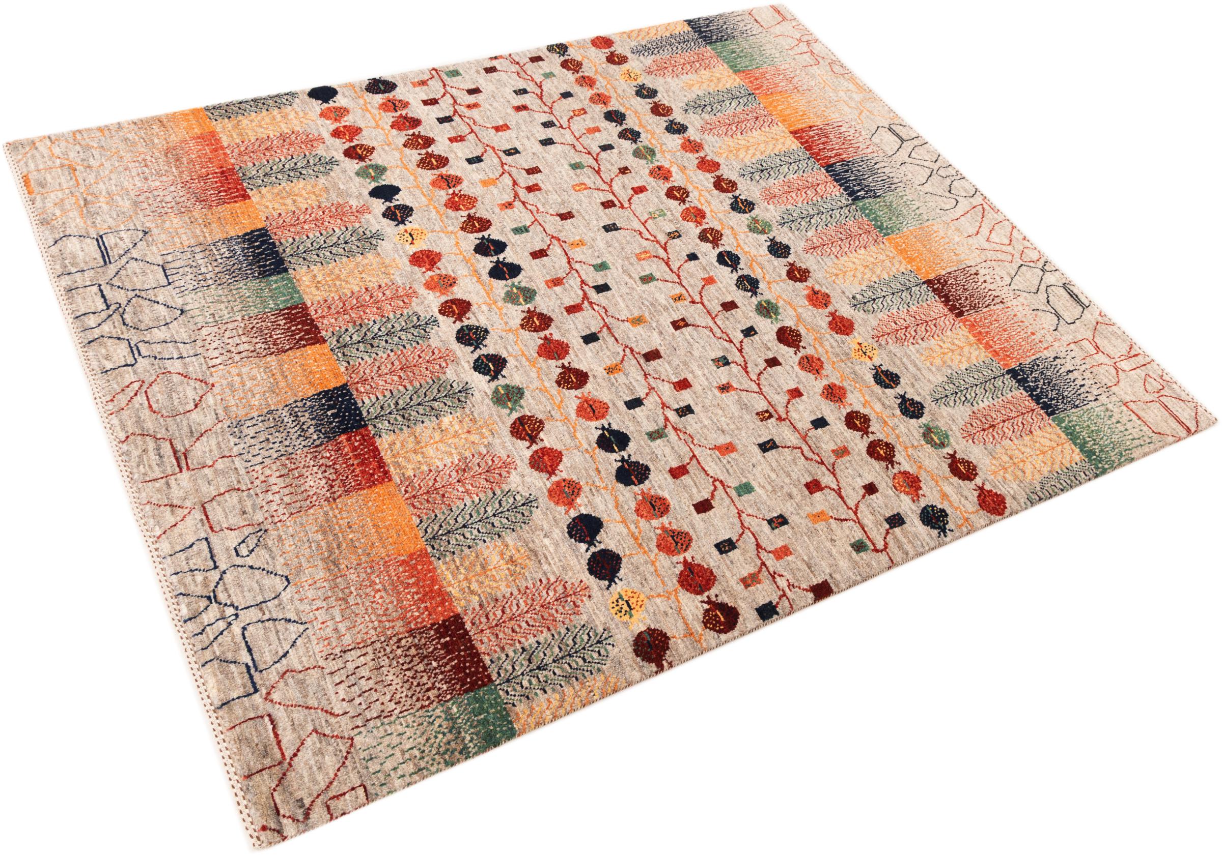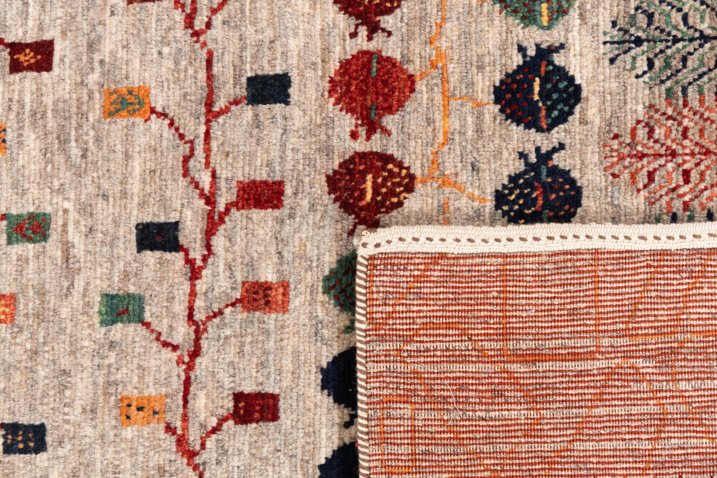 Ten piękny dywan jest perskim Gabbeh i dlatego należy do najwyższej jakości dywanów Gabbeh. Dywany są wiązane przez nomadów lub pół-nomadzi w Iranie zgodnie z tradycyjnym rzemiosłem. Proste motywy i wzory są w większości inspirowane bezpośrednim otoczeniem nomadów. Na przykład wielbłądy, drzewa lub krzewy można znaleźć na tradycyjnych dywanach. Perskie dywany Gabbeh wykonane są z wełny pochodzącej z lokalnie hodowanych stad owiec. Wełna jest więc w większości przypadków nadal obracana ręcznie. Tak więc każdy z tych orientalnych dywanów uosabia unikalny charakter wielowiekowej kultury.