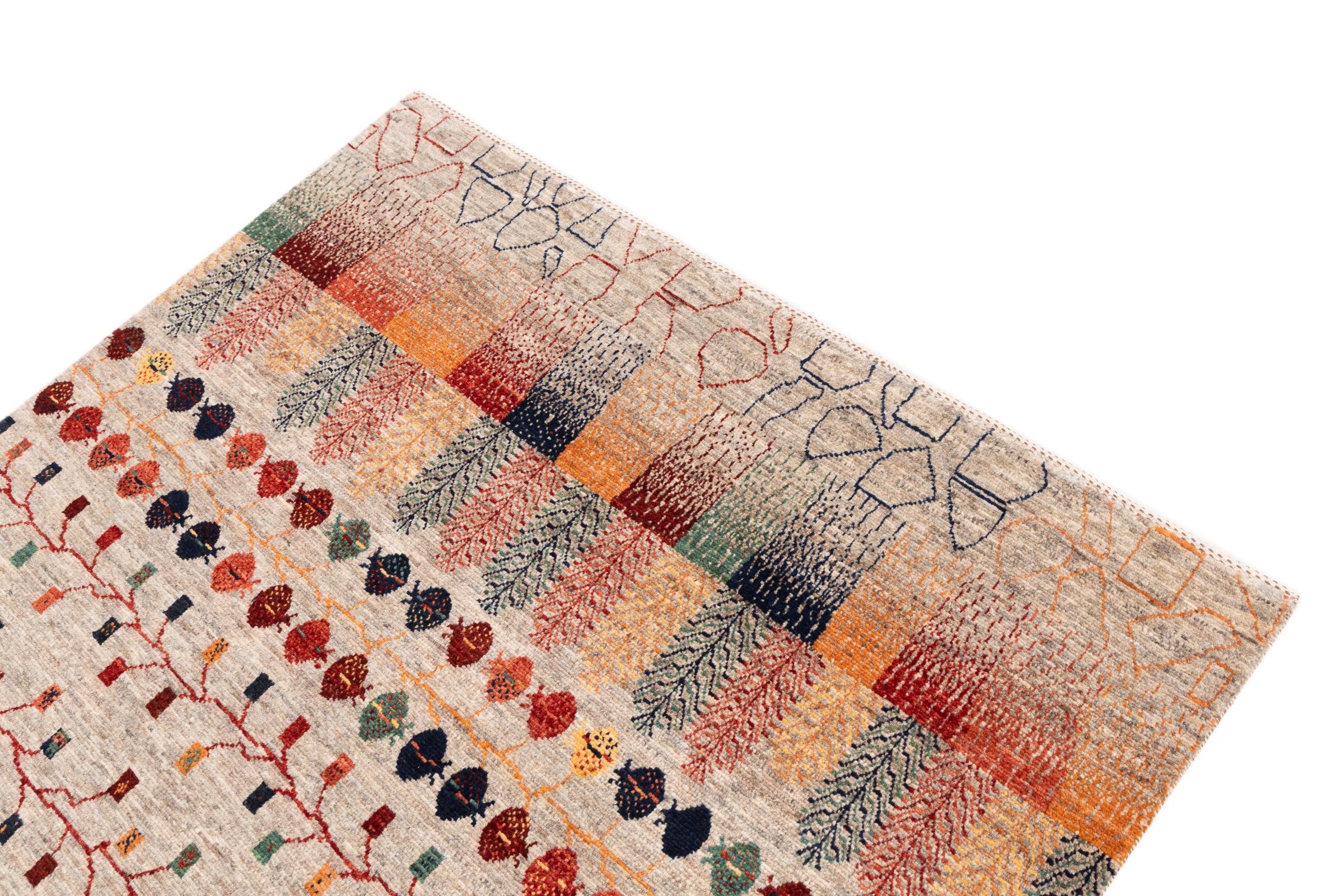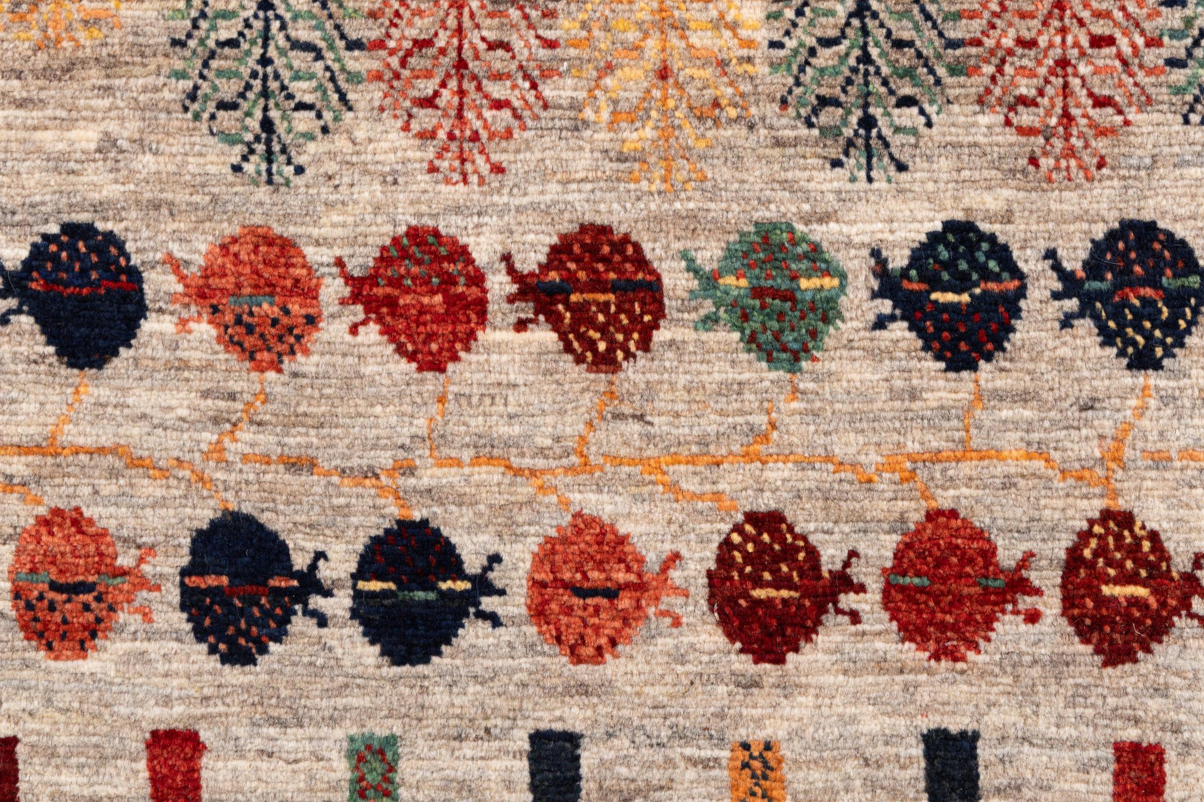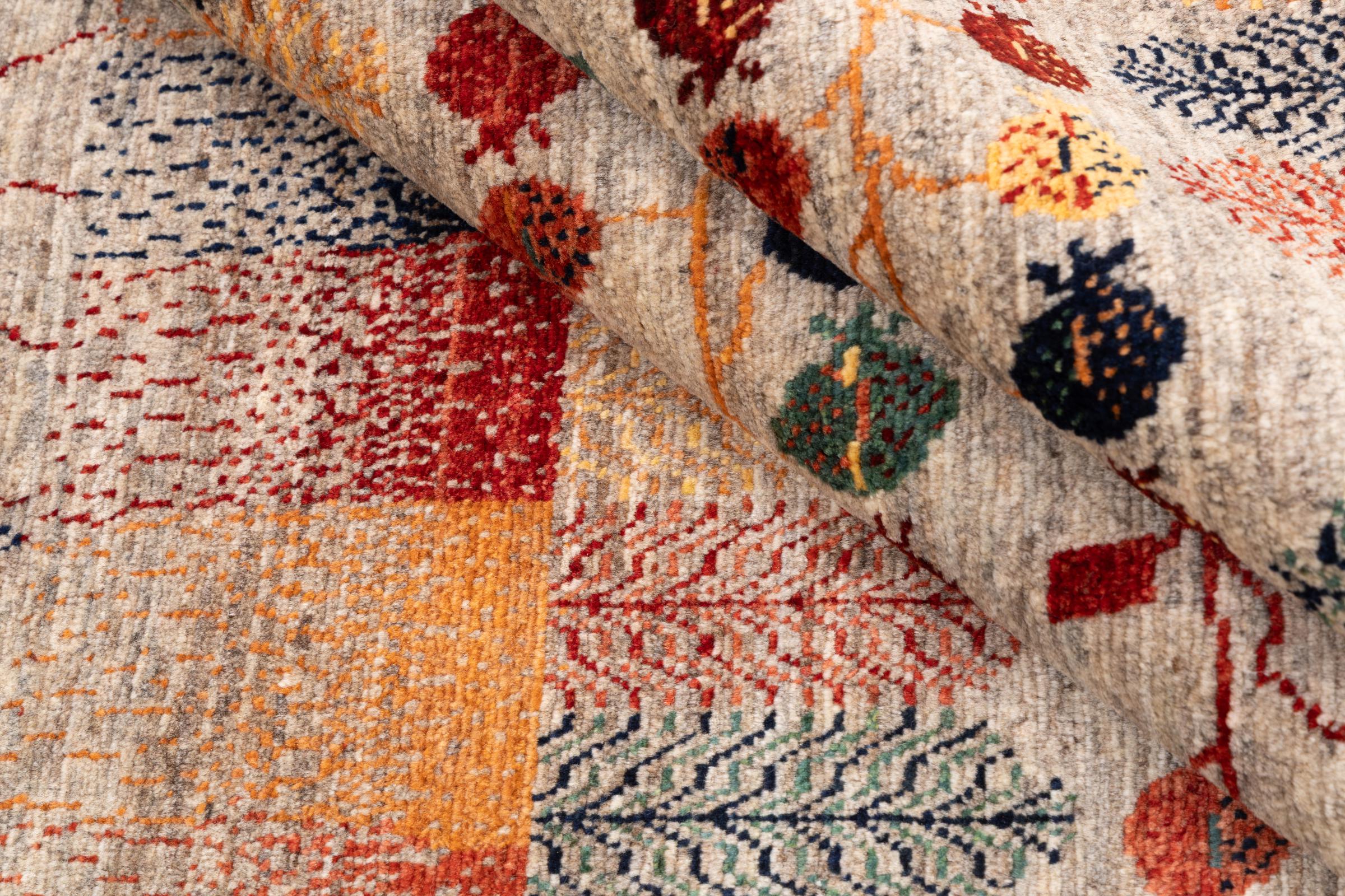 Ten piękny dywan jest perskim Gabbeh i dlatego należy do najwyższej jakości dywanów Gabbeh. Dywany są wiązane przez nomadów lub pół-nomadzi w Iranie zgodnie z tradycyjnym rzemiosłem. Proste motywy i wzory są w większości inspirowane bezpośrednim otoczeniem nomadów. Na przykład wielbłądy, drzewa lub krzewy można znaleźć na tradycyjnych dywanach. Perskie dywany Gabbeh wykonane są z wełny pochodzącej z lokalnie hodowanych stad owiec. Wełna jest więc w większości przypadków nadal obracana ręcznie. Tak więc każdy z tych orientalnych dywanów uosabia unikalny charakter wielowiekowej kultury.