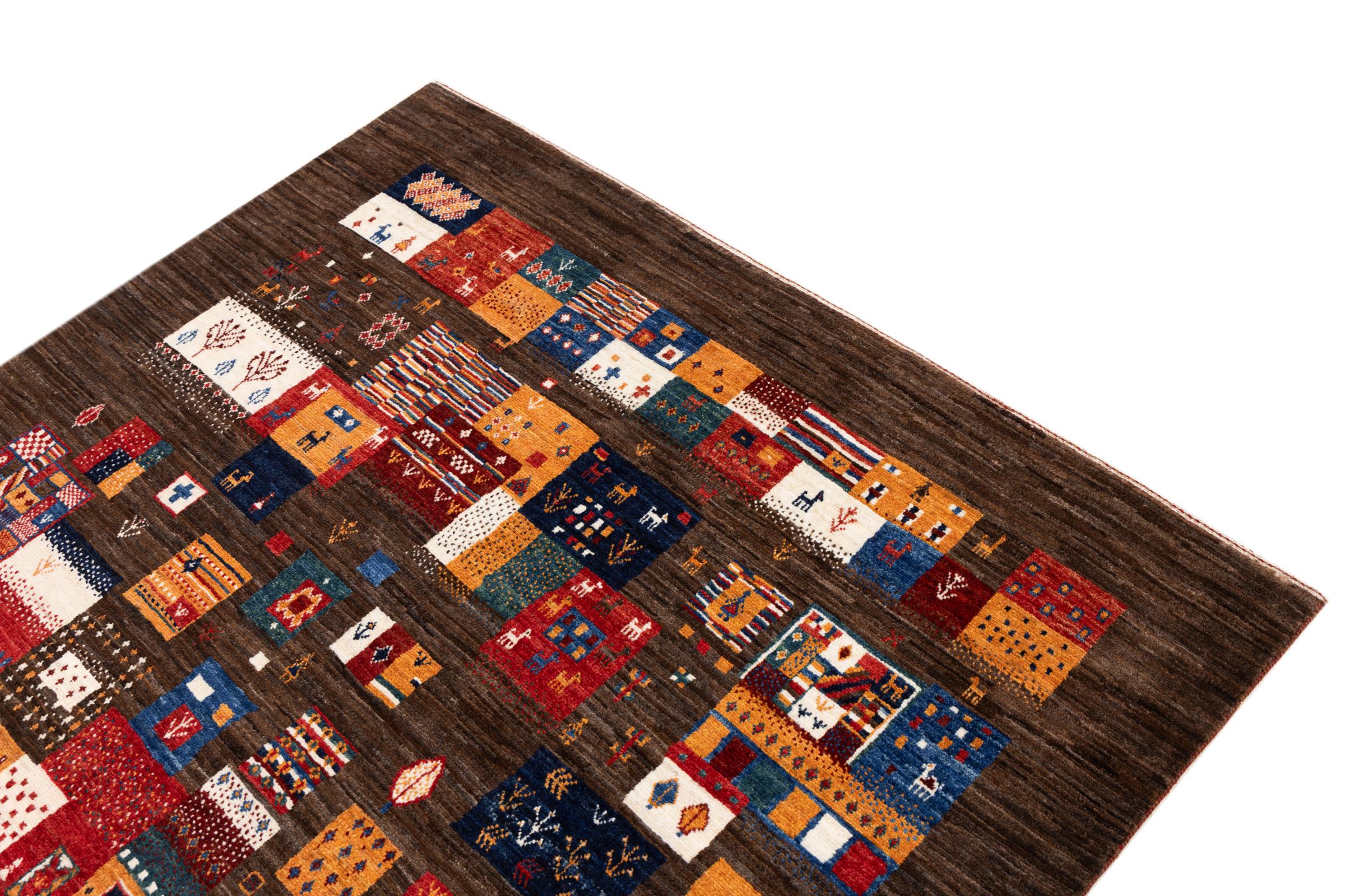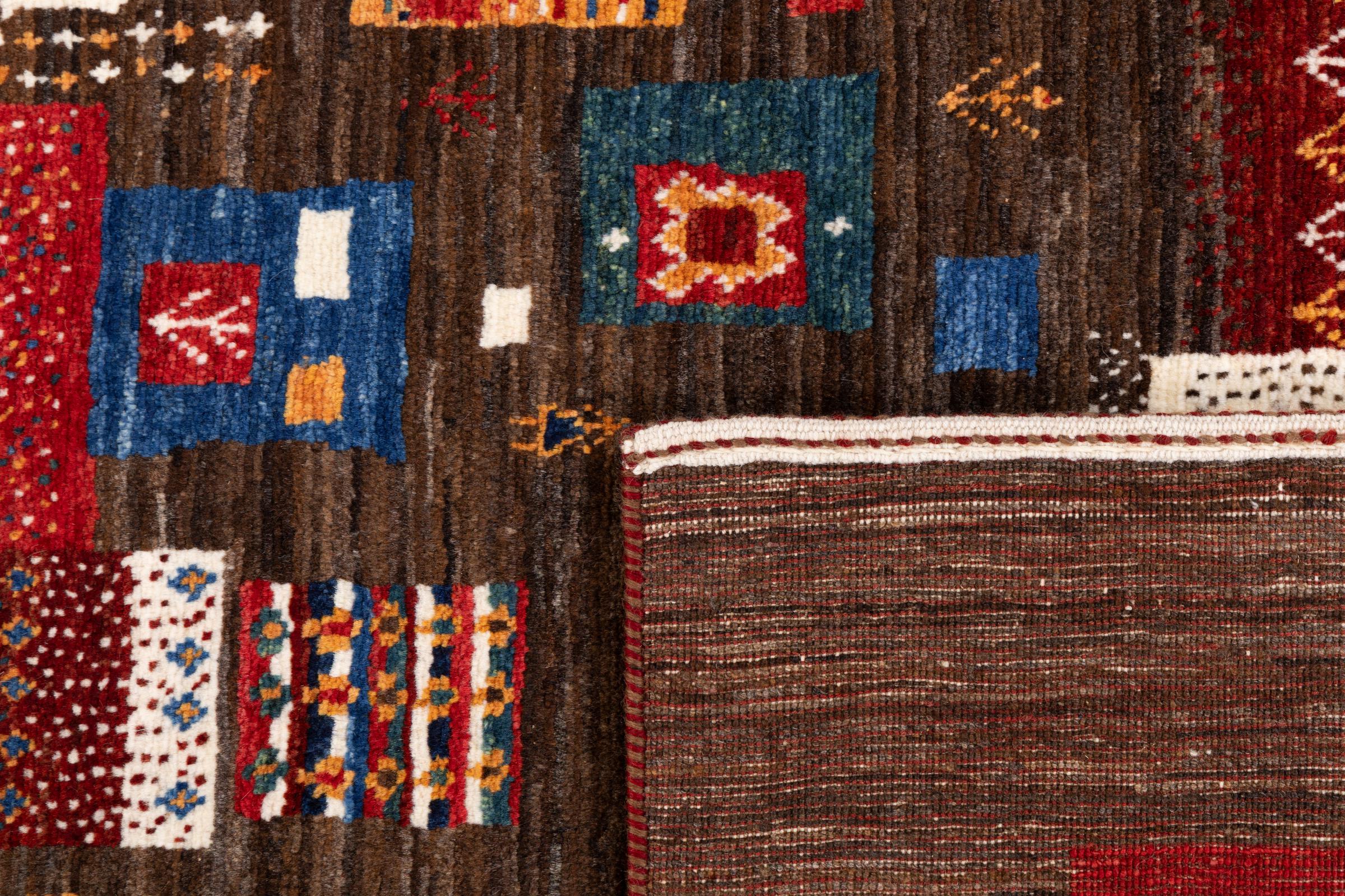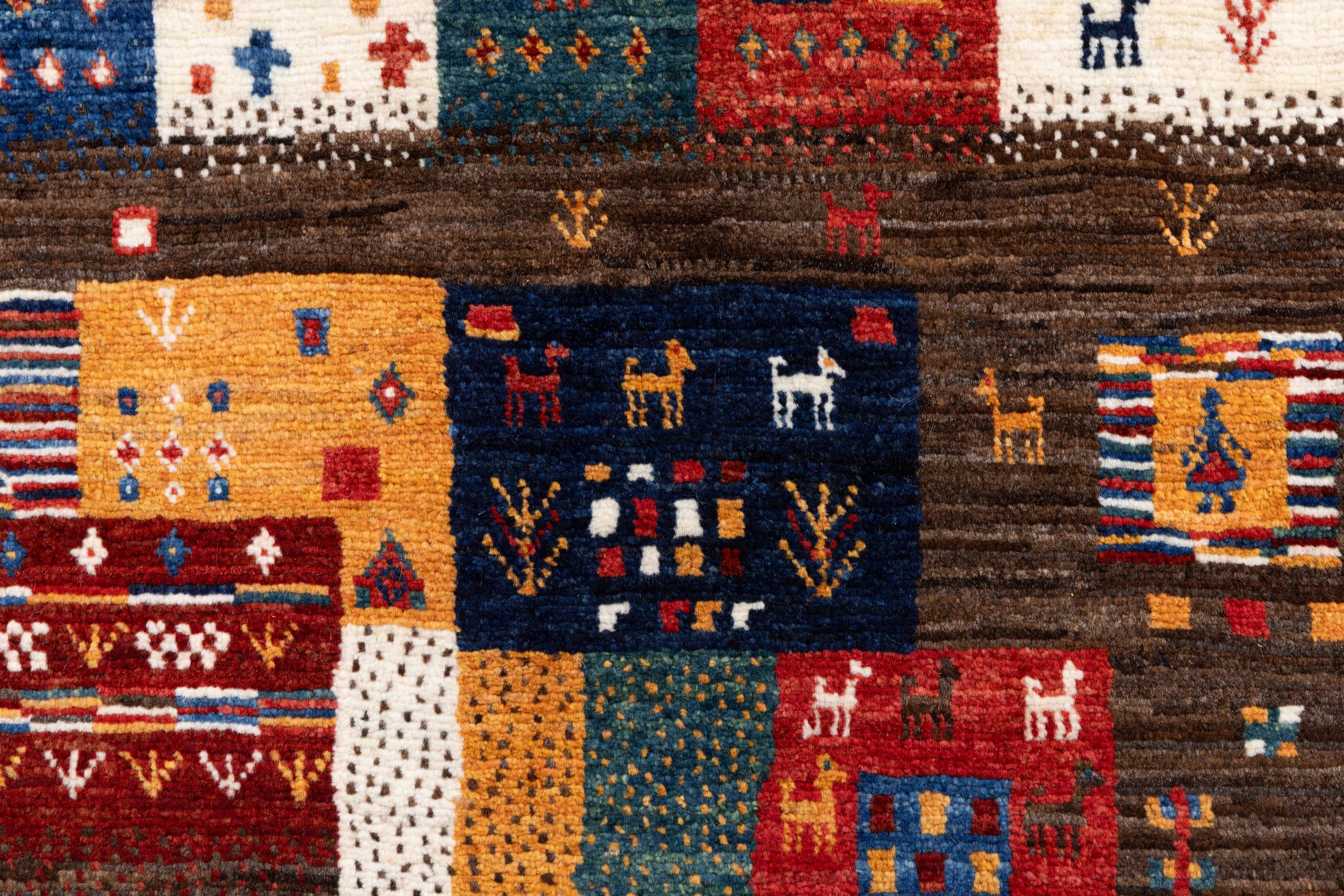 Ten piękny dywan jest perskim Gabbeh i dlatego należy do najwyższej jakości dywanów Gabbeh. Dywany są wiązane przez nomadów lub pół-nomadzi w Iranie zgodnie z tradycyjnym rzemiosłem. Proste motywy i wzory są w większości inspirowane bezpośrednim otoczeniem nomadów. Na przykład wielbłądy, drzewa lub krzewy można znaleźć na tradycyjnych dywanach. Perskie dywany Gabbeh wykonane są z wełny pochodzącej z lokalnie hodowanych stad owiec. Wełna jest więc w większości przypadków nadal obracana ręcznie. Tak więc każdy z tych orientalnych dywanów uosabia unikalny charakter wielowiekowej kultury.
