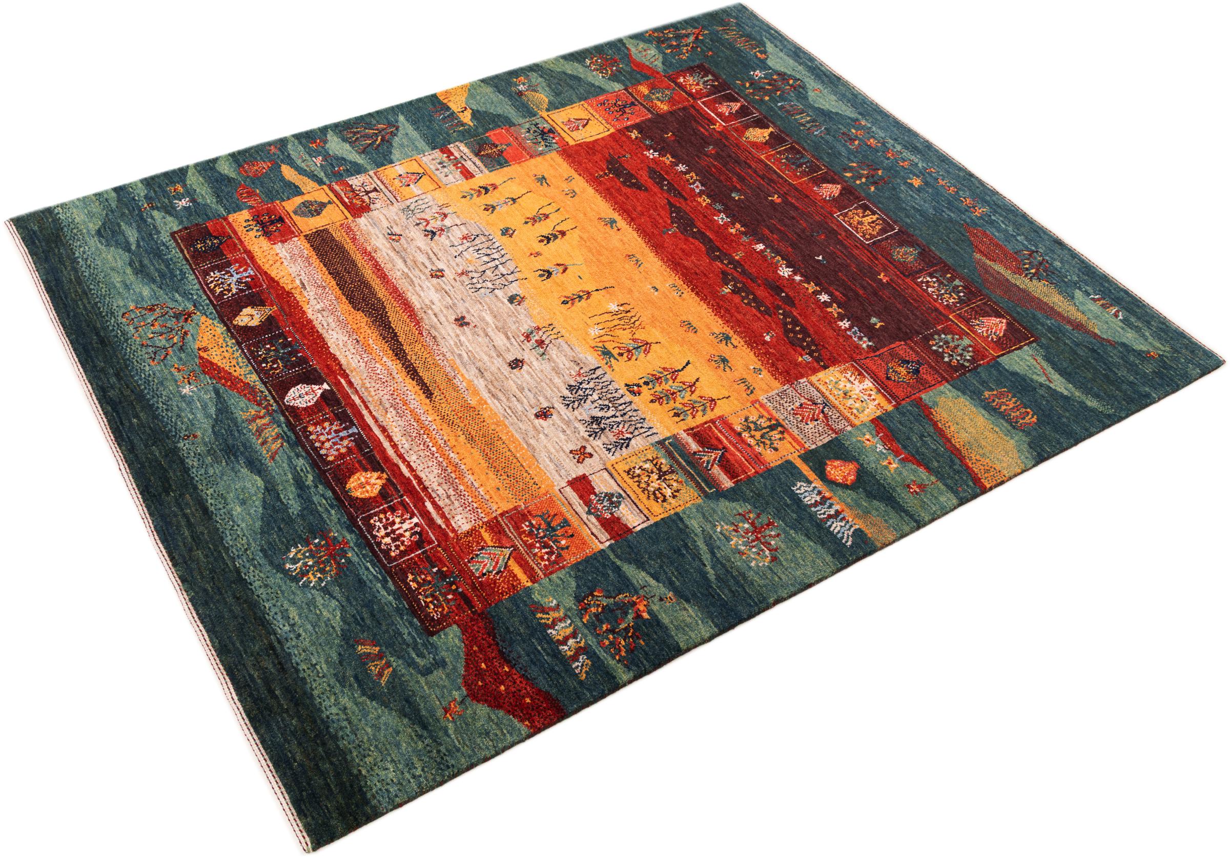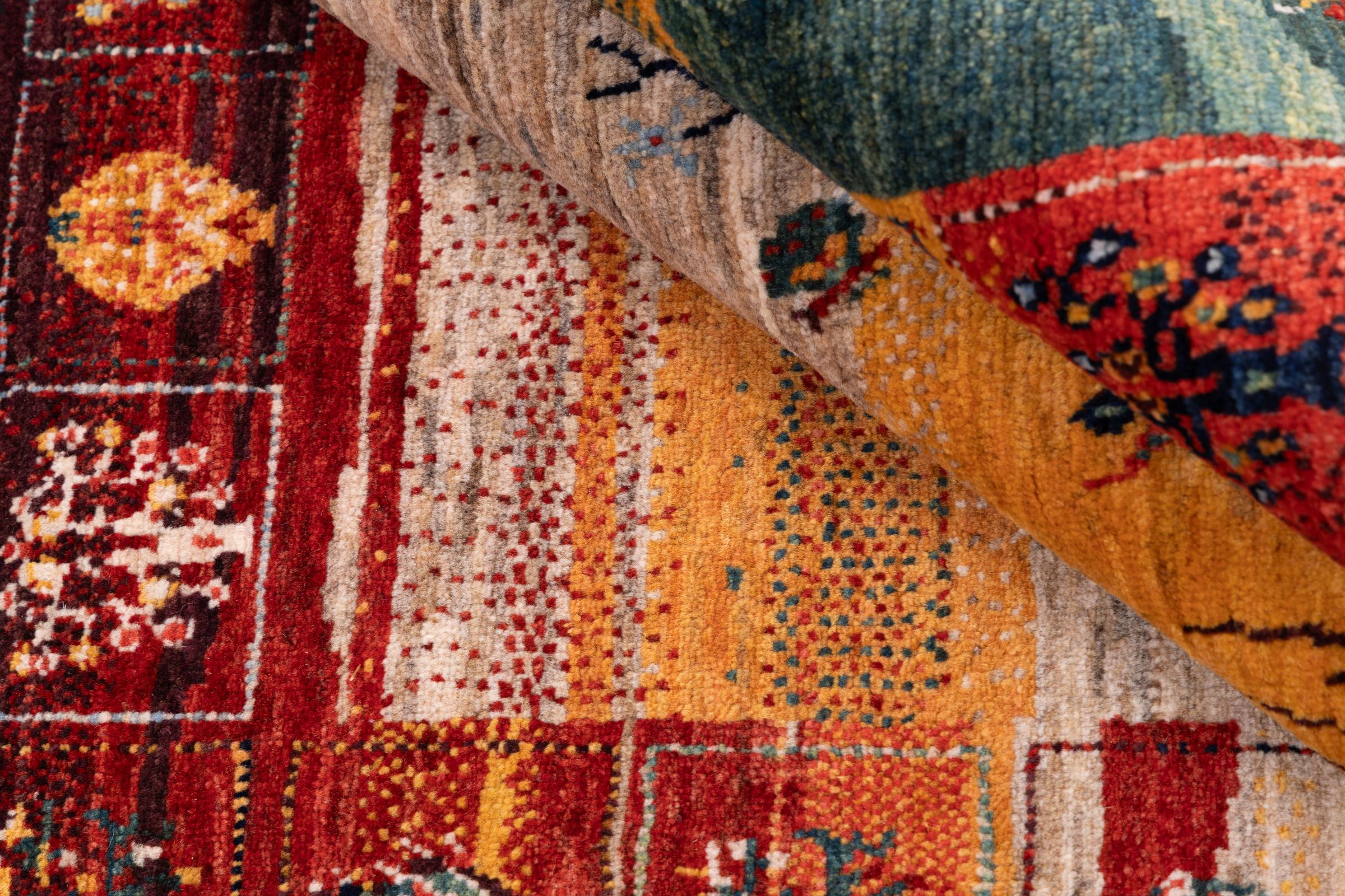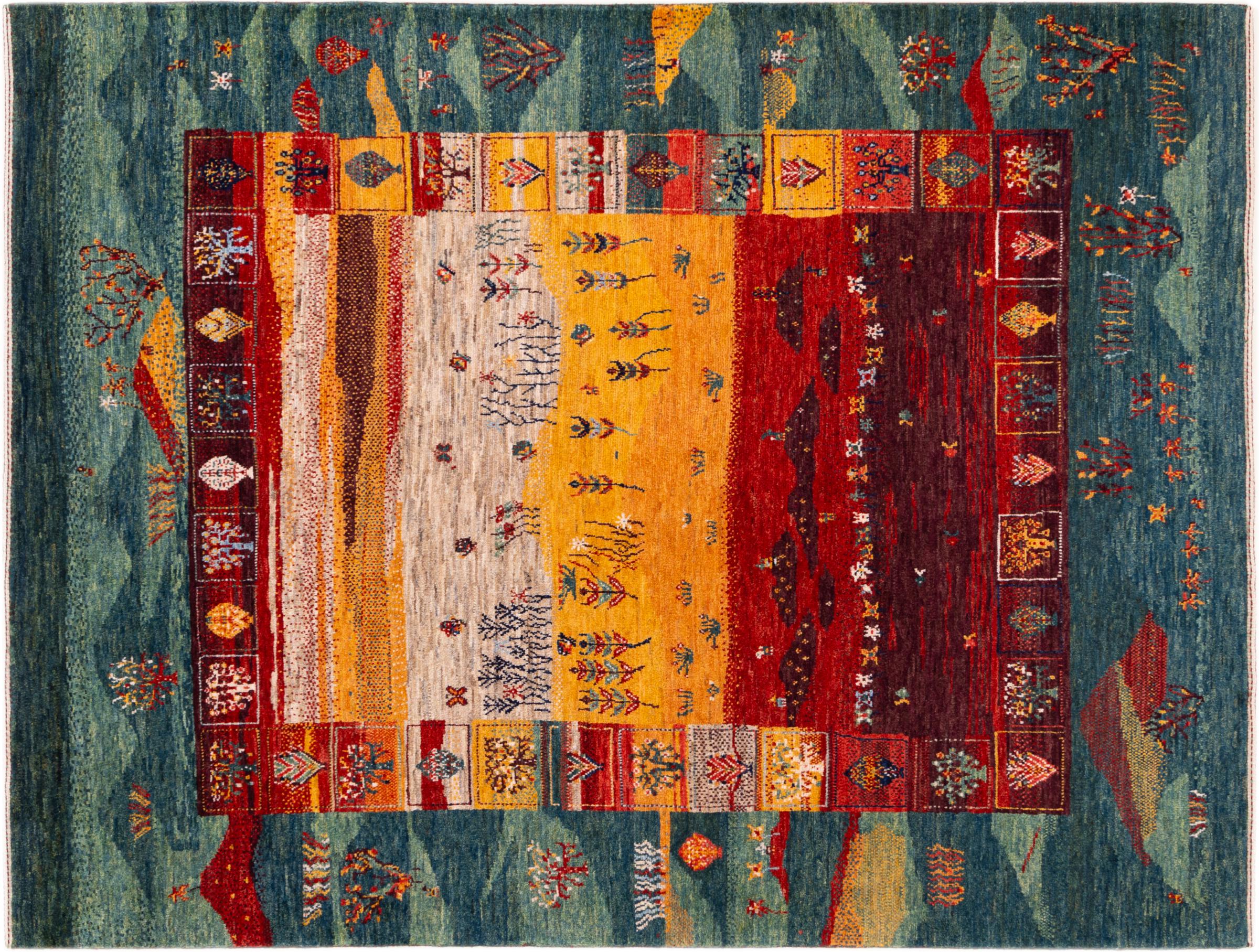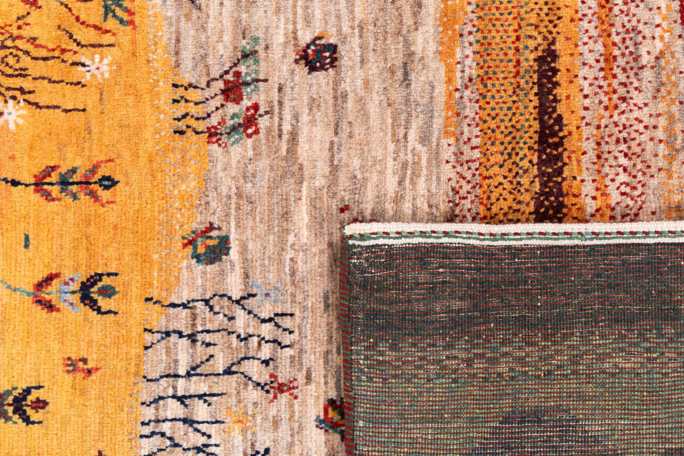 Ten piękny dywan jest perskim Gabbeh i dlatego należy do najwyższej jakości dywanów Gabbeh. Dywany są wiązane przez nomadów lub pół-nomadzi w Iranie zgodnie z tradycyjnym rzemiosłem. Proste motywy i wzory są w większości inspirowane bezpośrednim otoczeniem nomadów. Na przykład wielbłądy, drzewa lub krzewy można znaleźć na tradycyjnych dywanach. Perskie dywany Gabbeh wykonane są z wełny pochodzącej z lokalnie hodowanych stad owiec. Wełna jest więc w większości przypadków nadal obracana ręcznie. Tak więc każdy z tych orientalnych dywanów uosabia unikalny charakter wielowiekowej kultury.