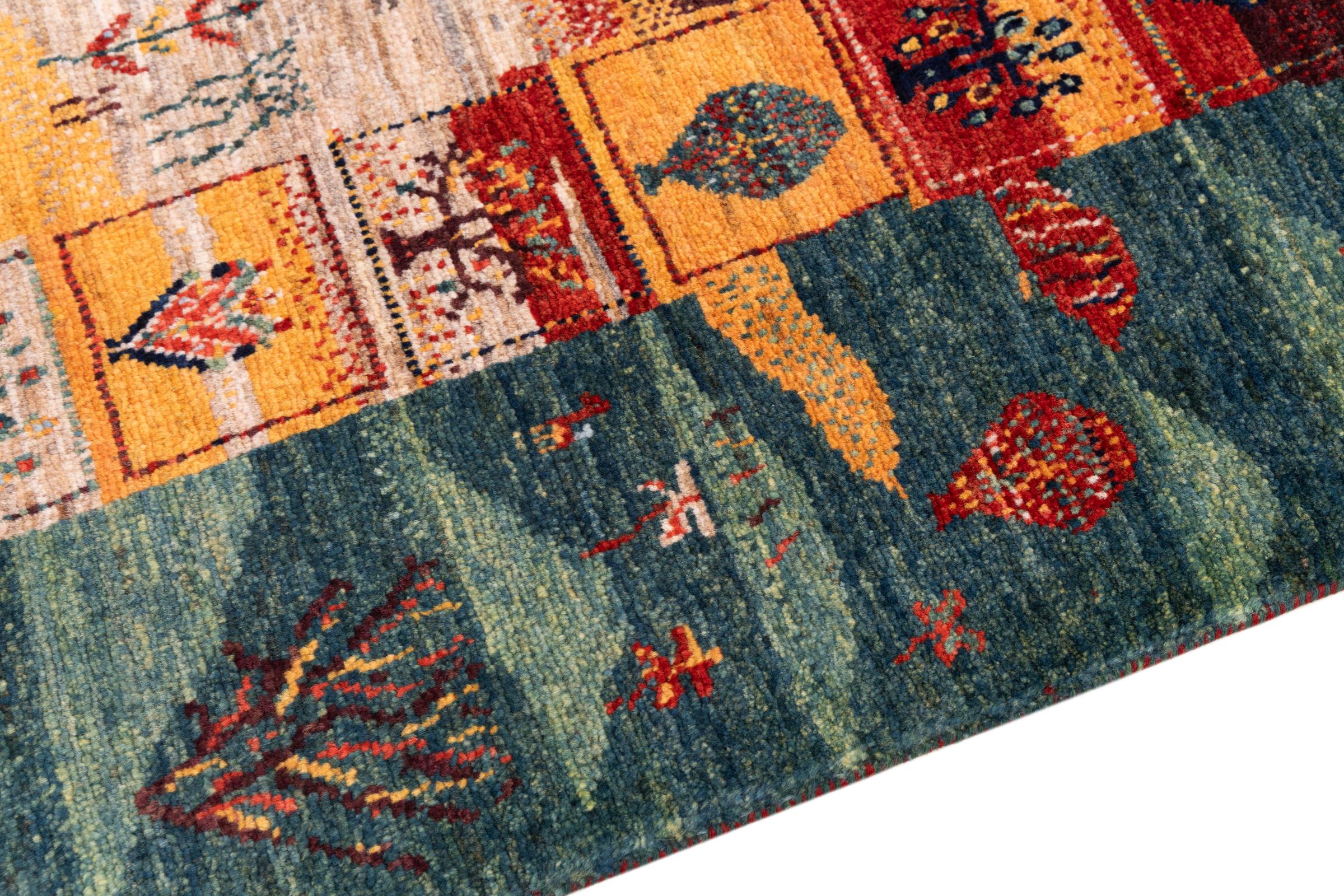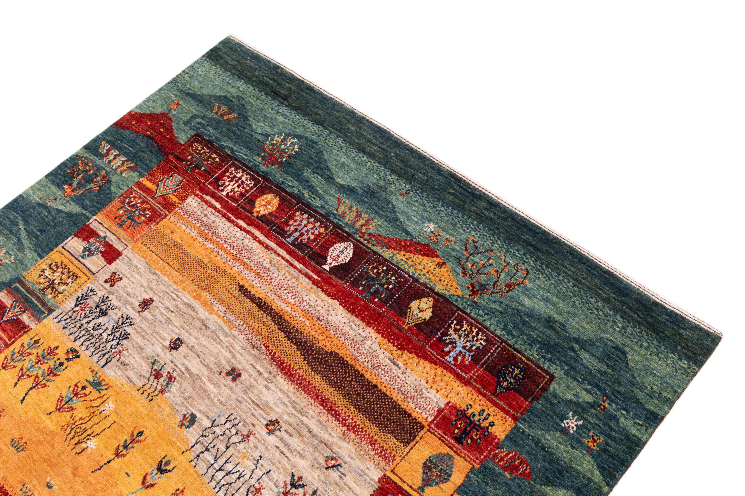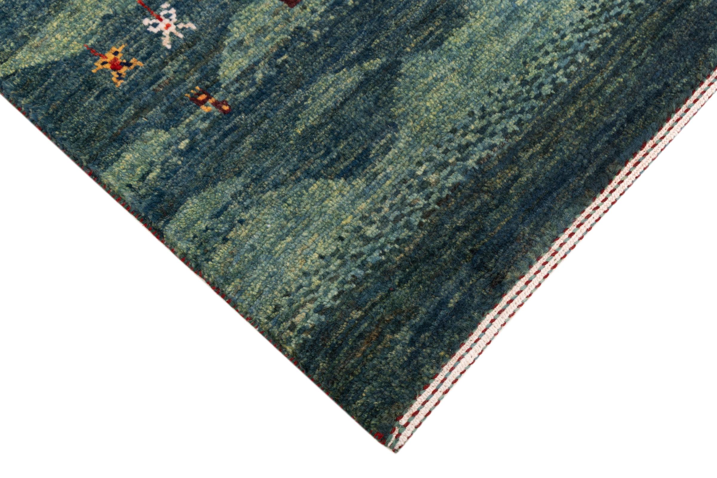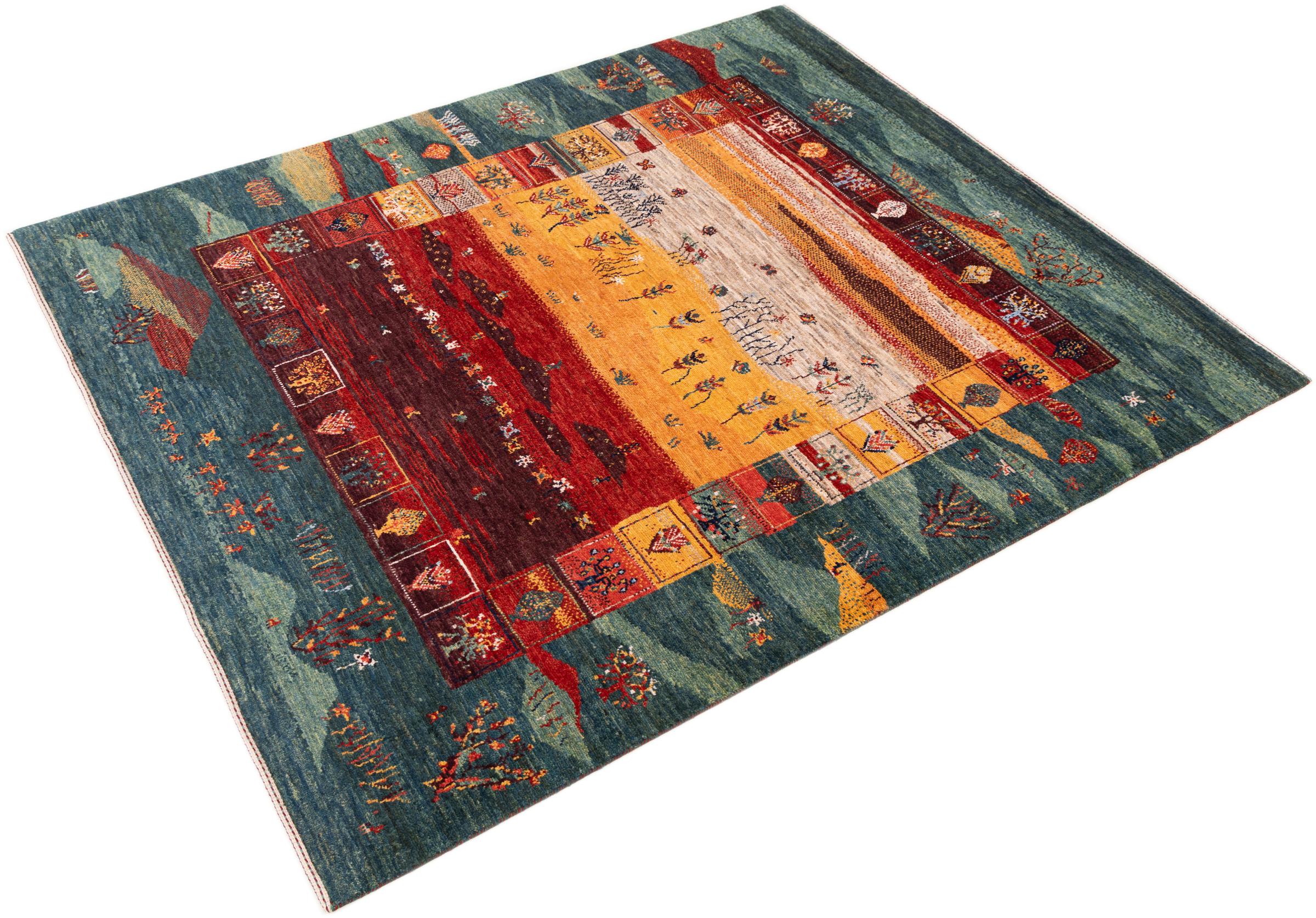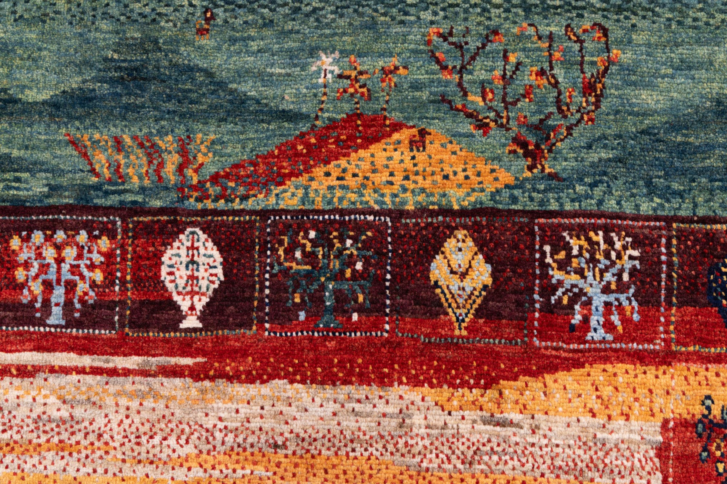 Ten piękny dywan jest perskim Gabbeh i dlatego należy do najwyższej jakości dywanów Gabbeh. Dywany są wiązane przez nomadów lub pół-nomadzi w Iranie zgodnie z tradycyjnym rzemiosłem. Proste motywy i wzory są w większości inspirowane bezpośrednim otoczeniem nomadów. Na przykład wielbłądy, drzewa lub krzewy można znaleźć na tradycyjnych dywanach. Perskie dywany Gabbeh wykonane są z wełny pochodzącej z lokalnie hodowanych stad owiec. Wełna jest więc w większości przypadków nadal obracana ręcznie. Tak więc każdy z tych orientalnych dywanów uosabia unikalny charakter wielowiekowej kultury.