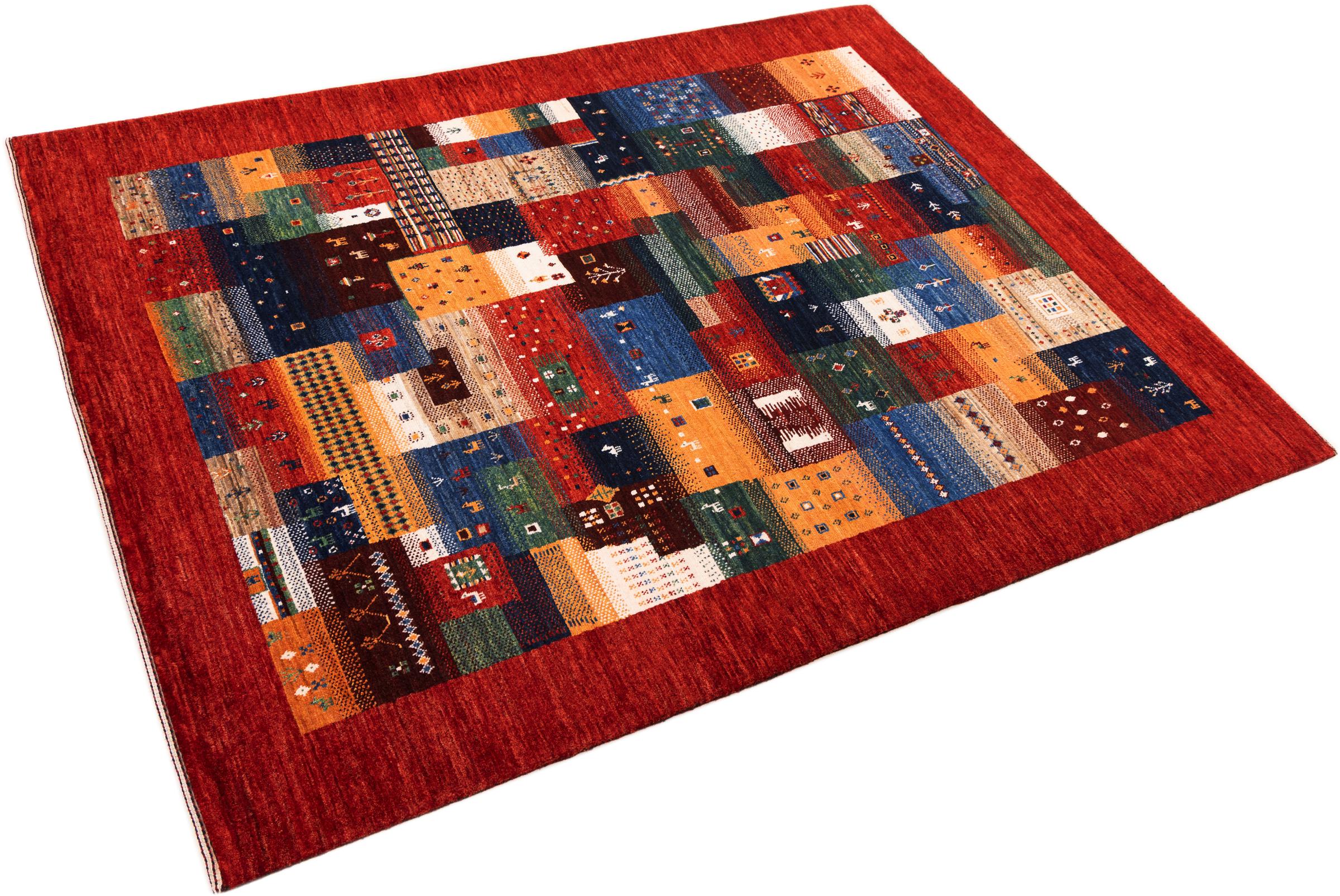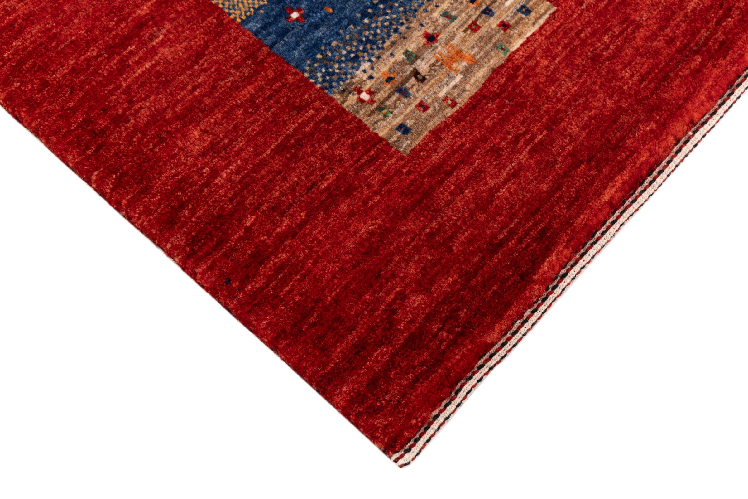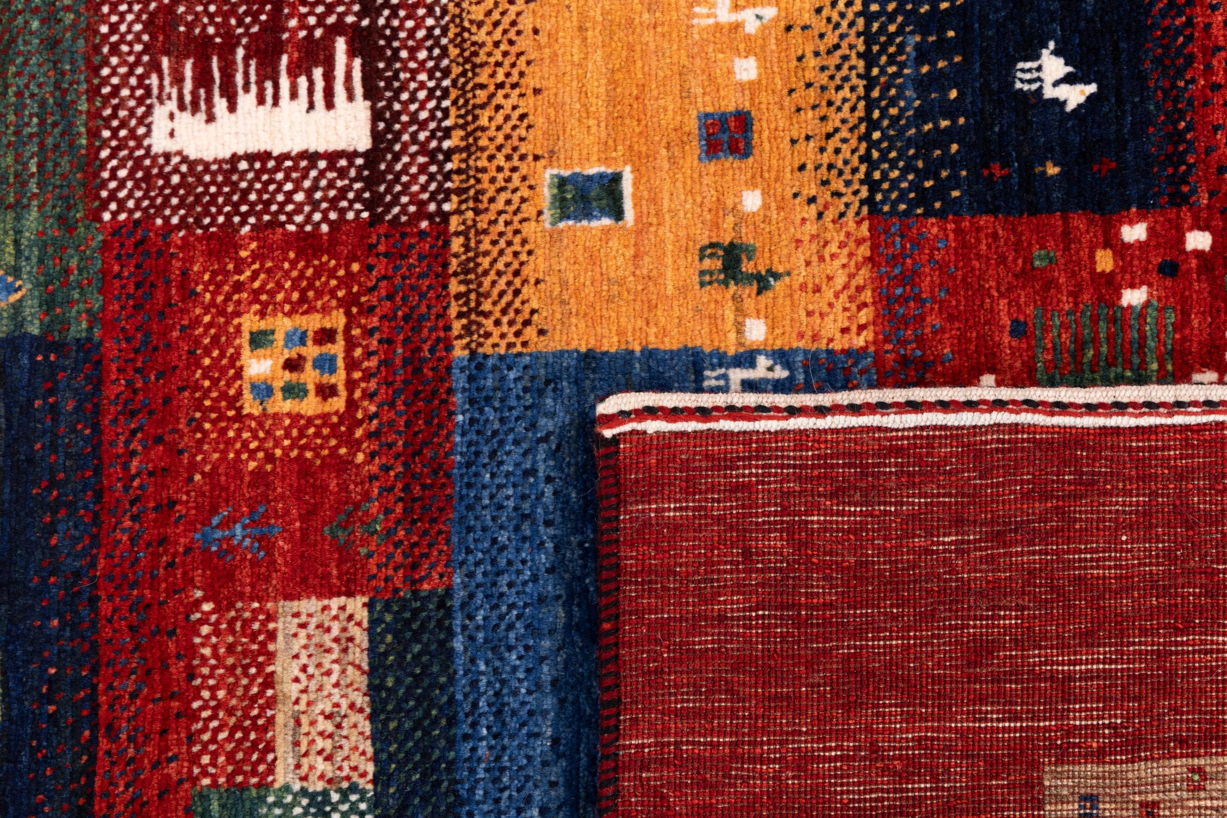 Ten piękny dywan jest perskim Gabbeh i dlatego należy do najwyższej jakości dywanów Gabbeh. Dywany są wiązane przez nomadów lub pół-nomadzi w Iranie zgodnie z tradycyjnym rzemiosłem. Proste motywy i wzory są w większości inspirowane bezpośrednim otoczeniem nomadów. Na przykład wielbłądy, drzewa lub krzewy można znaleźć na tradycyjnych dywanach. Perskie dywany Gabbeh wykonane są z wełny pochodzącej z lokalnie hodowanych stad owiec. Wełna jest więc w większości przypadków nadal obracana ręcznie. Tak więc każdy z tych orientalnych dywanów uosabia unikalny charakter wielowiekowej kultury.