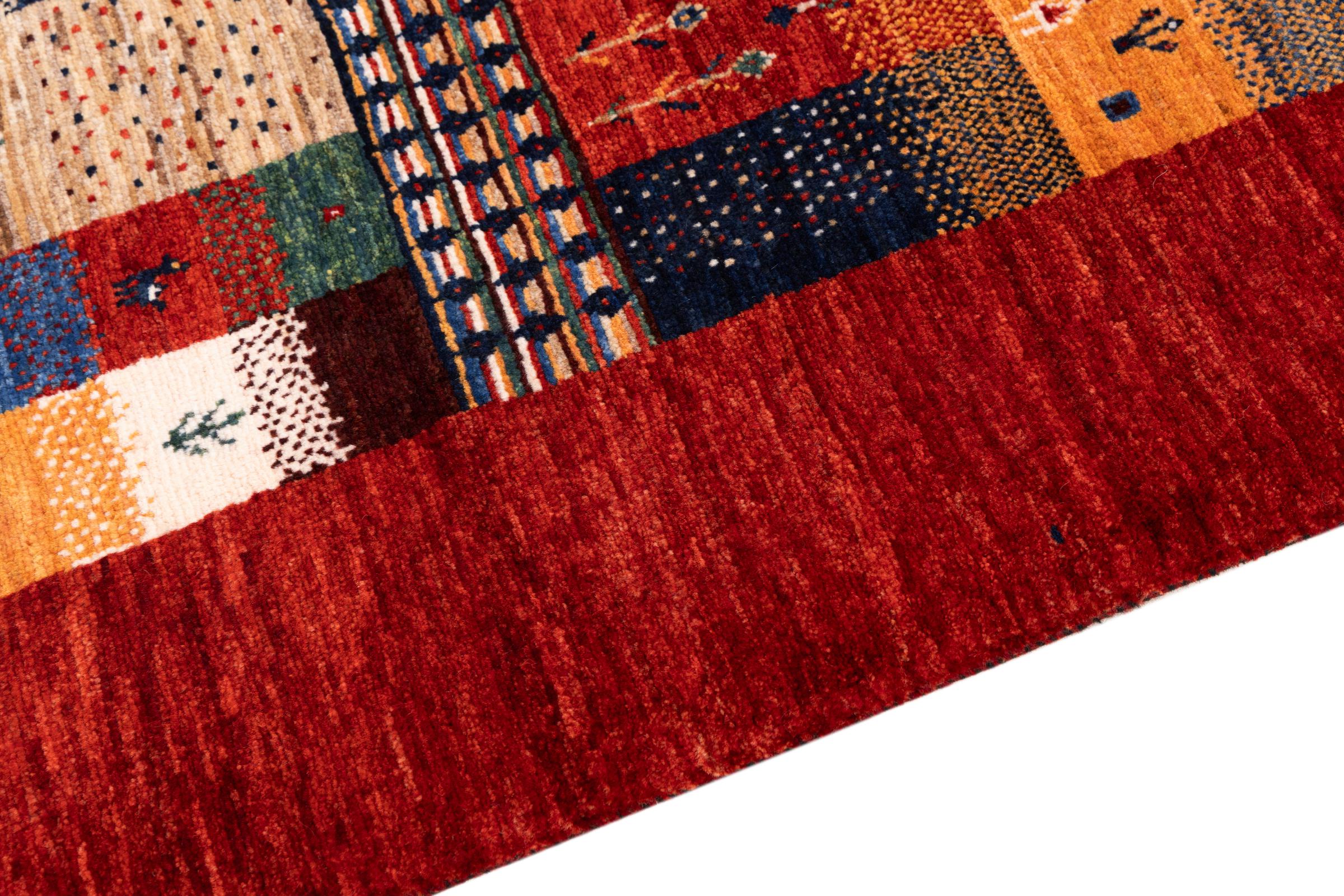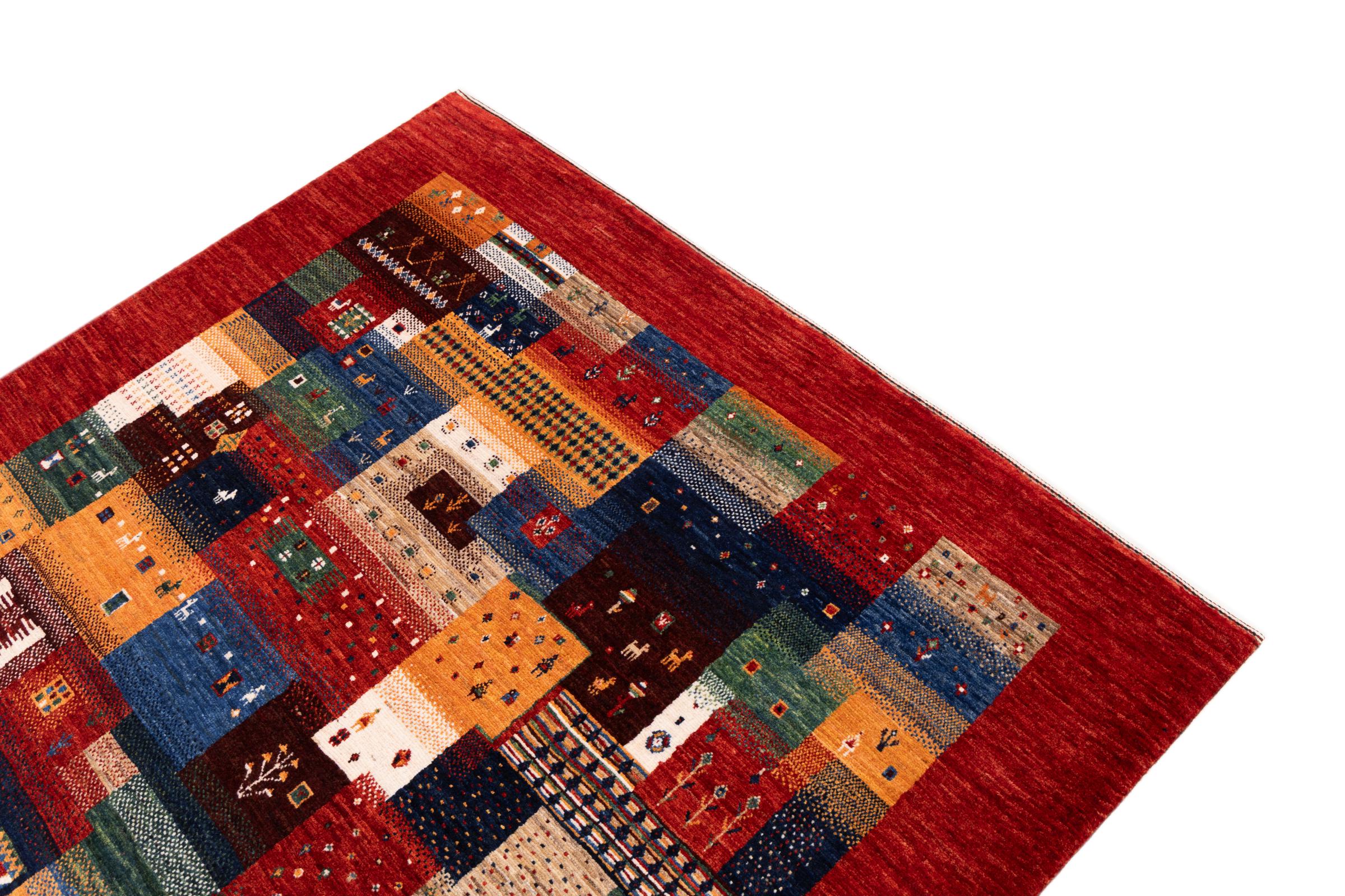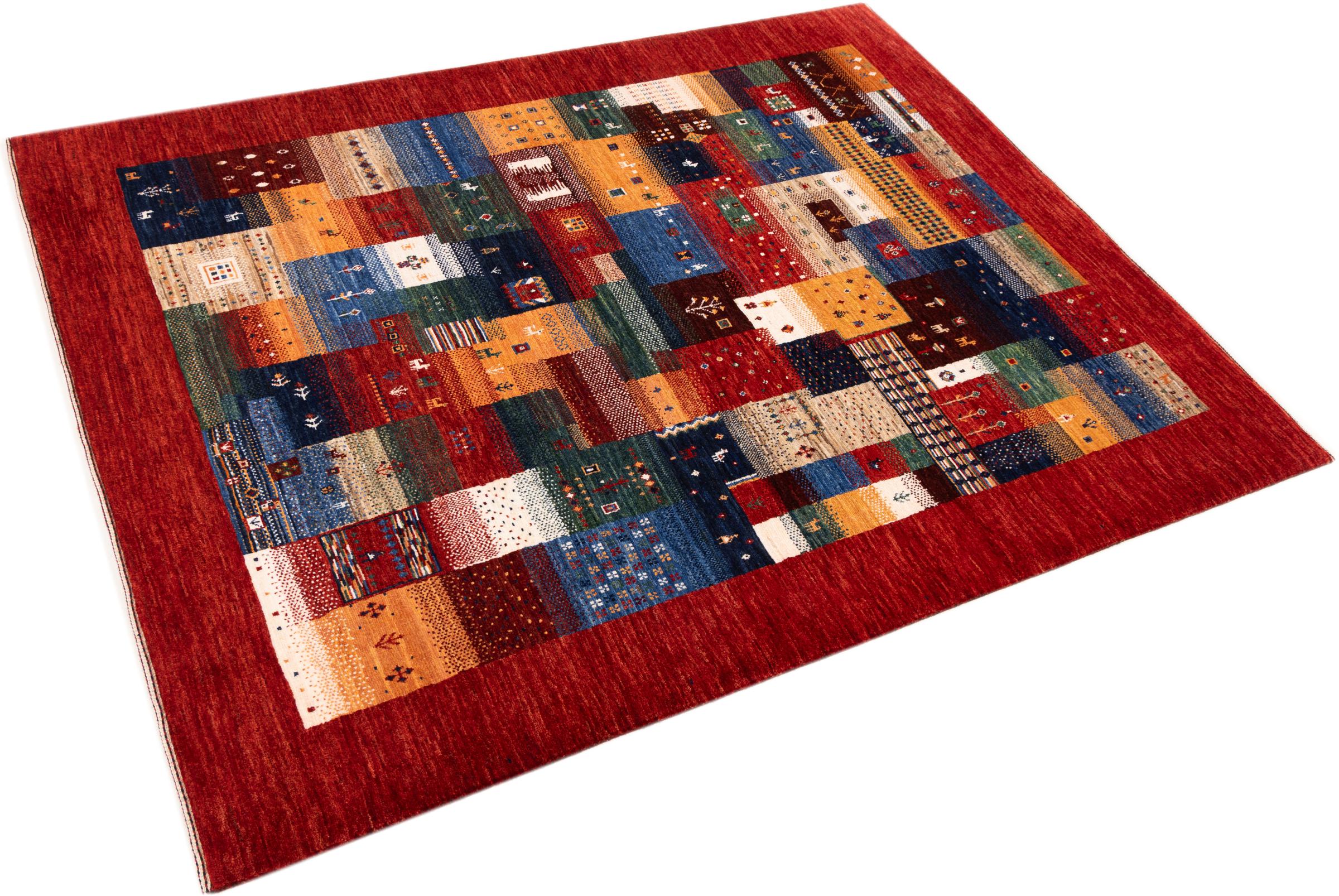 Ten piękny dywan jest perskim Gabbeh i dlatego należy do najwyższej jakości dywanów Gabbeh. Dywany są wiązane przez nomadów lub pół-nomadzi w Iranie zgodnie z tradycyjnym rzemiosłem. Proste motywy i wzory są w większości inspirowane bezpośrednim otoczeniem nomadów. Na przykład wielbłądy, drzewa lub krzewy można znaleźć na tradycyjnych dywanach. Perskie dywany Gabbeh wykonane są z wełny pochodzącej z lokalnie hodowanych stad owiec. Wełna jest więc w większości przypadków nadal obracana ręcznie. Tak więc każdy z tych orientalnych dywanów uosabia unikalny charakter wielowiekowej kultury.