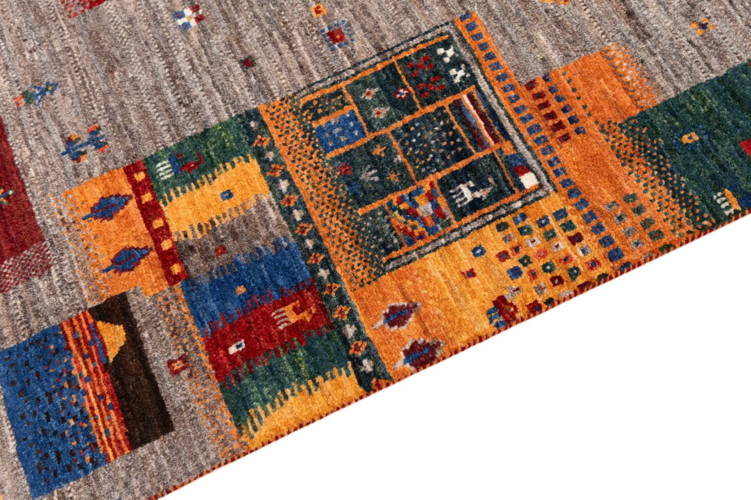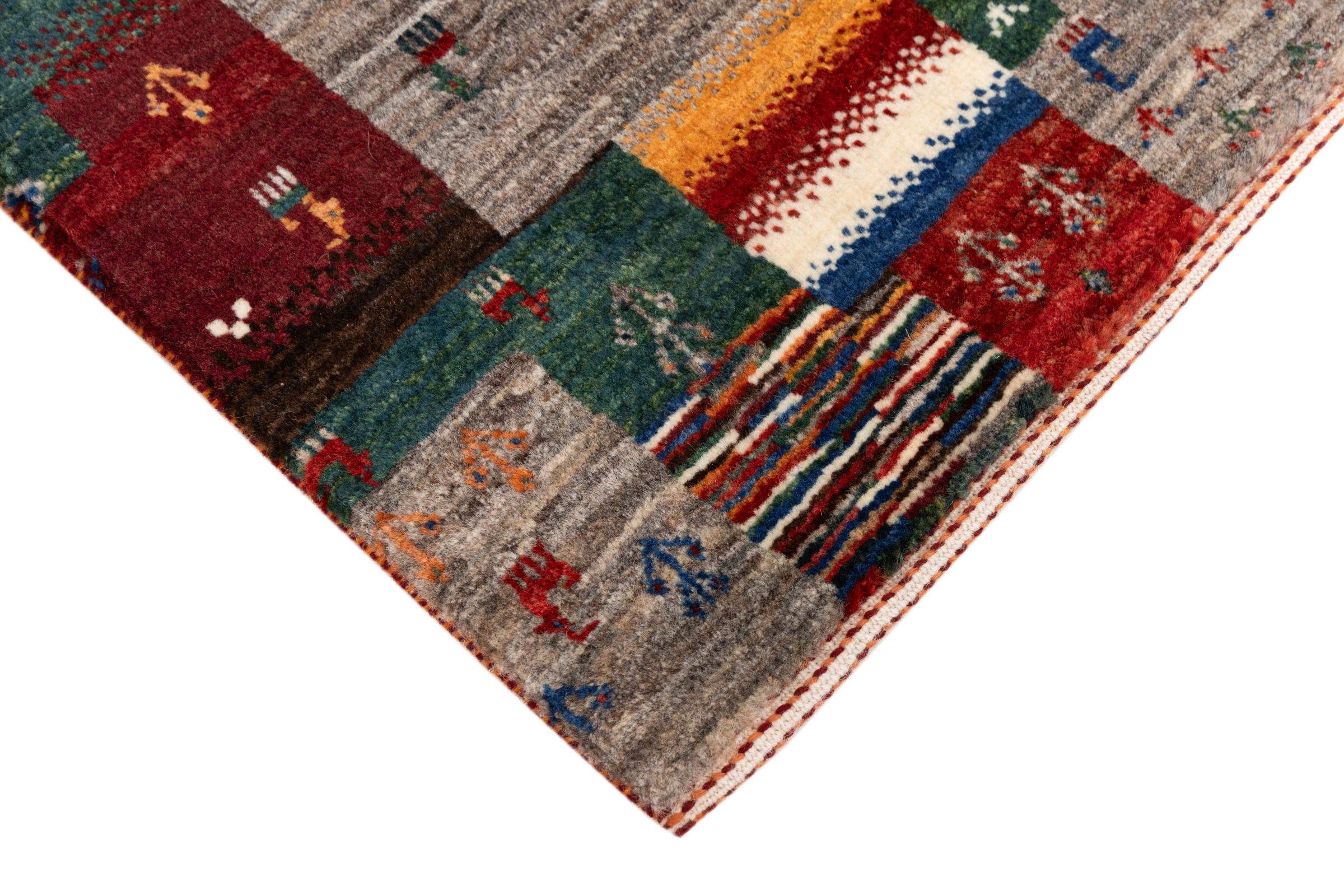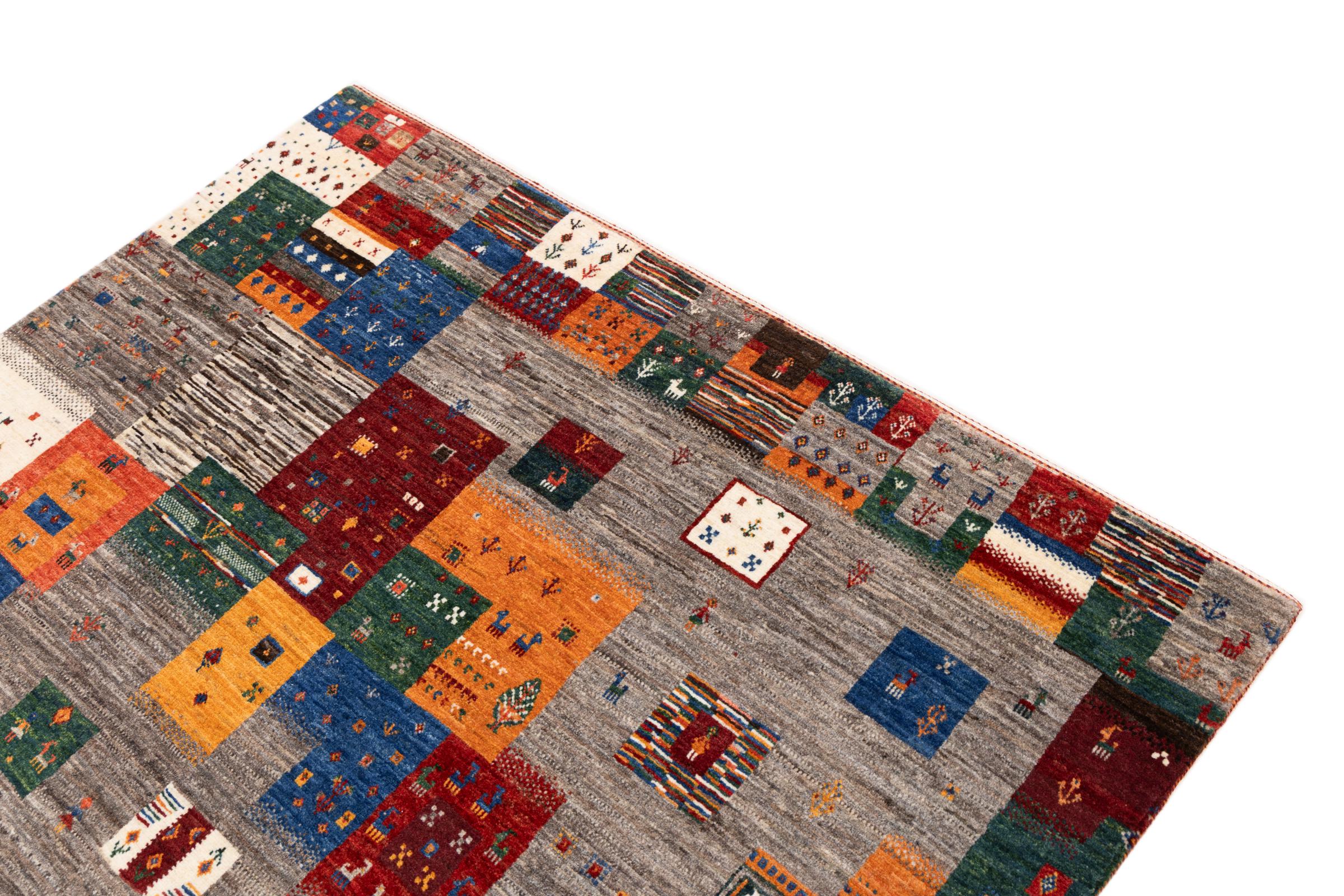 Ten piękny dywan jest perskim Gabbeh i dlatego należy do najwyższej jakości dywanów Gabbeh. Dywany są wiązane przez nomadów lub pół-nomadzi w Iranie zgodnie z tradycyjnym rzemiosłem. Proste motywy i wzory są w większości inspirowane bezpośrednim otoczeniem nomadów. Na przykład wielbłądy, drzewa lub krzewy można znaleźć na tradycyjnych dywanach. Perskie dywany Gabbeh wykonane są z wełny pochodzącej z lokalnie hodowanych stad owiec. Wełna jest więc w większości przypadków nadal obracana ręcznie. Tak więc każdy z tych orientalnych dywanów uosabia unikalny charakter wielowiekowej kultury.