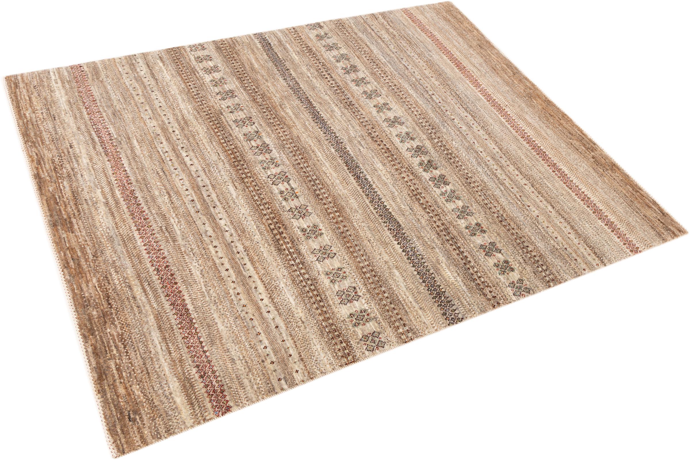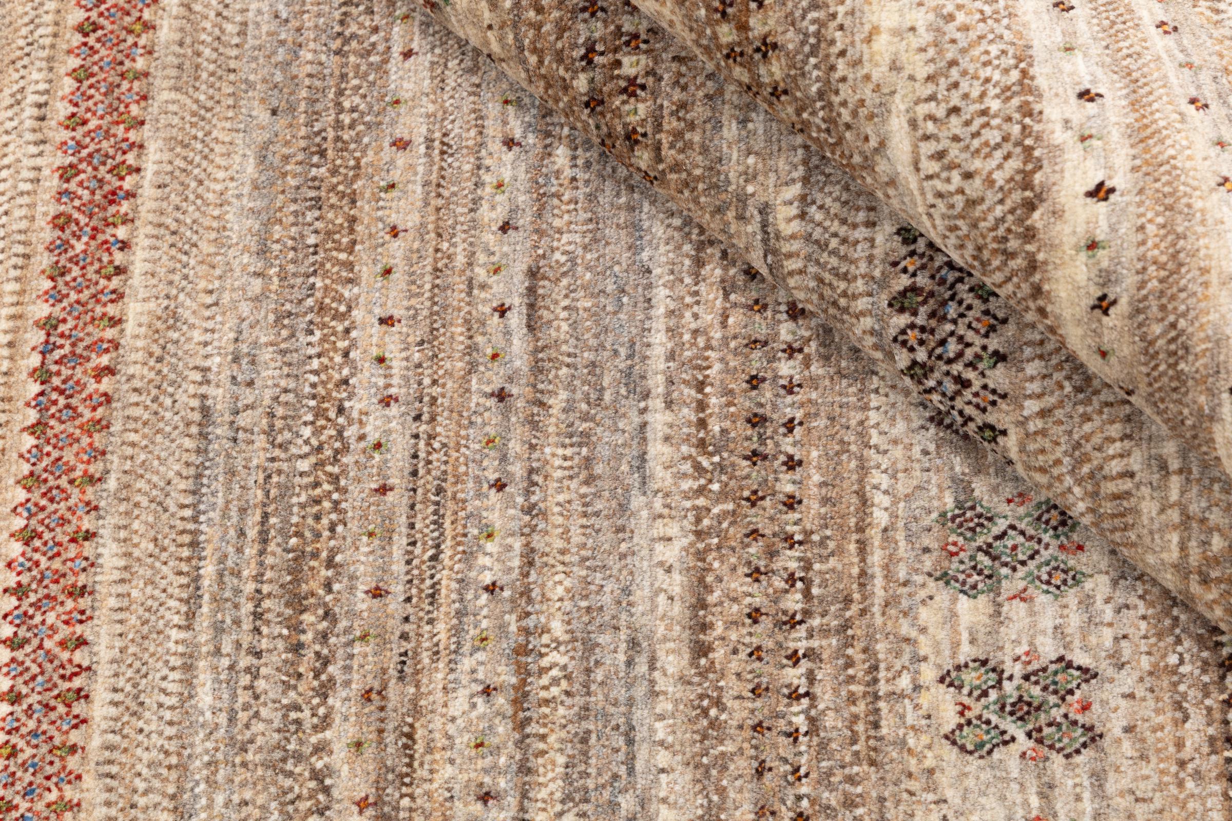 Ten piękny dywan jest perskim Gabbeh i dlatego należy do najwyższej jakości dywanów Gabbeh. Dywany są wiązane przez nomadów lub pół-nomadzi w Iranie zgodnie z tradycyjnym rzemiosłem. Proste motywy i wzory są w większości inspirowane bezpośrednim otoczeniem nomadów. Na przykład wielbłądy, drzewa lub krzewy można znaleźć na tradycyjnych dywanach. Perskie dywany Gabbeh wykonane są z wełny pochodzącej z lokalnie hodowanych stad owiec. Wełna jest więc w większości przypadków nadal obracana ręcznie. Tak więc każdy z tych orientalnych dywanów uosabia unikalny charakter wielowiekowej kultury.