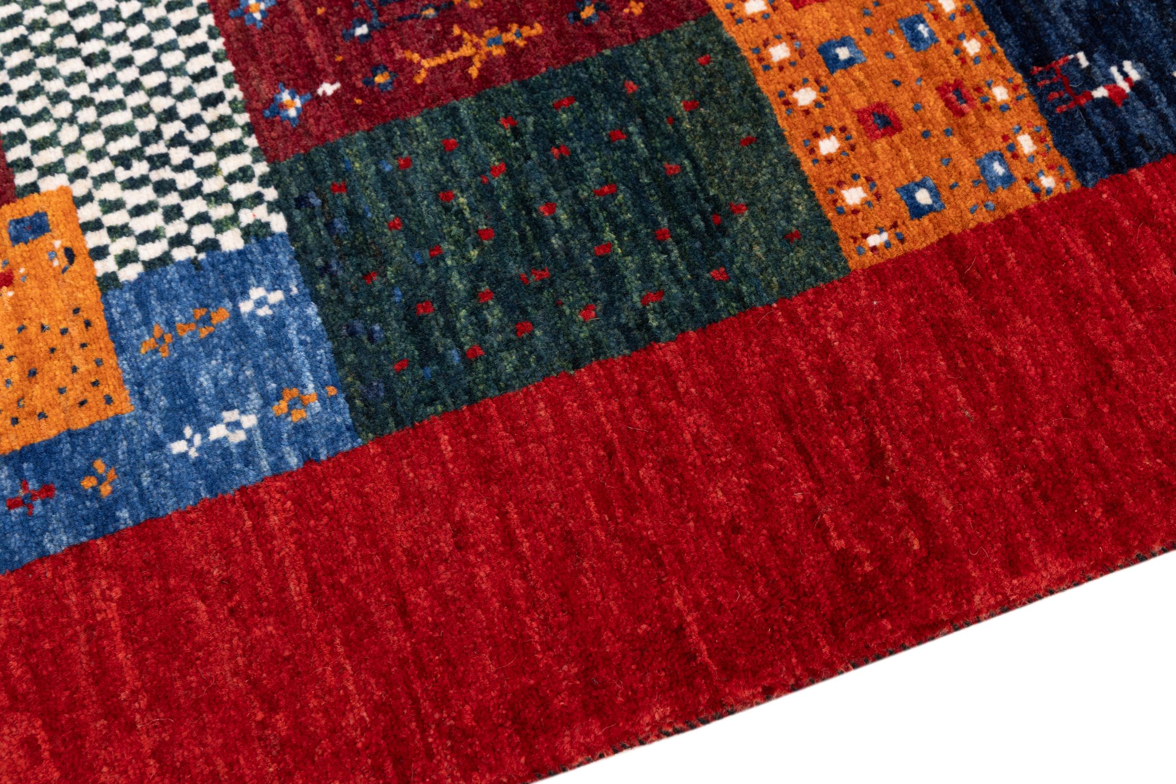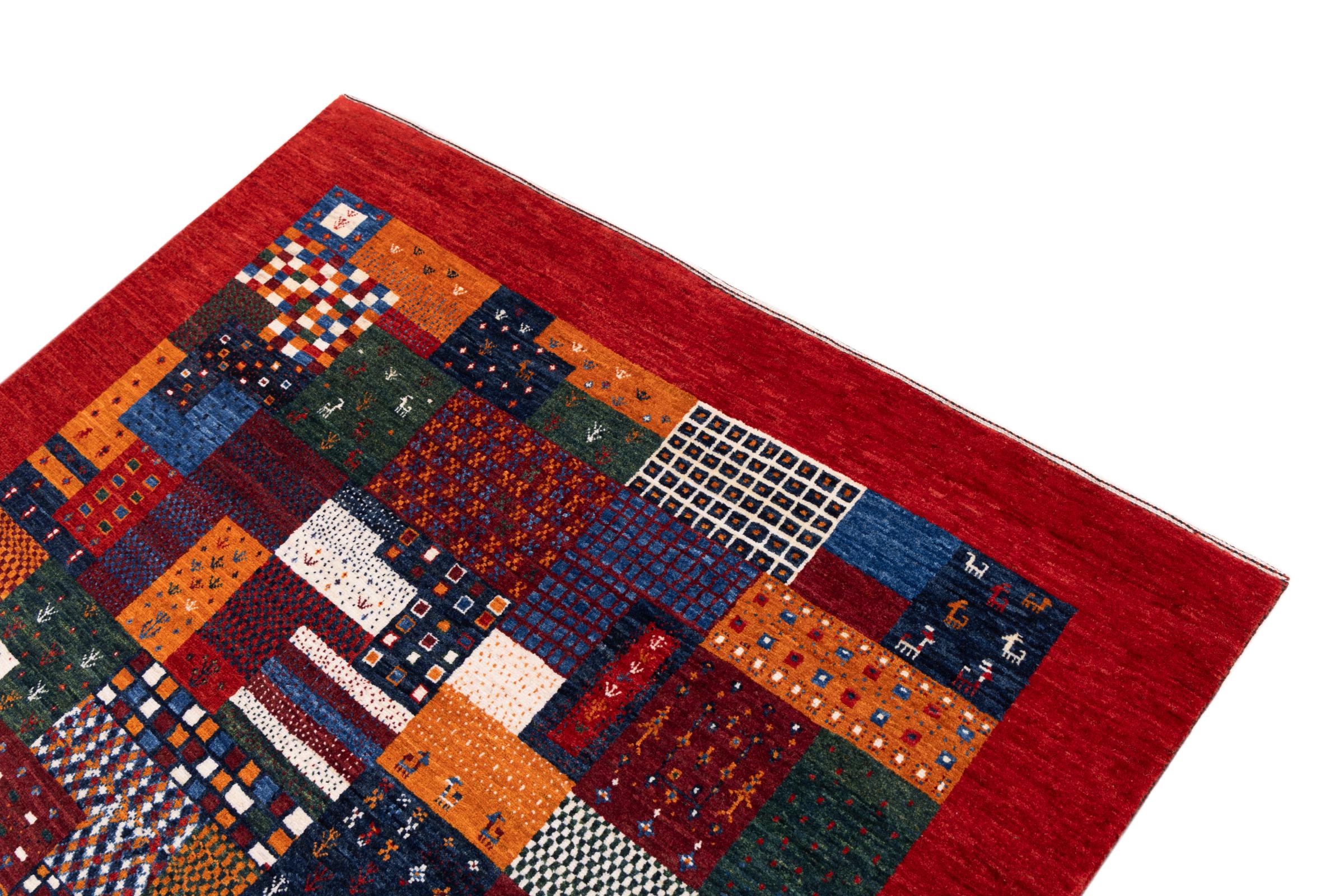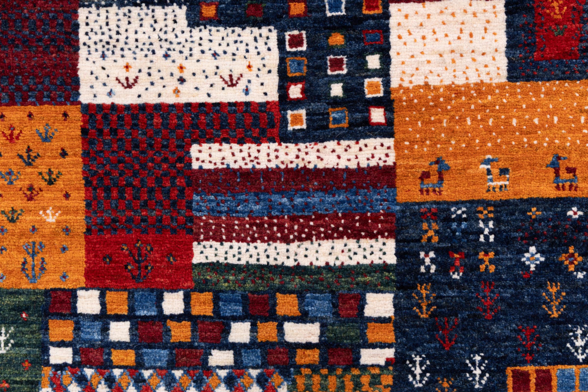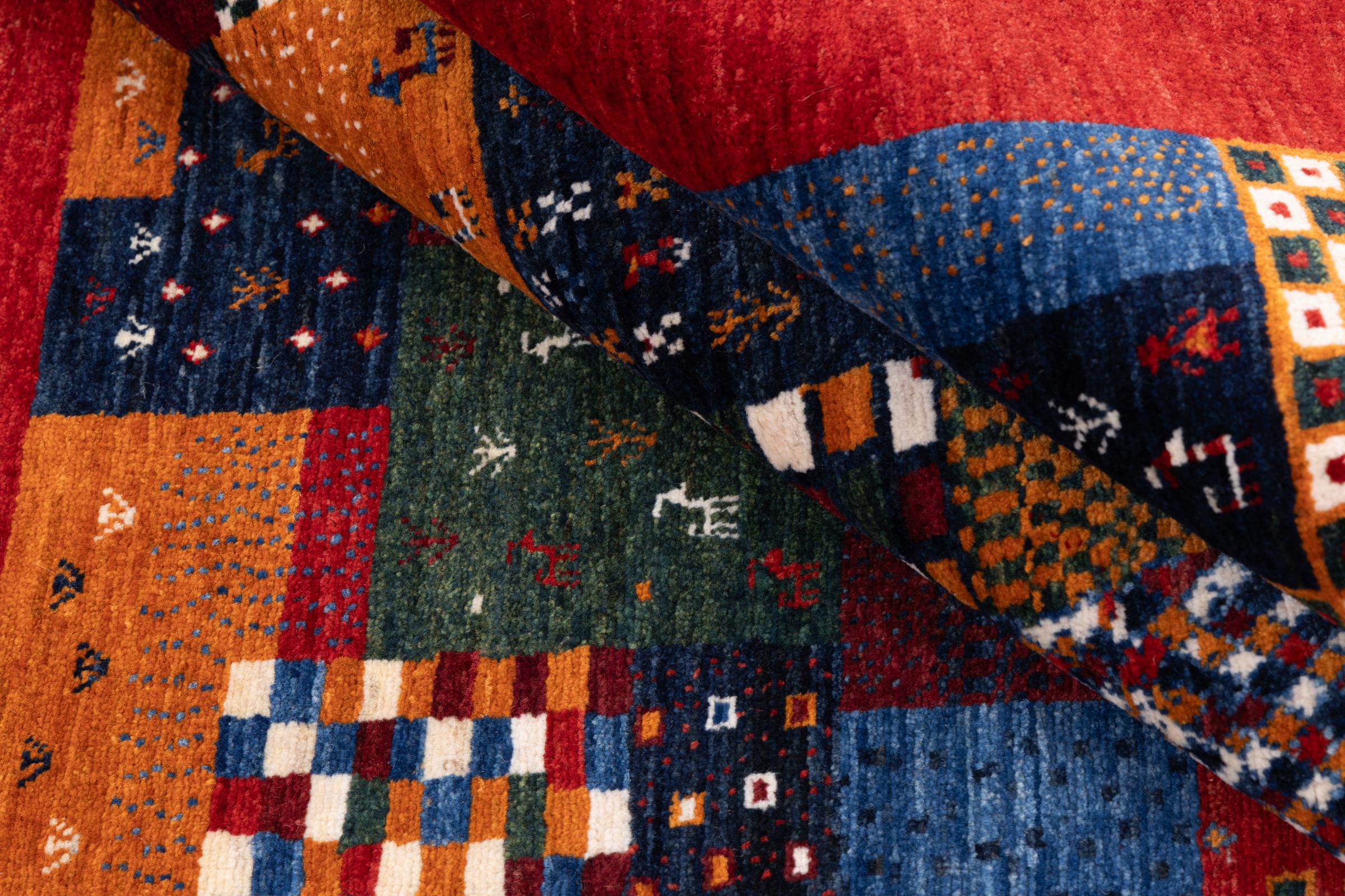 Ten piękny dywan jest perskim Gabbeh i dlatego należy do najwyższej jakości dywanów Gabbeh. Dywany są wiązane przez nomadów lub pół-nomadzi w Iranie zgodnie z tradycyjnym rzemiosłem. Proste motywy i wzory są w większości inspirowane bezpośrednim otoczeniem nomadów. Na przykład wielbłądy, drzewa lub krzewy można znaleźć na tradycyjnych dywanach. Perskie dywany Gabbeh wykonane są z wełny pochodzącej z lokalnie hodowanych stad owiec. Wełna jest więc w większości przypadków nadal obracana ręcznie. Tak więc każdy z tych orientalnych dywanów uosabia unikalny charakter wielowiekowej kultury.