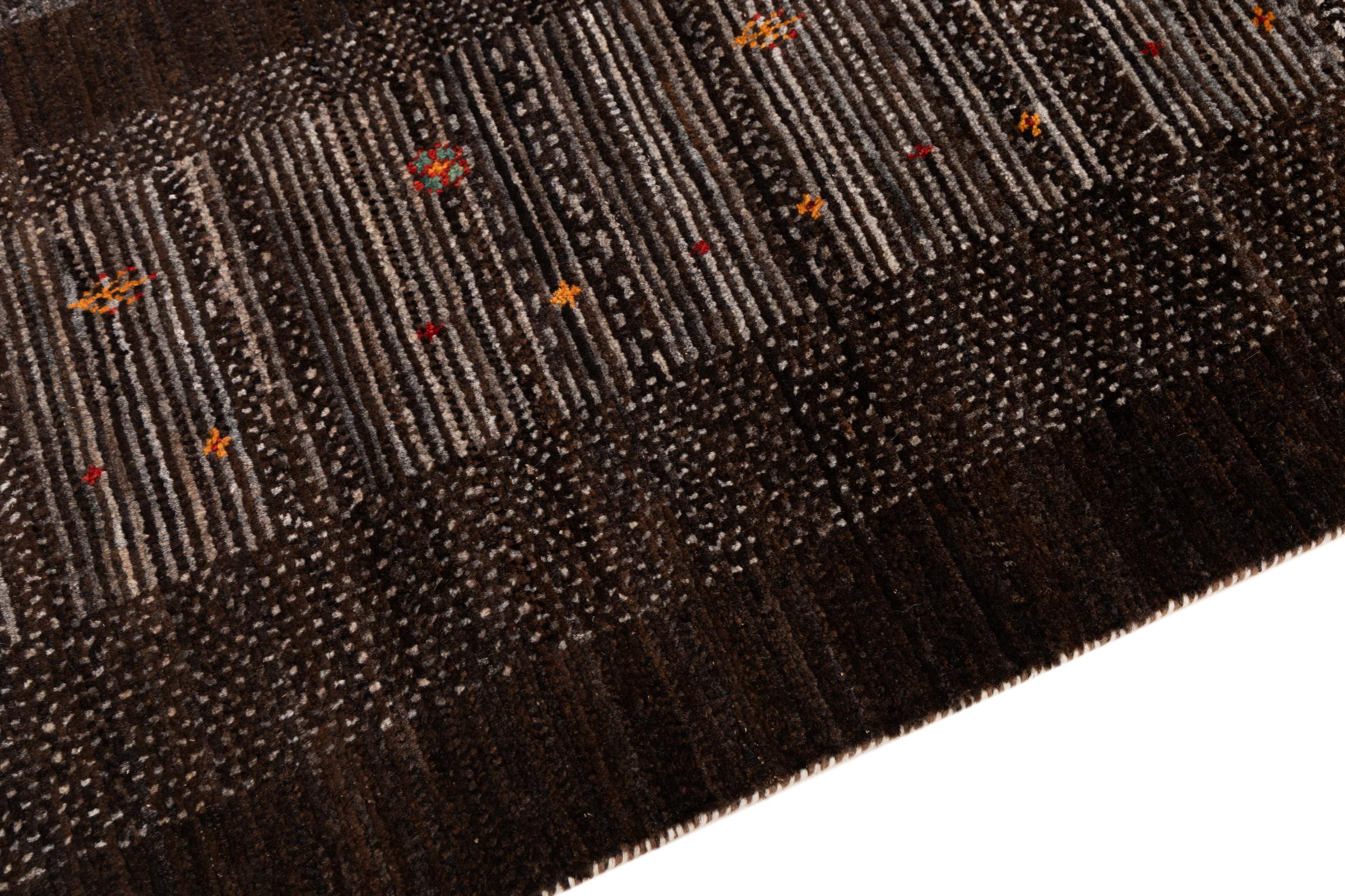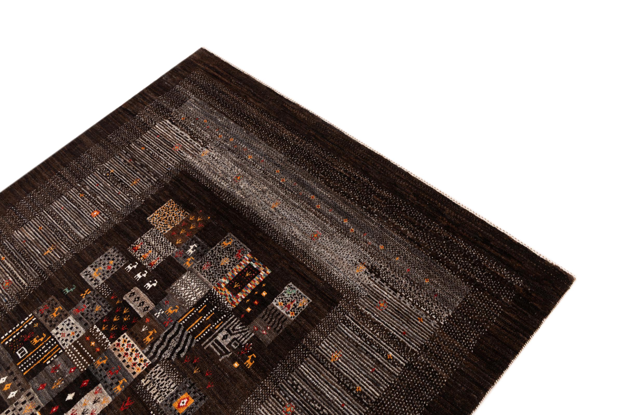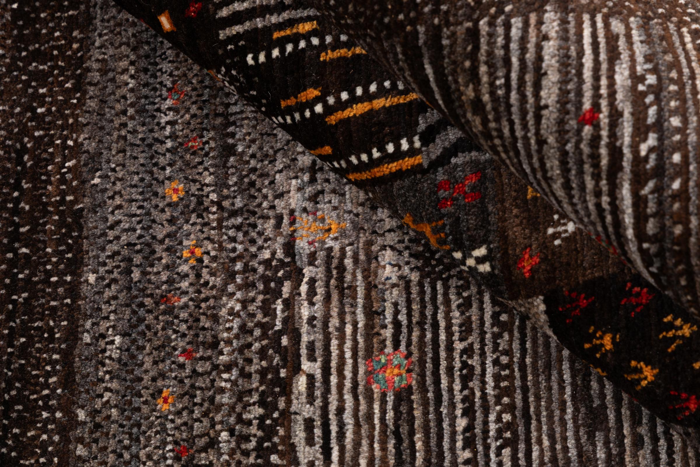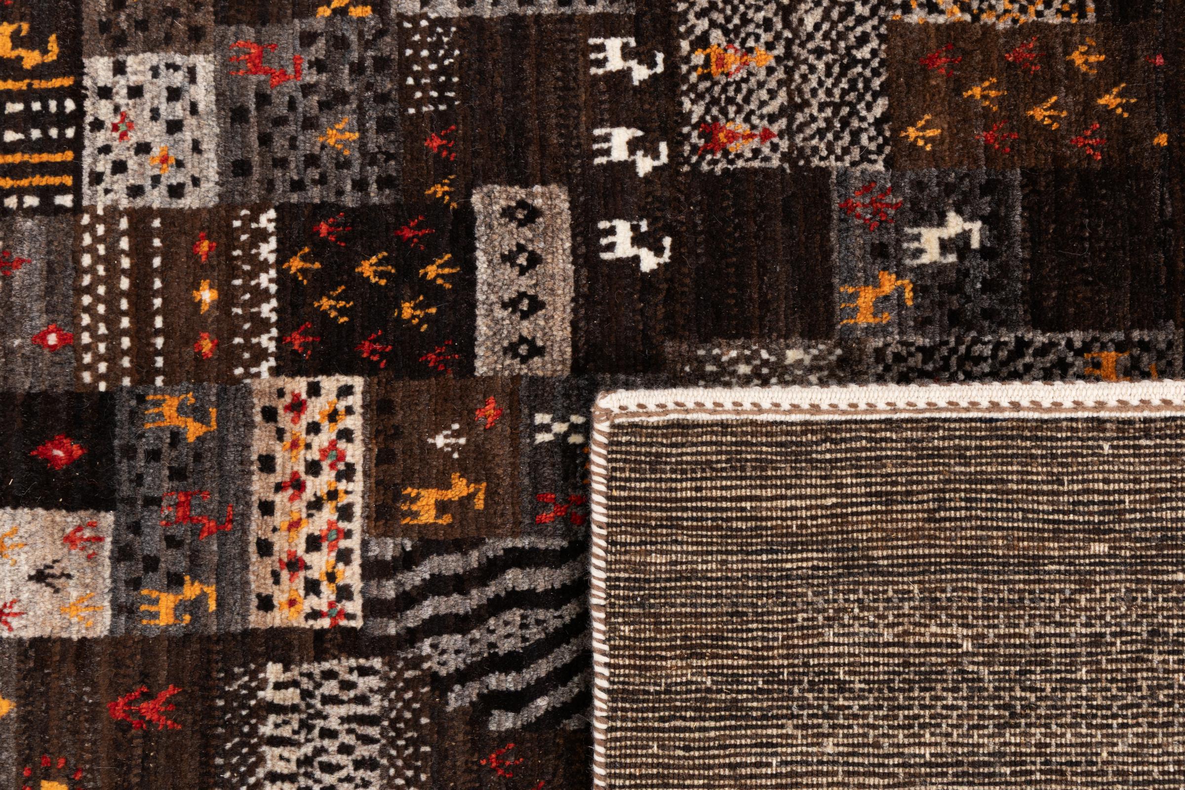 Ten piękny dywan jest perskim Gabbeh i dlatego należy do najwyższej jakości dywanów Gabbeh. Dywany są wiązane przez nomadów lub pół-nomadzi w Iranie zgodnie z tradycyjnym rzemiosłem. Proste motywy i wzory są w większości inspirowane bezpośrednim otoczeniem nomadów. Na przykład wielbłądy, drzewa lub krzewy można znaleźć na tradycyjnych dywanach. Perskie dywany Gabbeh wykonane są z wełny pochodzącej z lokalnie hodowanych stad owiec. Wełna jest więc w większości przypadków nadal obracana ręcznie. Tak więc każdy z tych orientalnych dywanów uosabia unikalny charakter wielowiekowej kultury.