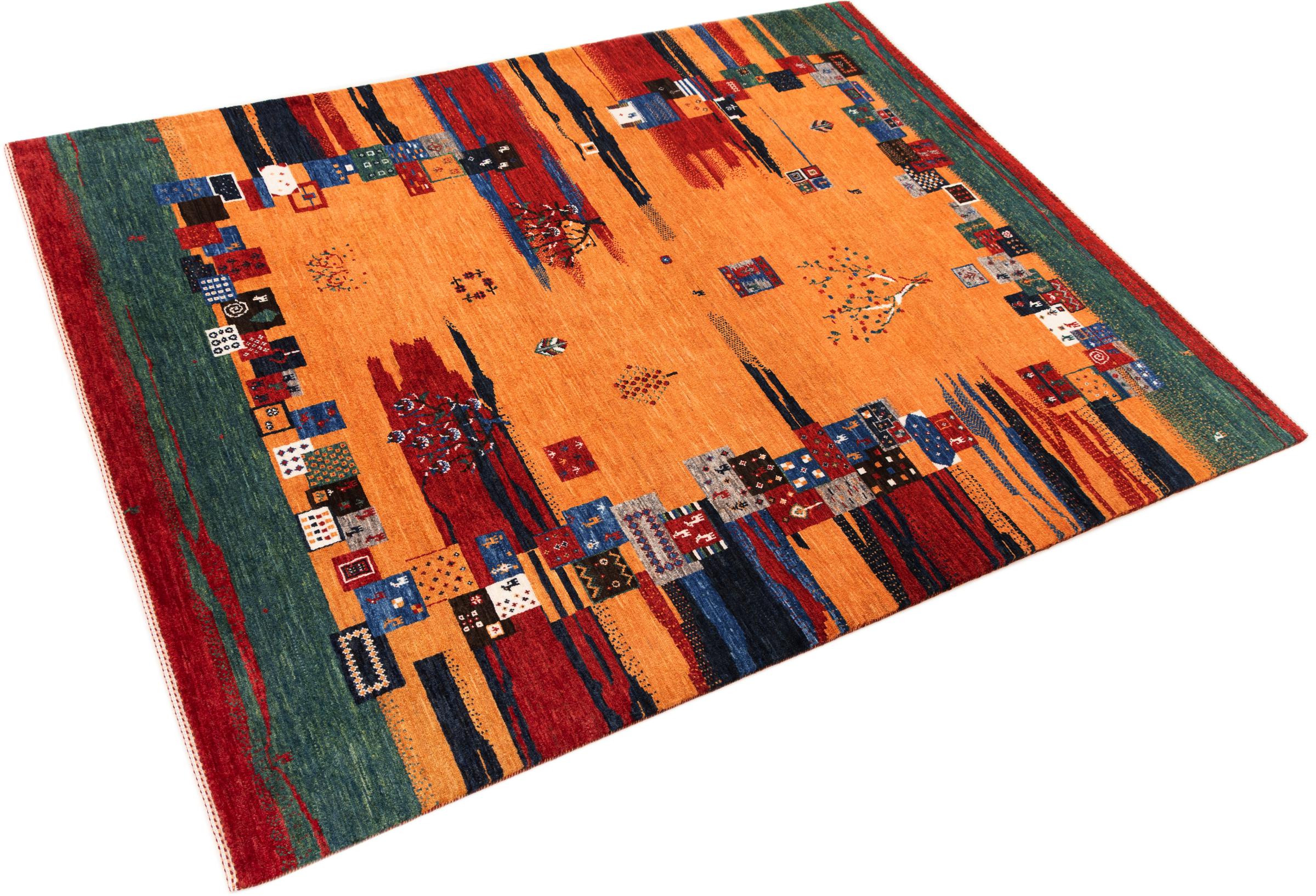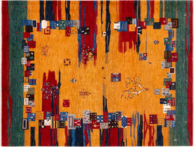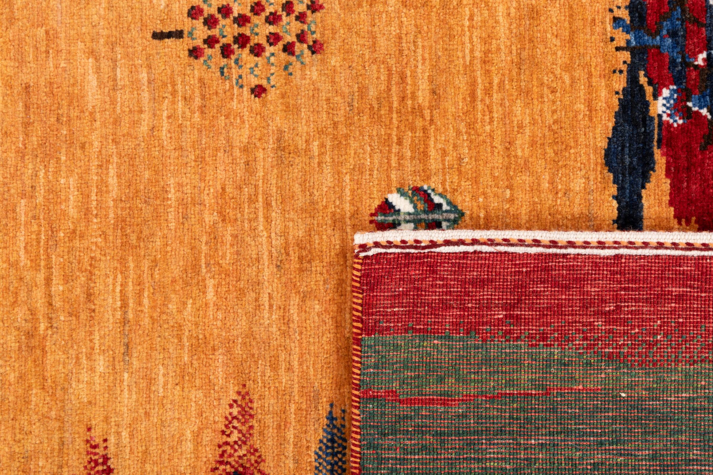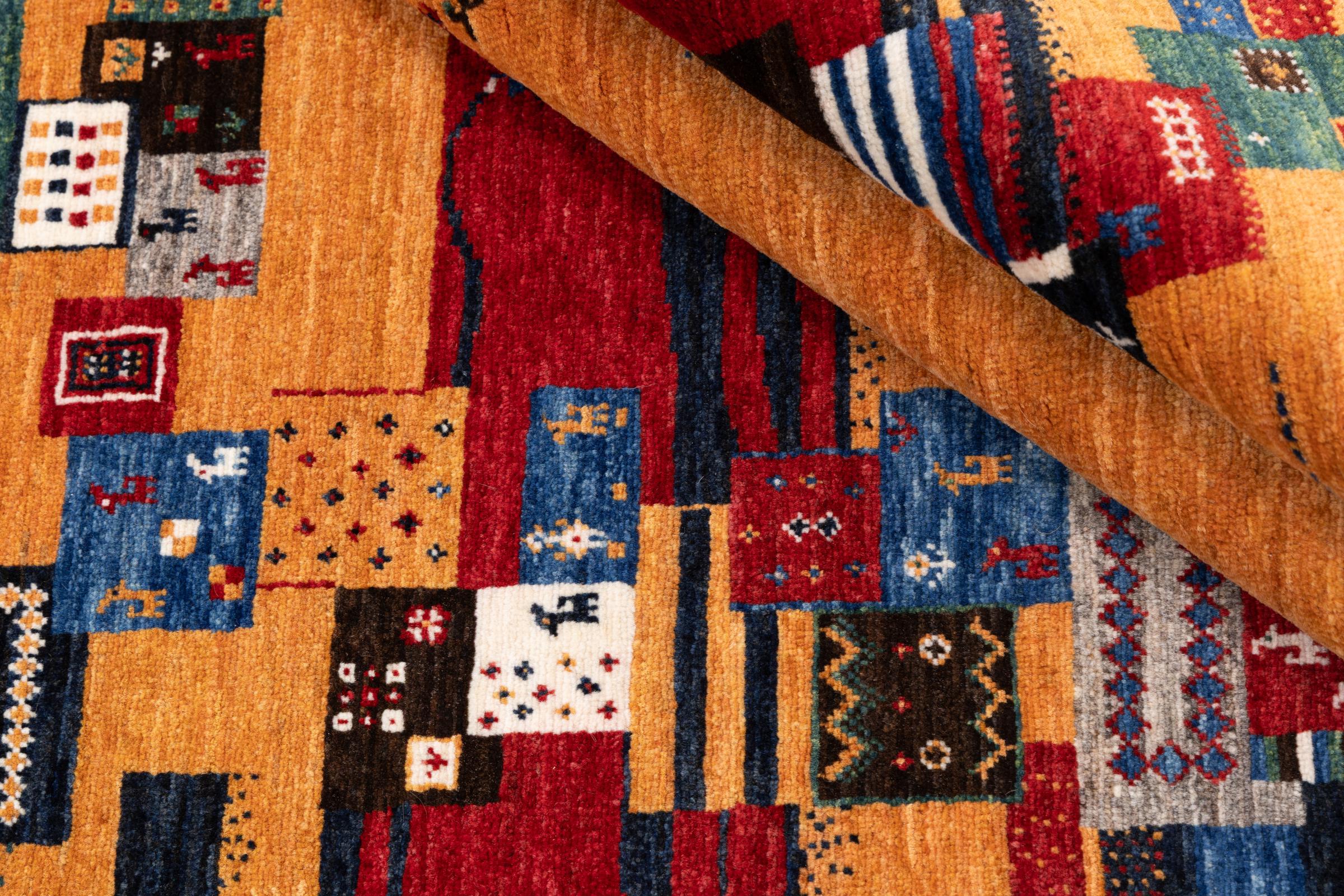 Ten piękny dywan jest perskim Gabbeh i dlatego należy do najwyższej jakości dywanów Gabbeh. Dywany są wiązane przez nomadów lub pół-nomadzi w Iranie zgodnie z tradycyjnym rzemiosłem. Proste motywy i wzory są w większości inspirowane bezpośrednim otoczeniem nomadów. Na przykład wielbłądy, drzewa lub krzewy można znaleźć na tradycyjnych dywanach. Perskie dywany Gabbeh wykonane są z wełny pochodzącej z lokalnie hodowanych stad owiec. Wełna jest więc w większości przypadków nadal obracana ręcznie. Tak więc każdy z tych orientalnych dywanów uosabia unikalny charakter wielowiekowej kultury.