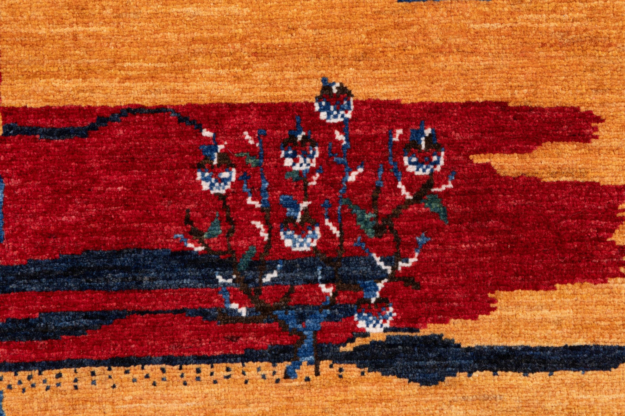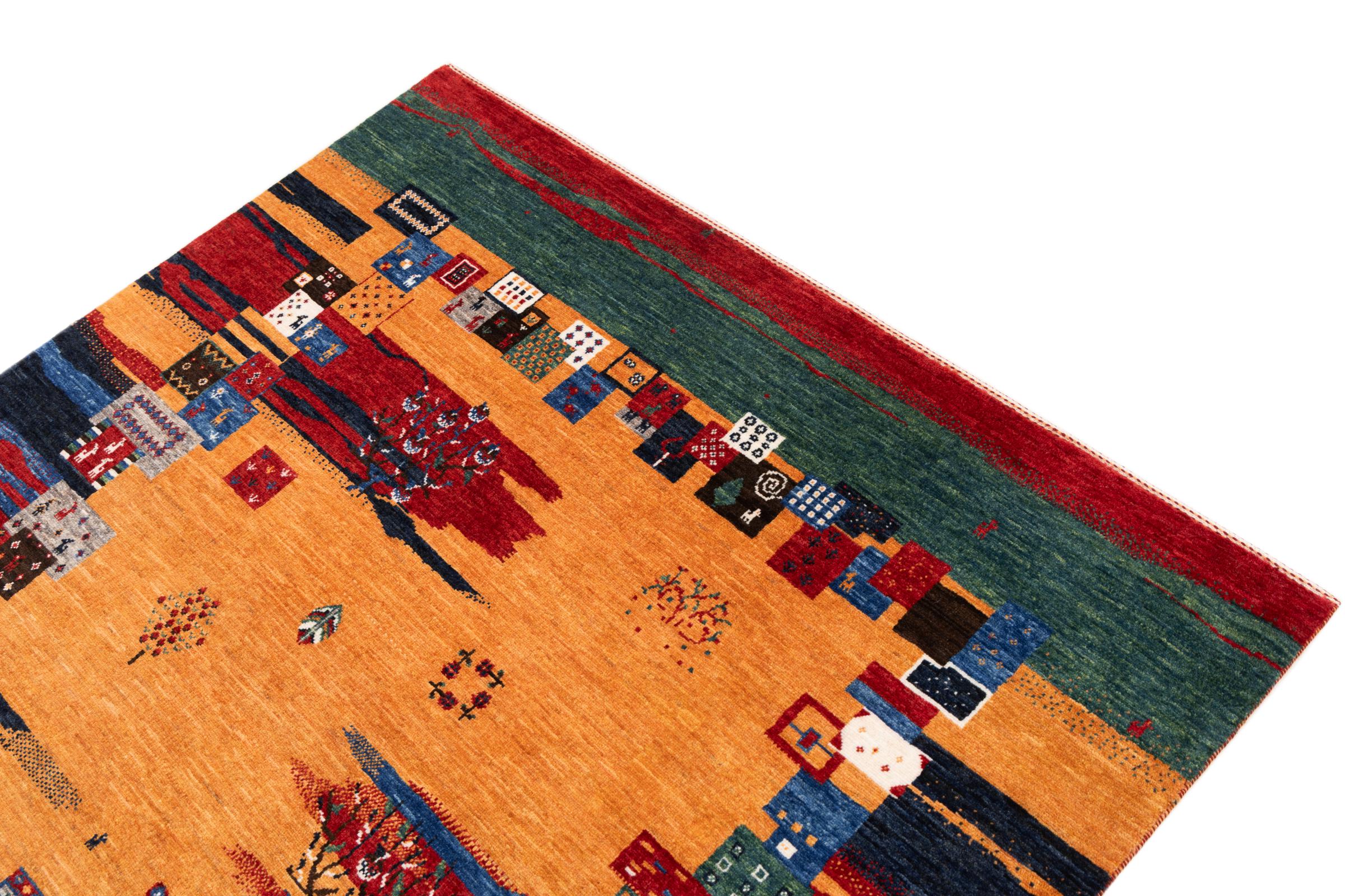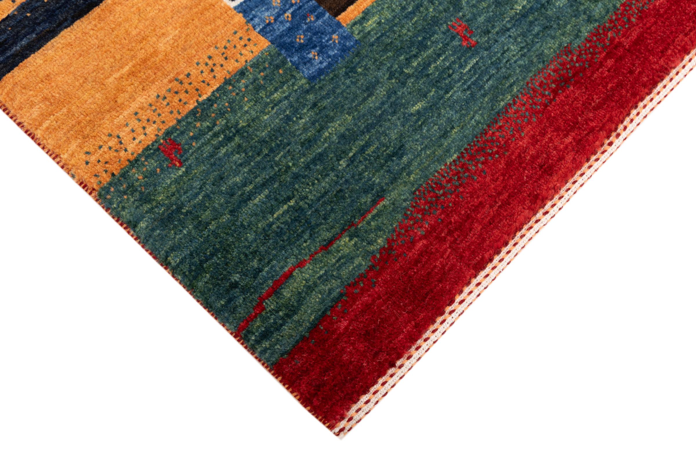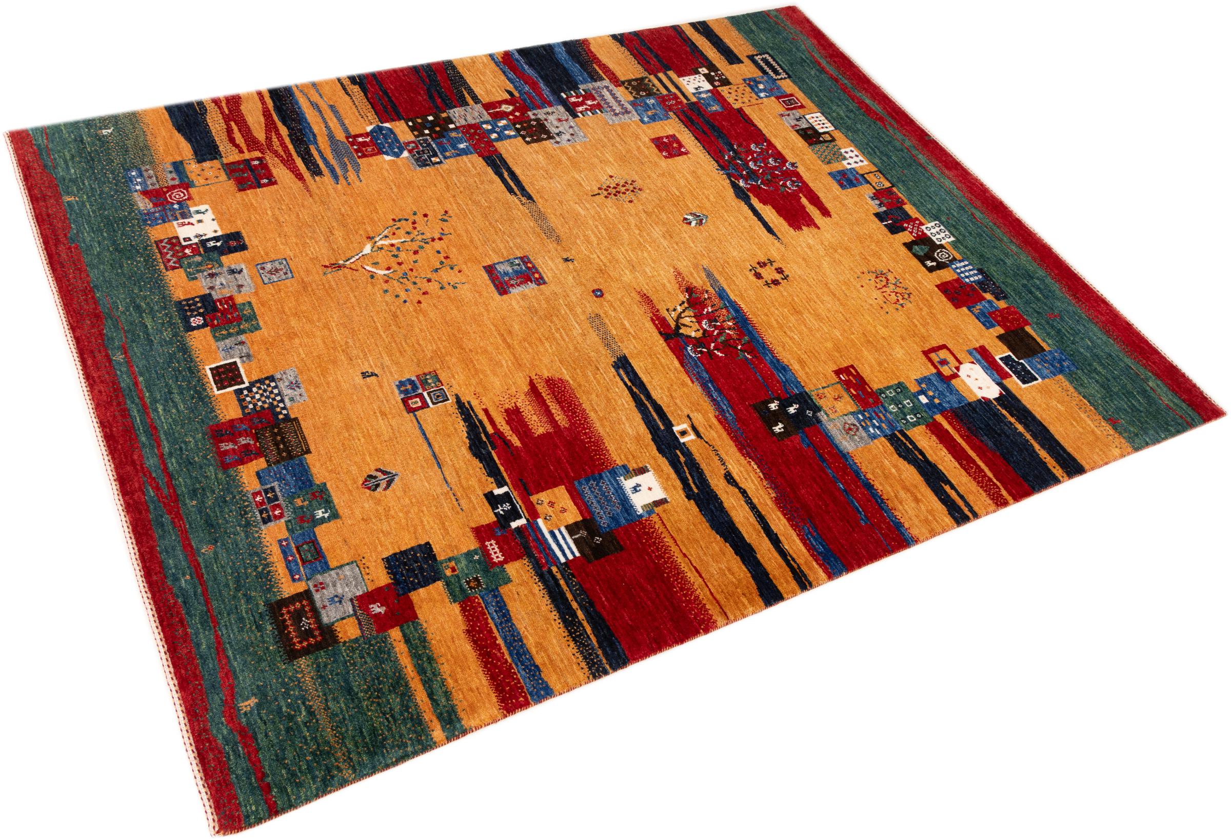 Ten piękny dywan jest perskim Gabbeh i dlatego należy do najwyższej jakości dywanów Gabbeh. Dywany są wiązane przez nomadów lub pół-nomadzi w Iranie zgodnie z tradycyjnym rzemiosłem. Proste motywy i wzory są w większości inspirowane bezpośrednim otoczeniem nomadów. Na przykład wielbłądy, drzewa lub krzewy można znaleźć na tradycyjnych dywanach. Perskie dywany Gabbeh wykonane są z wełny pochodzącej z lokalnie hodowanych stad owiec. Wełna jest więc w większości przypadków nadal obracana ręcznie. Tak więc każdy z tych orientalnych dywanów uosabia unikalny charakter wielowiekowej kultury.