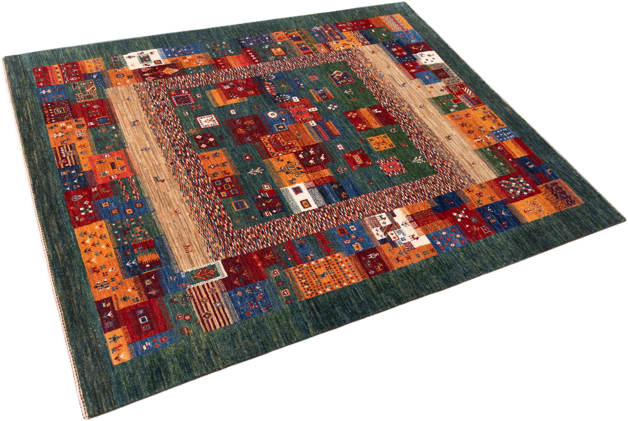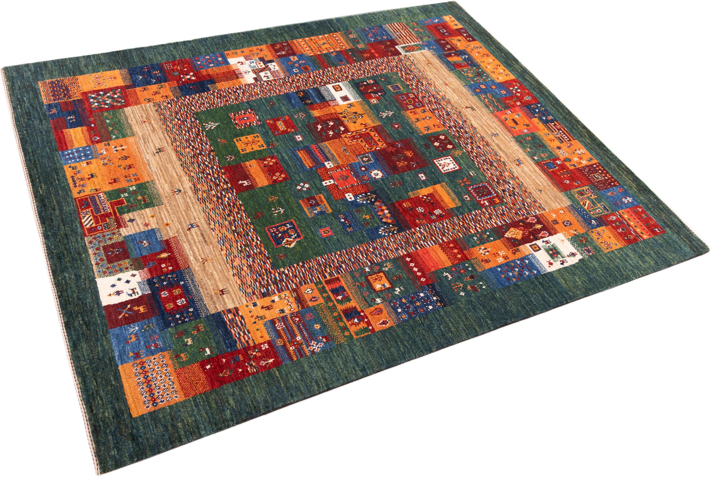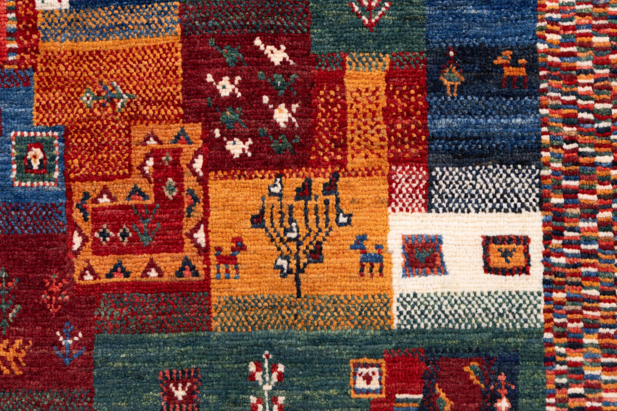 Ten piękny dywan jest perskim Gabbeh i dlatego należy do najwyższej jakości dywanów Gabbeh. Dywany są wiązane przez nomadów lub pół-nomadzi w Iranie zgodnie z tradycyjnym rzemiosłem. Proste motywy i wzory są w większości inspirowane bezpośrednim otoczeniem nomadów. Na przykład wielbłądy, drzewa lub krzewy można znaleźć na tradycyjnych dywanach. Perskie dywany Gabbeh wykonane są z wełny pochodzącej z lokalnie hodowanych stad owiec. Wełna jest więc w większości przypadków nadal obracana ręcznie. Tak więc każdy z tych orientalnych dywanów uosabia unikalny charakter wielowiekowej kultury.