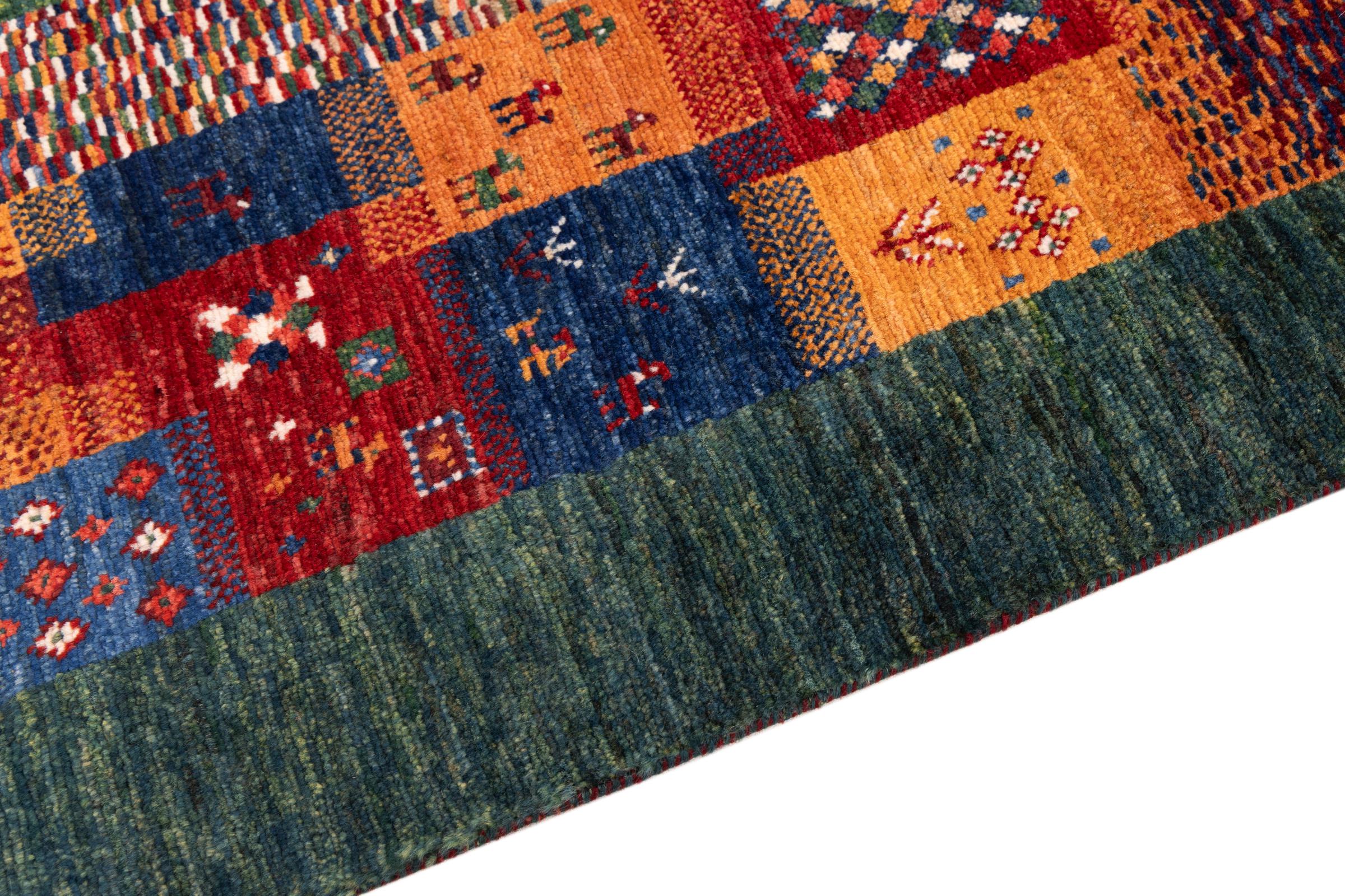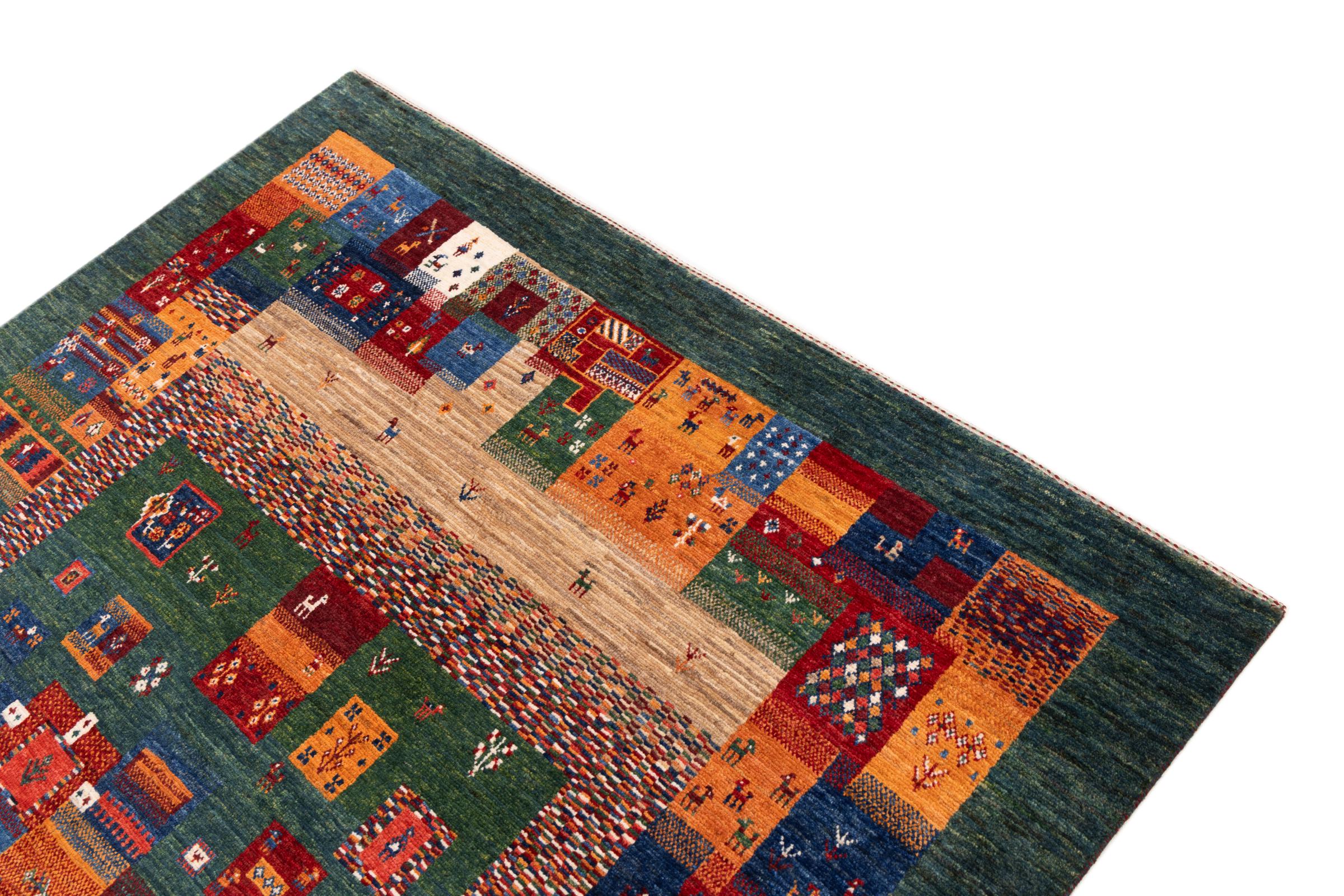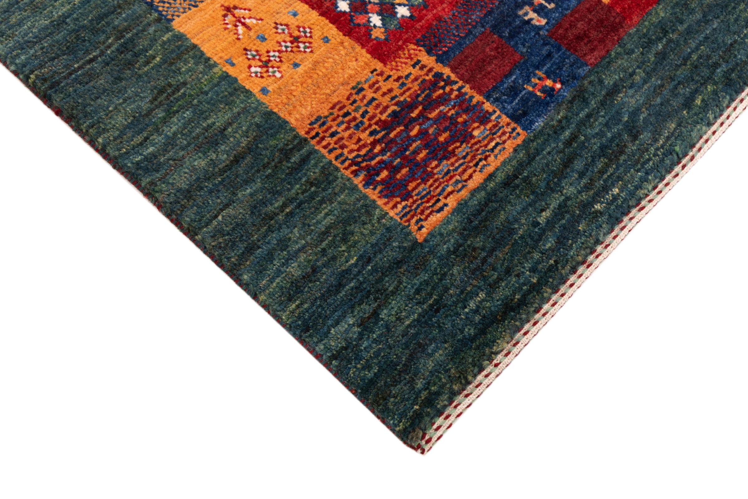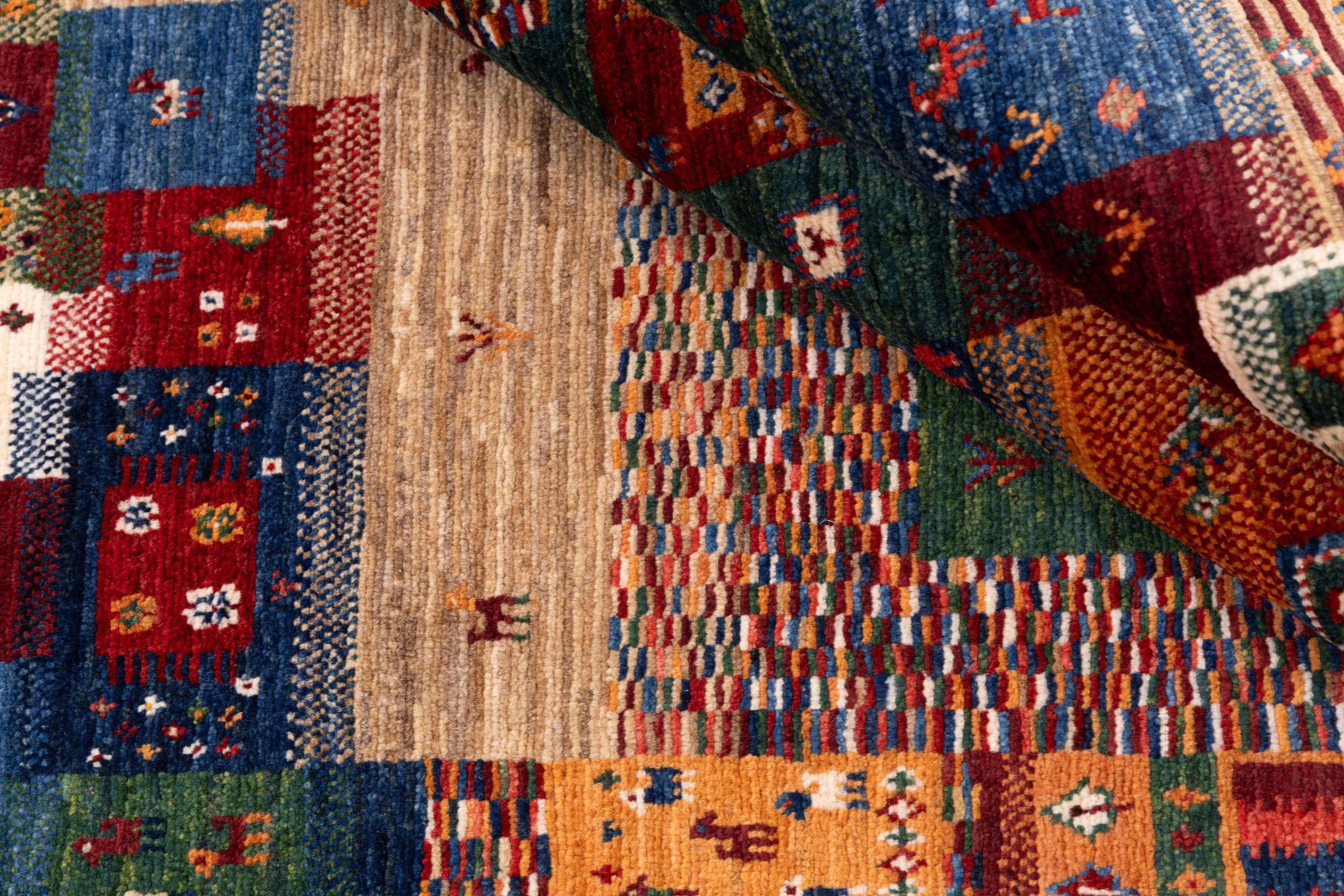 Ten piękny dywan jest perskim Gabbeh i dlatego należy do najwyższej jakości dywanów Gabbeh. Dywany są wiązane przez nomadów lub pół-nomadzi w Iranie zgodnie z tradycyjnym rzemiosłem. Proste motywy i wzory są w większości inspirowane bezpośrednim otoczeniem nomadów. Na przykład wielbłądy, drzewa lub krzewy można znaleźć na tradycyjnych dywanach. Perskie dywany Gabbeh wykonane są z wełny pochodzącej z lokalnie hodowanych stad owiec. Wełna jest więc w większości przypadków nadal obracana ręcznie. Tak więc każdy z tych orientalnych dywanów uosabia unikalny charakter wielowiekowej kultury.