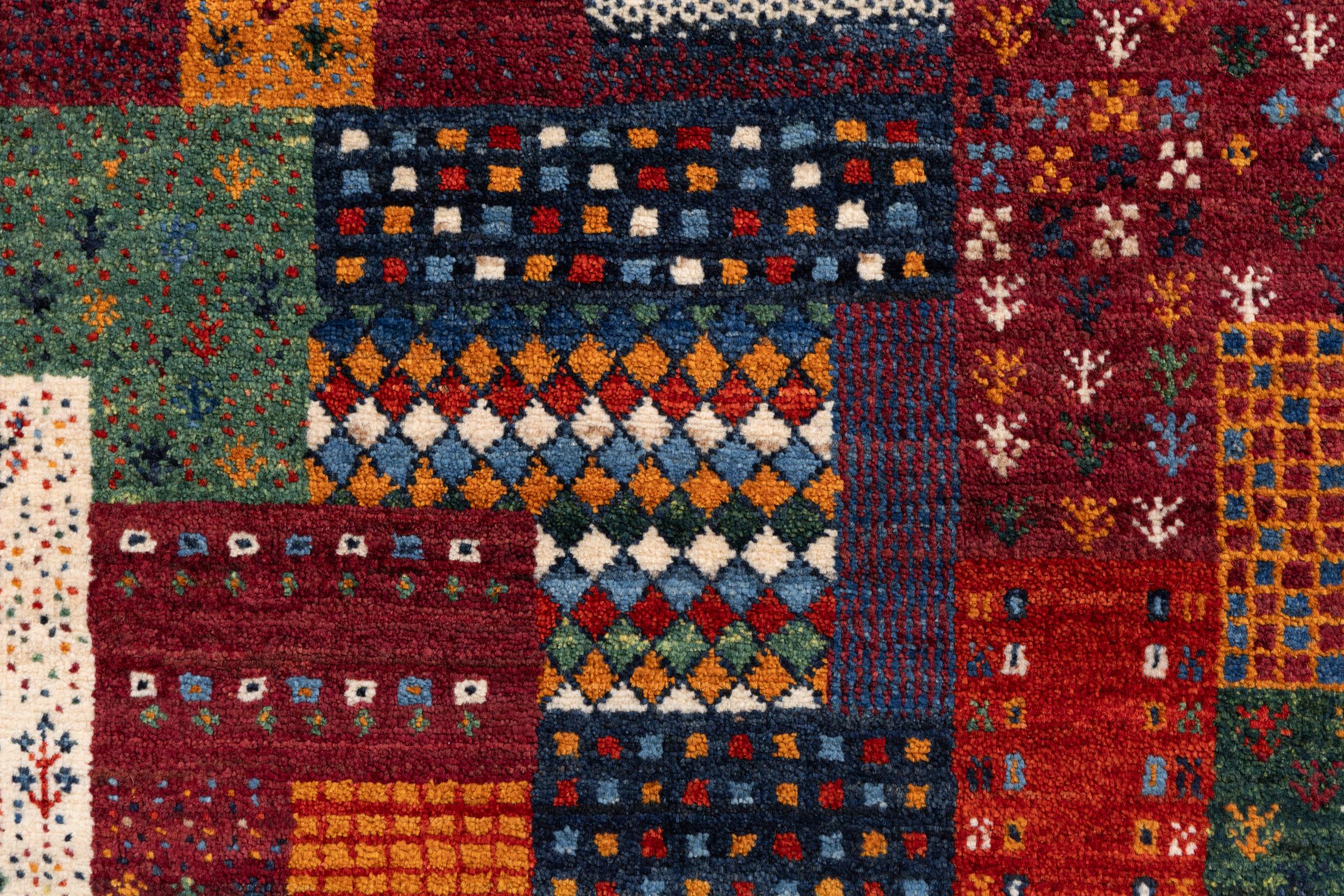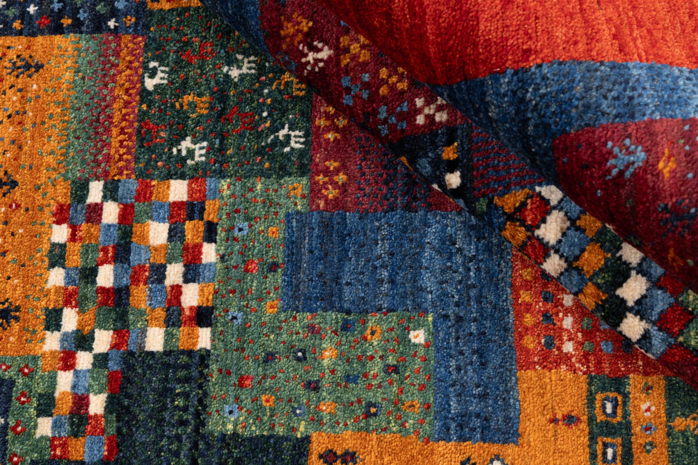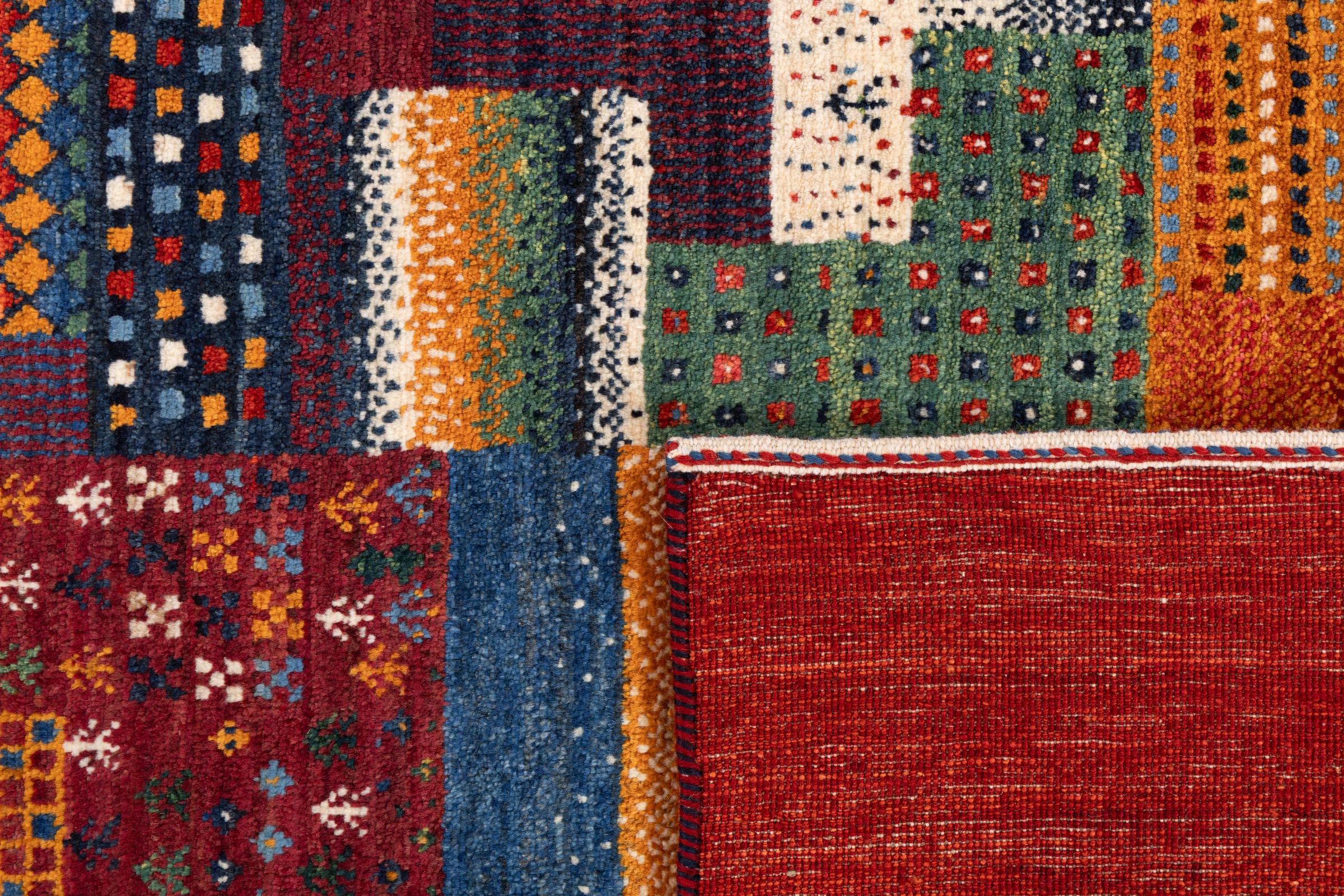Ten piękny dywan jest perskim Gabbeh i dlatego należy do najwyższej jakości dywanów Gabbeh. Dywany są wiązane przez nomadów lub pół-nomadzi w Iranie zgodnie z tradycyjnym rzemiosłem. Proste motywy i wzory są w większości inspirowane bezpośrednim otoczeniem nomadów. Na przykład wielbłądy, drzewa lub krzewy można znaleźć na tradycyjnych dywanach. Perskie dywany Gabbeh wykonane są z wełny pochodzącej z lokalnie hodowanych stad owiec. Wełna jest więc w większości przypadków nadal obracana ręcznie. Tak więc każdy z tych orientalnych dywanów uosabia unikalny charakter wielowiekowej kultury.