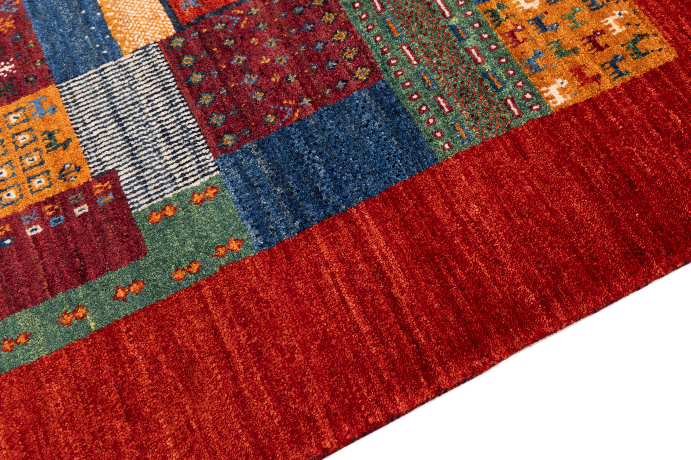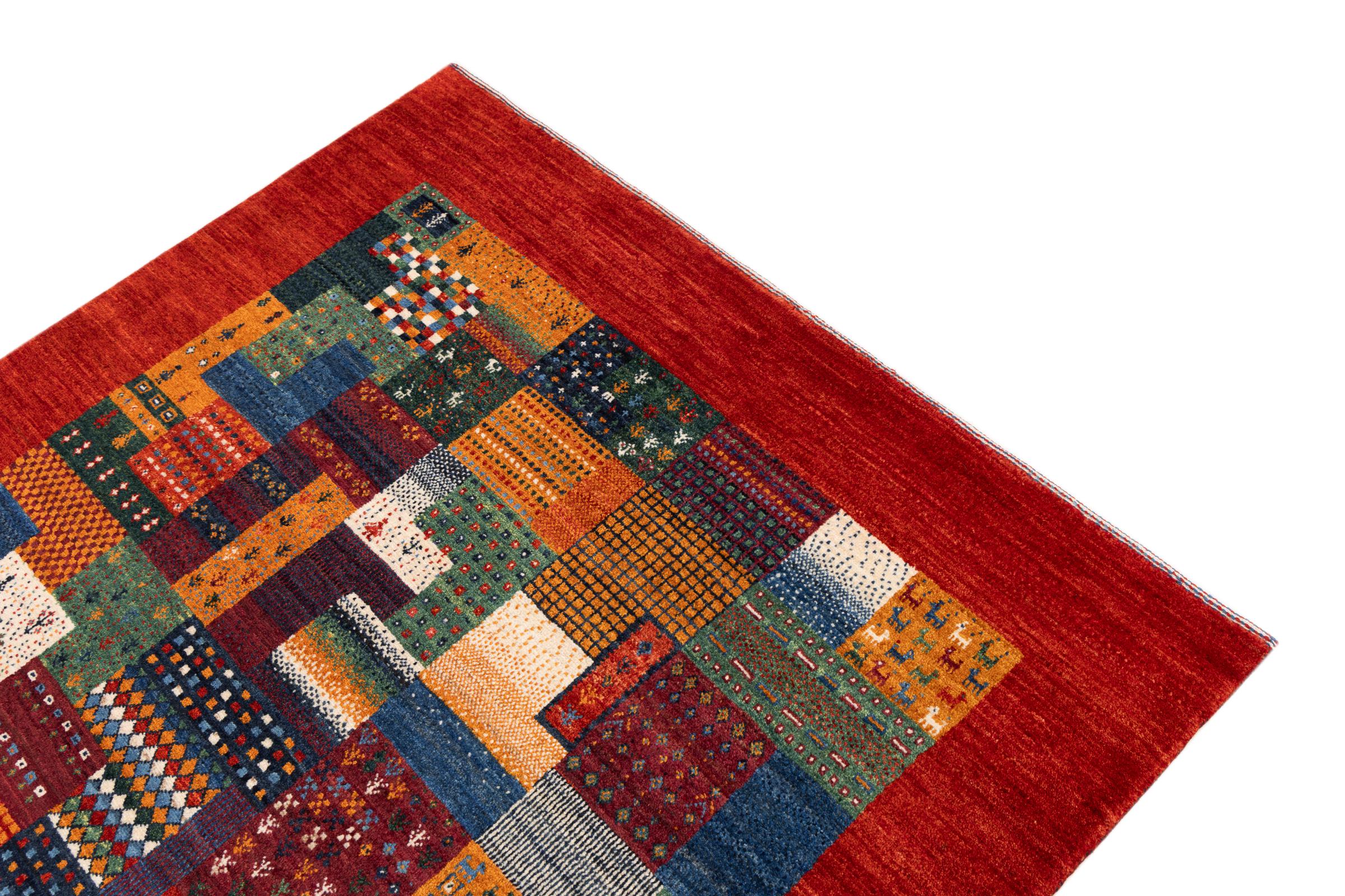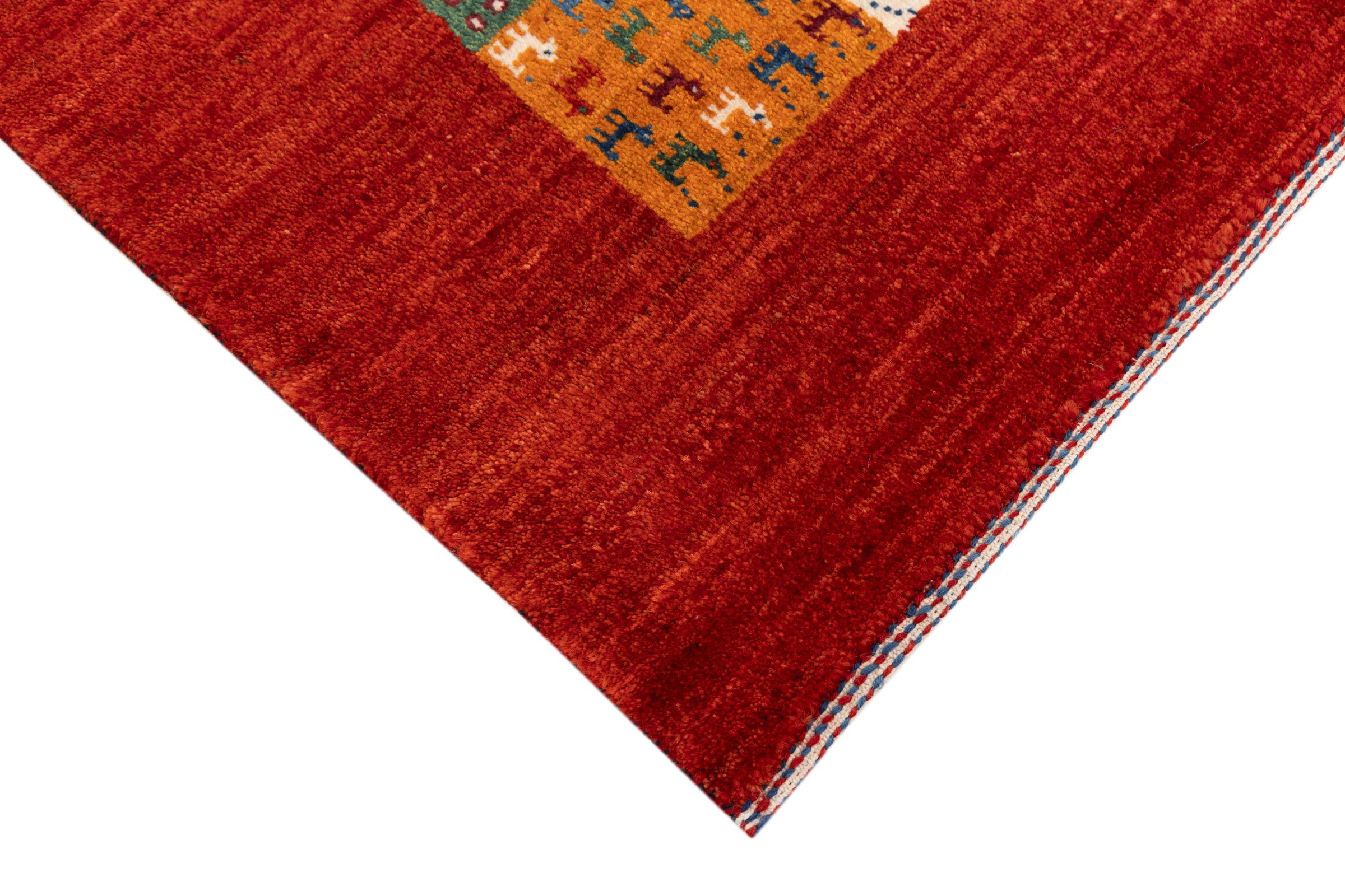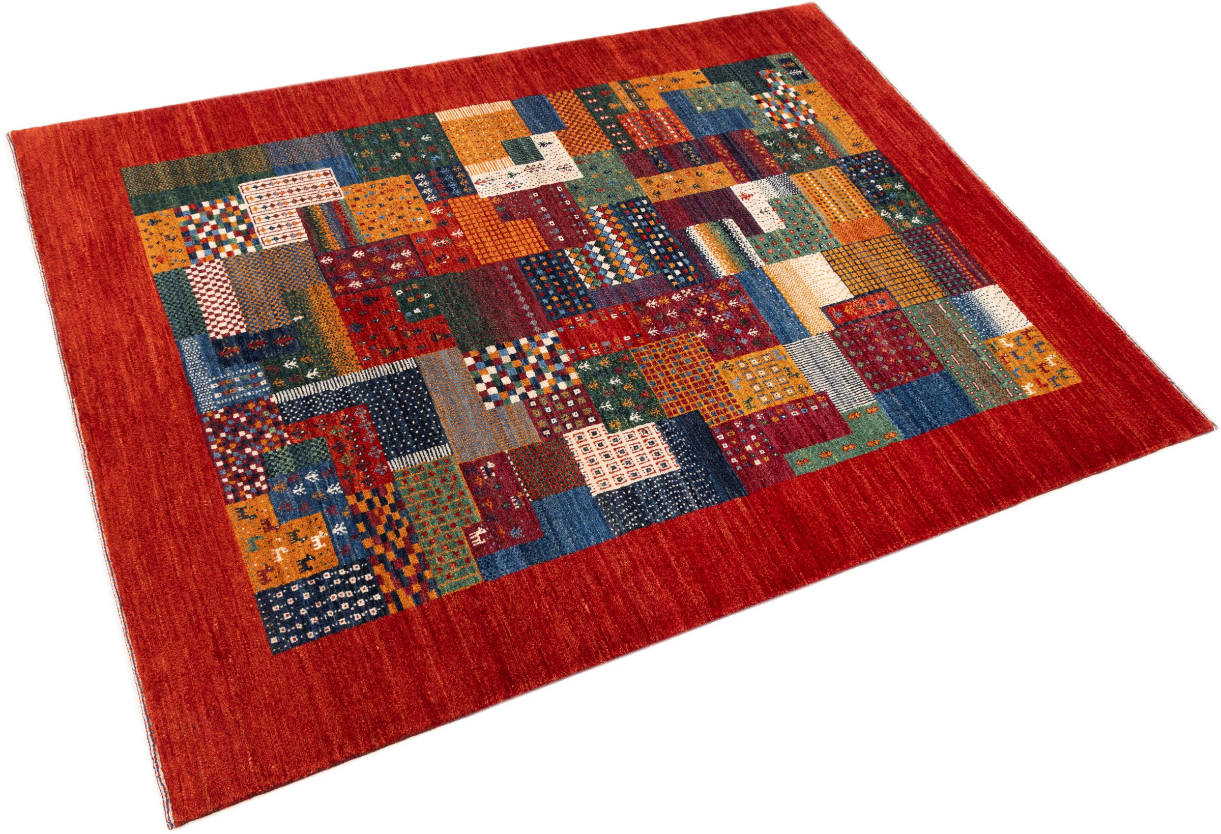 Ten piękny dywan jest perskim Gabbeh i dlatego należy do najwyższej jakości dywanów Gabbeh. Dywany są wiązane przez nomadów lub pół-nomadzi w Iranie zgodnie z tradycyjnym rzemiosłem. Proste motywy i wzory są w większości inspirowane bezpośrednim otoczeniem nomadów. Na przykład wielbłądy, drzewa lub krzewy można znaleźć na tradycyjnych dywanach. Perskie dywany Gabbeh wykonane są z wełny pochodzącej z lokalnie hodowanych stad owiec. Wełna jest więc w większości przypadków nadal obracana ręcznie. Tak więc każdy z tych orientalnych dywanów uosabia unikalny charakter wielowiekowej kultury.