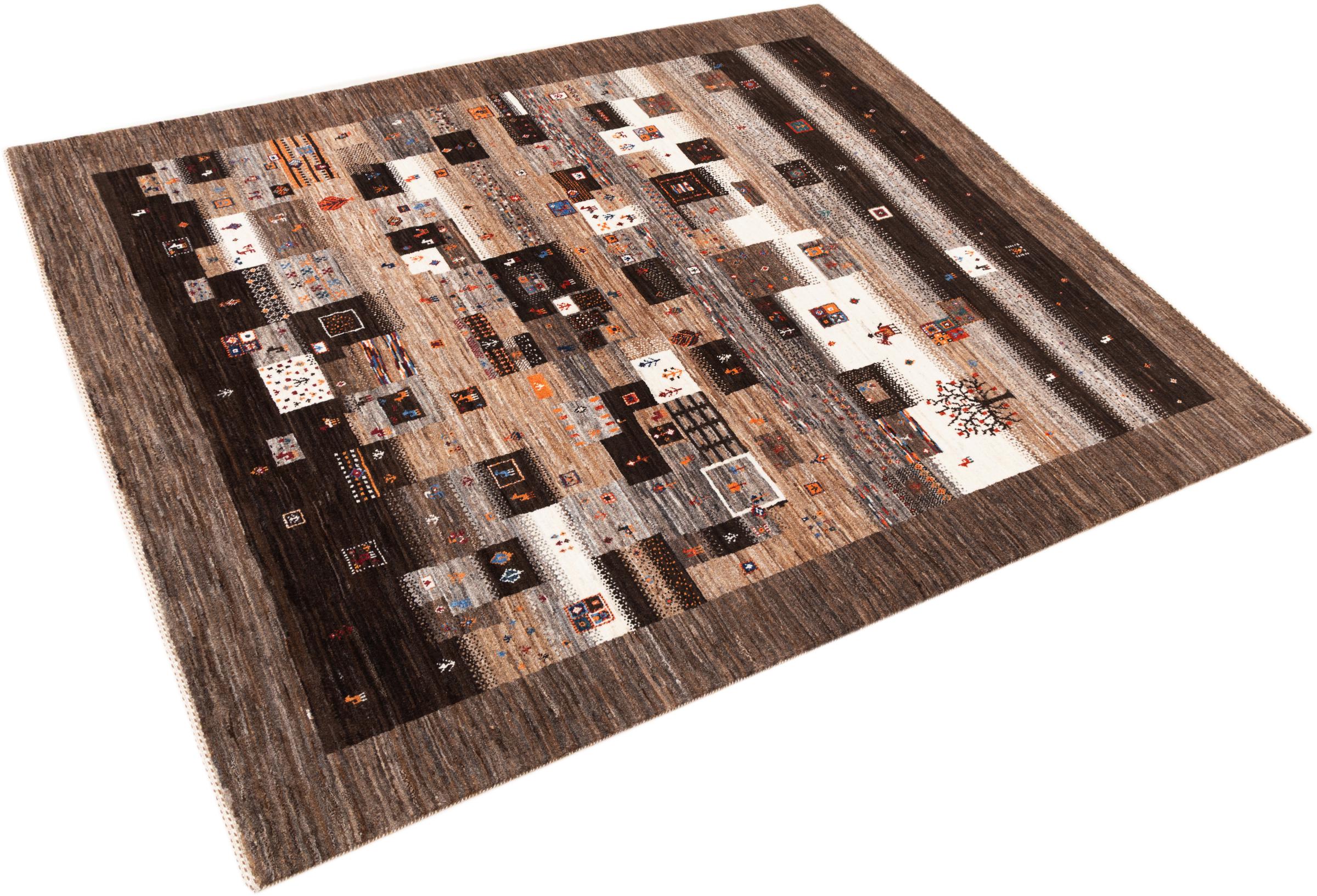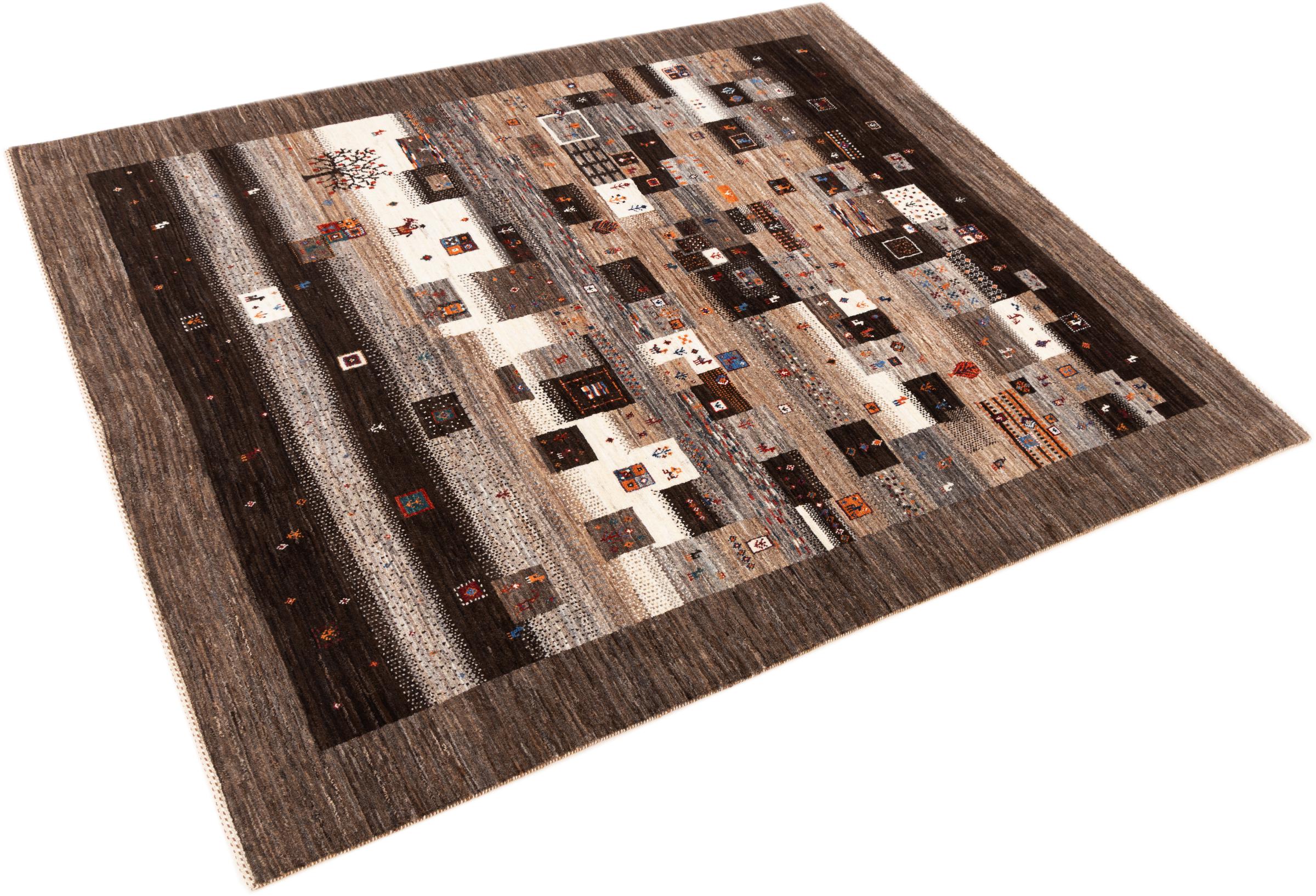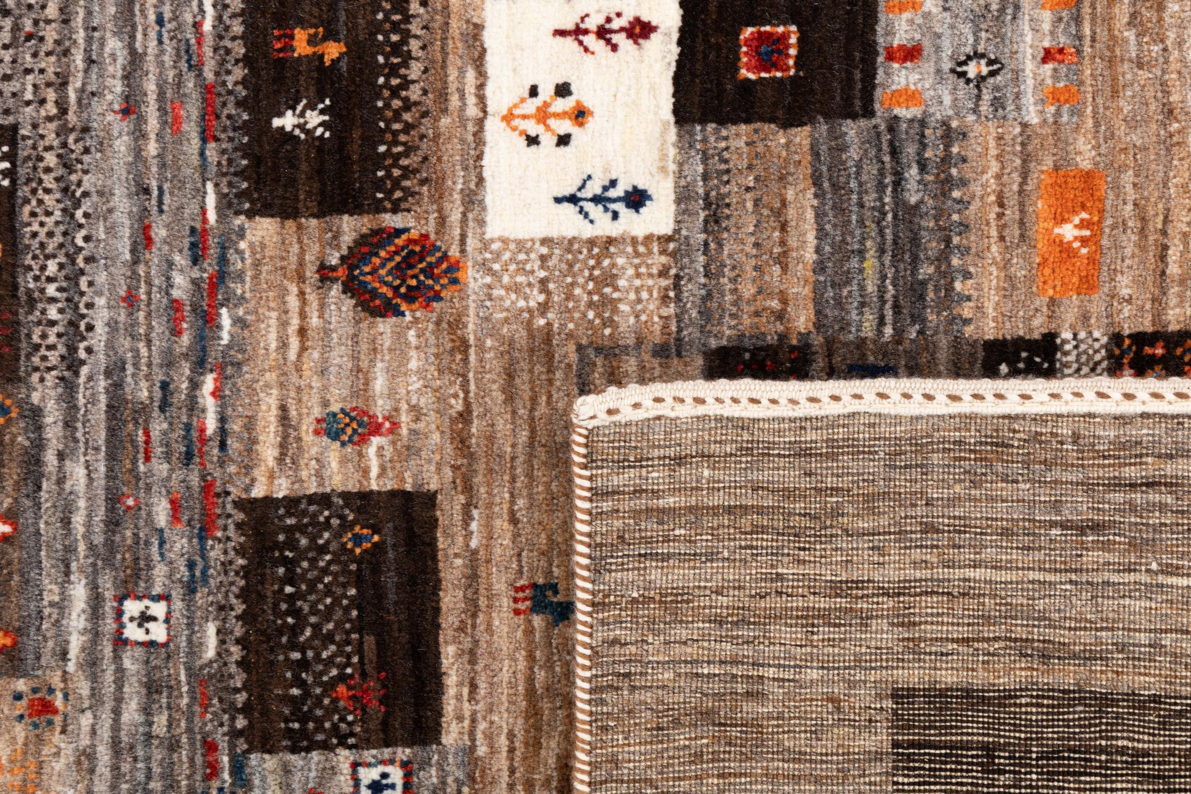 Ten piękny dywan jest perskim Gabbeh i dlatego należy do najwyższej jakości dywanów Gabbeh. Dywany są wiązane przez nomadów lub pół-nomadzi w Iranie zgodnie z tradycyjnym rzemiosłem. Proste motywy i wzory są w większości inspirowane bezpośrednim otoczeniem nomadów. Na przykład wielbłądy, drzewa lub krzewy można znaleźć na tradycyjnych dywanach. Perskie dywany Gabbeh wykonane są z wełny pochodzącej z lokalnie hodowanych stad owiec. Wełna jest więc w większości przypadków nadal obracana ręcznie. Tak więc każdy z tych orientalnych dywanów uosabia unikalny charakter wielowiekowej kultury.