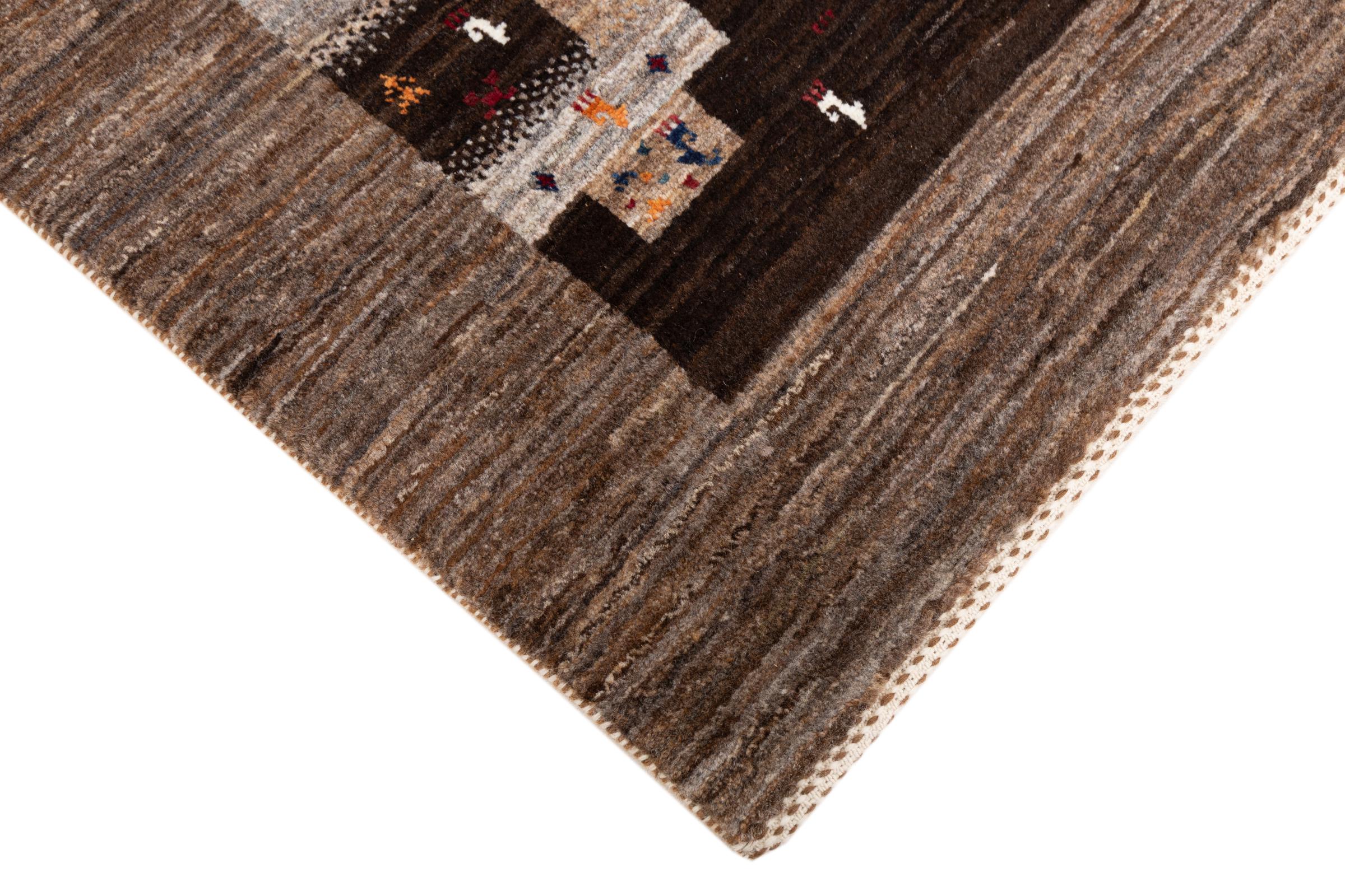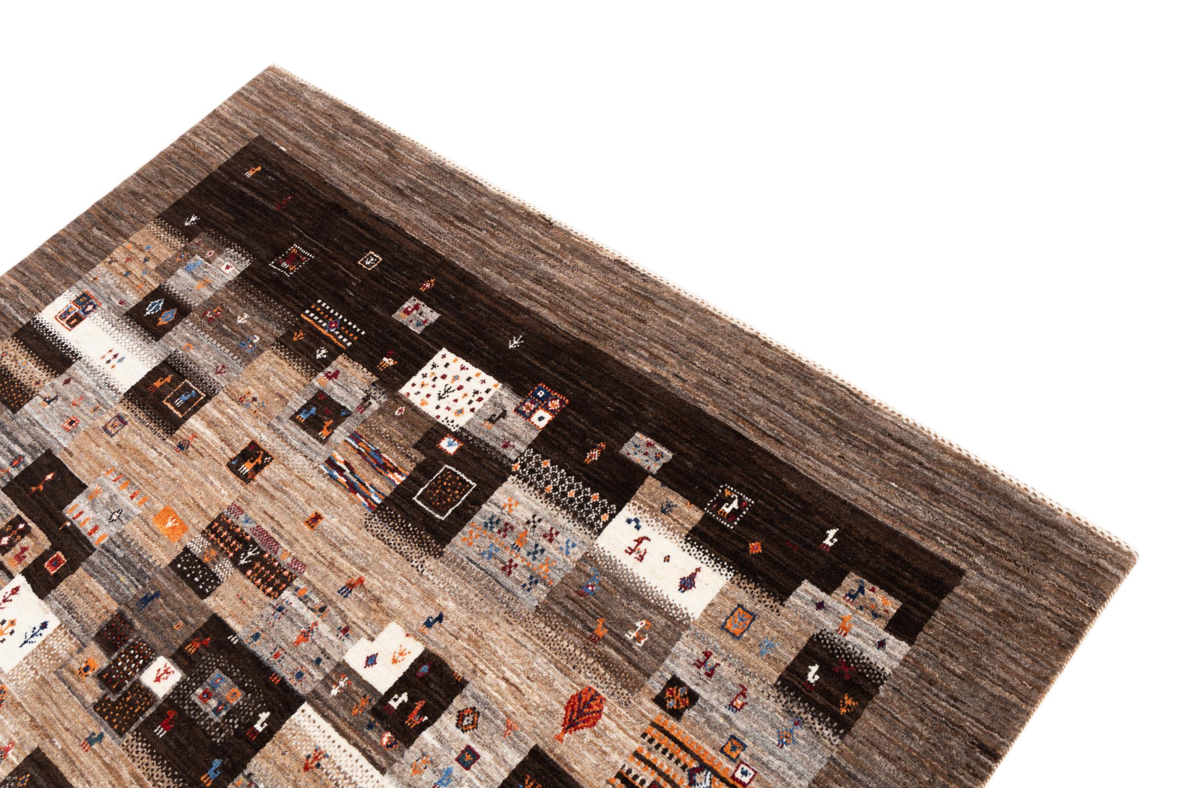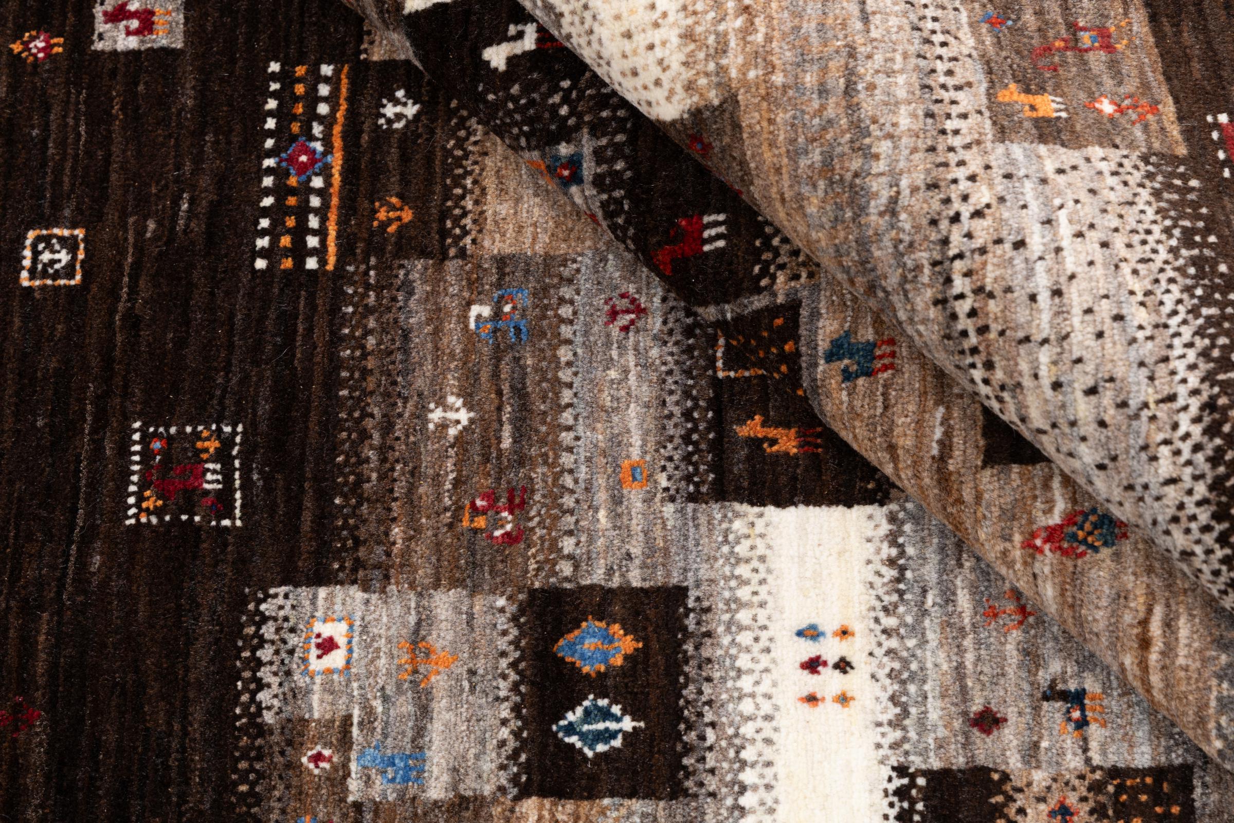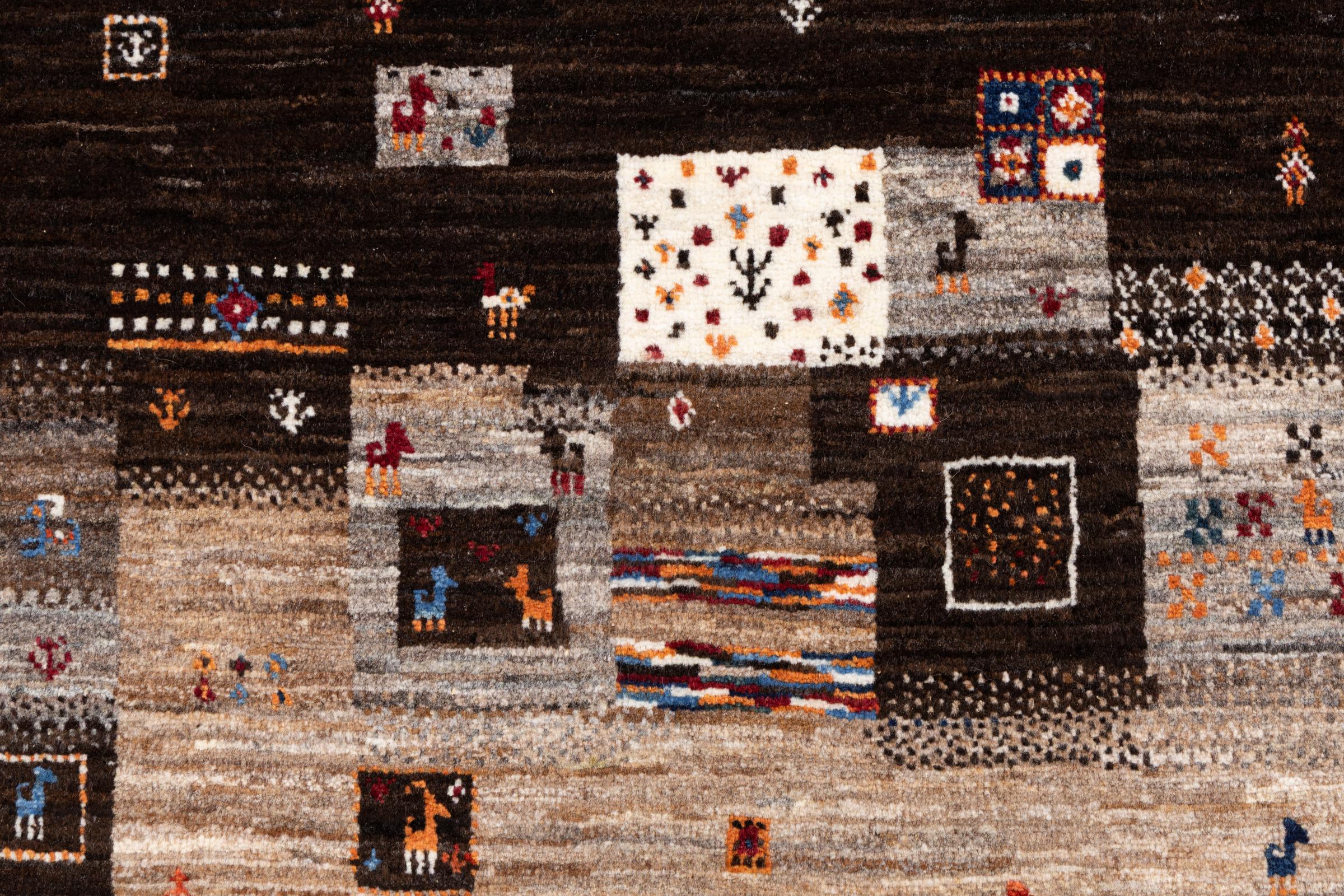 Ten piękny dywan jest perskim Gabbeh i dlatego należy do najwyższej jakości dywanów Gabbeh. Dywany są wiązane przez nomadów lub pół-nomadzi w Iranie zgodnie z tradycyjnym rzemiosłem. Proste motywy i wzory są w większości inspirowane bezpośrednim otoczeniem nomadów. Na przykład wielbłądy, drzewa lub krzewy można znaleźć na tradycyjnych dywanach. Perskie dywany Gabbeh wykonane są z wełny pochodzącej z lokalnie hodowanych stad owiec. Wełna jest więc w większości przypadków nadal obracana ręcznie. Tak więc każdy z tych orientalnych dywanów uosabia unikalny charakter wielowiekowej kultury.