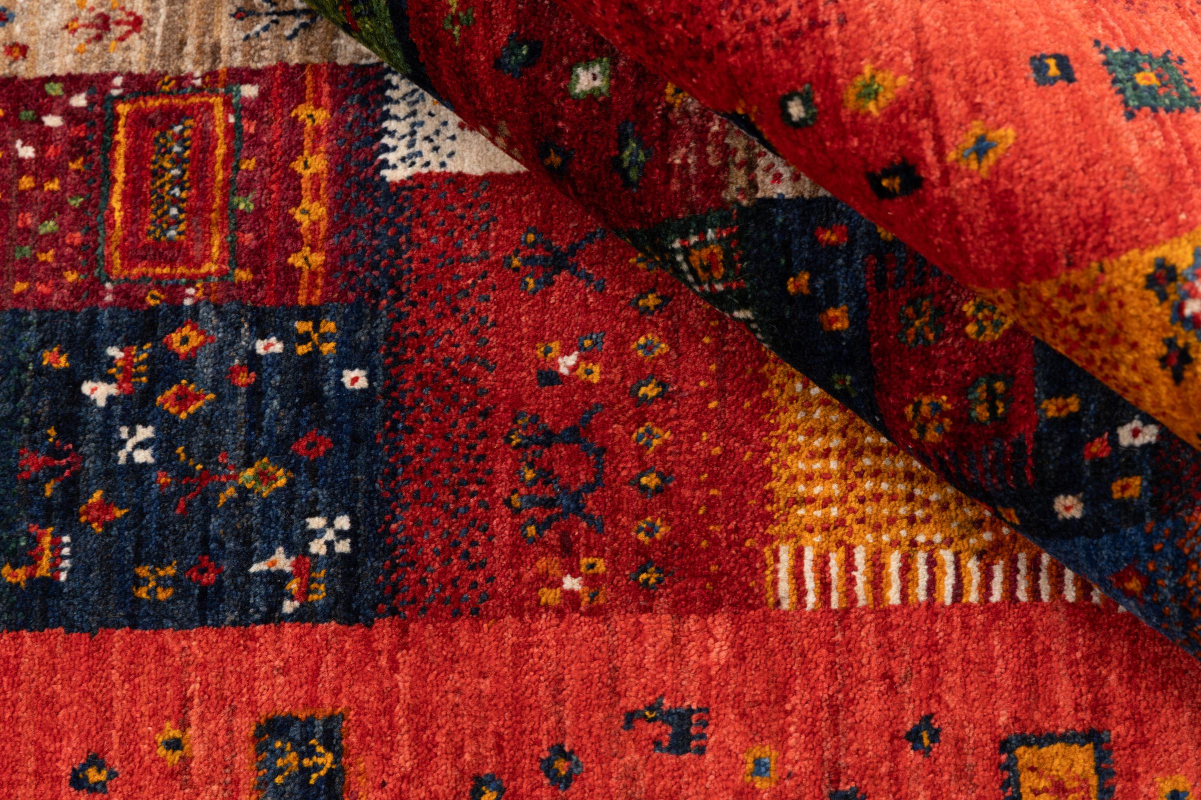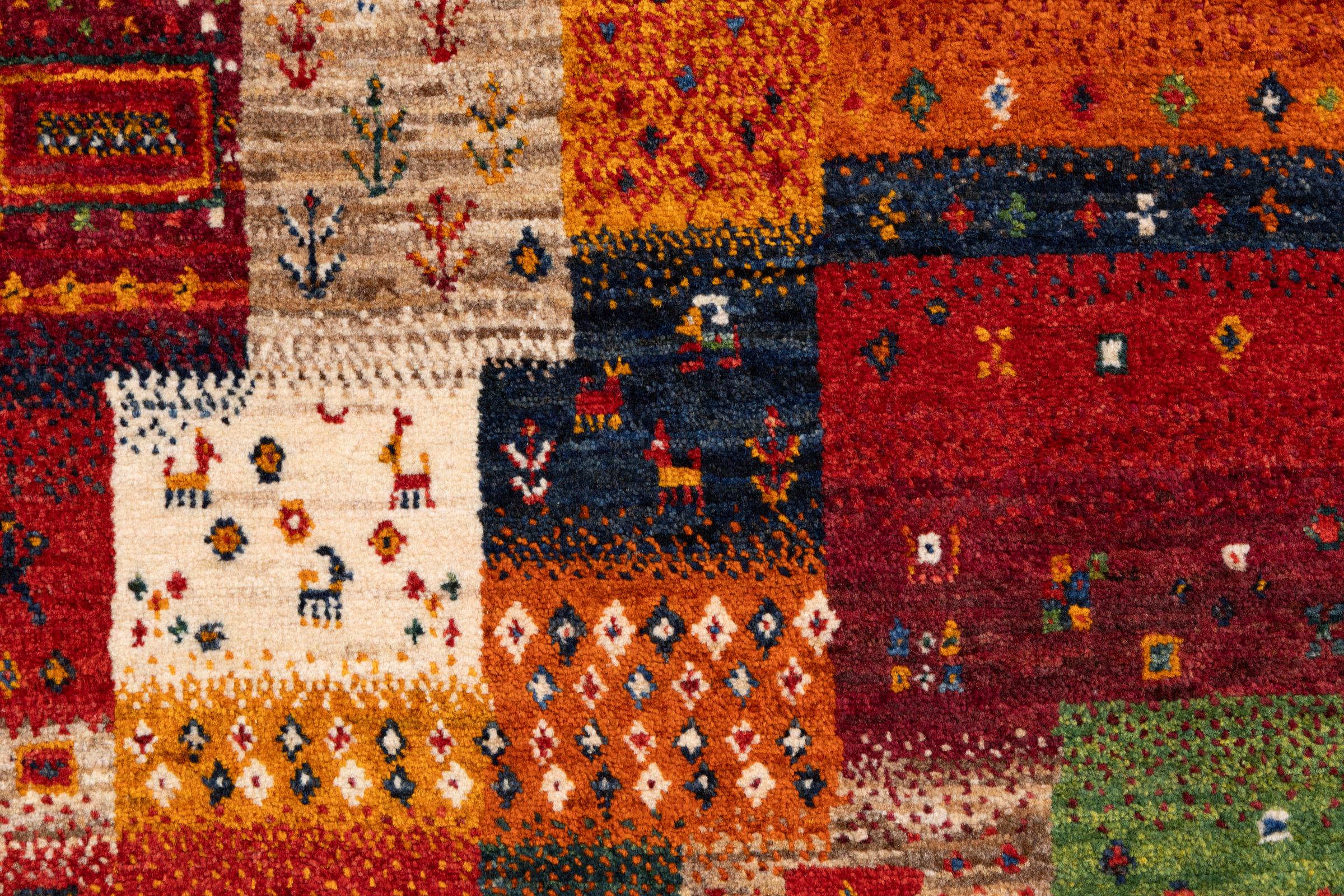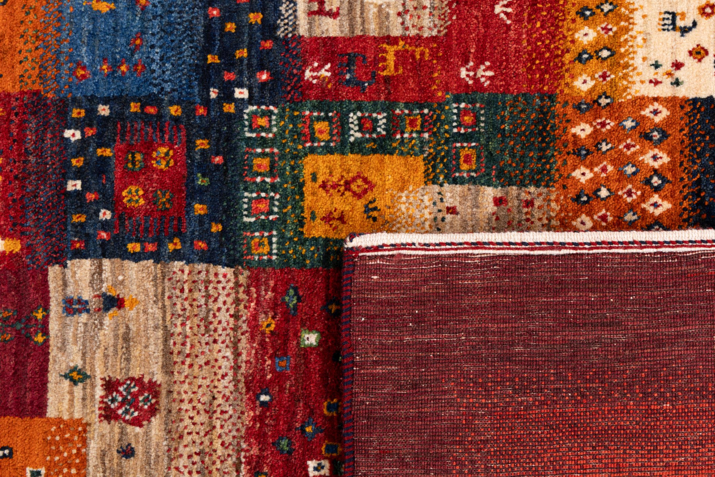 Ten piękny dywan jest perskim Gabbeh i dlatego należy do najwyższej jakości dywanów Gabbeh. Dywany są wiązane przez nomadów lub pół-nomadzi w Iranie zgodnie z tradycyjnym rzemiosłem. Proste motywy i wzory są w większości inspirowane bezpośrednim otoczeniem nomadów. Na przykład wielbłądy, drzewa lub krzewy można znaleźć na tradycyjnych dywanach. Perskie dywany Gabbeh wykonane są z wełny pochodzącej z lokalnie hodowanych stad owiec. Wełna jest więc w większości przypadków nadal obracana ręcznie. Tak więc każdy z tych orientalnych dywanów uosabia unikalny charakter wielowiekowej kultury.