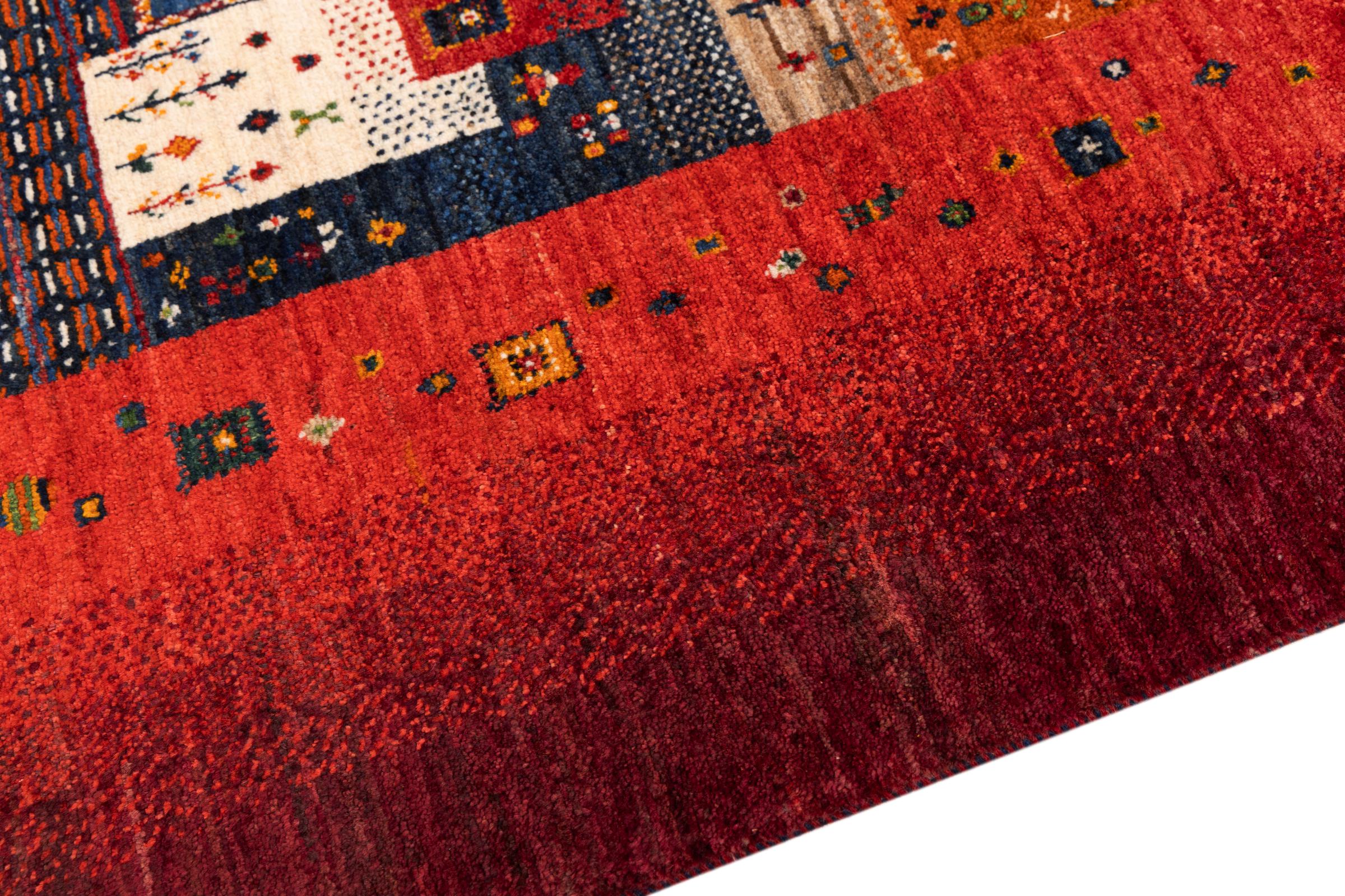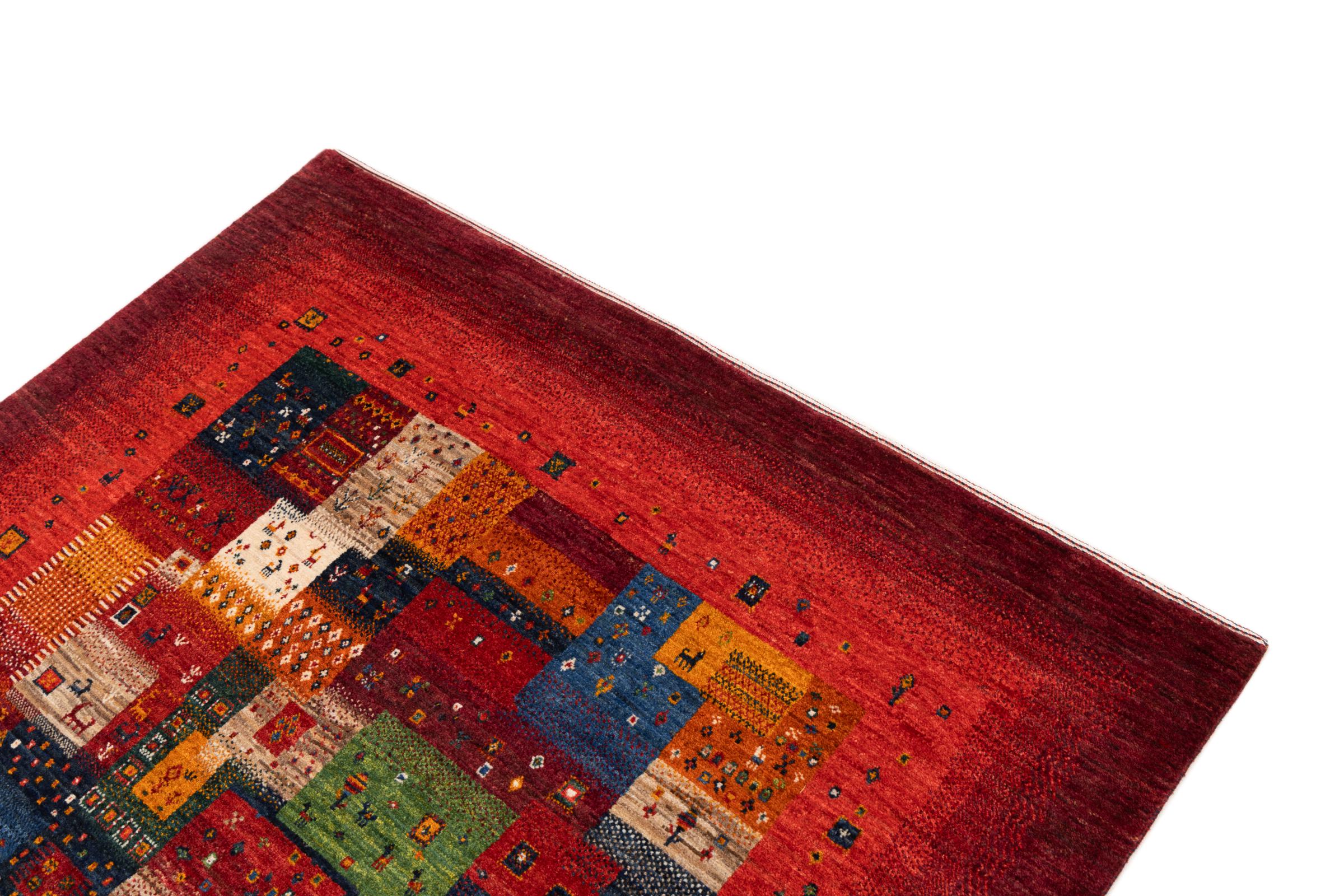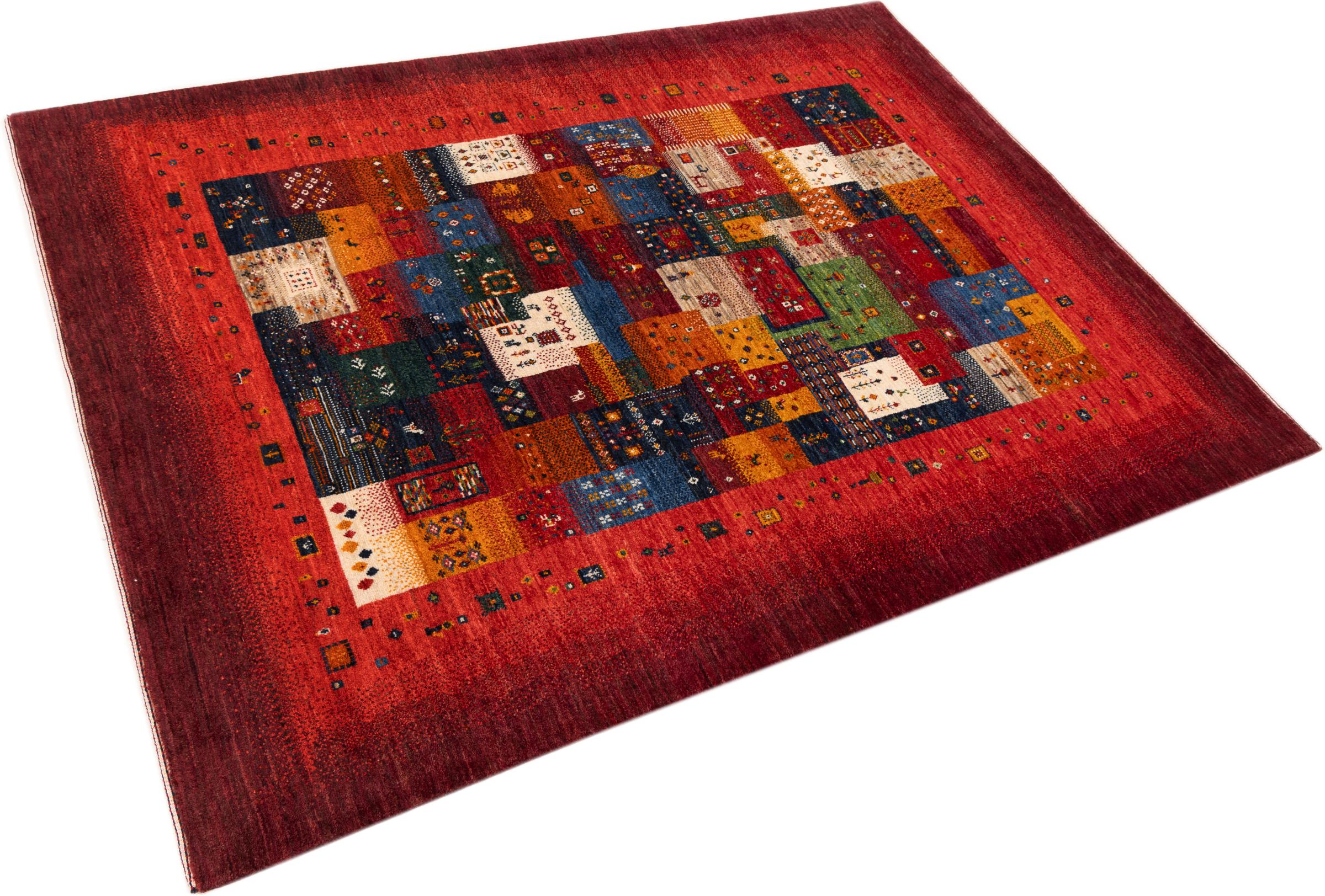 Ten piękny dywan jest perskim Gabbeh i dlatego należy do najwyższej jakości dywanów Gabbeh. Dywany są wiązane przez nomadów lub pół-nomadzi w Iranie zgodnie z tradycyjnym rzemiosłem. Proste motywy i wzory są w większości inspirowane bezpośrednim otoczeniem nomadów. Na przykład wielbłądy, drzewa lub krzewy można znaleźć na tradycyjnych dywanach. Perskie dywany Gabbeh wykonane są z wełny pochodzącej z lokalnie hodowanych stad owiec. Wełna jest więc w większości przypadków nadal obracana ręcznie. Tak więc każdy z tych orientalnych dywanów uosabia unikalny charakter wielowiekowej kultury.