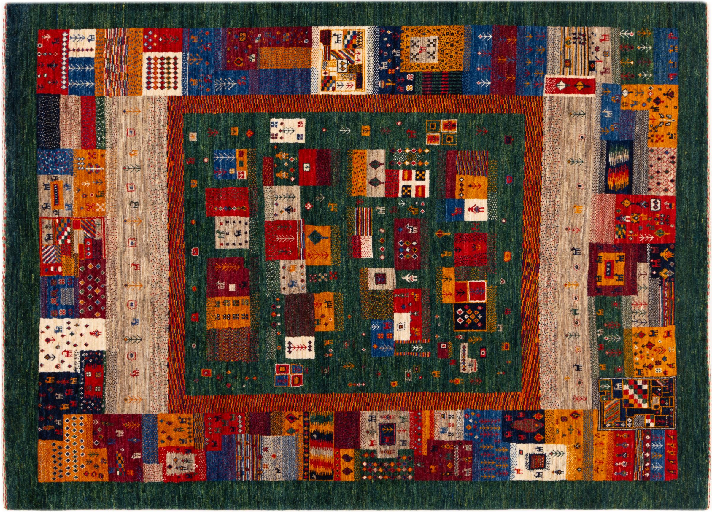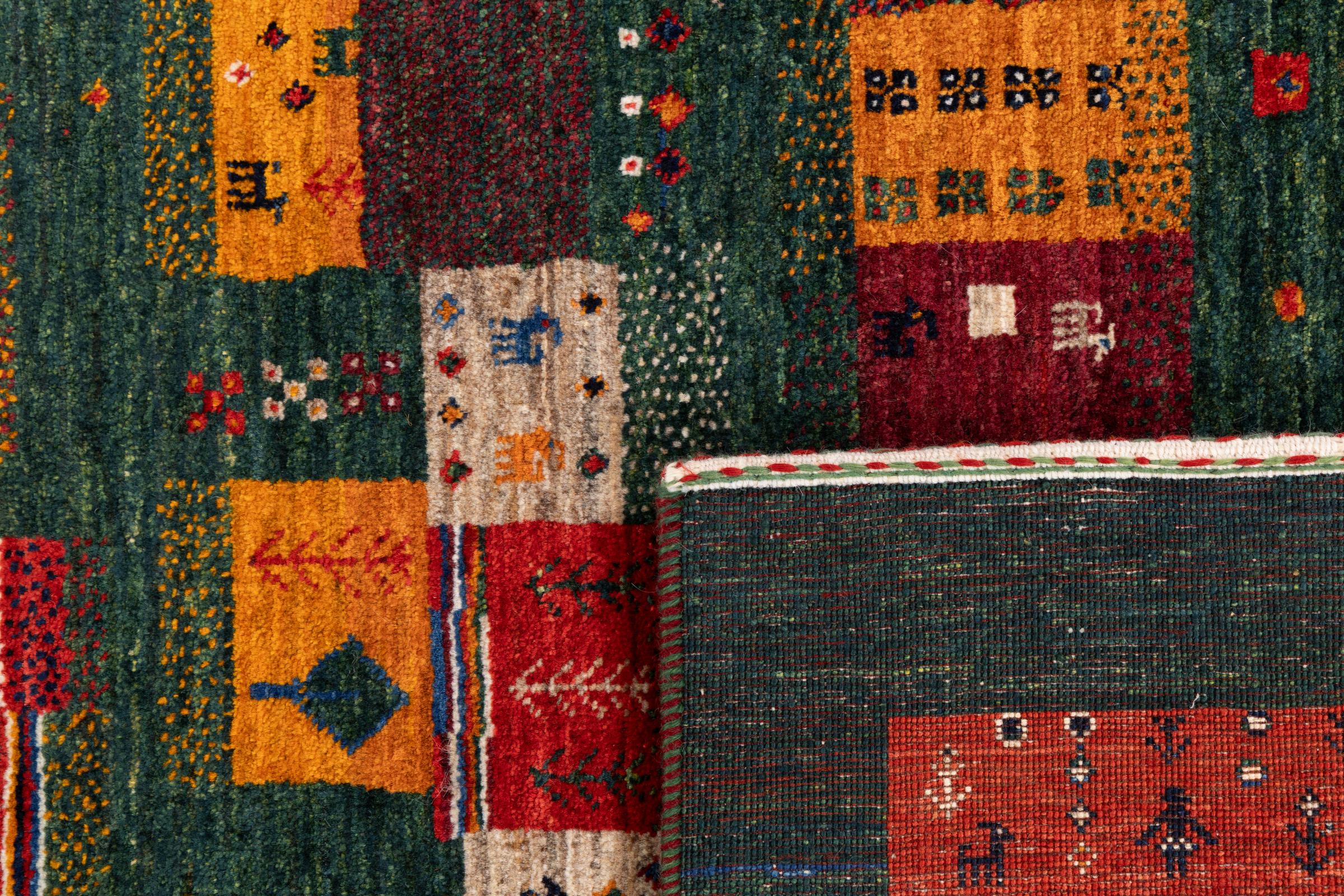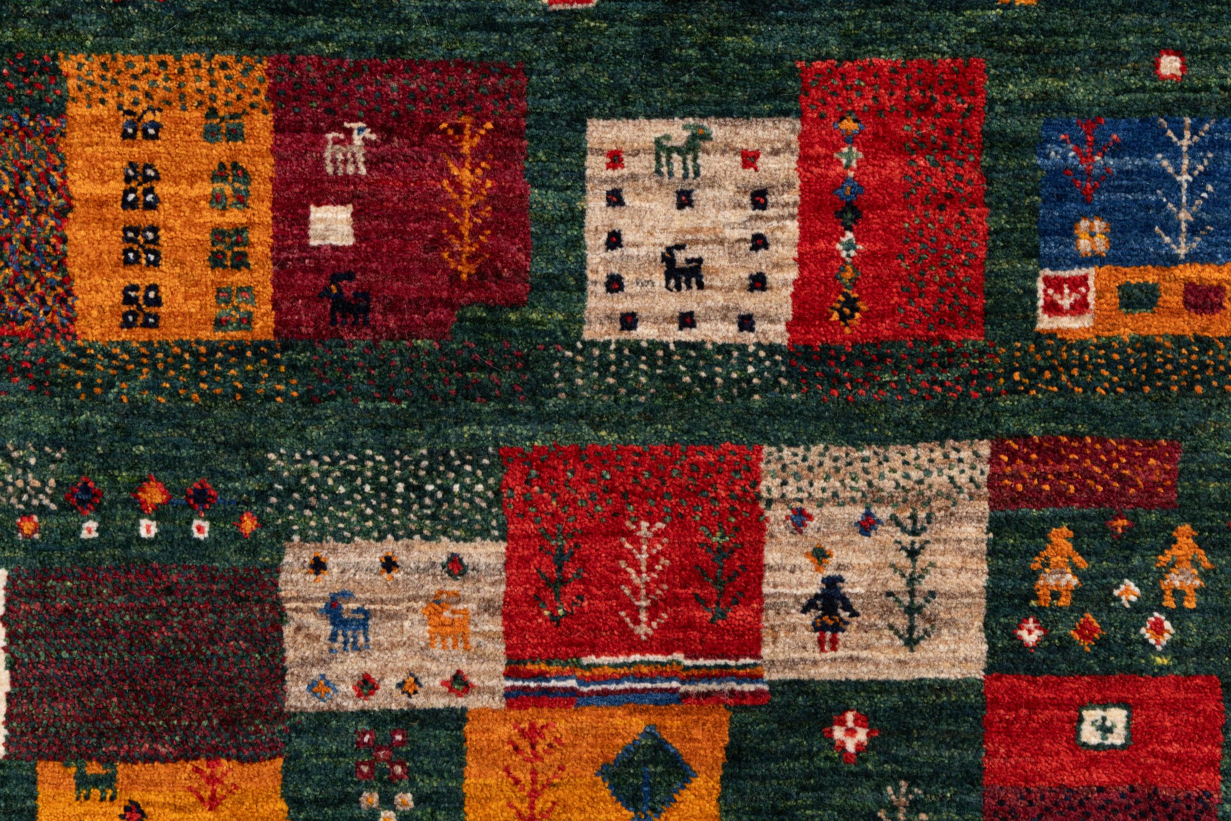 Ten piękny dywan jest perskim Gabbeh i dlatego należy do najwyższej jakości dywanów Gabbeh. Dywany są wiązane przez nomadów lub pół-nomadzi w Iranie zgodnie z tradycyjnym rzemiosłem. Proste motywy i wzory są w większości inspirowane bezpośrednim otoczeniem nomadów. Na przykład wielbłądy, drzewa lub krzewy można znaleźć na tradycyjnych dywanach. Perskie dywany Gabbeh wykonane są z wełny pochodzącej z lokalnie hodowanych stad owiec. Wełna jest więc w większości przypadków nadal obracana ręcznie. Tak więc każdy z tych orientalnych dywanów uosabia unikalny charakter wielowiekowej kultury.