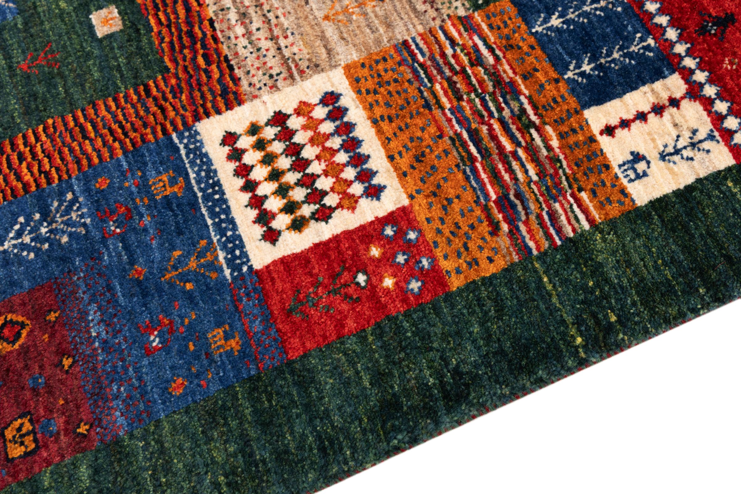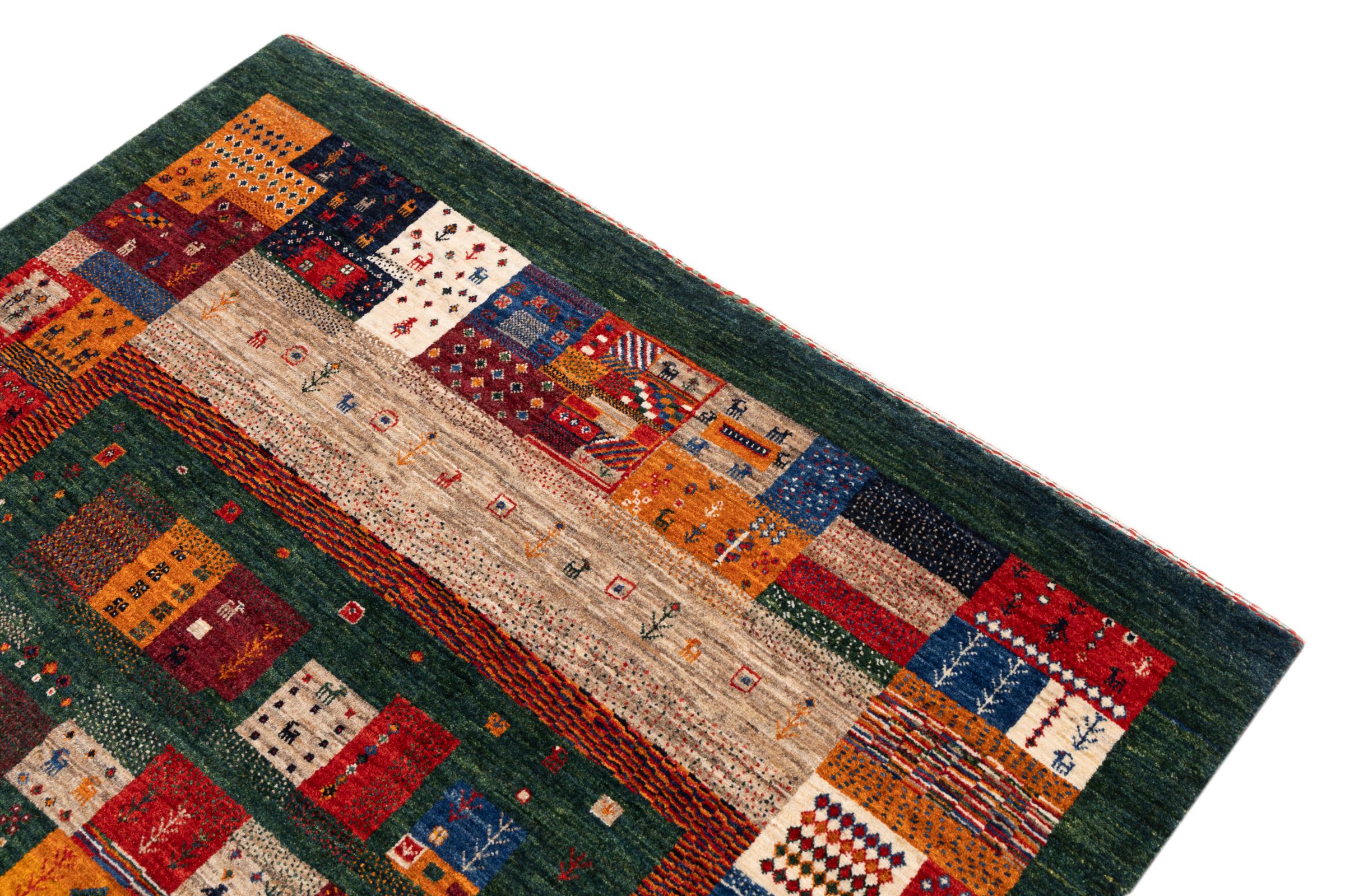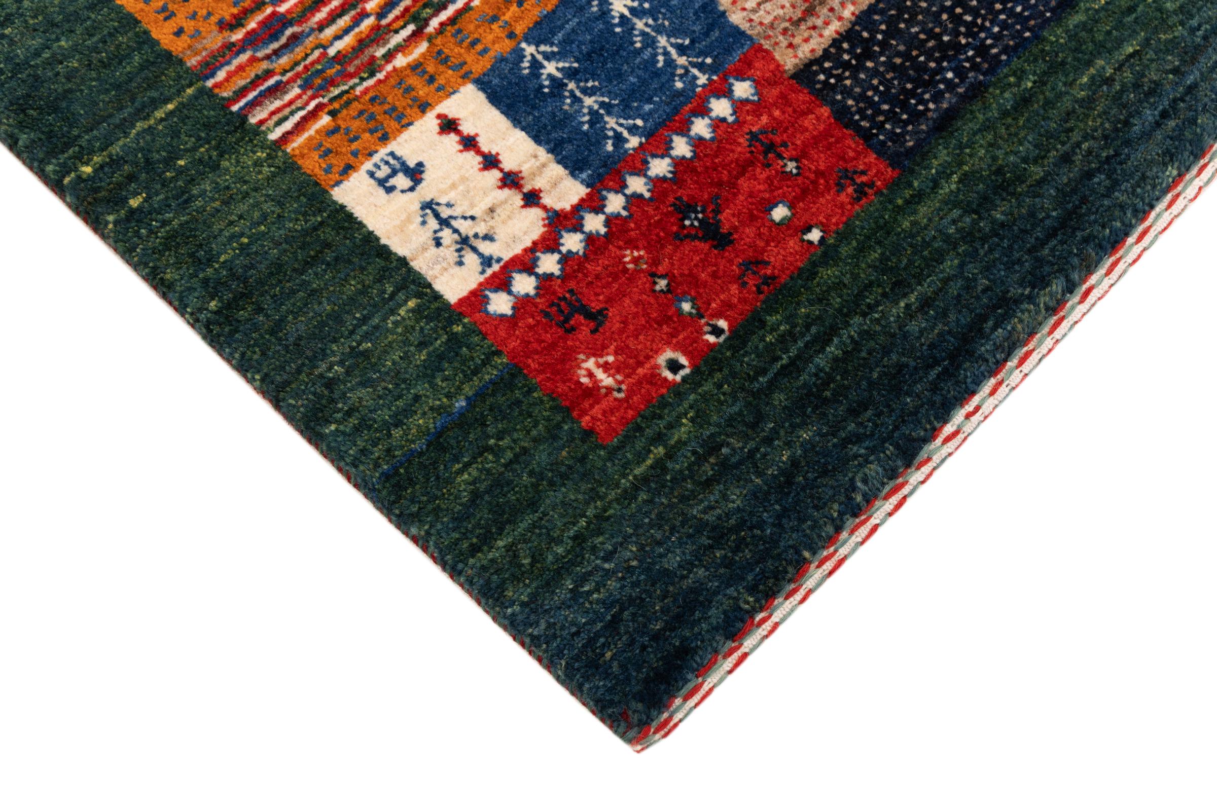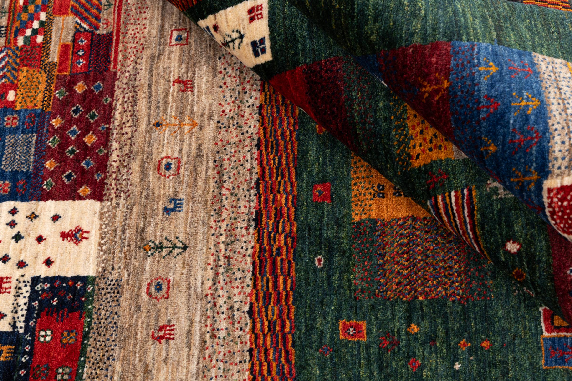 Ten piękny dywan jest perskim Gabbeh i dlatego należy do najwyższej jakości dywanów Gabbeh. Dywany są wiązane przez nomadów lub pół-nomadzi w Iranie zgodnie z tradycyjnym rzemiosłem. Proste motywy i wzory są w większości inspirowane bezpośrednim otoczeniem nomadów. Na przykład wielbłądy, drzewa lub krzewy można znaleźć na tradycyjnych dywanach. Perskie dywany Gabbeh wykonane są z wełny pochodzącej z lokalnie hodowanych stad owiec. Wełna jest więc w większości przypadków nadal obracana ręcznie. Tak więc każdy z tych orientalnych dywanów uosabia unikalny charakter wielowiekowej kultury.