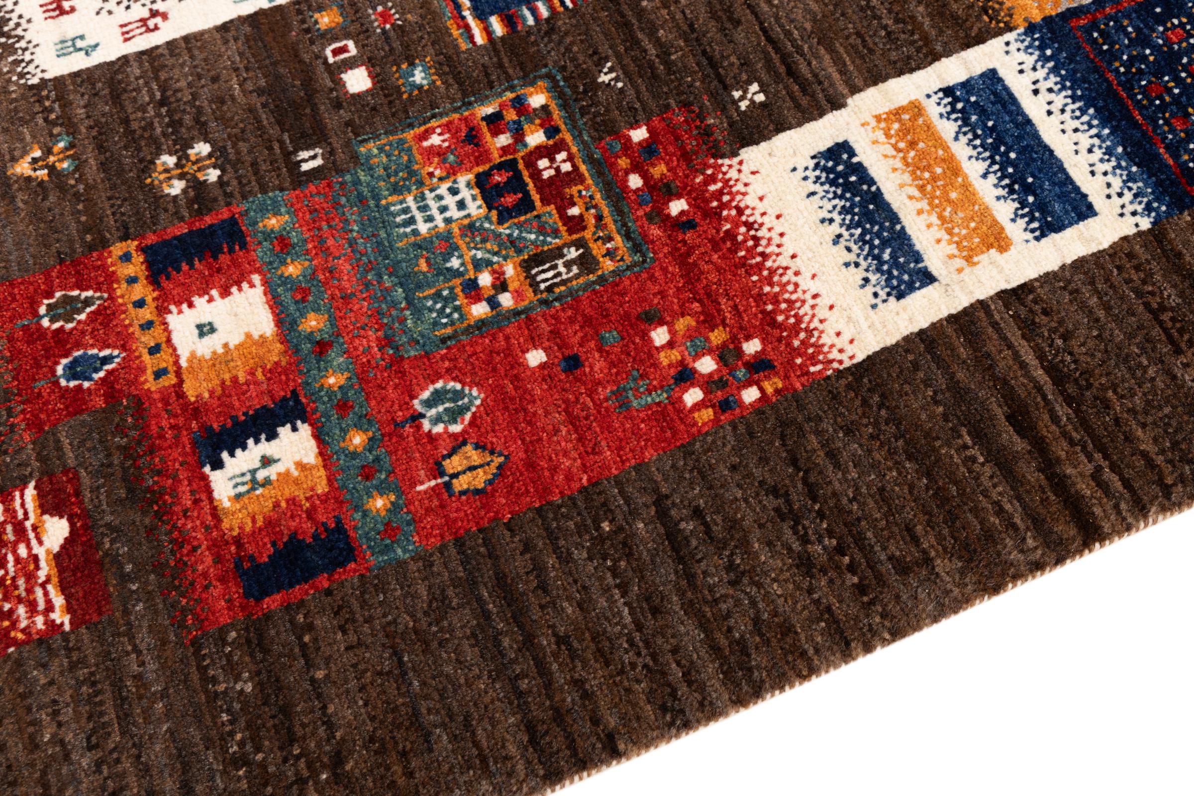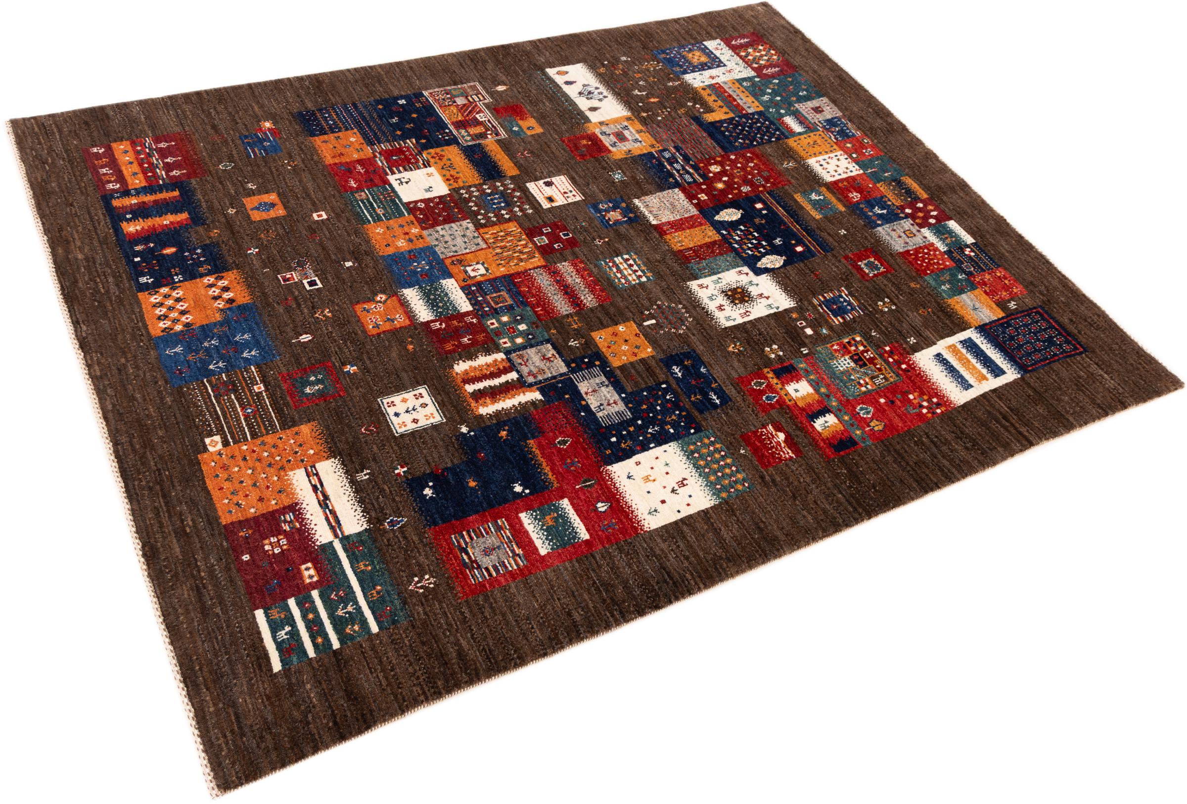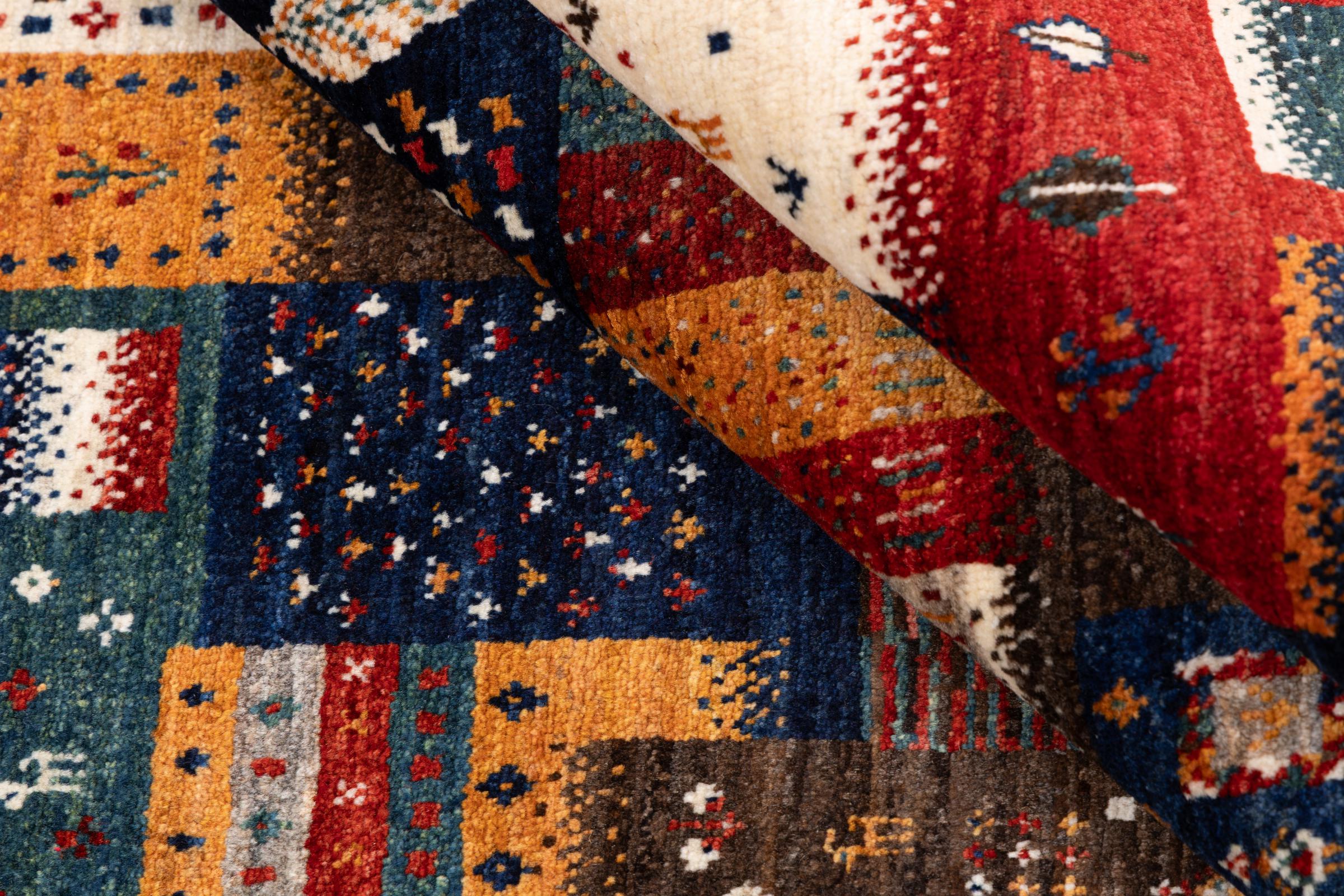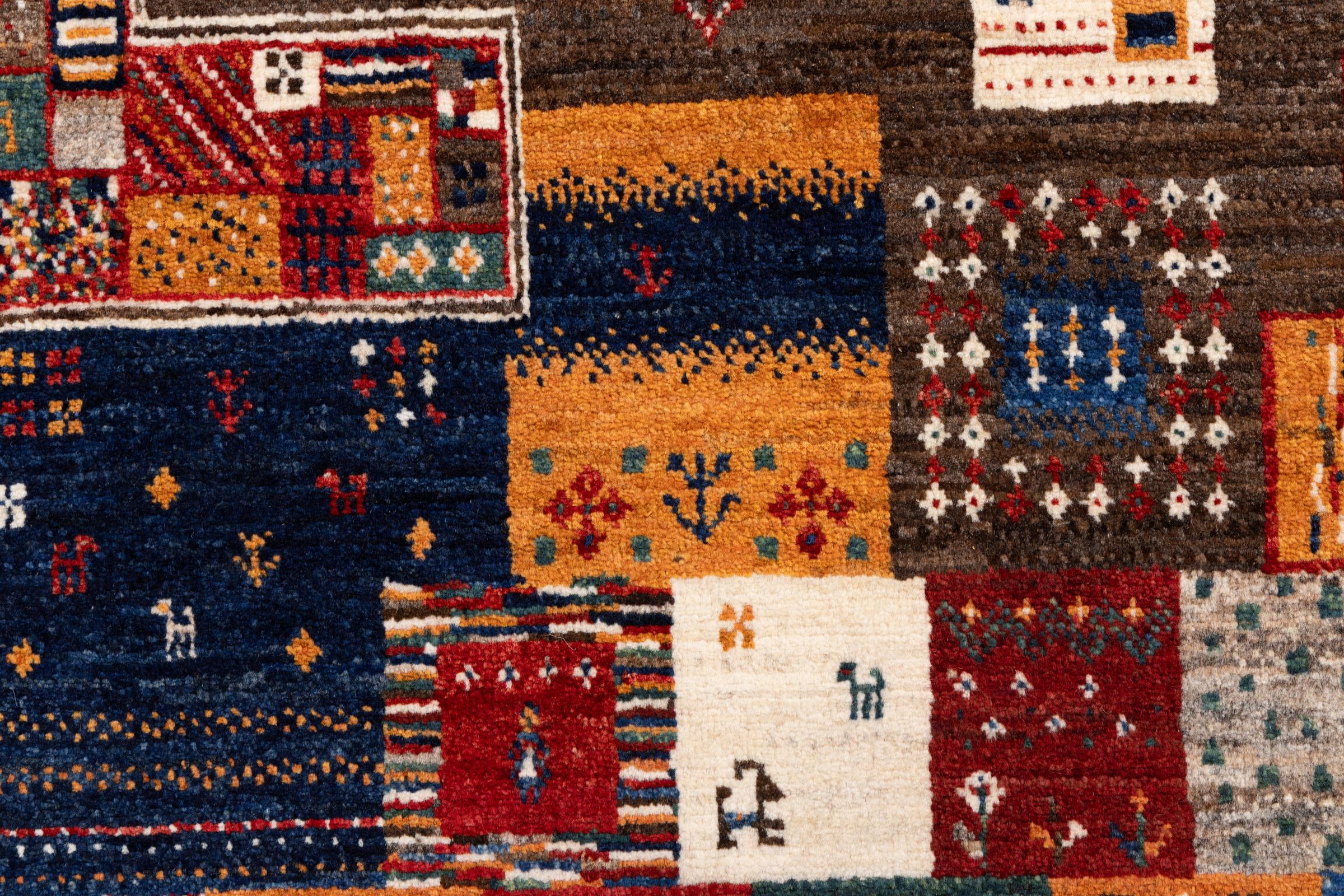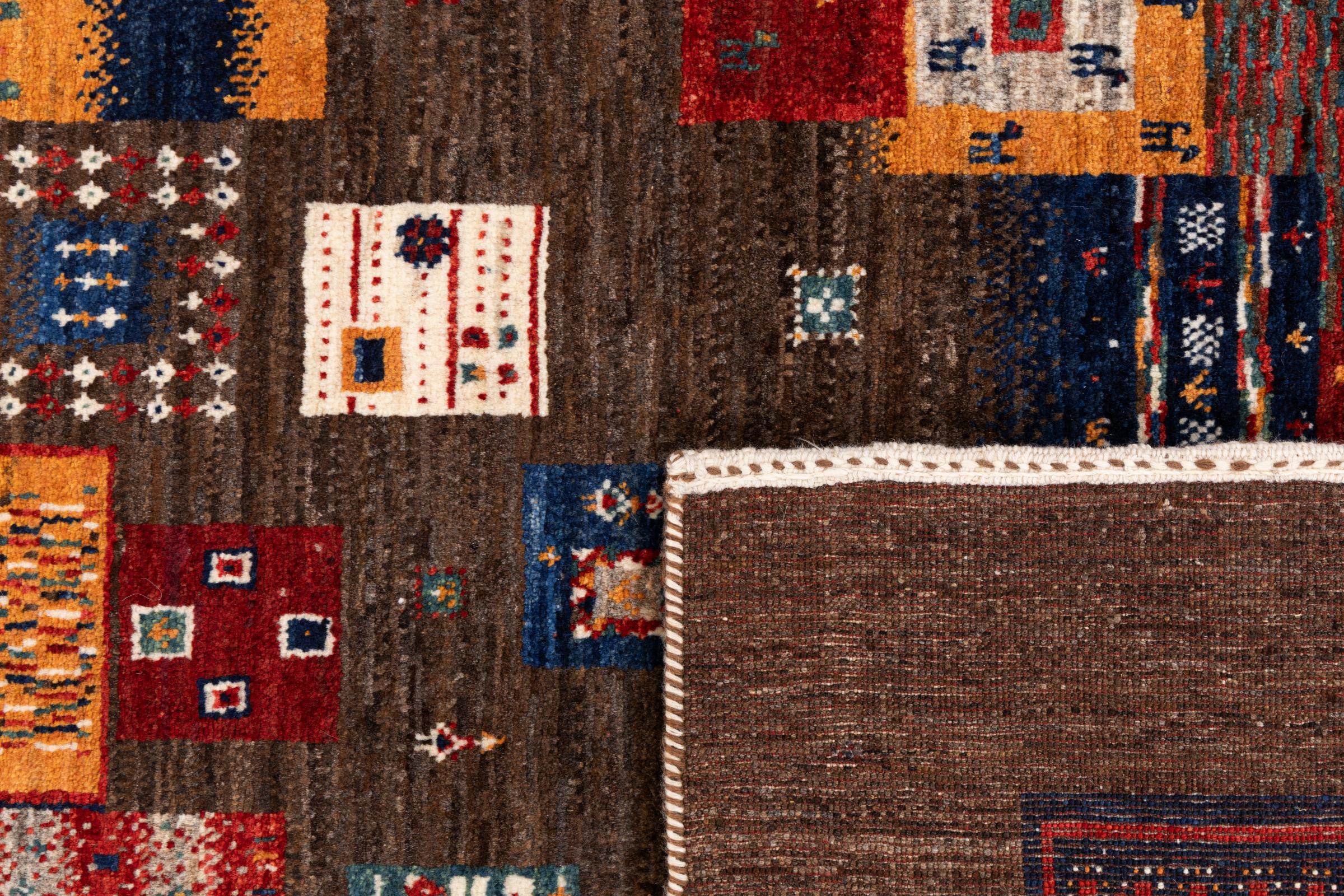 Ten piękny dywan jest perskim Gabbeh i dlatego należy do najwyższej jakości dywanów Gabbeh. Dywany są wiązane przez nomadów lub pół-nomadzi w Iranie zgodnie z tradycyjnym rzemiosłem. Proste motywy i wzory są w większości inspirowane bezpośrednim otoczeniem nomadów. Na przykład wielbłądy, drzewa lub krzewy można znaleźć na tradycyjnych dywanach. Perskie dywany Gabbeh wykonane są z wełny pochodzącej z lokalnie hodowanych stad owiec. Wełna jest więc w większości przypadków nadal obracana ręcznie. Tak więc każdy z tych orientalnych dywanów uosabia unikalny charakter wielowiekowej kultury.