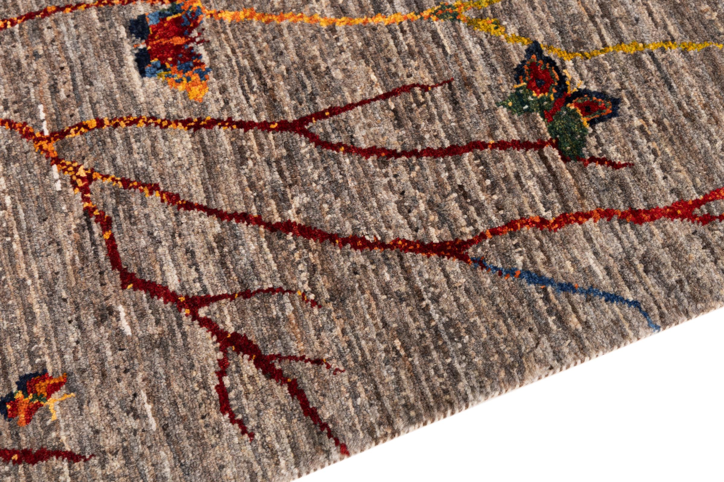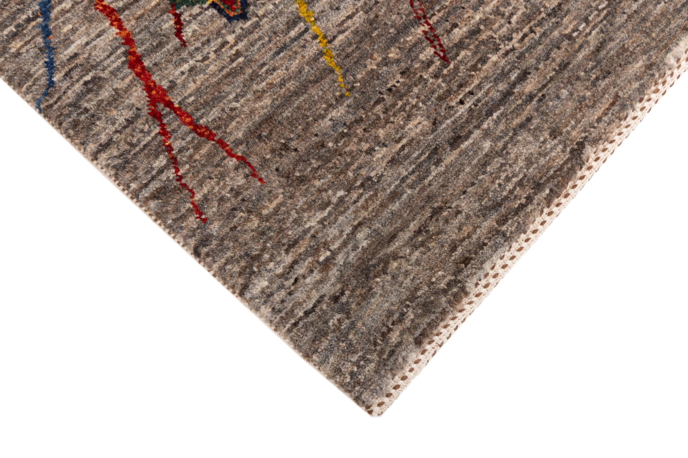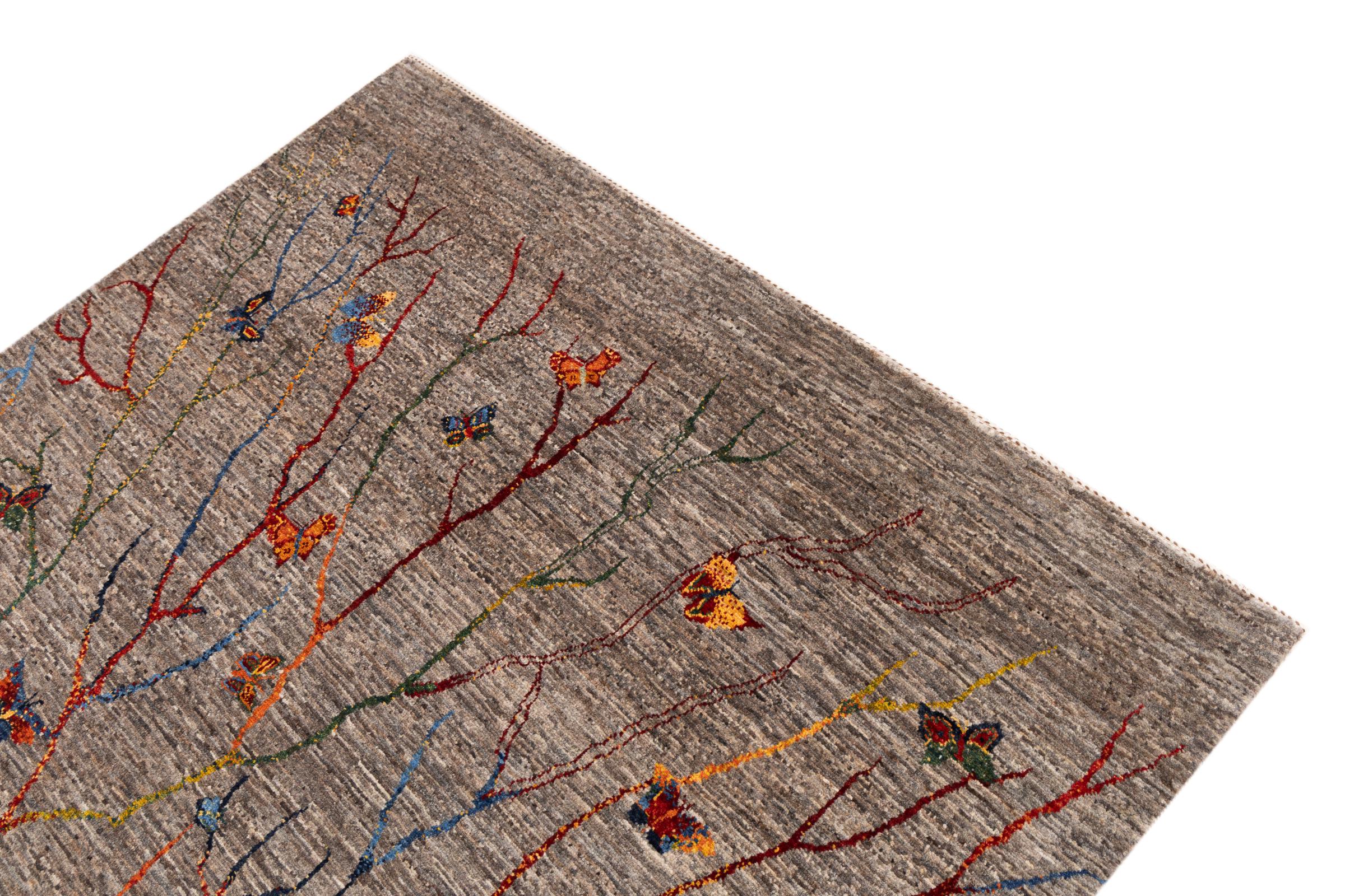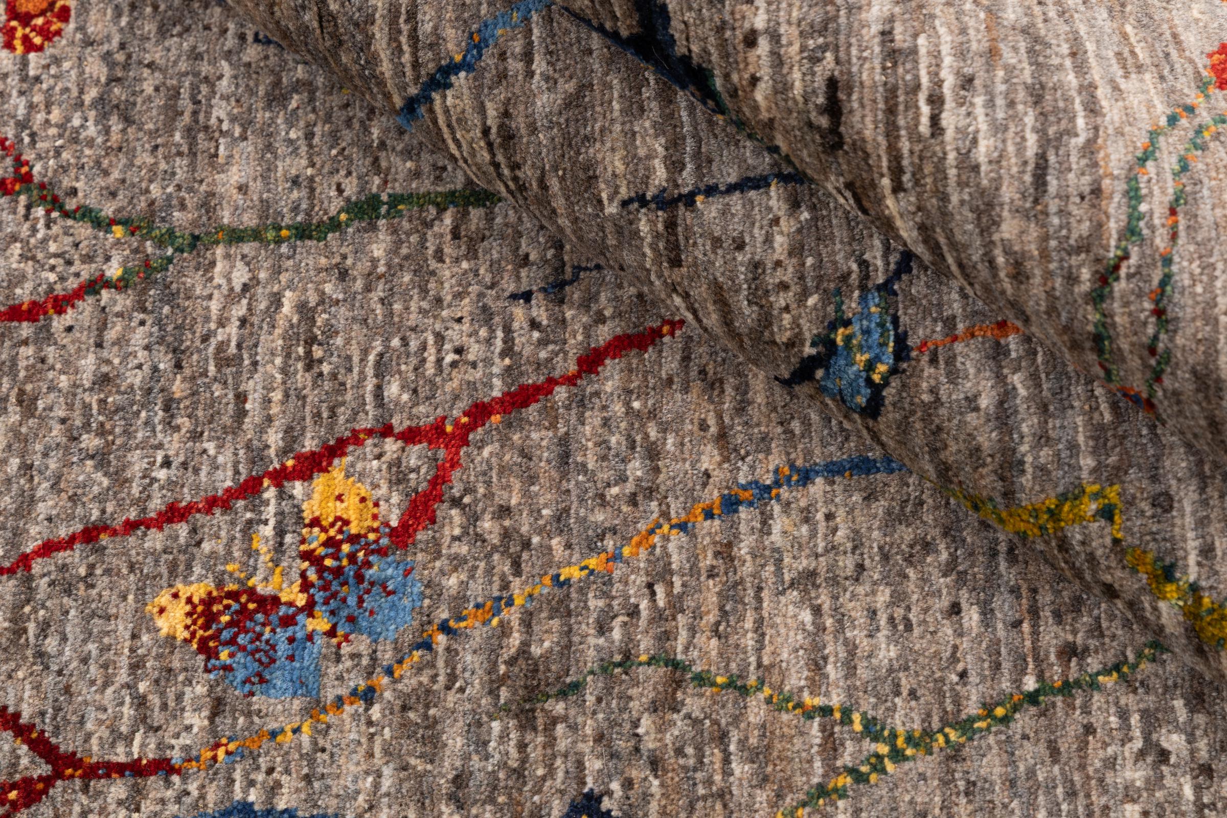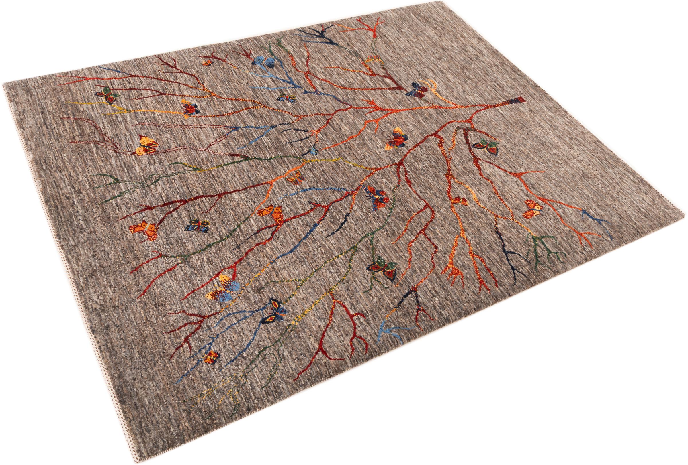 Ten piękny dywan jest perskim Gabbeh i dlatego należy do najwyższej jakości dywanów Gabbeh. Dywany są wiązane przez nomadów lub pół-nomadzi w Iranie zgodnie z tradycyjnym rzemiosłem. Proste motywy i wzory są w większości inspirowane bezpośrednim otoczeniem nomadów. Na przykład wielbłądy, drzewa lub krzewy można znaleźć na tradycyjnych dywanach. Perskie dywany Gabbeh wykonane są z wełny pochodzącej z lokalnie hodowanych stad owiec. Wełna jest więc w większości przypadków nadal obracana ręcznie. Tak więc każdy z tych orientalnych dywanów uosabia unikalny charakter wielowiekowej kultury.