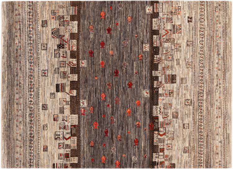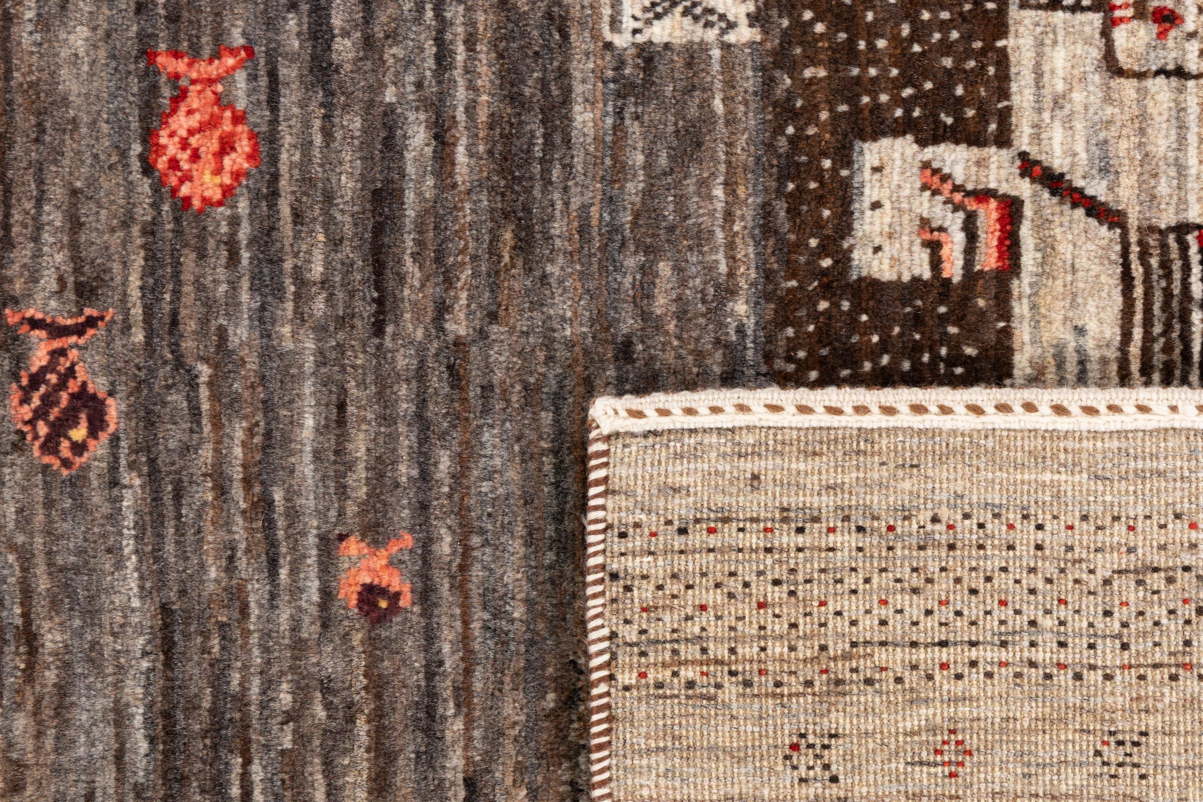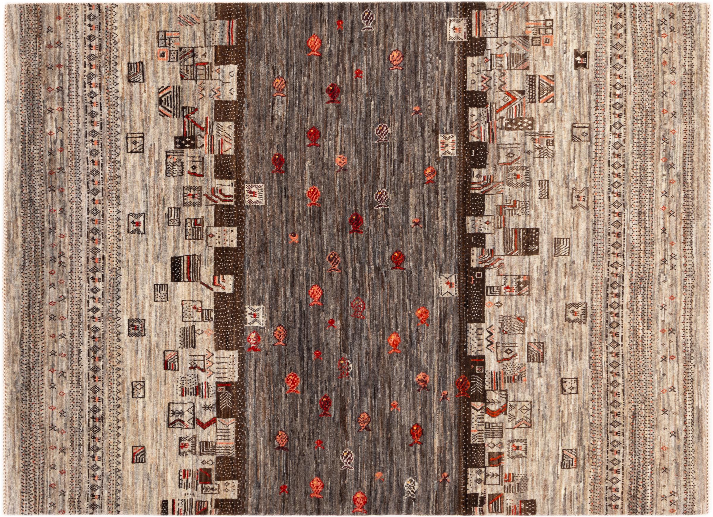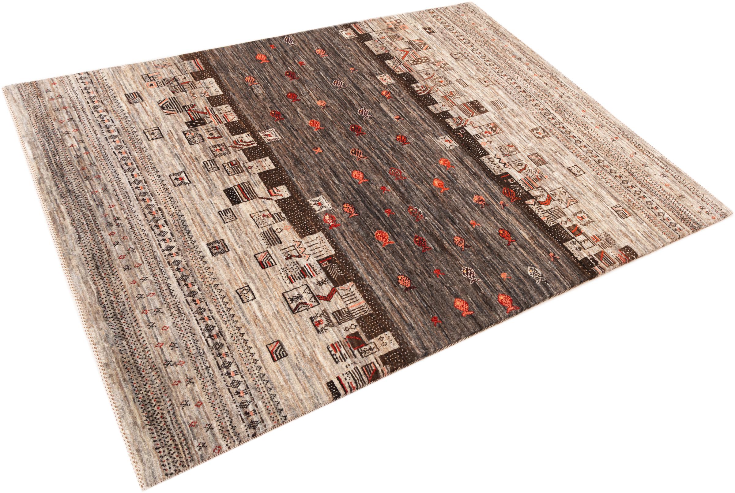 Ten piękny dywan jest perskim Gabbeh i dlatego należy do najwyższej jakości dywanów Gabbeh. Dywany są wiązane przez nomadów lub pół-nomadzi w Iranie zgodnie z tradycyjnym rzemiosłem. Proste motywy i wzory są w większości inspirowane bezpośrednim otoczeniem nomadów. Na przykład wielbłądy, drzewa lub krzewy można znaleźć na tradycyjnych dywanach. Perskie dywany Gabbeh wykonane są z wełny pochodzącej z lokalnie hodowanych stad owiec. Wełna jest więc w większości przypadków nadal obracana ręcznie. Tak więc każdy z tych orientalnych dywanów uosabia unikalny charakter wielowiekowej kultury.