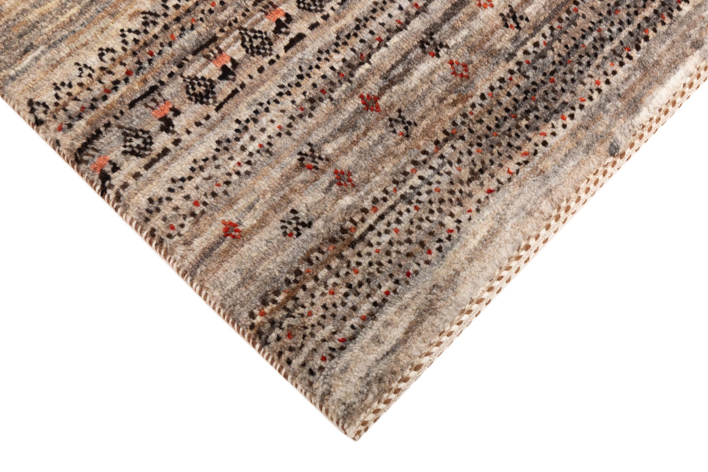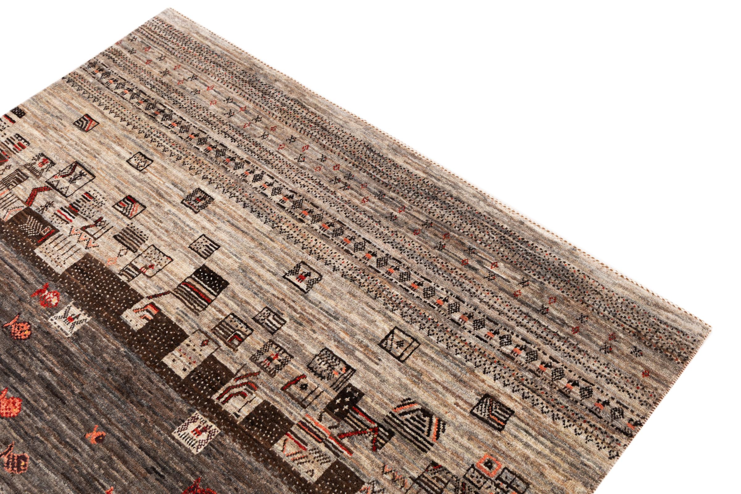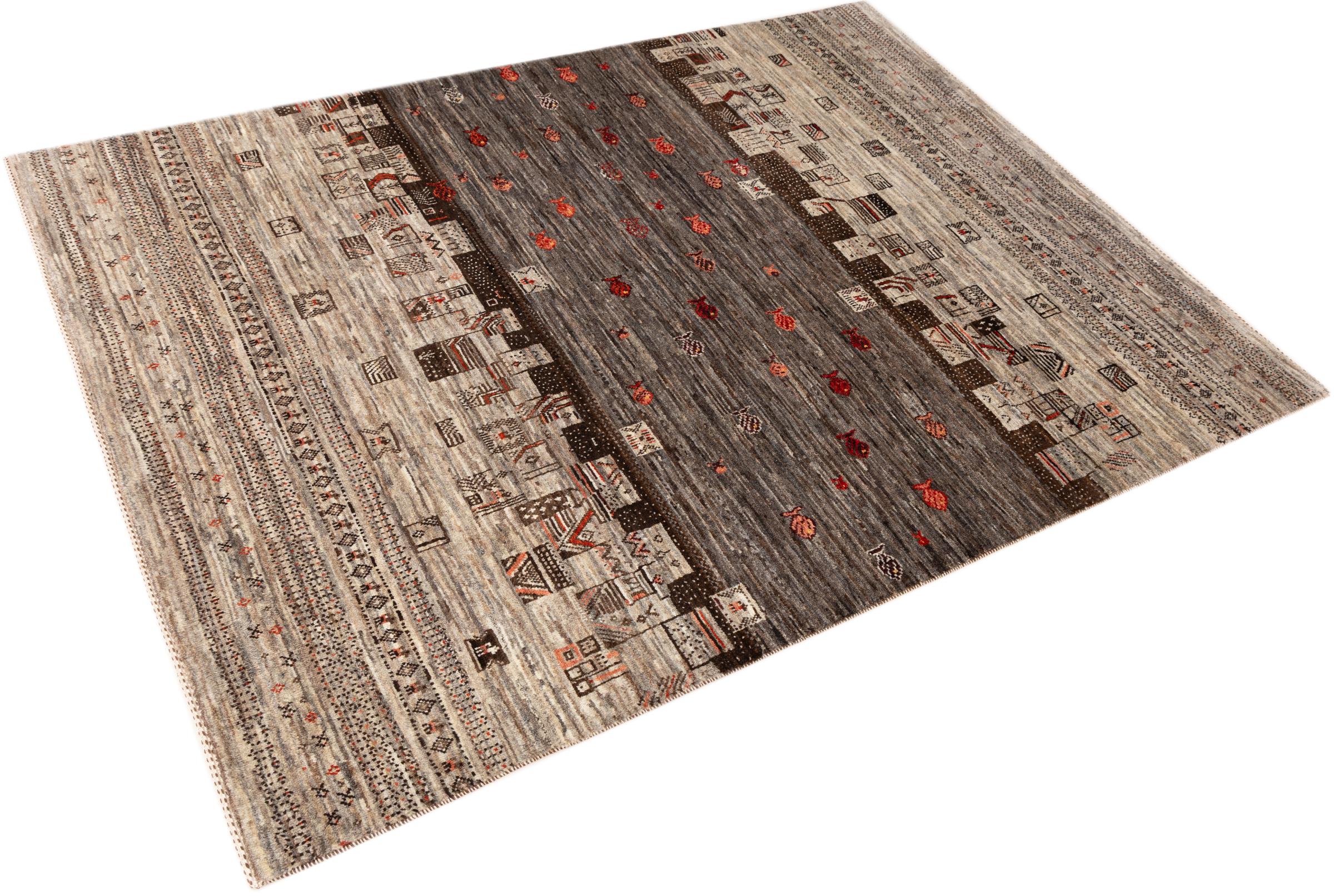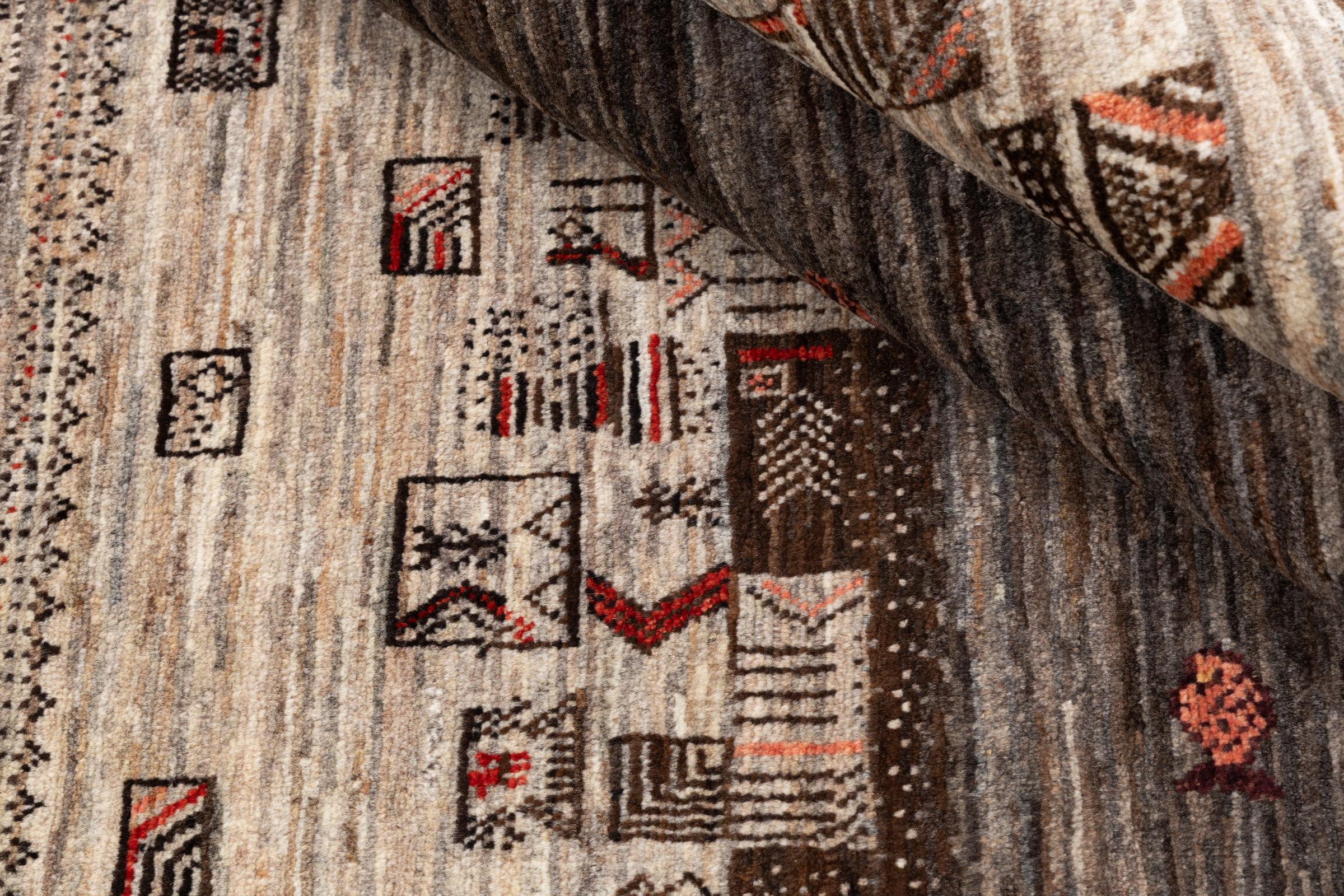 Ten piękny dywan jest perskim Gabbeh i dlatego należy do najwyższej jakości dywanów Gabbeh. Dywany są wiązane przez nomadów lub pół-nomadzi w Iranie zgodnie z tradycyjnym rzemiosłem. Proste motywy i wzory są w większości inspirowane bezpośrednim otoczeniem nomadów. Na przykład wielbłądy, drzewa lub krzewy można znaleźć na tradycyjnych dywanach. Perskie dywany Gabbeh wykonane są z wełny pochodzącej z lokalnie hodowanych stad owiec. Wełna jest więc w większości przypadków nadal obracana ręcznie. Tak więc każdy z tych orientalnych dywanów uosabia unikalny charakter wielowiekowej kultury.