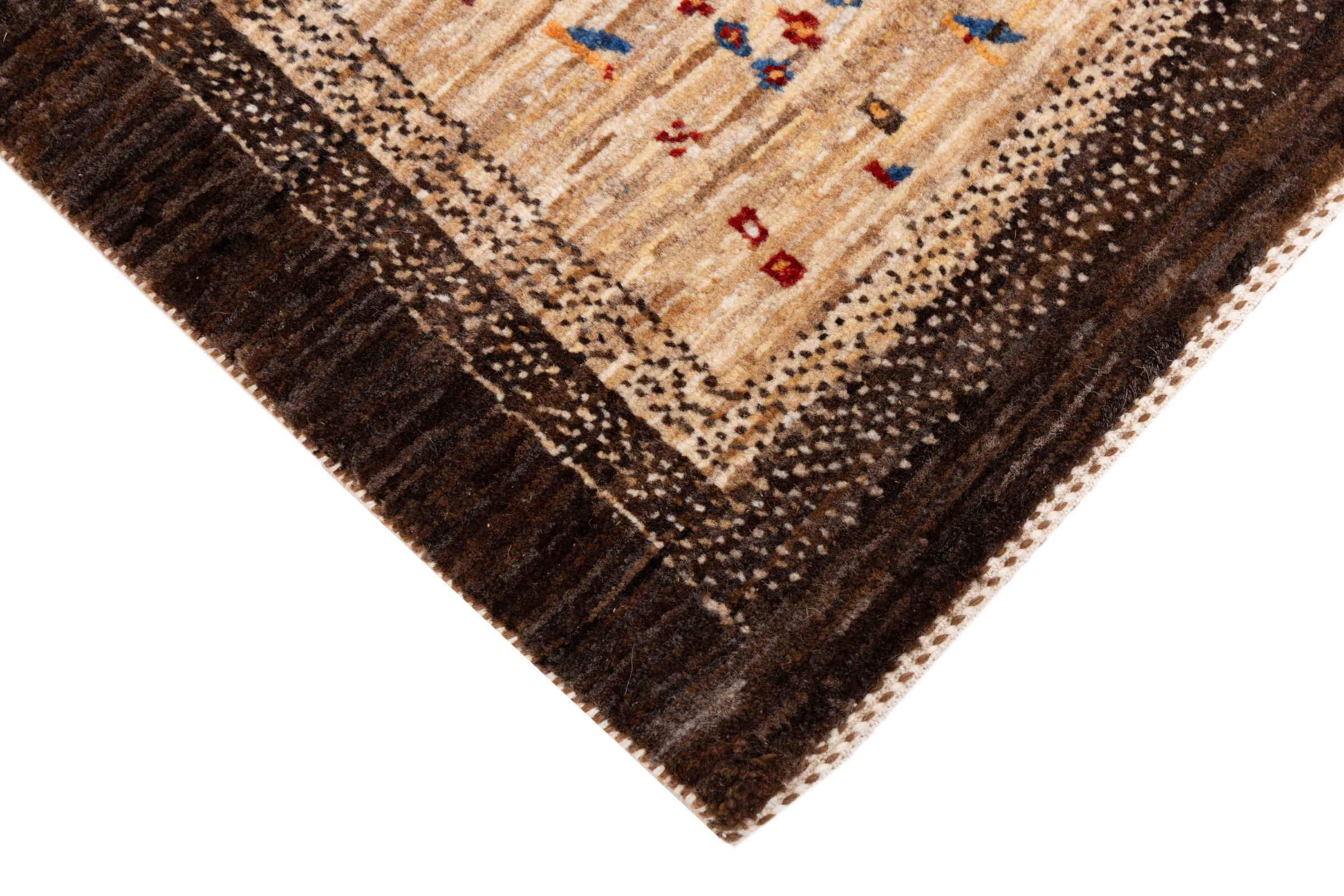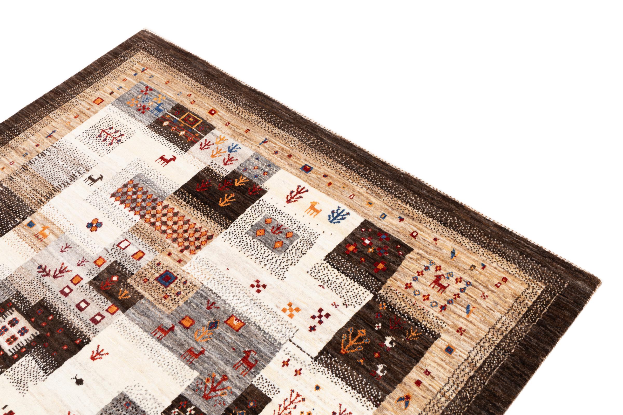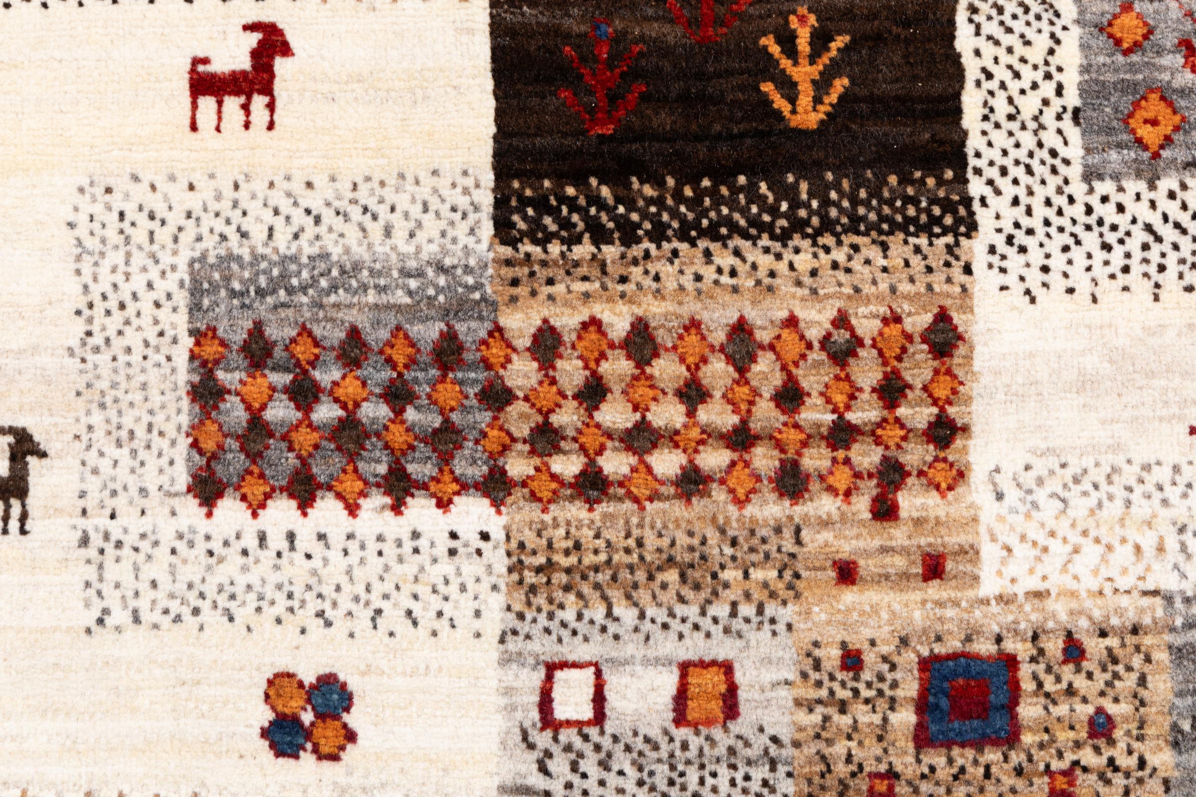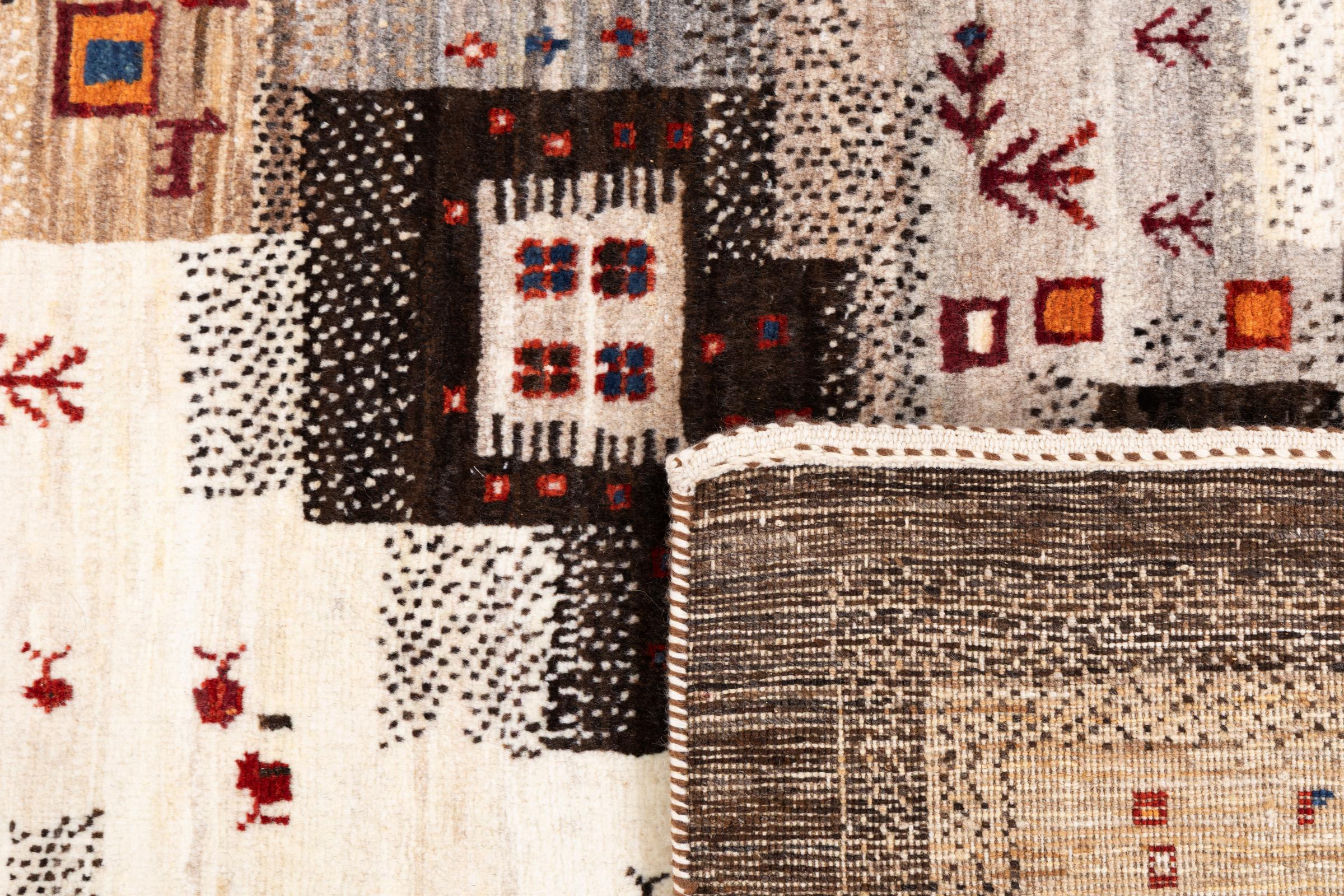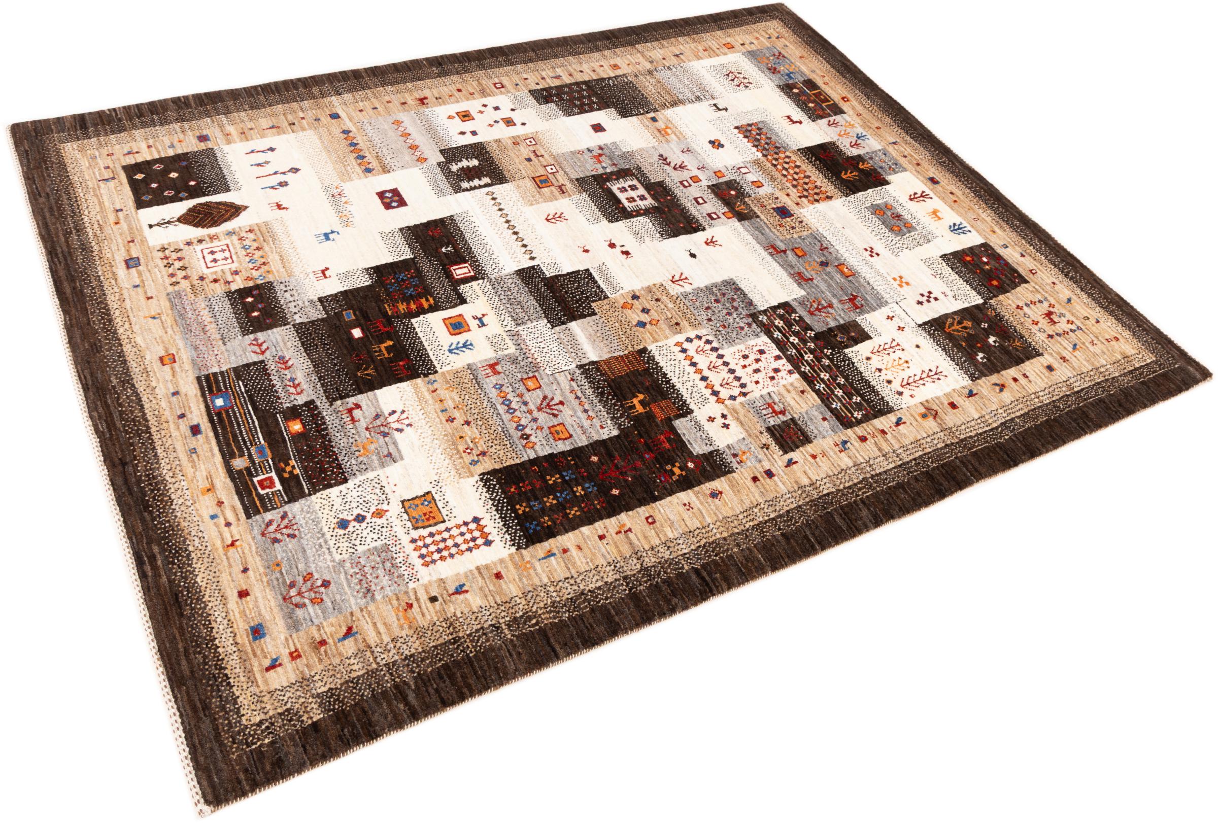 Ten piękny dywan jest perskim Gabbeh i dlatego należy do najwyższej jakości dywanów Gabbeh. Dywany są wiązane przez nomadów lub pół-nomadzi w Iranie zgodnie z tradycyjnym rzemiosłem. Proste motywy i wzory są w większości inspirowane bezpośrednim otoczeniem nomadów. Na przykład wielbłądy, drzewa lub krzewy można znaleźć na tradycyjnych dywanach. Perskie dywany Gabbeh wykonane są z wełny pochodzącej z lokalnie hodowanych stad owiec. Wełna jest więc w większości przypadków nadal obracana ręcznie. Tak więc każdy z tych orientalnych dywanów uosabia unikalny charakter wielowiekowej kultury.