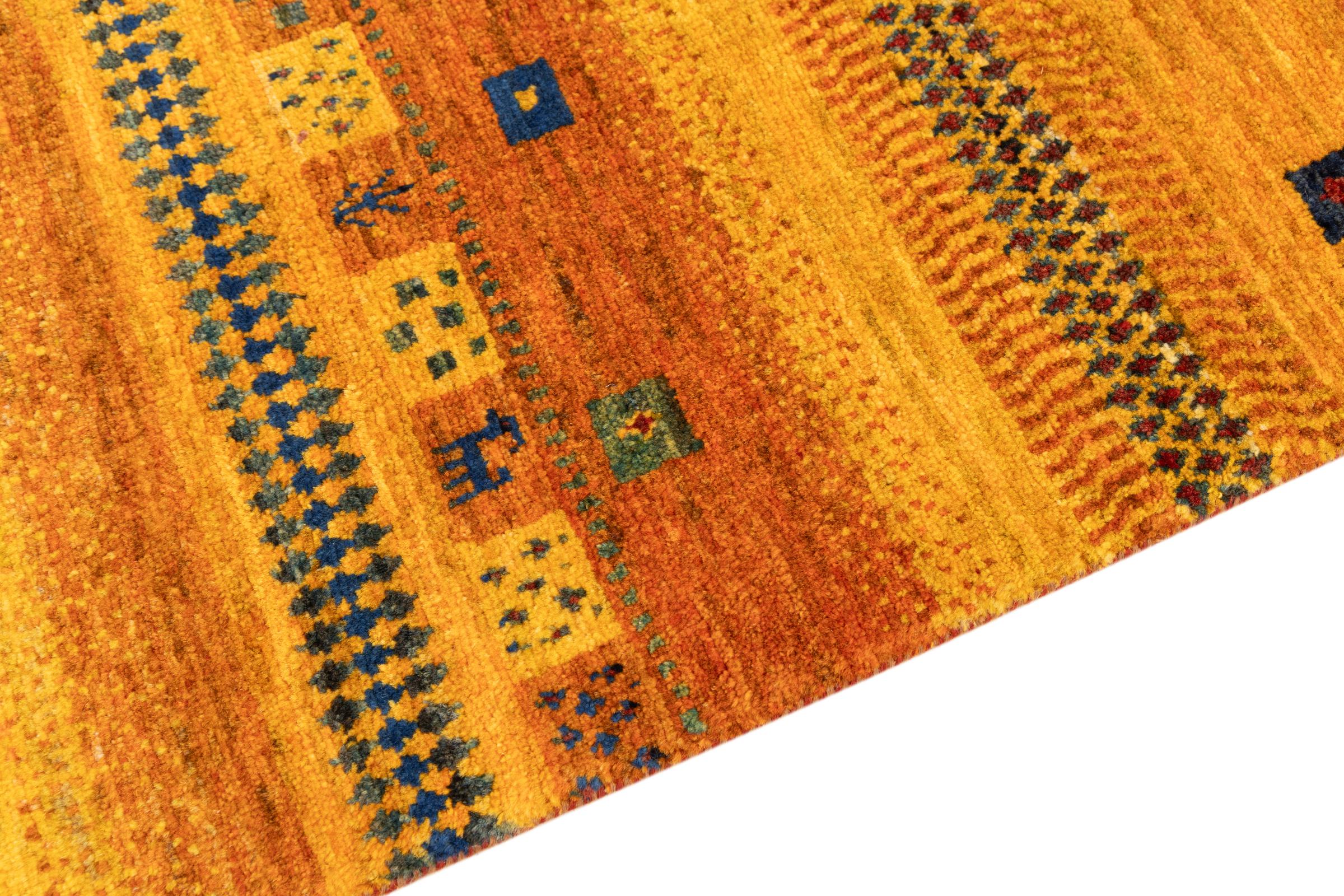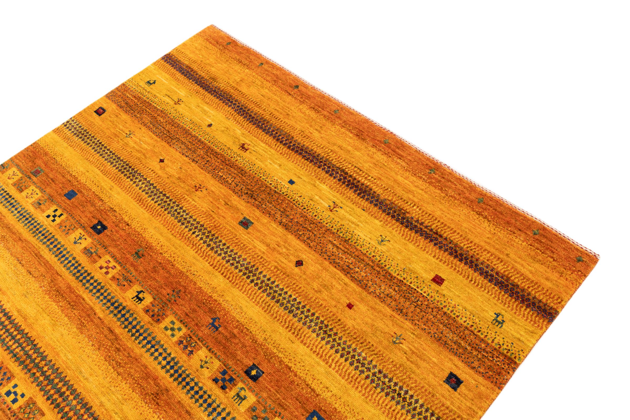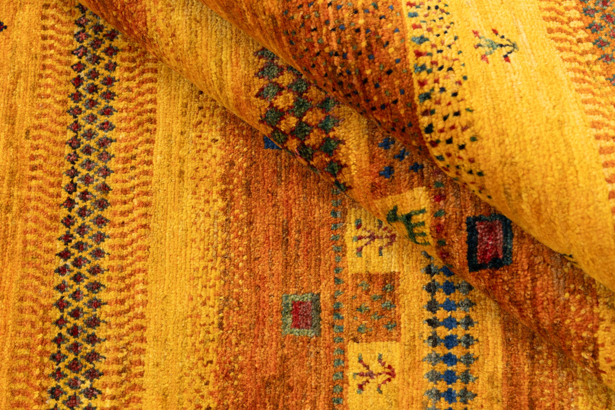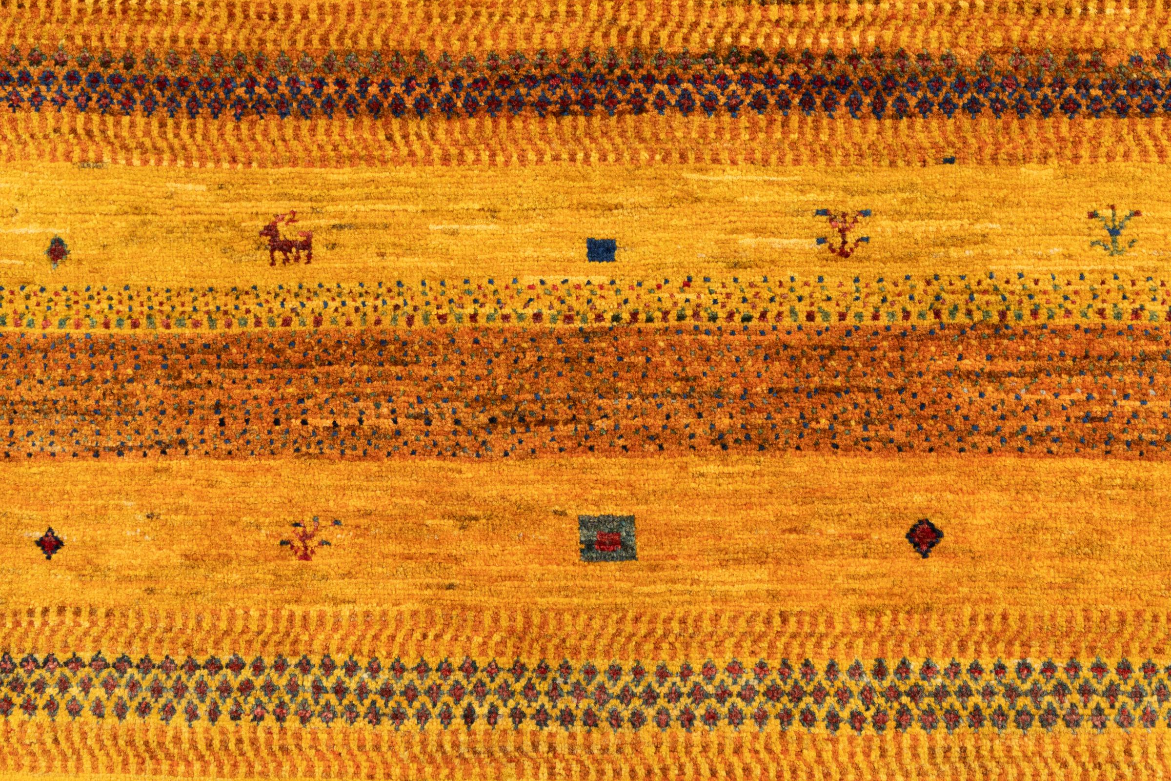 Ten piękny dywan jest perskim Gabbeh i dlatego należy do najwyższej jakości dywanów Gabbeh. Dywany są wiązane przez nomadów lub pół-nomadzi w Iranie zgodnie z tradycyjnym rzemiosłem. Proste motywy i wzory są w większości inspirowane bezpośrednim otoczeniem nomadów. Na przykład wielbłądy, drzewa lub krzewy można znaleźć na tradycyjnych dywanach. Perskie dywany Gabbeh wykonane są z wełny pochodzącej z lokalnie hodowanych stad owiec. Wełna jest więc w większości przypadków nadal obracana ręcznie. Tak więc każdy z tych orientalnych dywanów uosabia unikalny charakter wielowiekowej kultury.