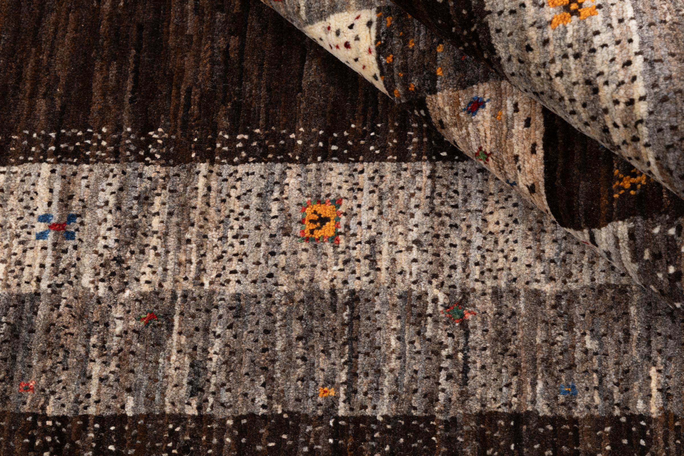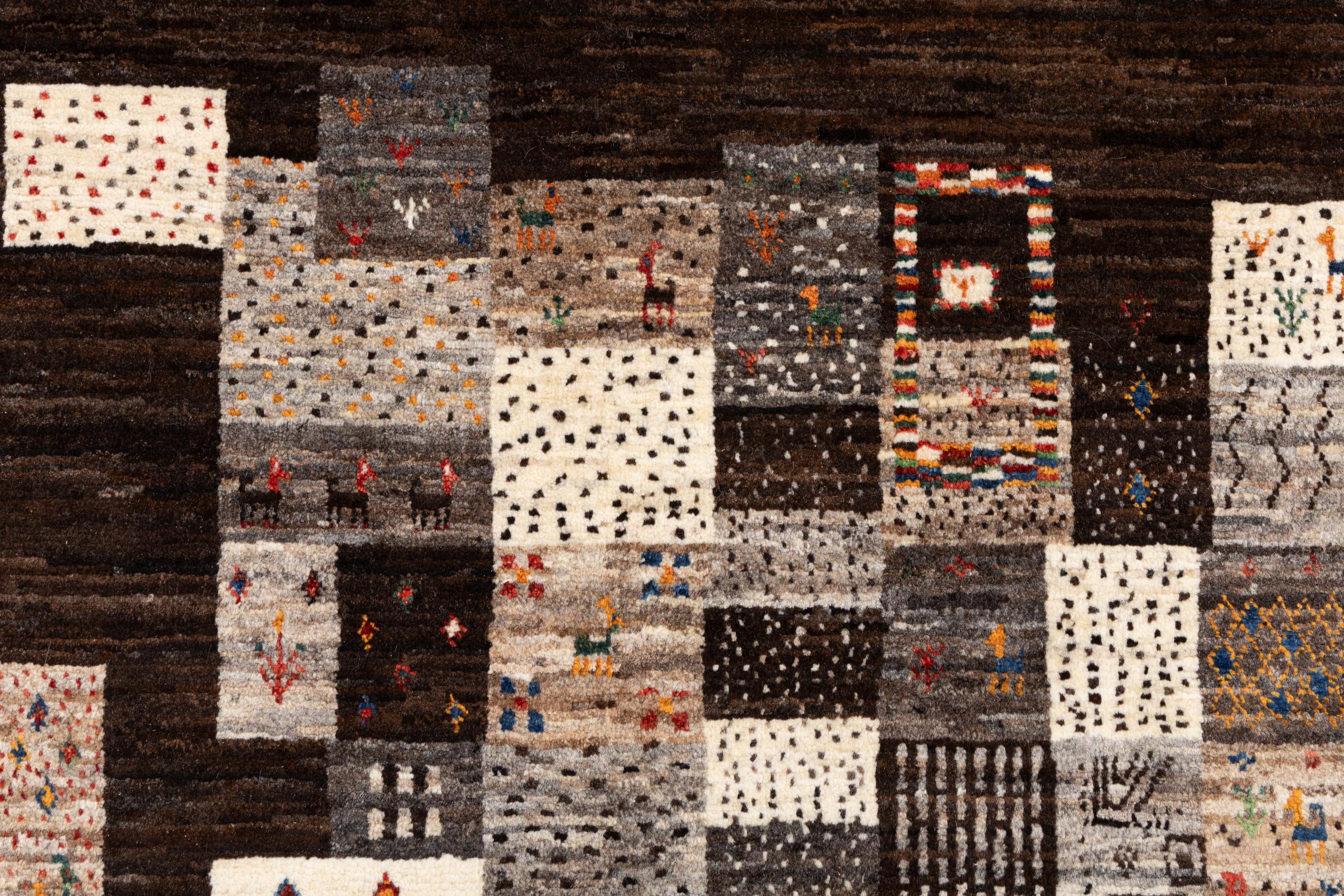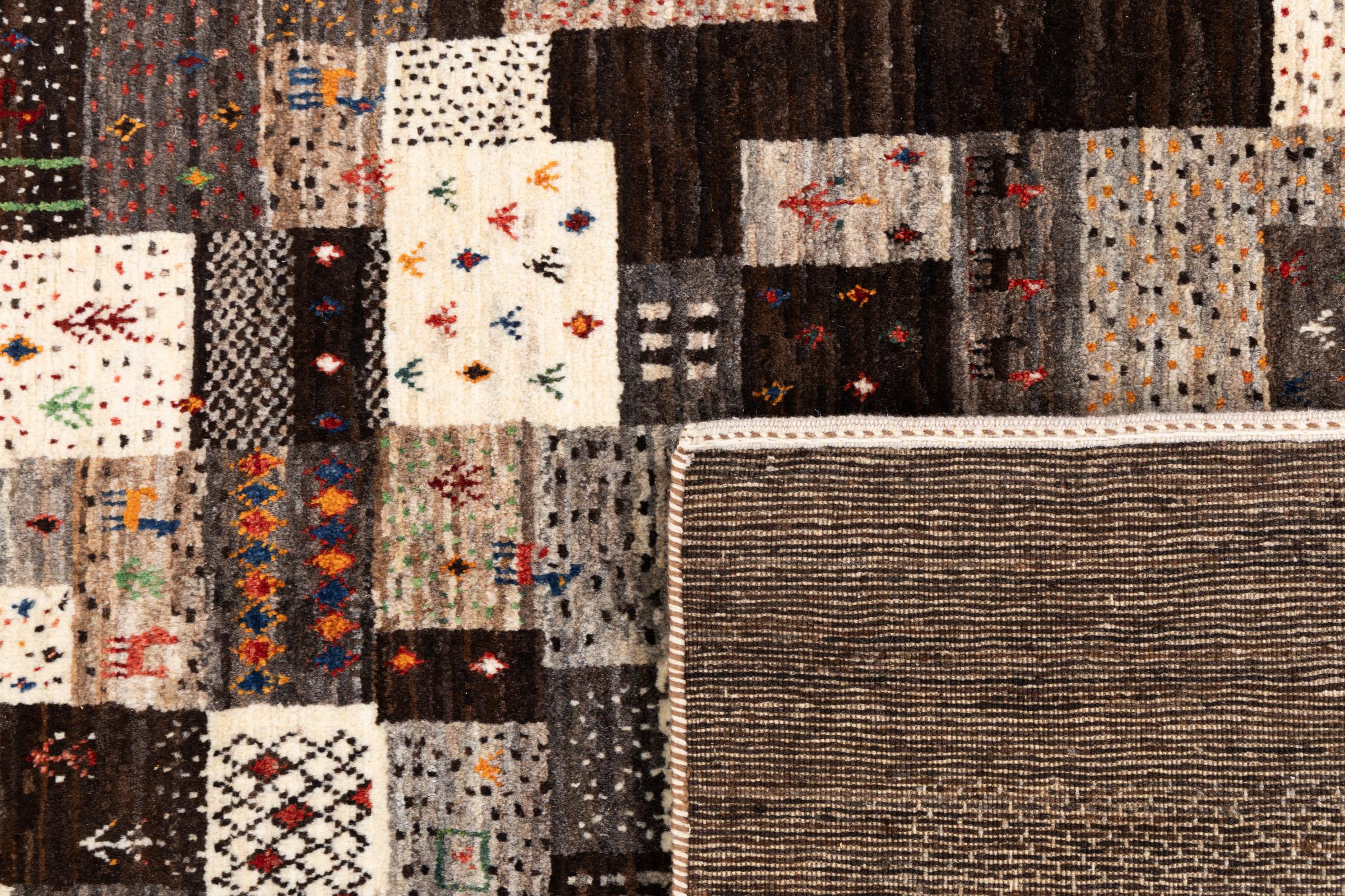 Ten piękny dywan jest perskim Gabbeh i dlatego należy do najwyższej jakości dywanów Gabbeh. Dywany są wiązane przez nomadów lub pół-nomadzi w Iranie zgodnie z tradycyjnym rzemiosłem. Proste motywy i wzory są w większości inspirowane bezpośrednim otoczeniem nomadów. Na przykład wielbłądy, drzewa lub krzewy można znaleźć na tradycyjnych dywanach. Perskie dywany Gabbeh wykonane są z wełny pochodzącej z lokalnie hodowanych stad owiec. Wełna jest więc w większości przypadków nadal obracana ręcznie. Tak więc każdy z tych orientalnych dywanów uosabia unikalny charakter wielowiekowej kultury.