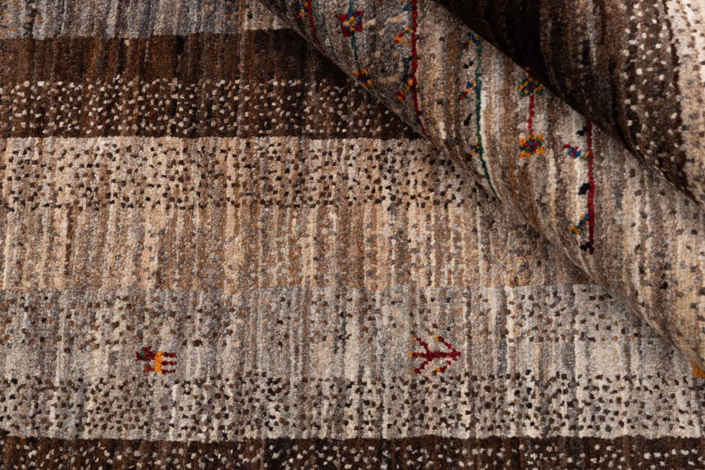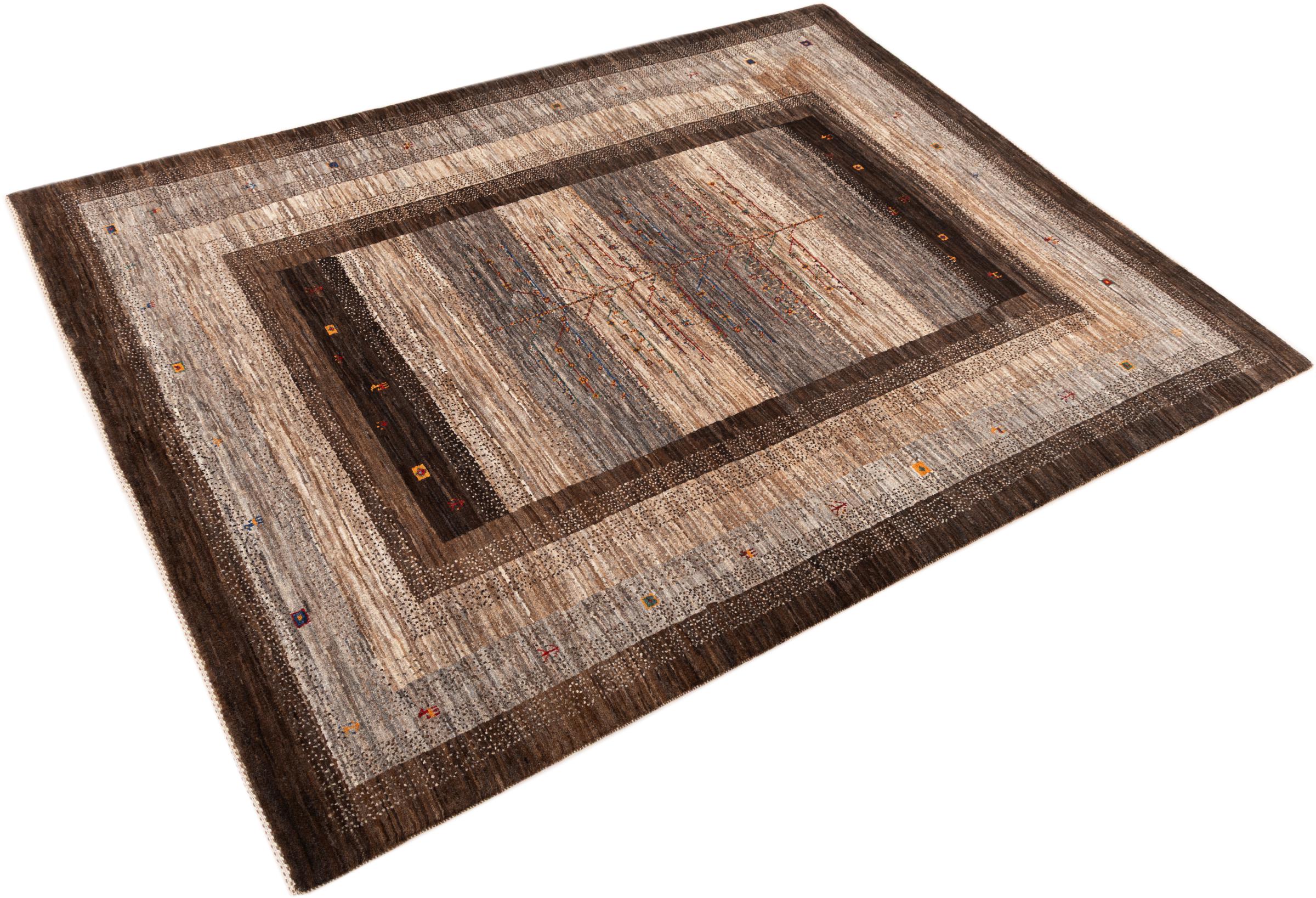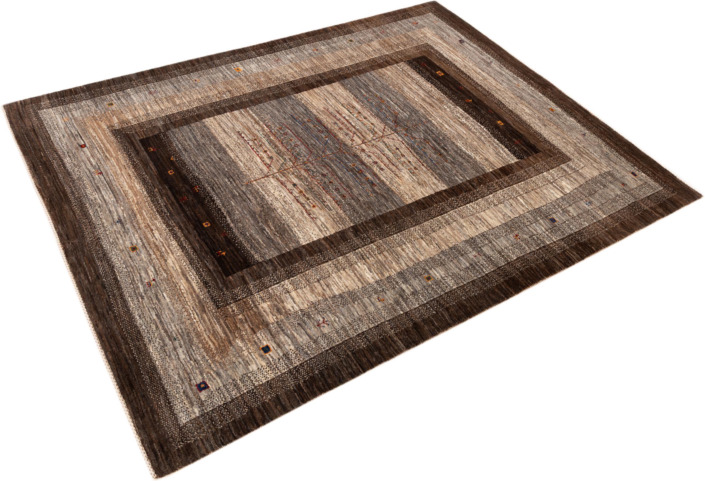Ten piękny dywan jest perskim Gabbeh i dlatego należy do najwyższej jakości dywanów Gabbeh. Dywany są wiązane przez nomadów lub pół-nomadzi w Iranie zgodnie z tradycyjnym rzemiosłem. Proste motywy i wzory są w większości inspirowane bezpośrednim otoczeniem nomadów. Na przykład wielbłądy, drzewa lub krzewy można znaleźć na tradycyjnych dywanach. Perskie dywany Gabbeh wykonane są z wełny pochodzącej z lokalnie hodowanych stad owiec. Wełna jest więc w większości przypadków nadal obracana ręcznie. Tak więc każdy z tych orientalnych dywanów uosabia unikalny charakter wielowiekowej kultury.
