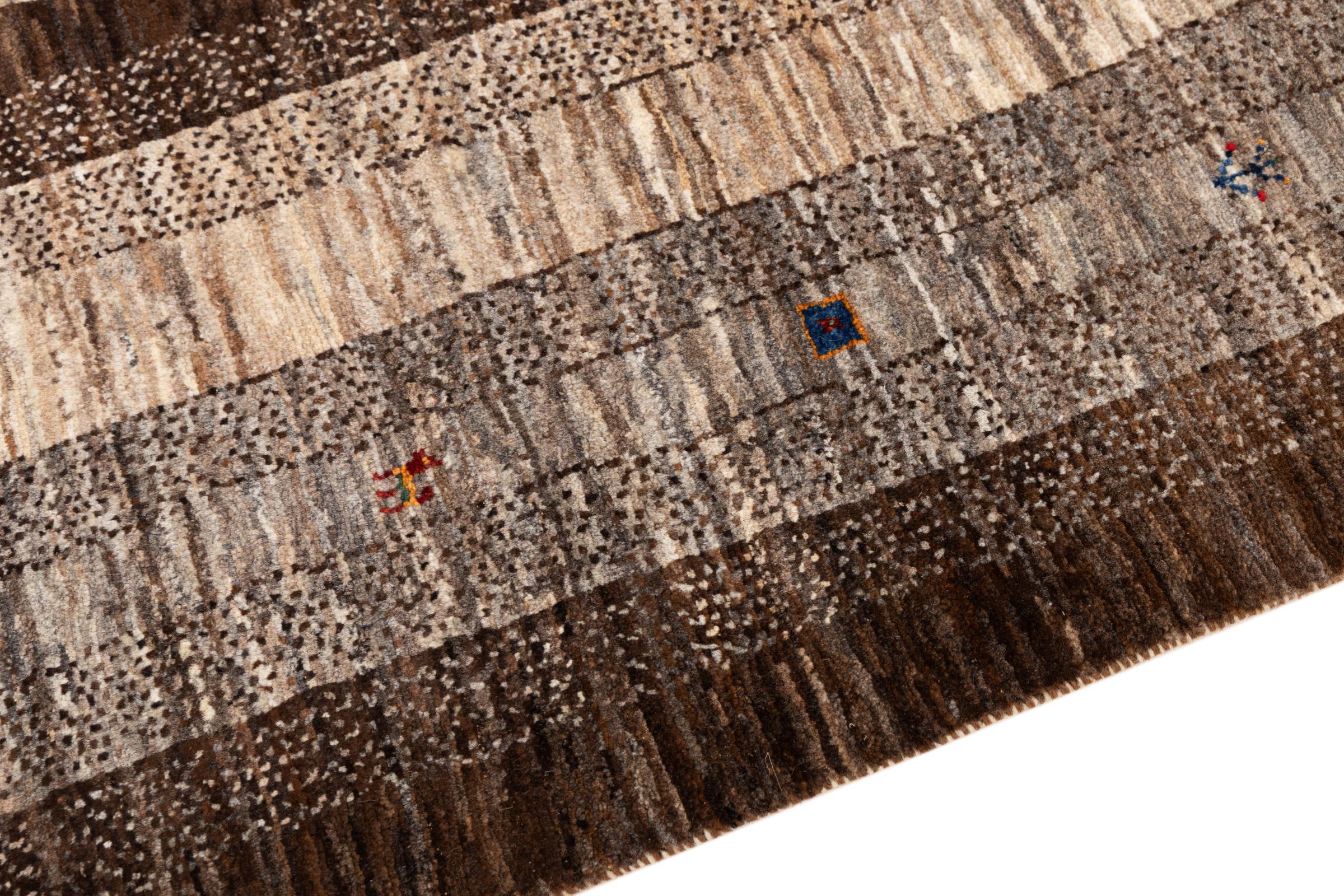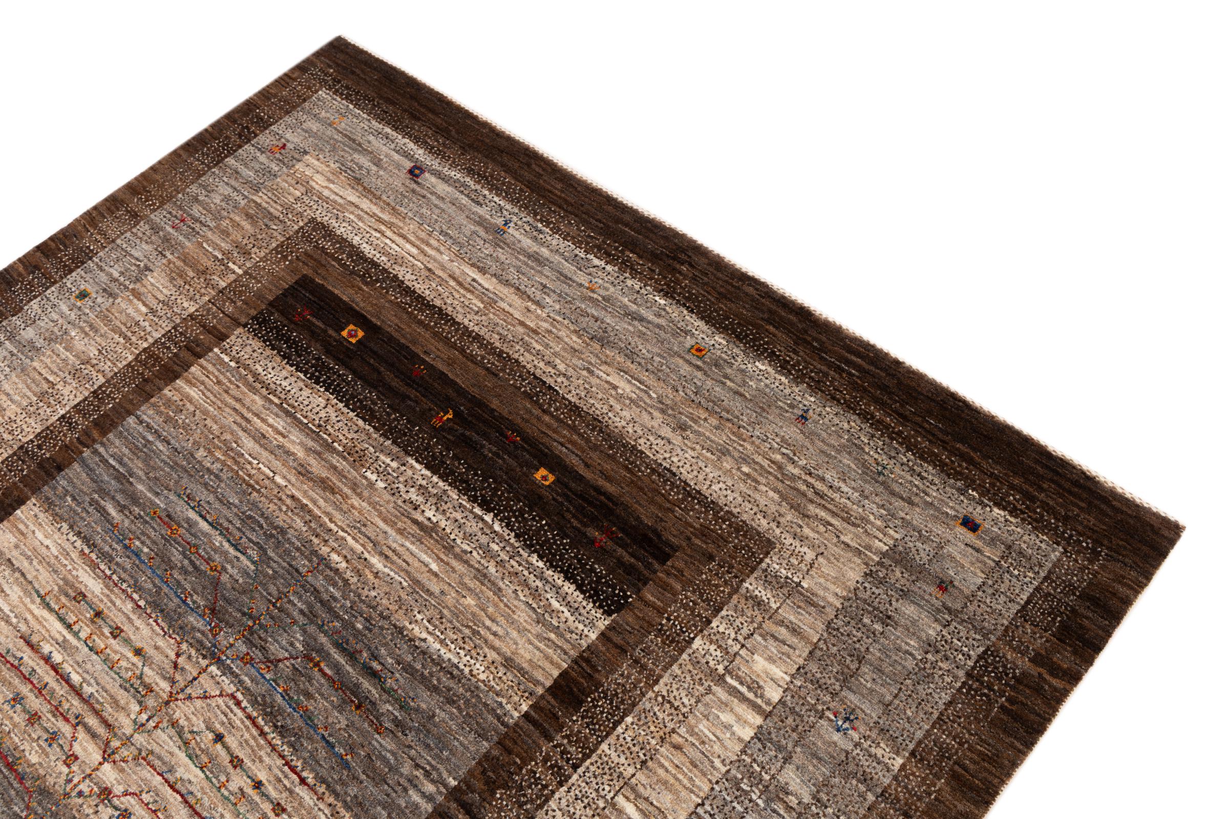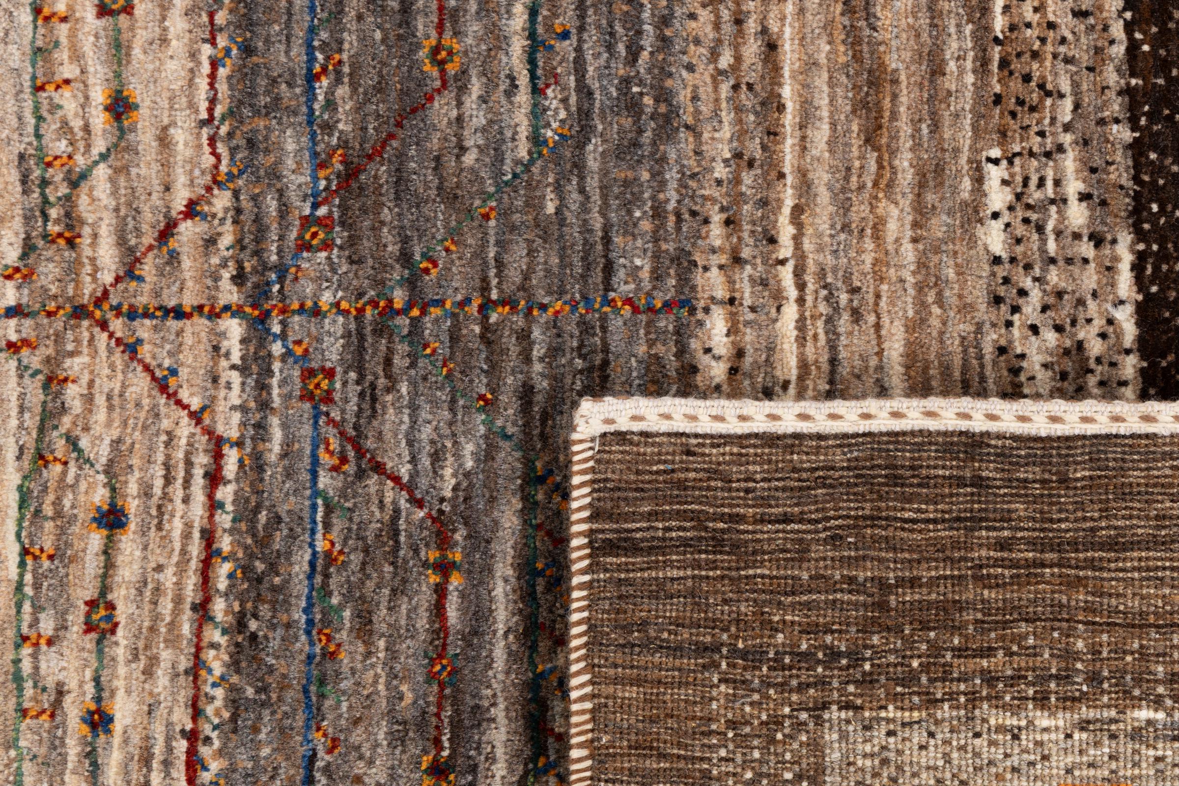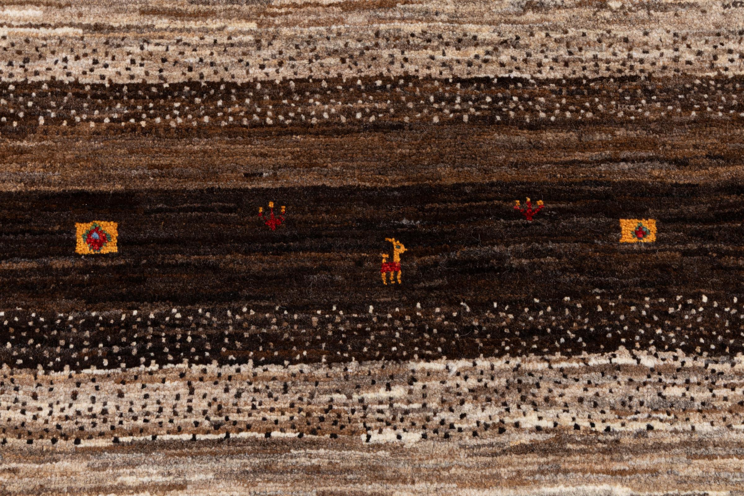 Ten piękny dywan jest perskim Gabbeh i dlatego należy do najwyższej jakości dywanów Gabbeh. Dywany są wiązane przez nomadów lub pół-nomadzi w Iranie zgodnie z tradycyjnym rzemiosłem. Proste motywy i wzory są w większości inspirowane bezpośrednim otoczeniem nomadów. Na przykład wielbłądy, drzewa lub krzewy można znaleźć na tradycyjnych dywanach. Perskie dywany Gabbeh wykonane są z wełny pochodzącej z lokalnie hodowanych stad owiec. Wełna jest więc w większości przypadków nadal obracana ręcznie. Tak więc każdy z tych orientalnych dywanów uosabia unikalny charakter wielowiekowej kultury.