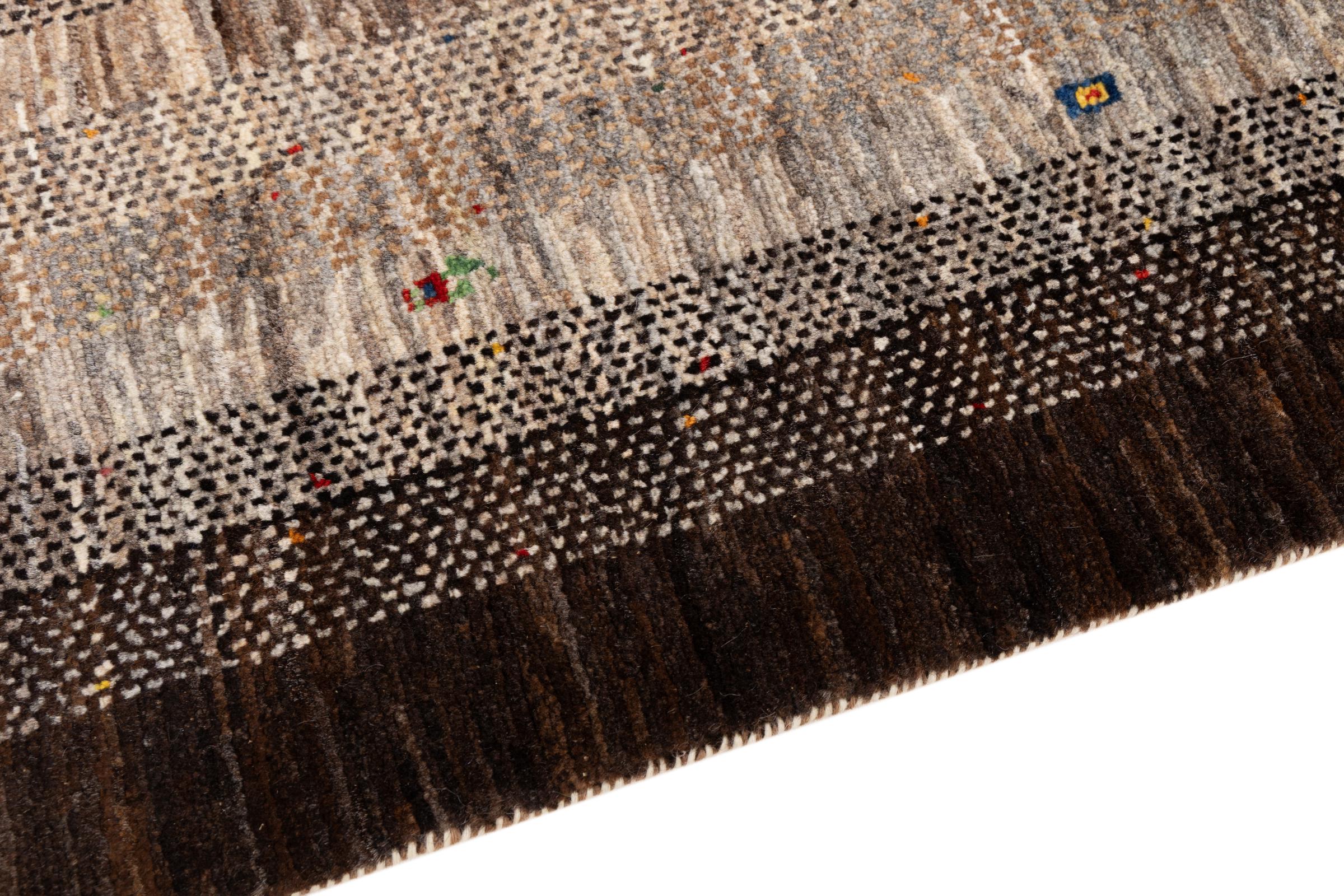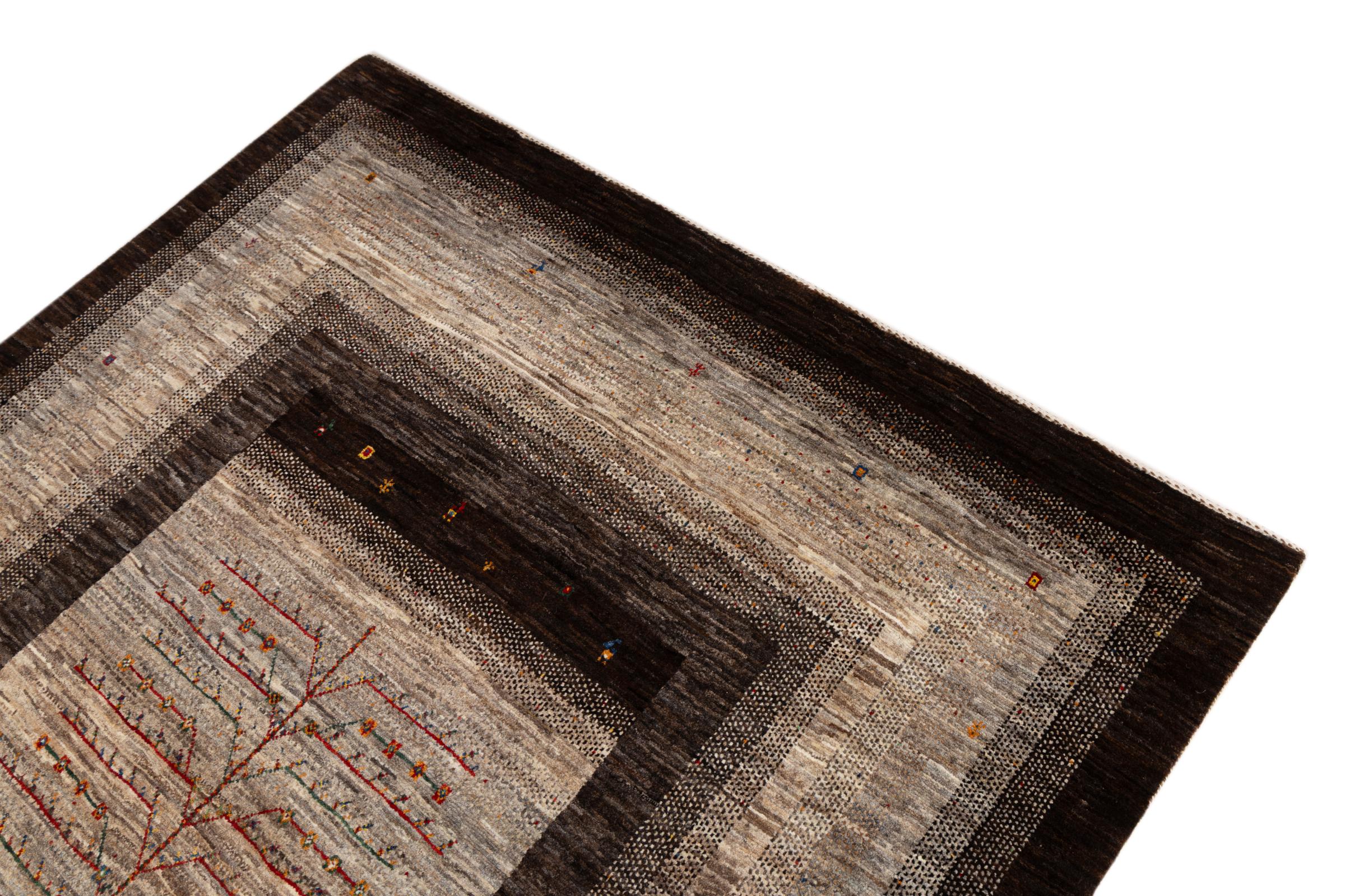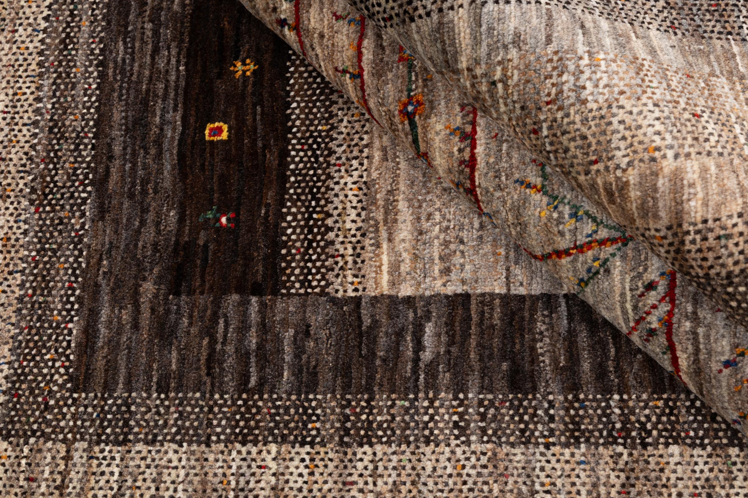 Ten piękny dywan jest perskim Gabbeh i dlatego należy do najwyższej jakości dywanów Gabbeh. Dywany są wiązane przez nomadów lub pół-nomadzi w Iranie zgodnie z tradycyjnym rzemiosłem. Proste motywy i wzory są w większości inspirowane bezpośrednim otoczeniem nomadów. Na przykład wielbłądy, drzewa lub krzewy można znaleźć na tradycyjnych dywanach. Perskie dywany Gabbeh wykonane są z wełny pochodzącej z lokalnie hodowanych stad owiec. Wełna jest więc w większości przypadków nadal obracana ręcznie. Tak więc każdy z tych orientalnych dywanów uosabia unikalny charakter wielowiekowej kultury.