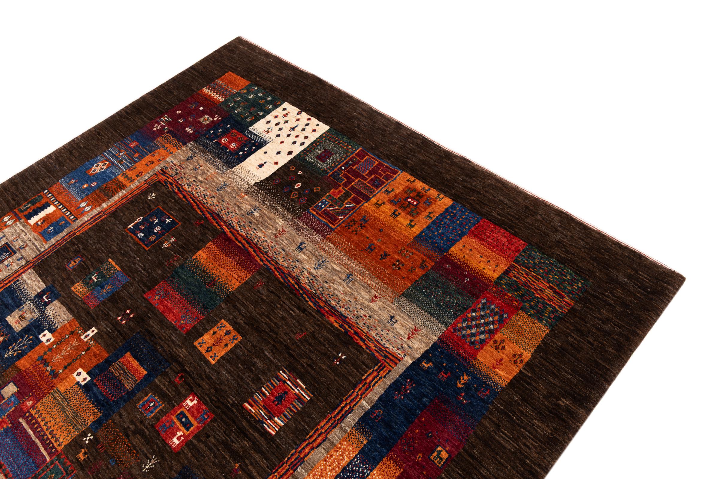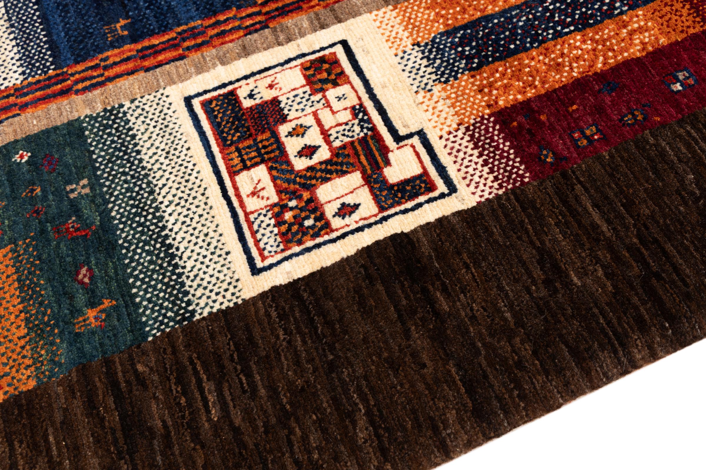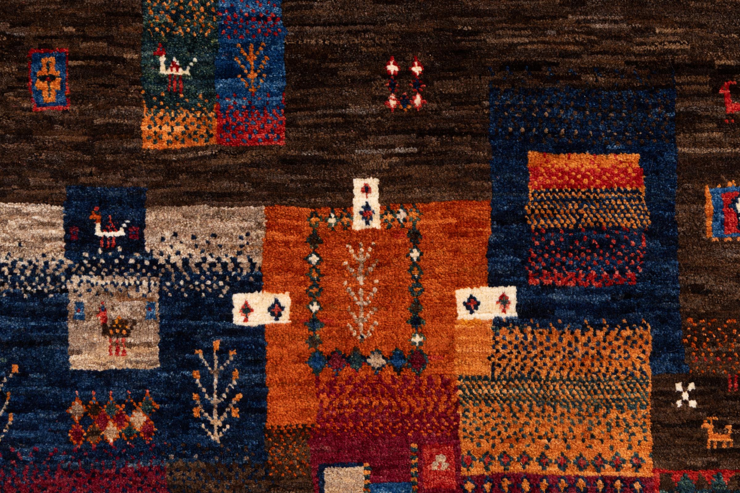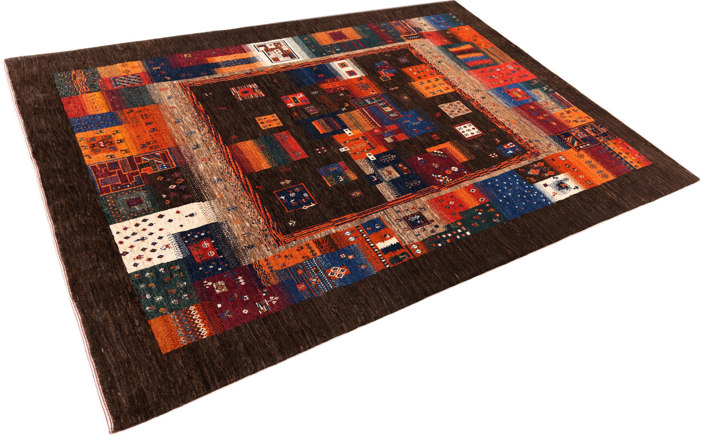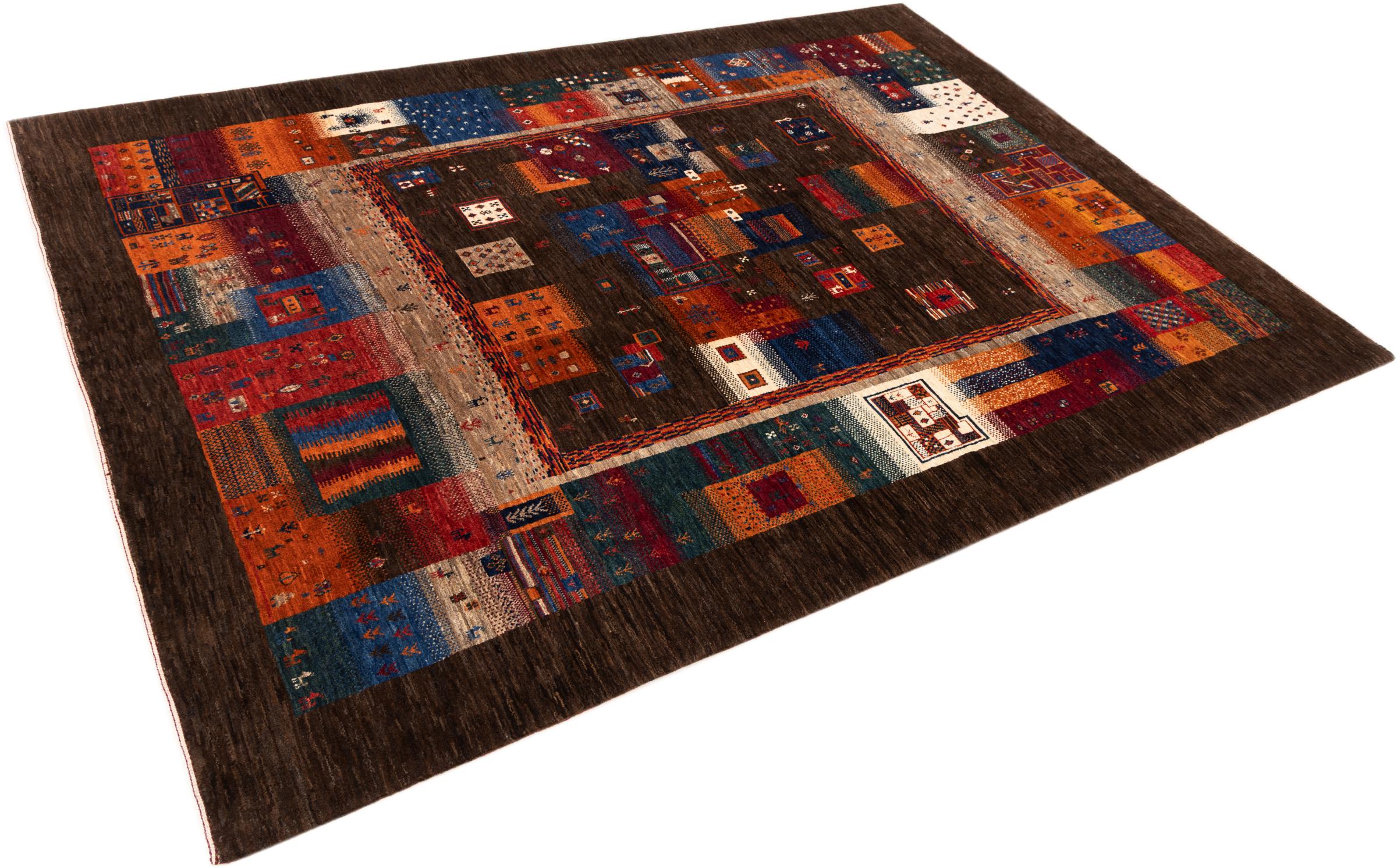 Ten piękny dywan jest perskim Gabbeh i dlatego należy do najwyższej jakości dywanów Gabbeh. Dywany są wiązane przez nomadów lub pół-nomadzi w Iranie zgodnie z tradycyjnym rzemiosłem. Proste motywy i wzory są w większości inspirowane bezpośrednim otoczeniem nomadów. Na przykład wielbłądy, drzewa lub krzewy można znaleźć na tradycyjnych dywanach. Perskie dywany Gabbeh wykonane są z wełny pochodzącej z lokalnie hodowanych stad owiec. Wełna jest więc w większości przypadków nadal obracana ręcznie. Tak więc każdy z tych orientalnych dywanów uosabia unikalny charakter wielowiekowej kultury.