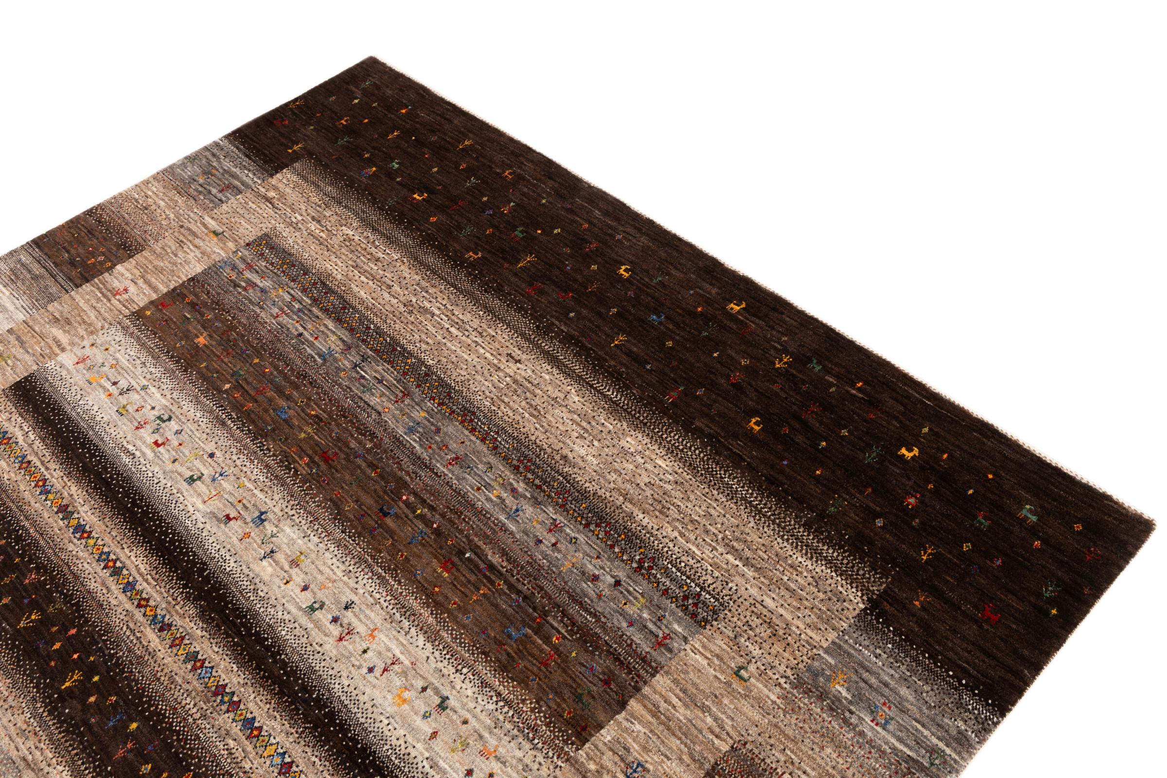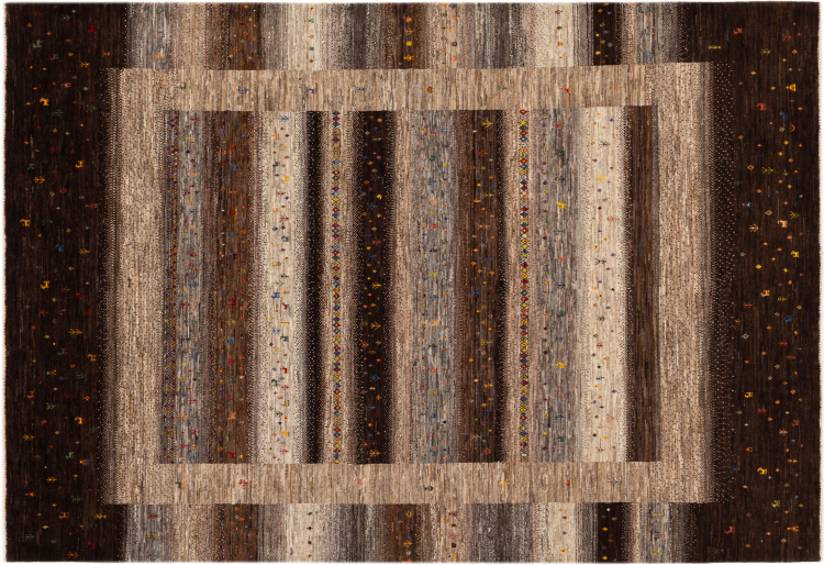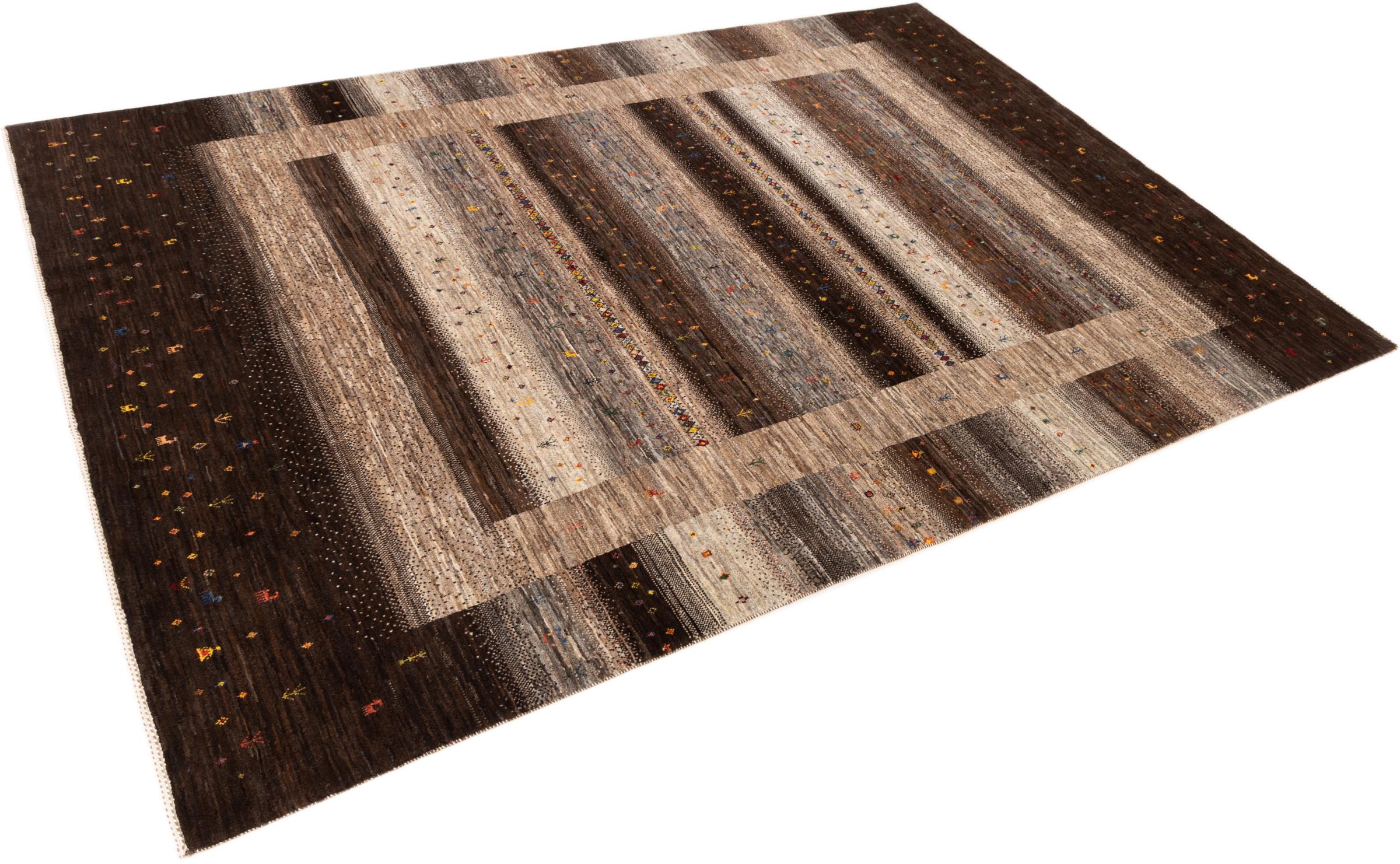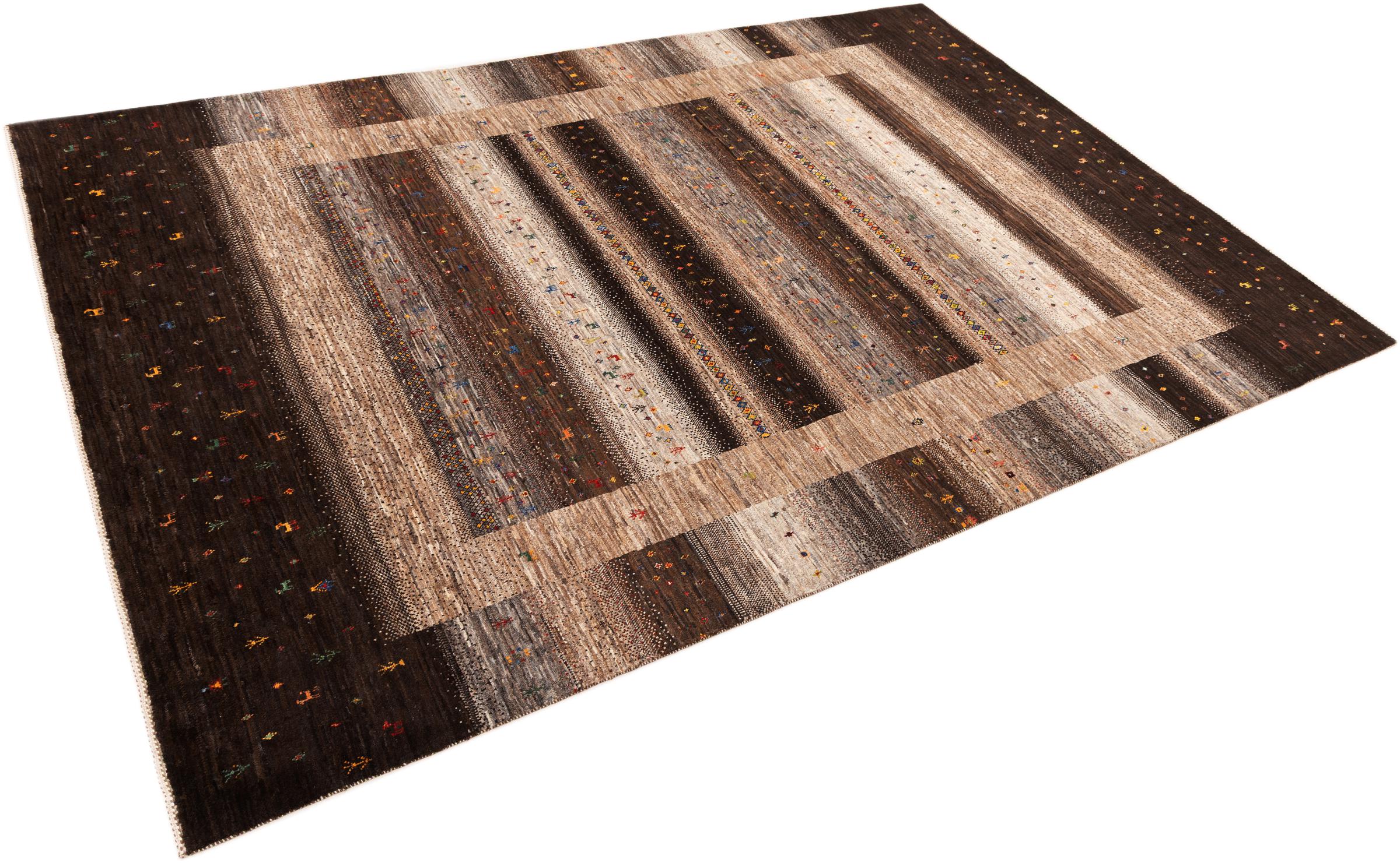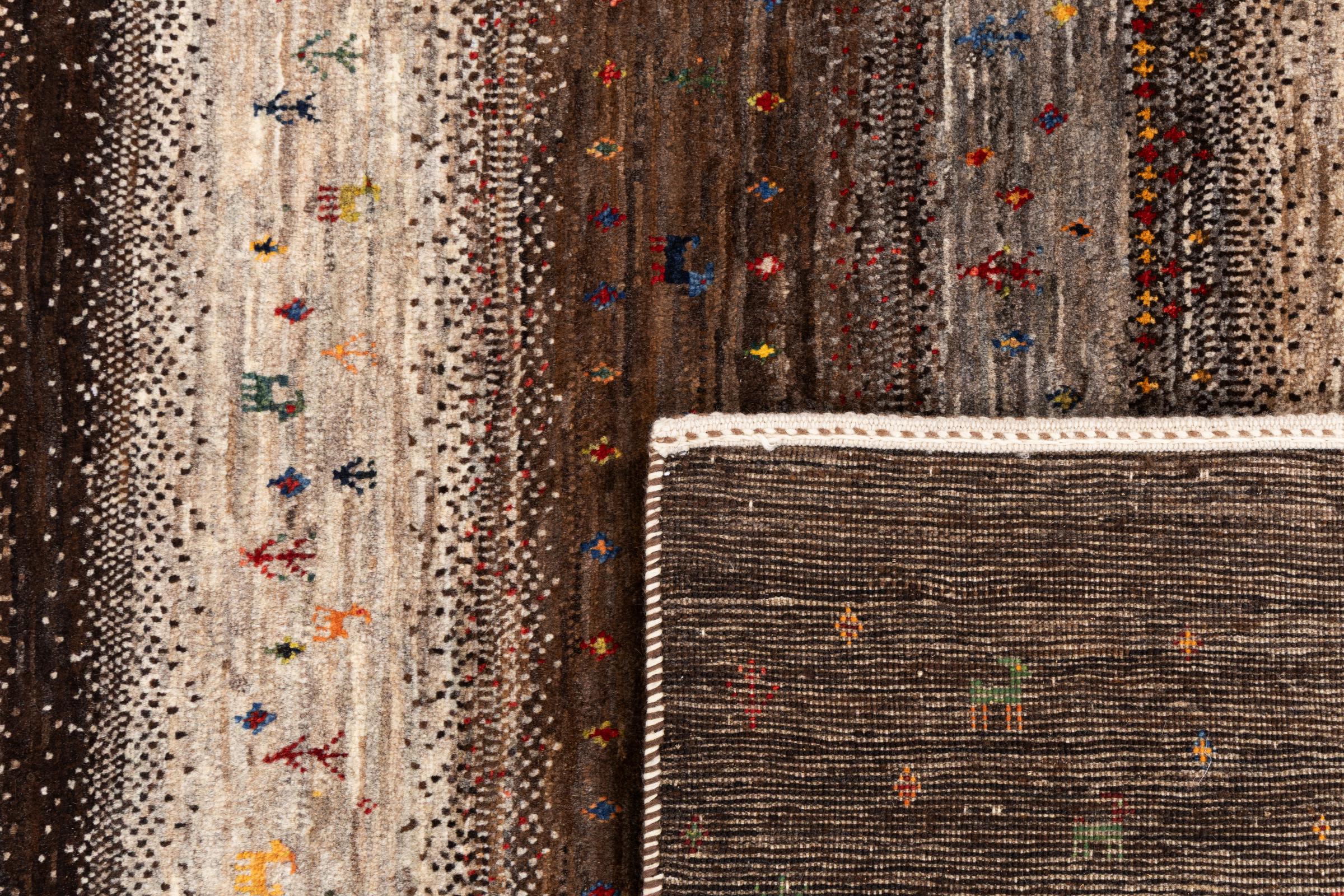 Ten piękny dywan jest perskim Gabbeh i dlatego należy do najwyższej jakości dywanów Gabbeh. Dywany są wiązane przez nomadów lub pół-nomadzi w Iranie zgodnie z tradycyjnym rzemiosłem. Proste motywy i wzory są w większości inspirowane bezpośrednim otoczeniem nomadów. Na przykład wielbłądy, drzewa lub krzewy można znaleźć na tradycyjnych dywanach. Perskie dywany Gabbeh wykonane są z wełny pochodzącej z lokalnie hodowanych stad owiec. Wełna jest więc w większości przypadków nadal obracana ręcznie. Tak więc każdy z tych orientalnych dywanów uosabia unikalny charakter wielowiekowej kultury.