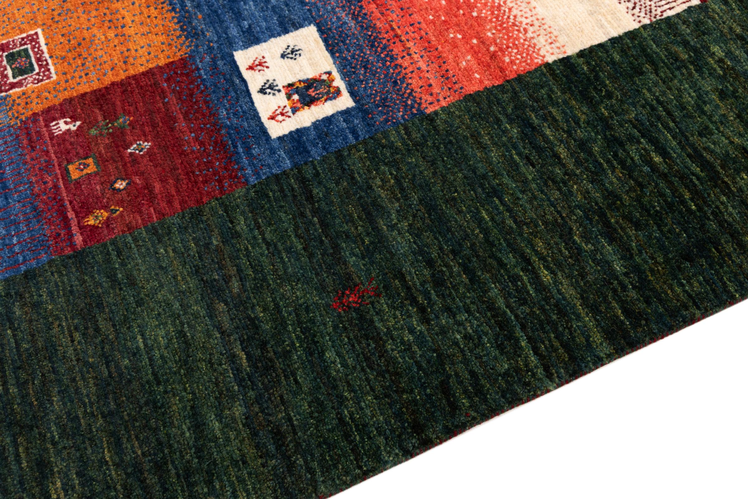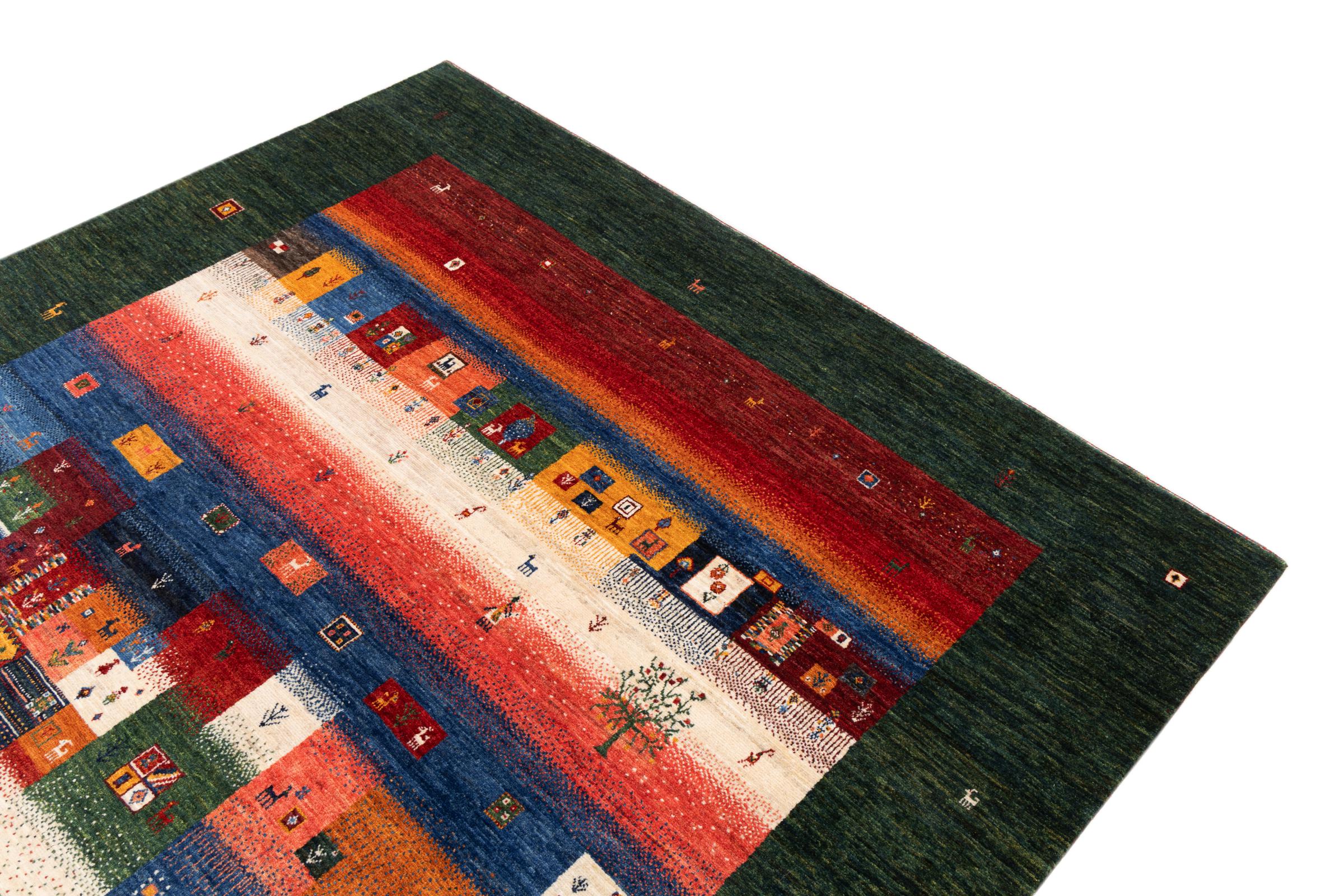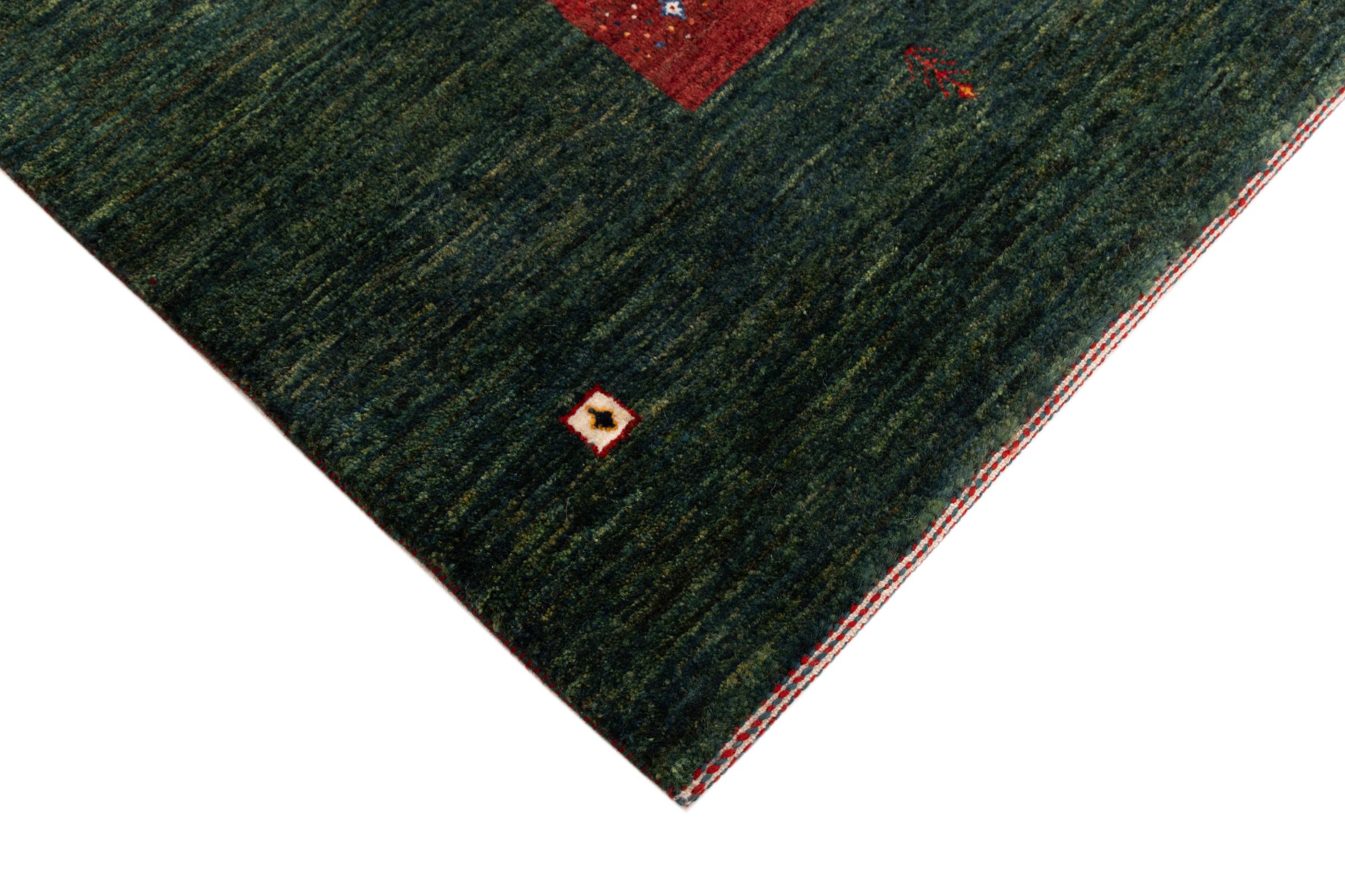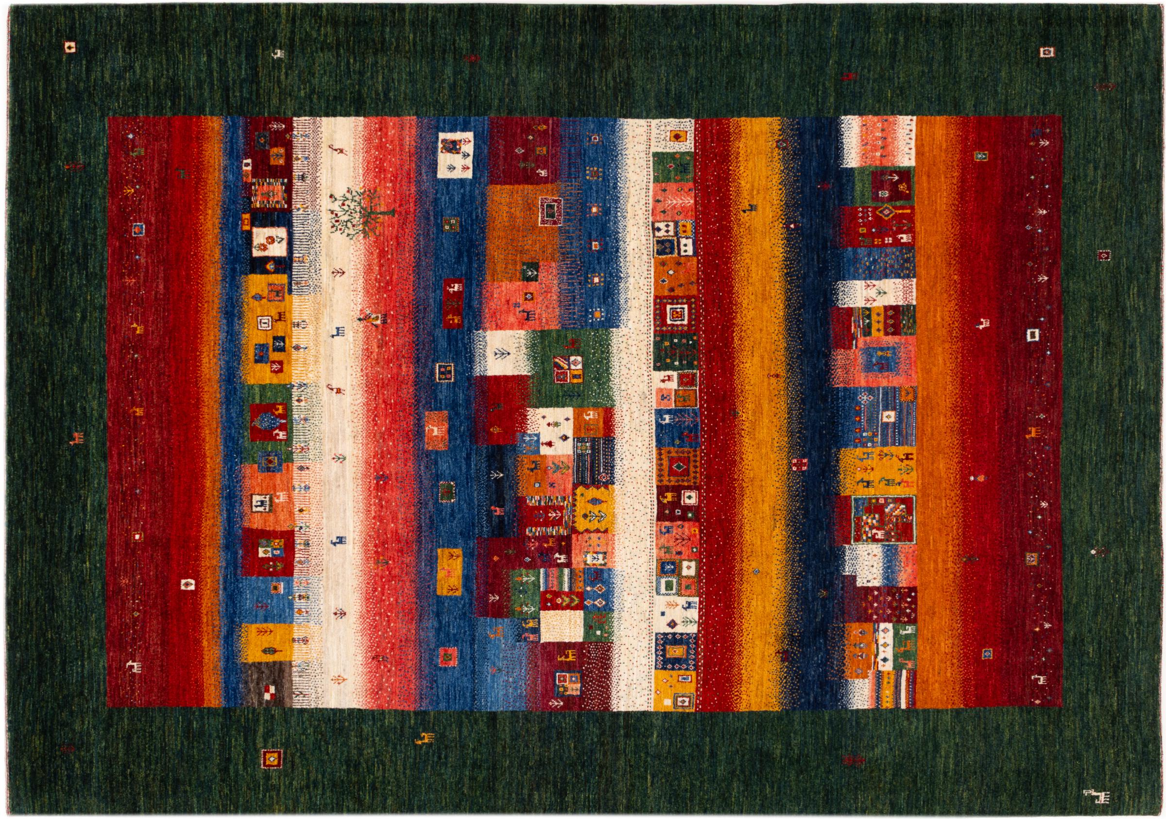 Ten piękny dywan jest perskim Gabbeh i dlatego należy do najwyższej jakości dywanów Gabbeh. Dywany są wiązane przez nomadów lub pół-nomadzi w Iranie zgodnie z tradycyjnym rzemiosłem. Proste motywy i wzory są w większości inspirowane bezpośrednim otoczeniem nomadów. Na przykład wielbłądy, drzewa lub krzewy można znaleźć na tradycyjnych dywanach. Perskie dywany Gabbeh wykonane są z wełny pochodzącej z lokalnie hodowanych stad owiec. Wełna jest więc w większości przypadków nadal obracana ręcznie. Tak więc każdy z tych orientalnych dywanów uosabia unikalny charakter wielowiekowej kultury.