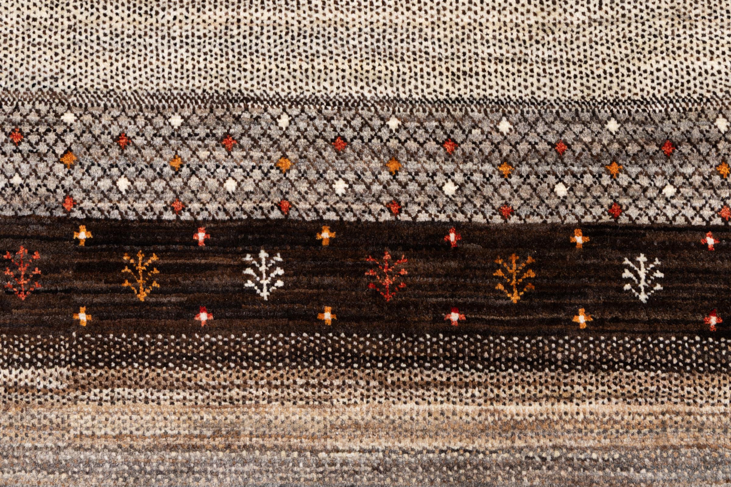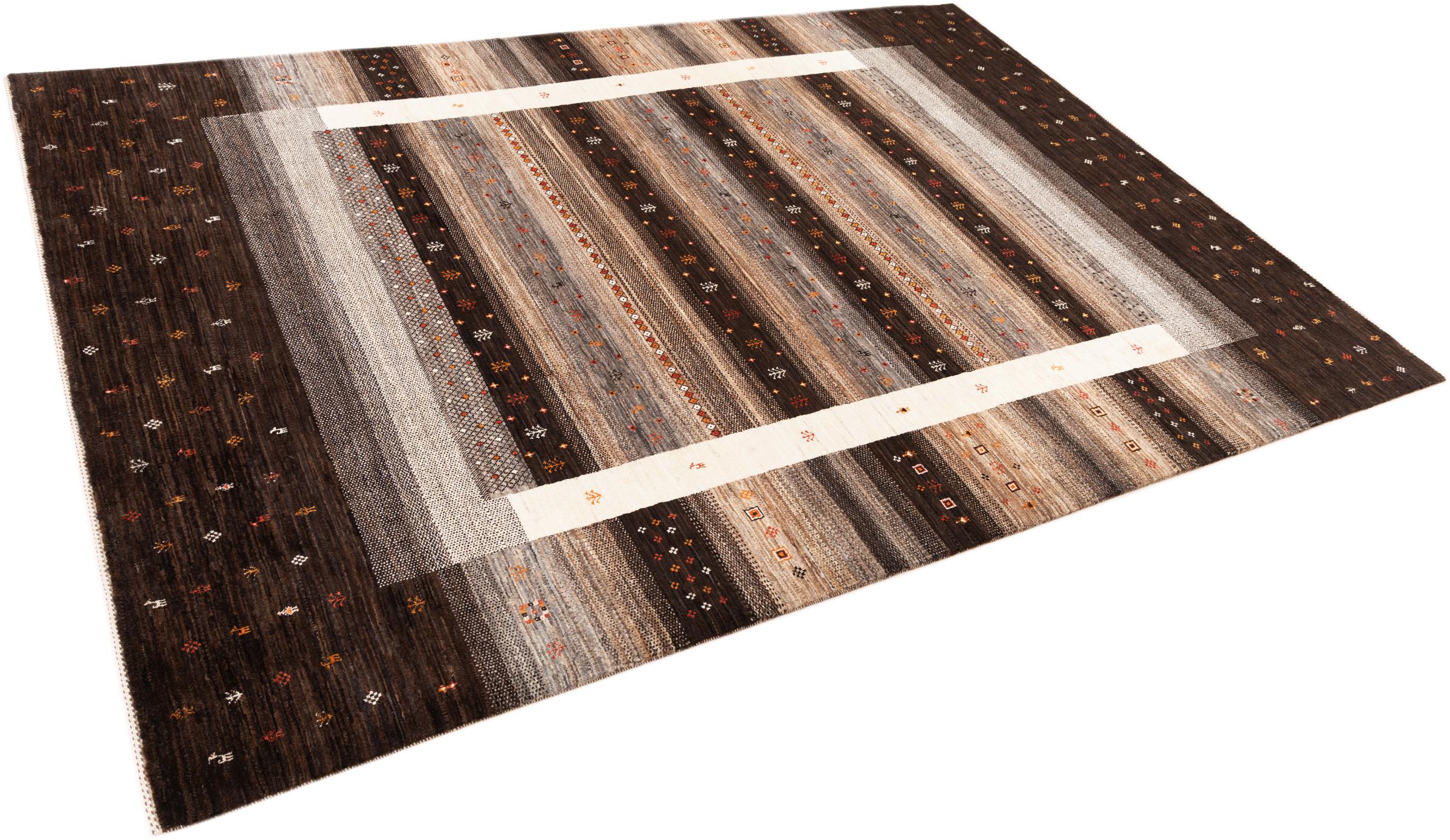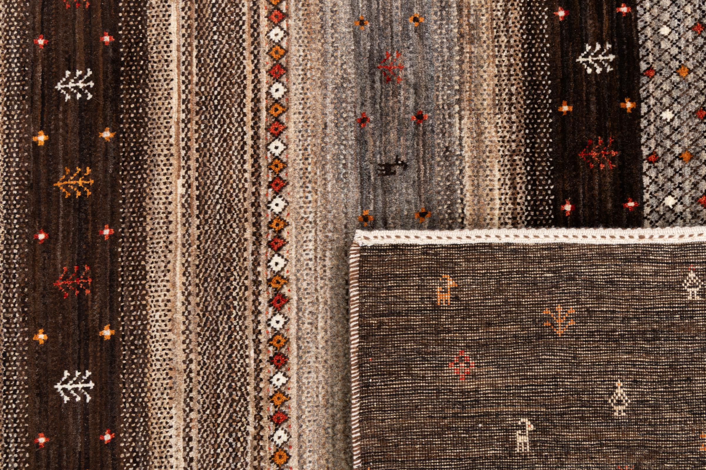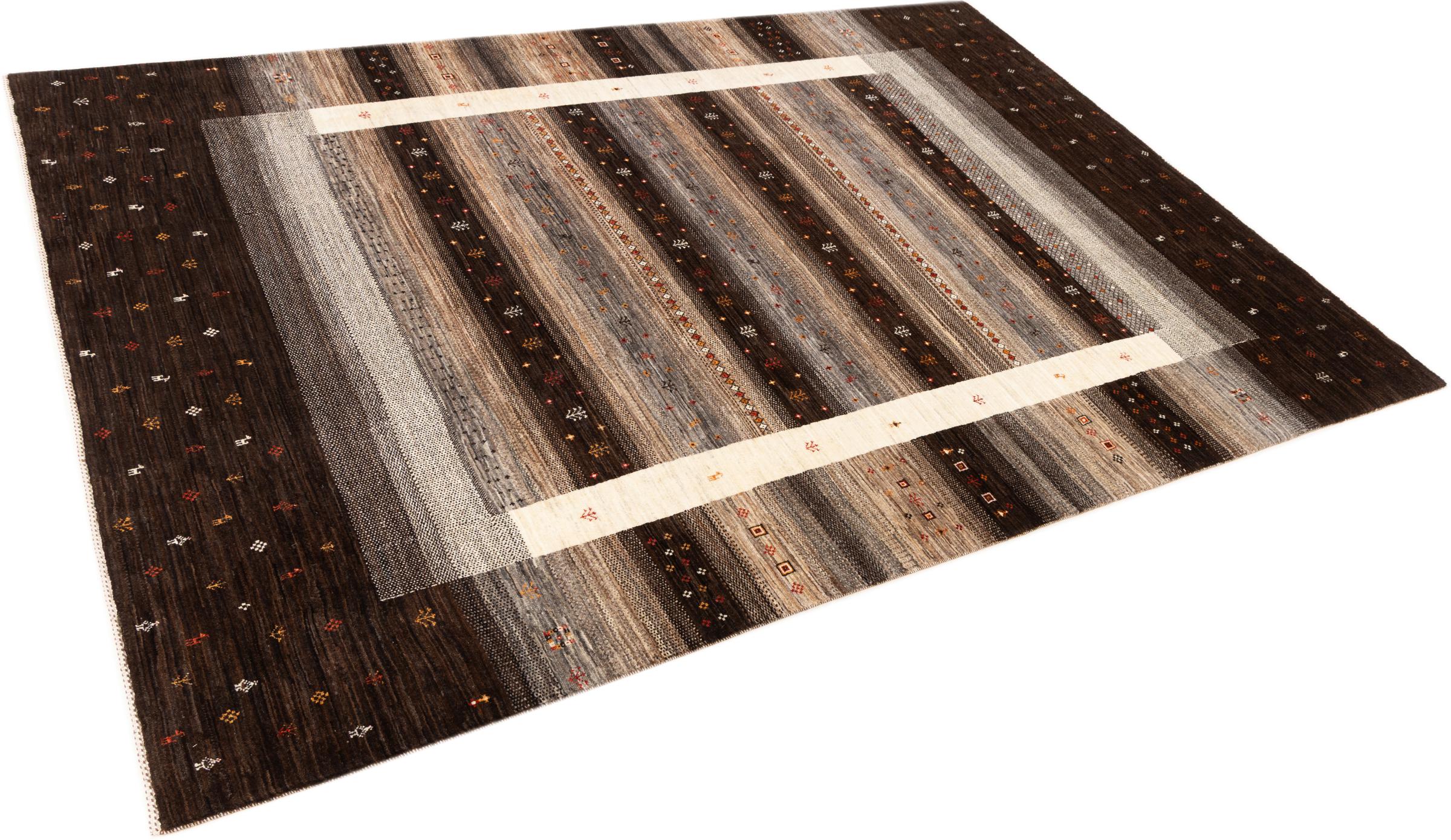 Ten piękny dywan jest perskim Gabbeh i dlatego należy do najwyższej jakości dywanów Gabbeh. Dywany są wiązane przez nomadów lub pół-nomadzi w Iranie zgodnie z tradycyjnym rzemiosłem. Proste motywy i wzory są w większości inspirowane bezpośrednim otoczeniem nomadów. Na przykład wielbłądy, drzewa lub krzewy można znaleźć na tradycyjnych dywanach. Perskie dywany Gabbeh wykonane są z wełny pochodzącej z lokalnie hodowanych stad owiec. Wełna jest więc w większości przypadków nadal obracana ręcznie. Tak więc każdy z tych orientalnych dywanów uosabia unikalny charakter wielowiekowej kultury.