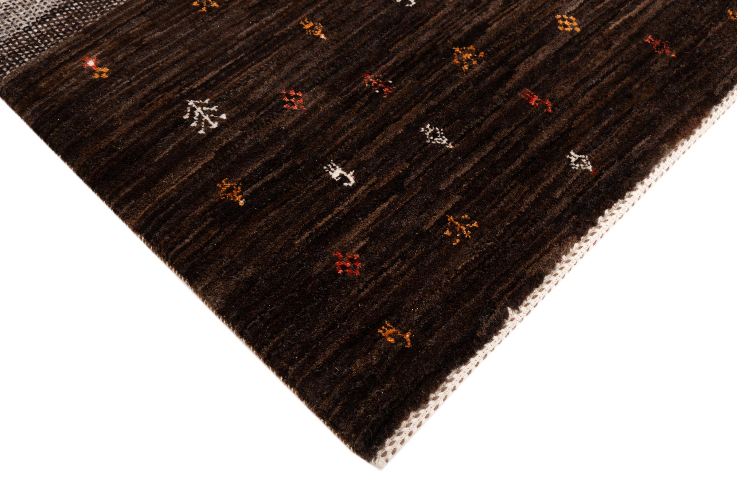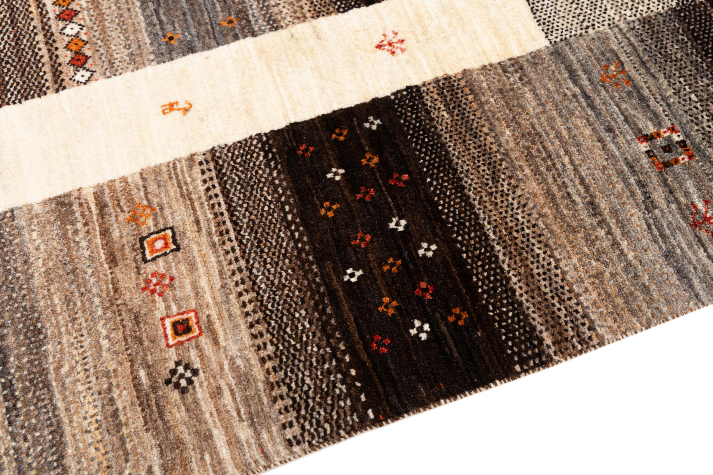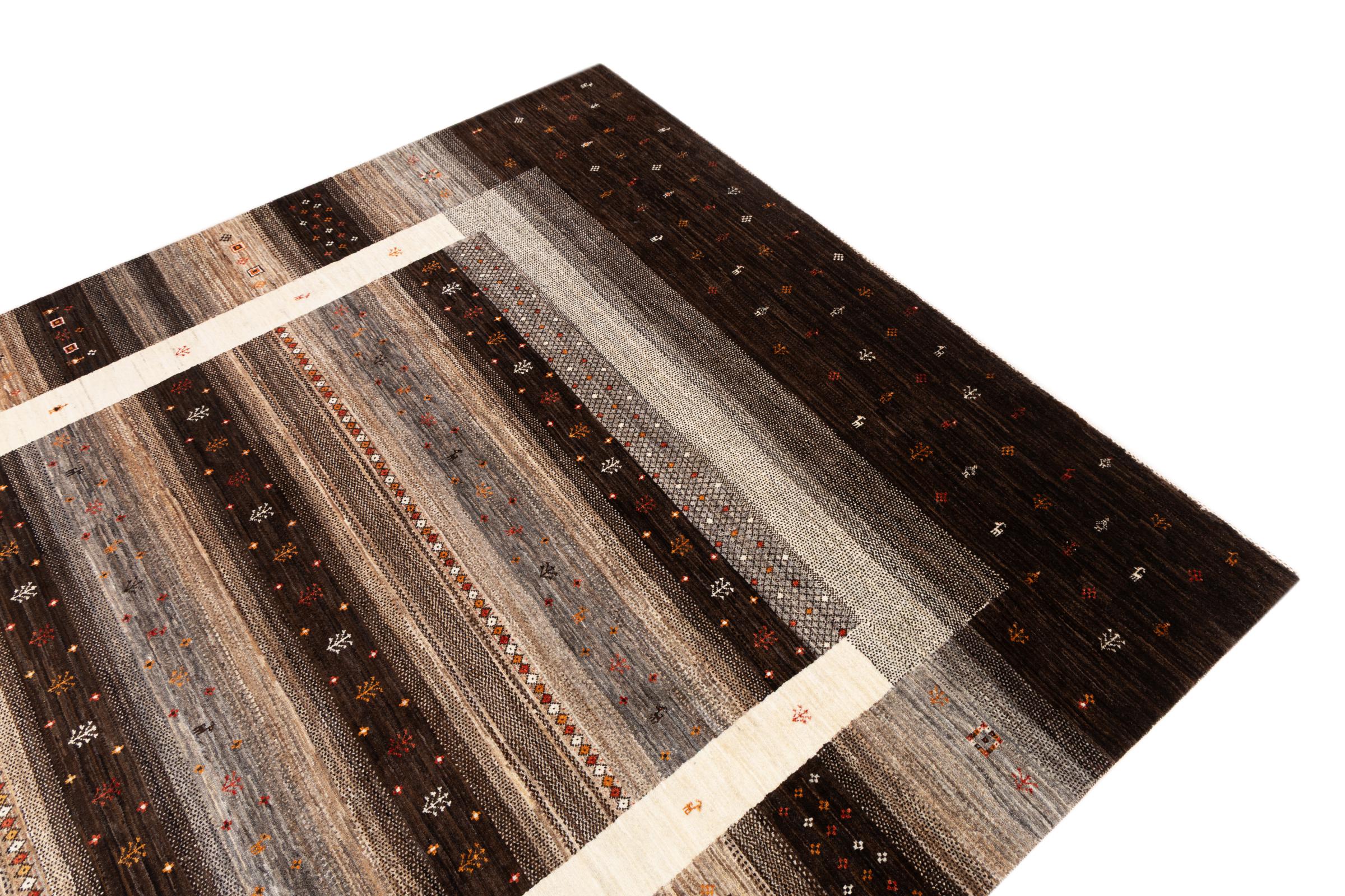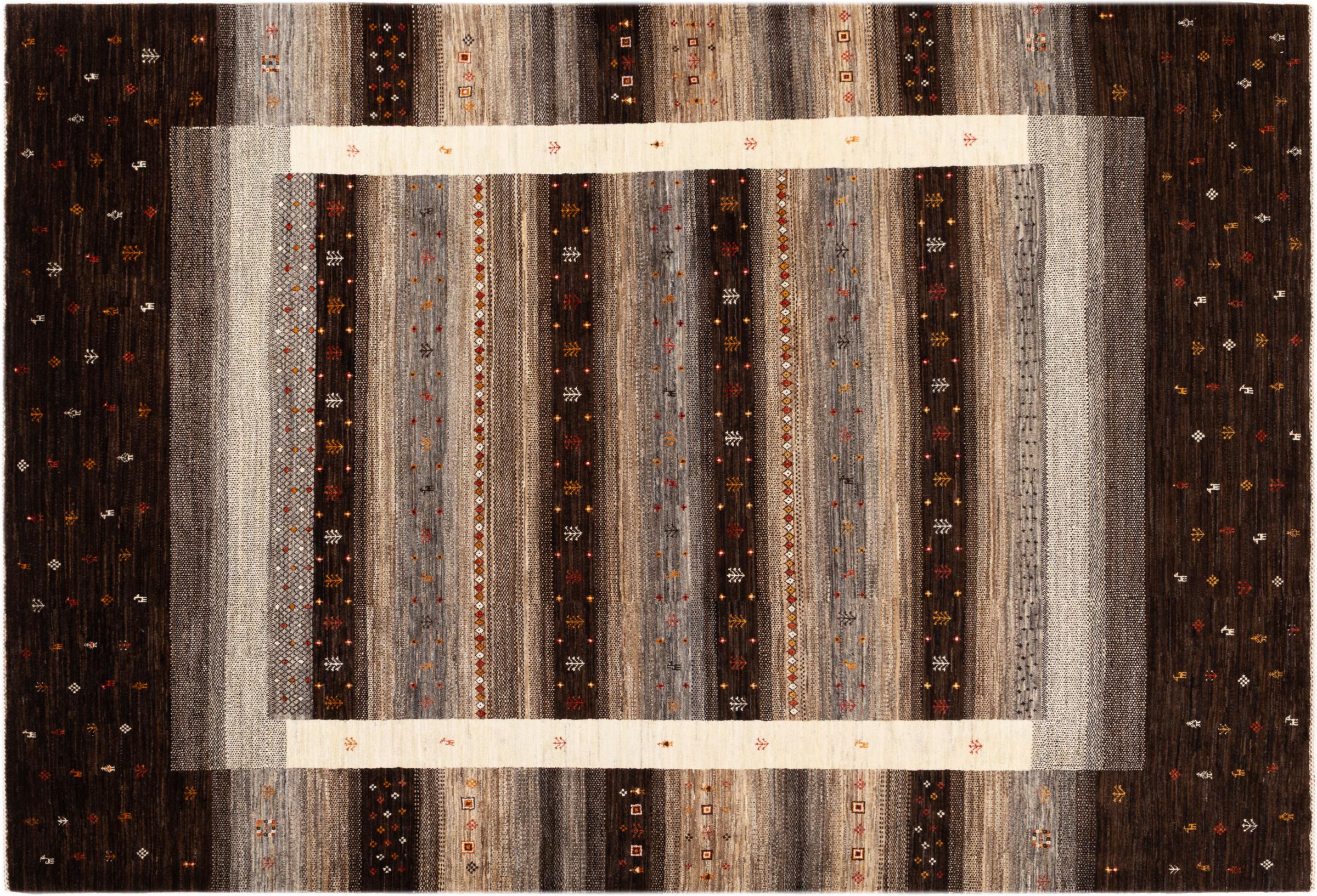 Ten piękny dywan jest perskim Gabbeh i dlatego należy do najwyższej jakości dywanów Gabbeh. Dywany są wiązane przez nomadów lub pół-nomadzi w Iranie zgodnie z tradycyjnym rzemiosłem. Proste motywy i wzory są w większości inspirowane bezpośrednim otoczeniem nomadów. Na przykład wielbłądy, drzewa lub krzewy można znaleźć na tradycyjnych dywanach. Perskie dywany Gabbeh wykonane są z wełny pochodzącej z lokalnie hodowanych stad owiec. Wełna jest więc w większości przypadków nadal obracana ręcznie. Tak więc każdy z tych orientalnych dywanów uosabia unikalny charakter wielowiekowej kultury.