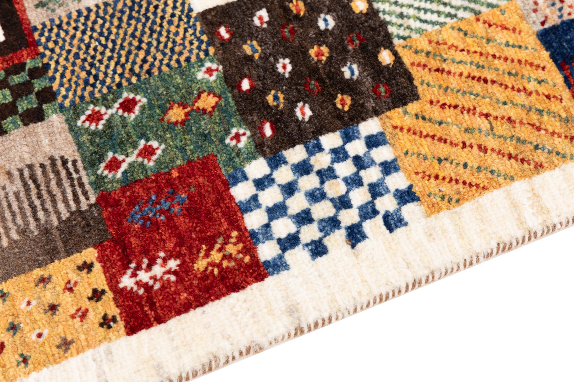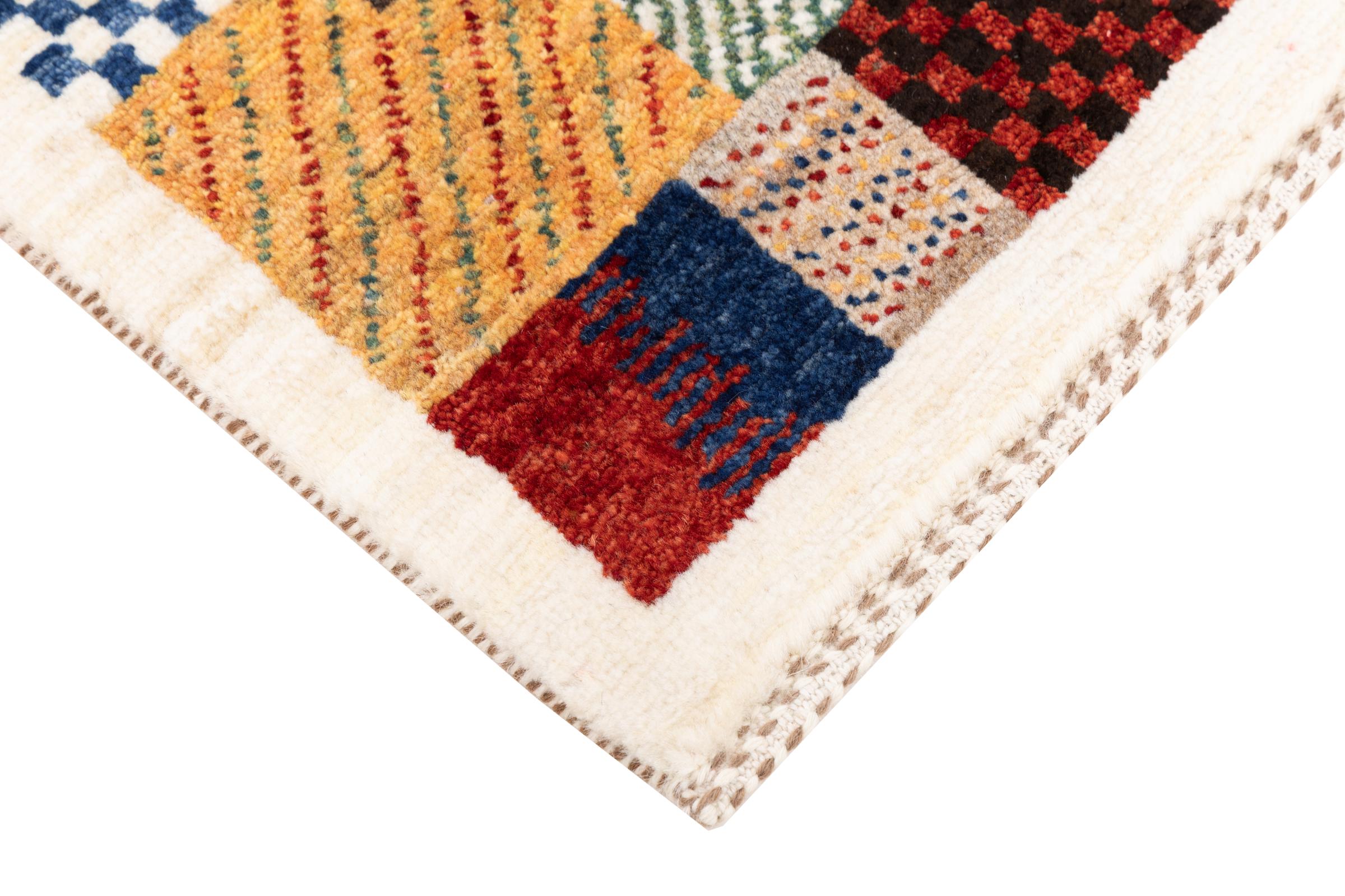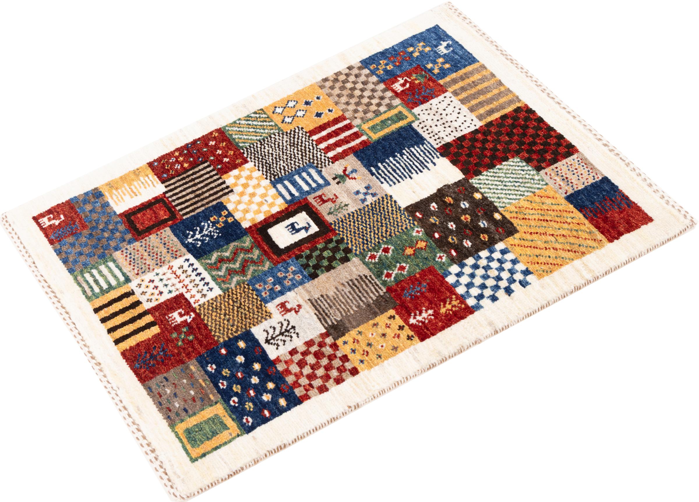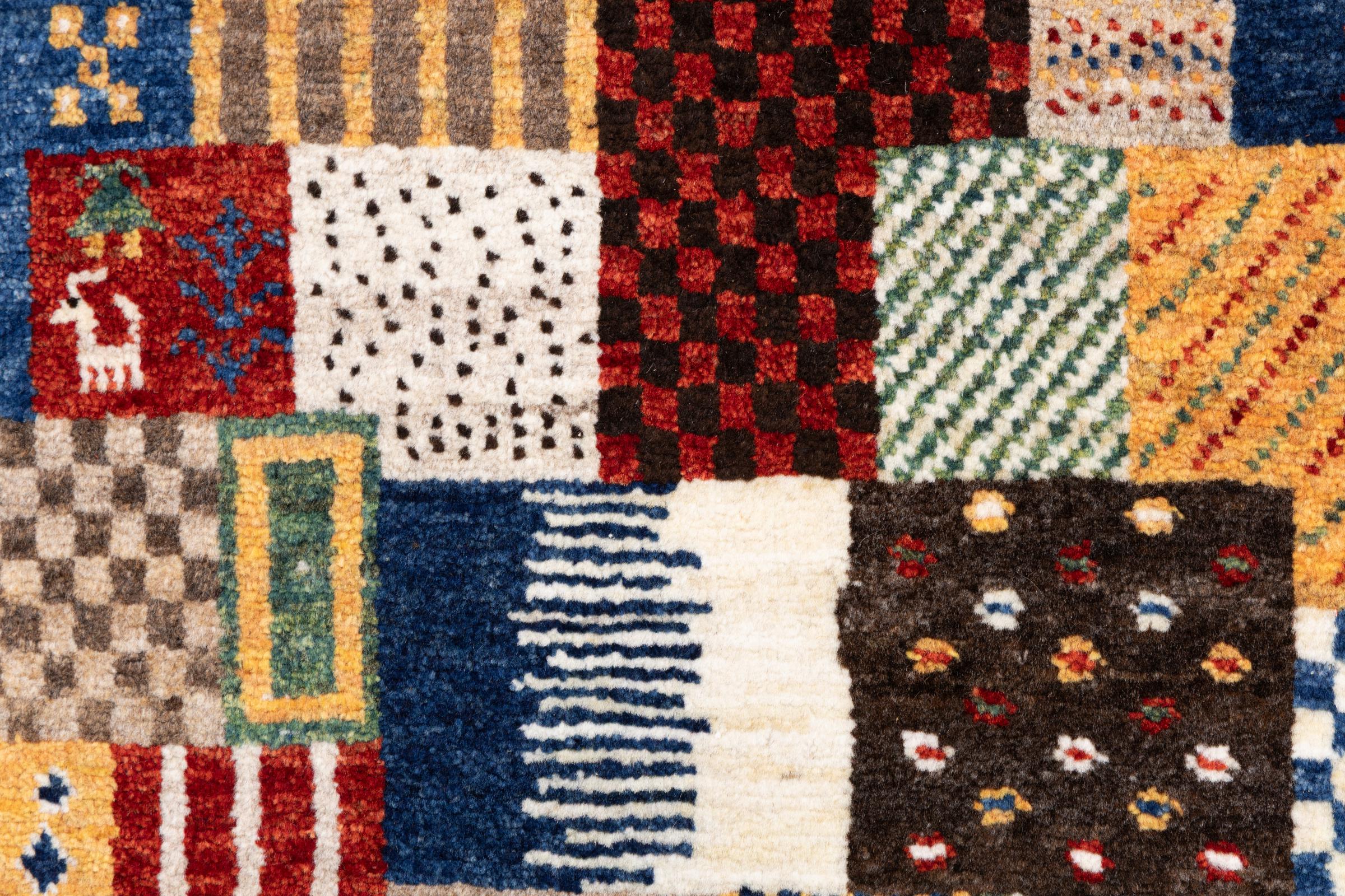 Ten piękny dywan jest perskim Gabbeh i dlatego należy do najwyższej jakości dywanów Gabbeh. Dywany są wiązane przez nomadów lub pół-nomadzi w Iranie zgodnie z tradycyjnym rzemiosłem. Proste motywy i wzory są w większości inspirowane bezpośrednim otoczeniem nomadów. Na przykład wielbłądy, drzewa lub krzewy można znaleźć na tradycyjnych dywanach. Perskie dywany Gabbeh wykonane są z wełny pochodzącej z lokalnie hodowanych stad owiec. Wełna jest więc w większości przypadków nadal obracana ręcznie. Tak więc każdy z tych orientalnych dywanów uosabia unikalny charakter wielowiekowej kultury.
