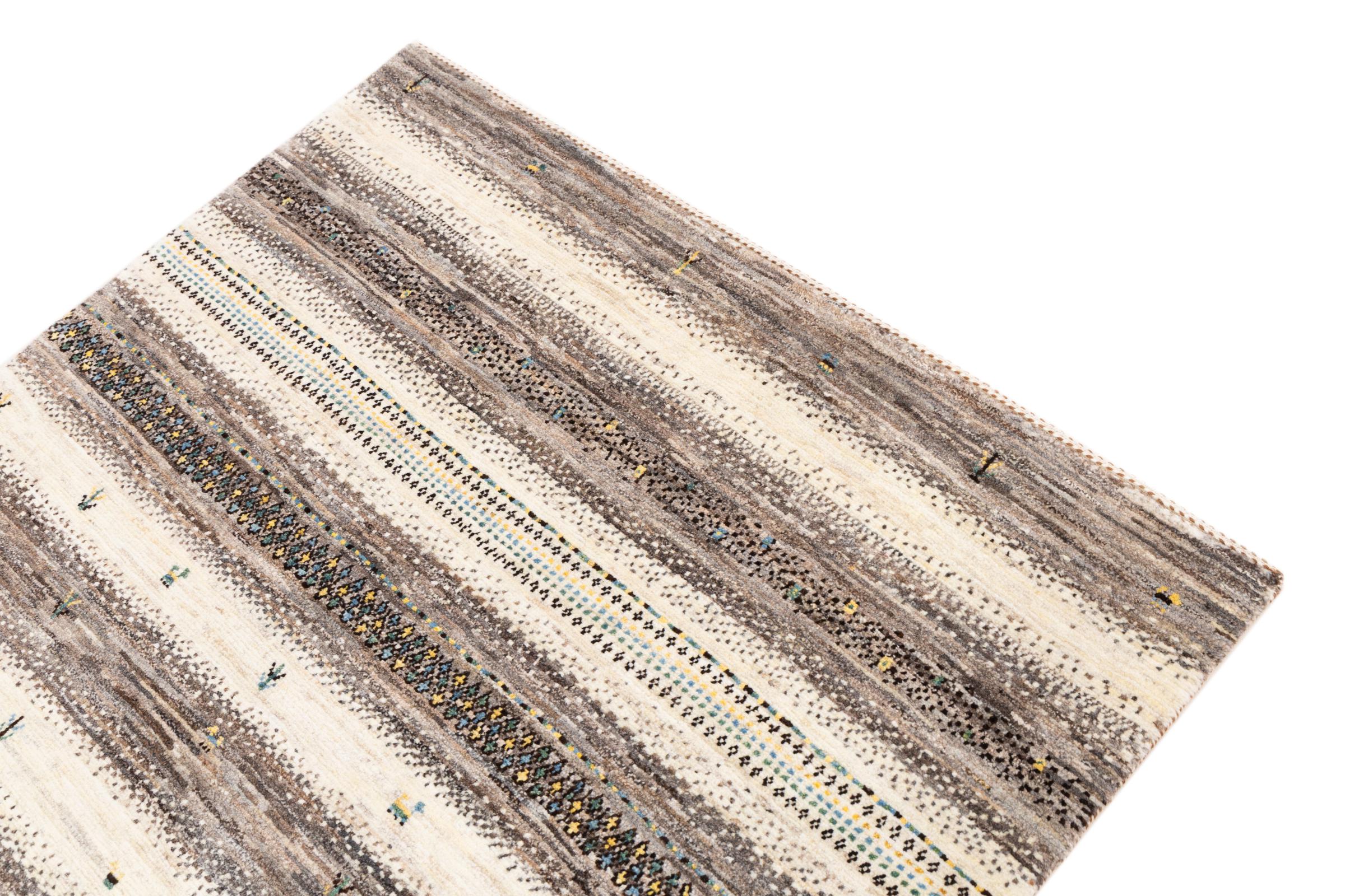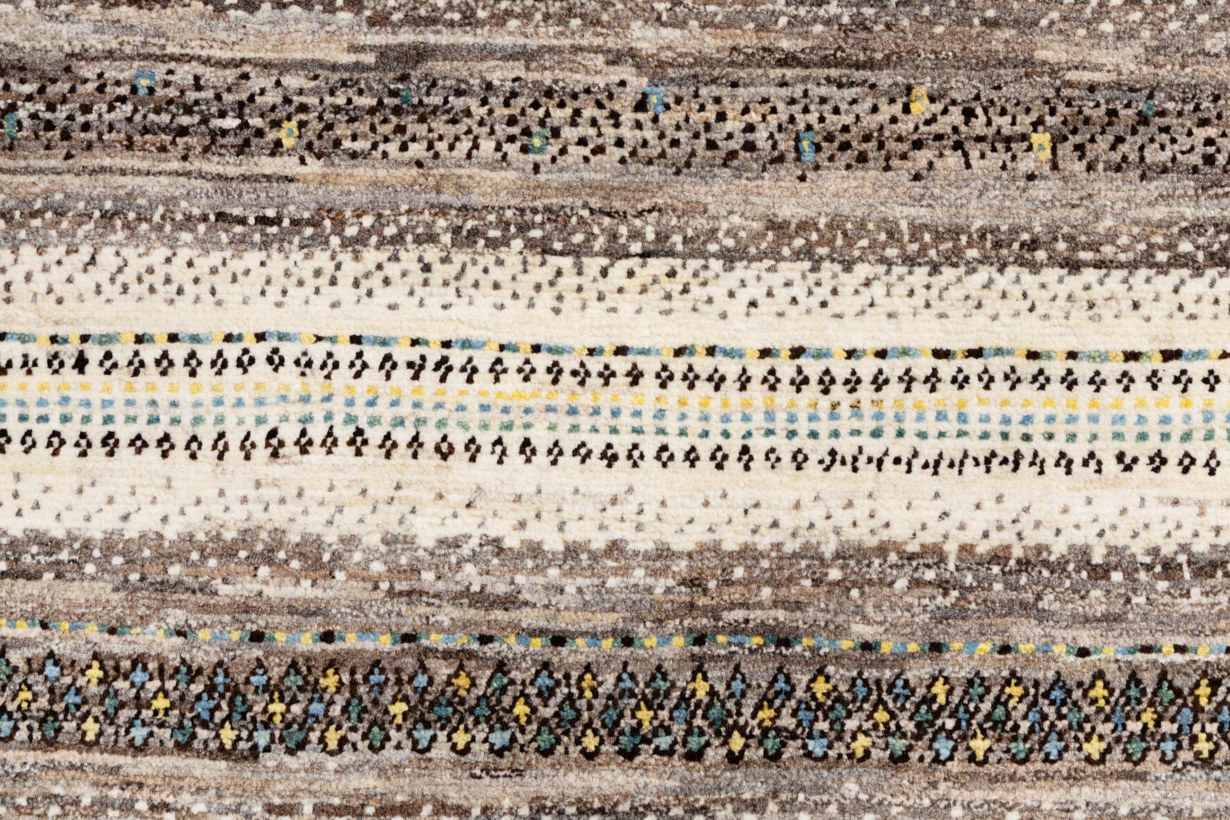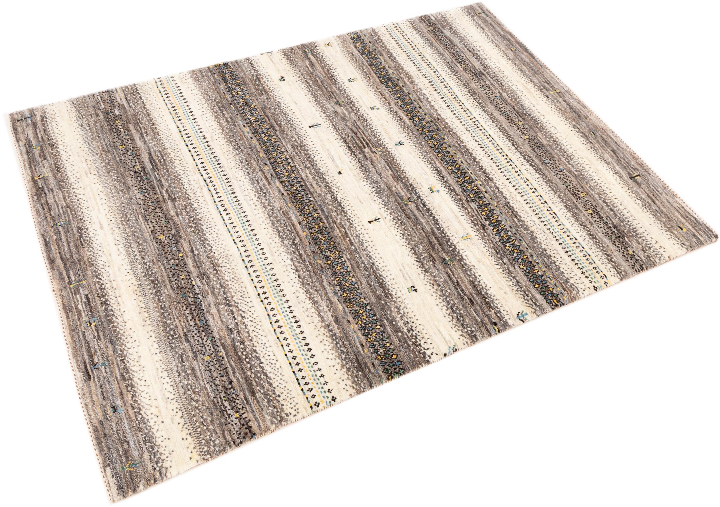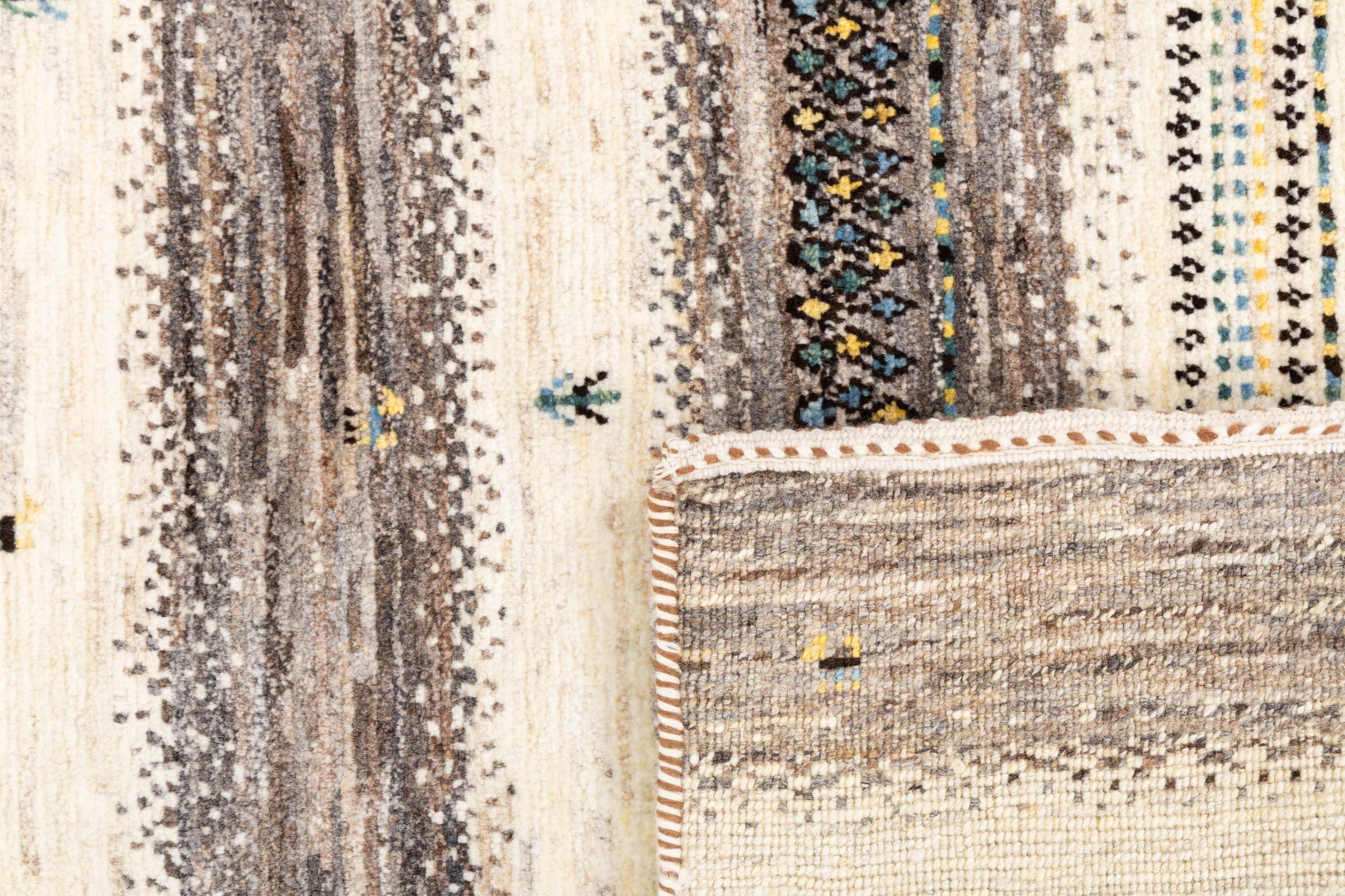 Ten piękny dywan jest perskim Gabbeh i dlatego należy do najwyższej jakości dywanów Gabbeh. Dywany są wiązane przez nomadów lub pół-nomadzi w Iranie zgodnie z tradycyjnym rzemiosłem. Proste motywy i wzory są w większości inspirowane bezpośrednim otoczeniem nomadów. Na przykład wielbłądy, drzewa lub krzewy można znaleźć na tradycyjnych dywanach. Perskie dywany Gabbeh wykonane są z wełny pochodzącej z lokalnie hodowanych stad owiec. Wełna jest więc w większości przypadków nadal obracana ręcznie. Tak więc każdy z tych orientalnych dywanów uosabia unikalny charakter wielowiekowej kultury.