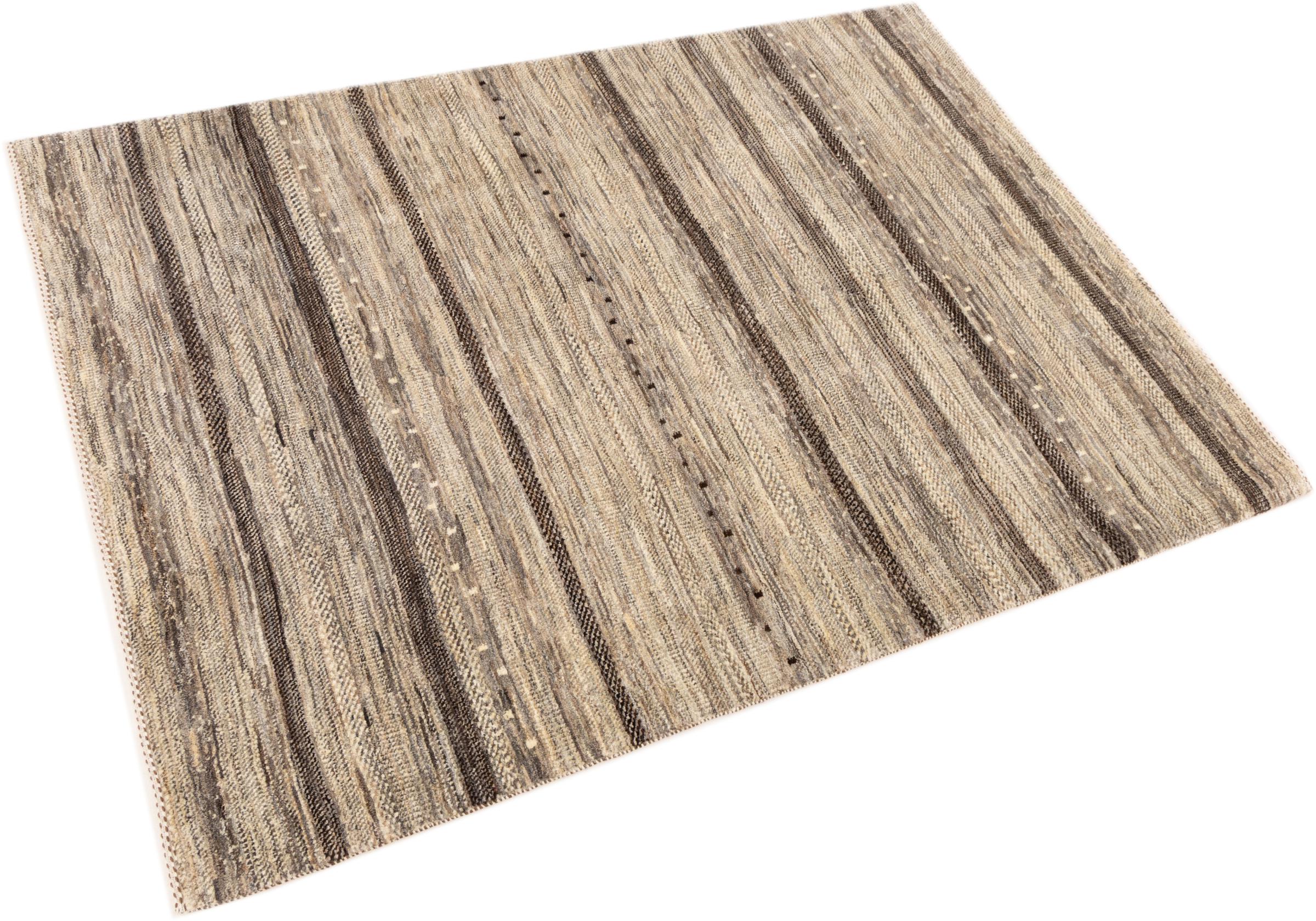 Ten piękny dywan jest perskim Gabbeh i dlatego należy do najwyższej jakości dywanów Gabbeh. Dywany są wiązane przez nomadów lub pół-nomadzi w Iranie zgodnie z tradycyjnym rzemiosłem. Proste motywy i wzory są w większości inspirowane bezpośrednim otoczeniem nomadów. Na przykład wielbłądy, drzewa lub krzewy można znaleźć na tradycyjnych dywanach. Perskie dywany Gabbeh wykonane są z wełny pochodzącej z lokalnie hodowanych stad owiec. Wełna jest więc w większości przypadków nadal obracana ręcznie. Tak więc każdy z tych orientalnych dywanów uosabia unikalny charakter wielowiekowej kultury.